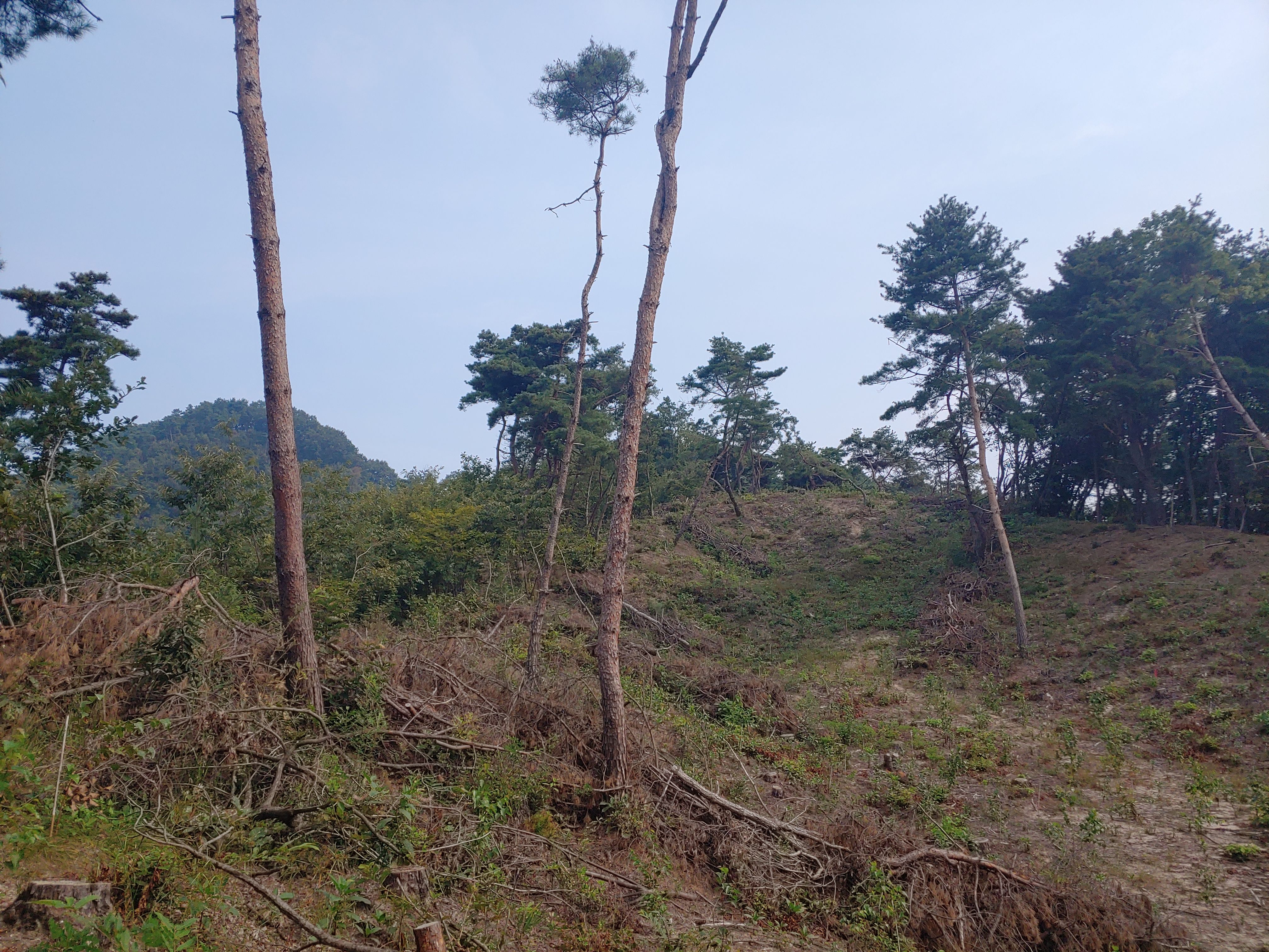 벌목지대 뒤에 보이는 봉우리 (천마산 정상) 임다