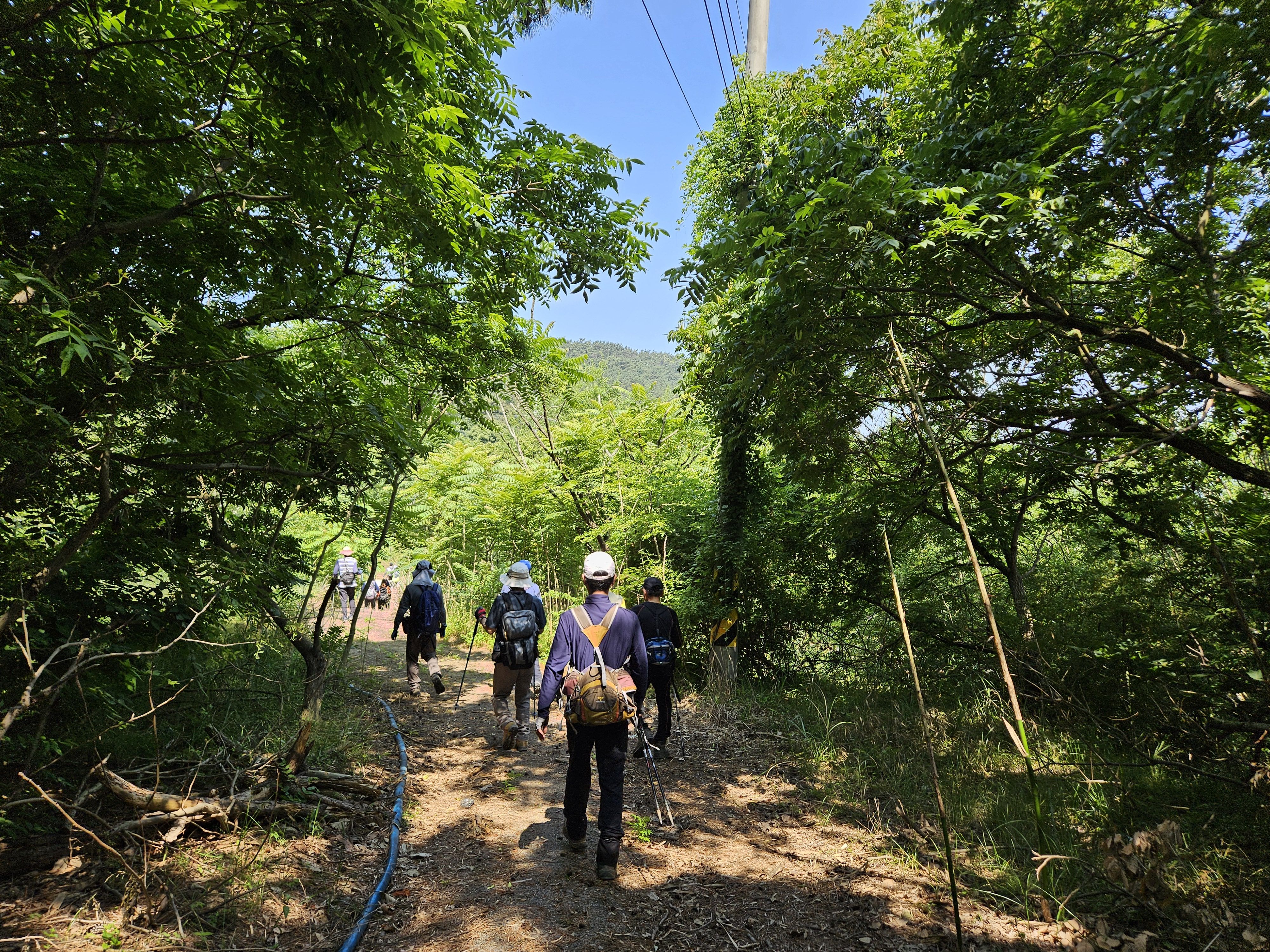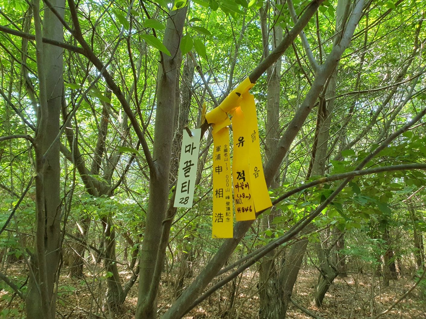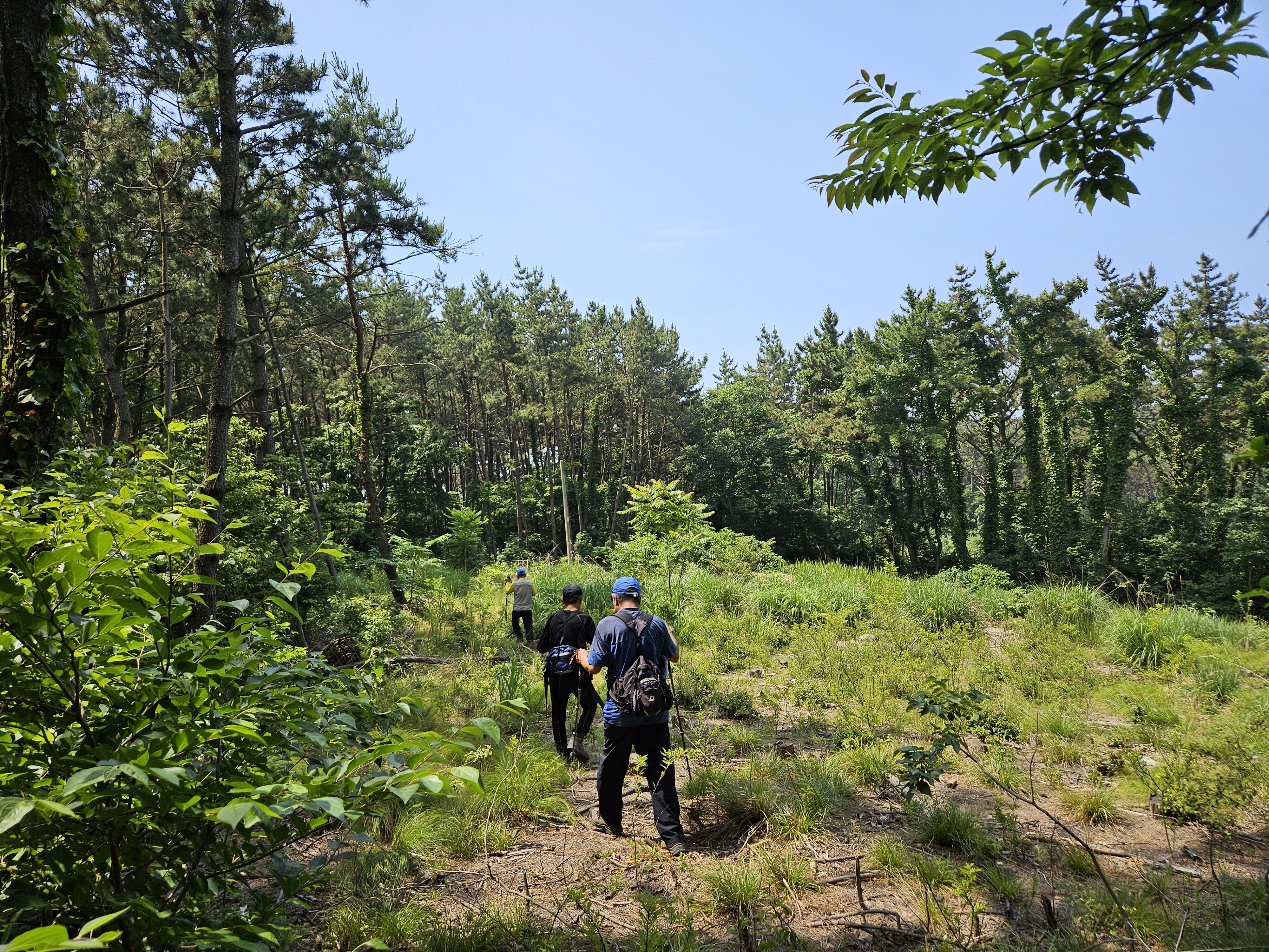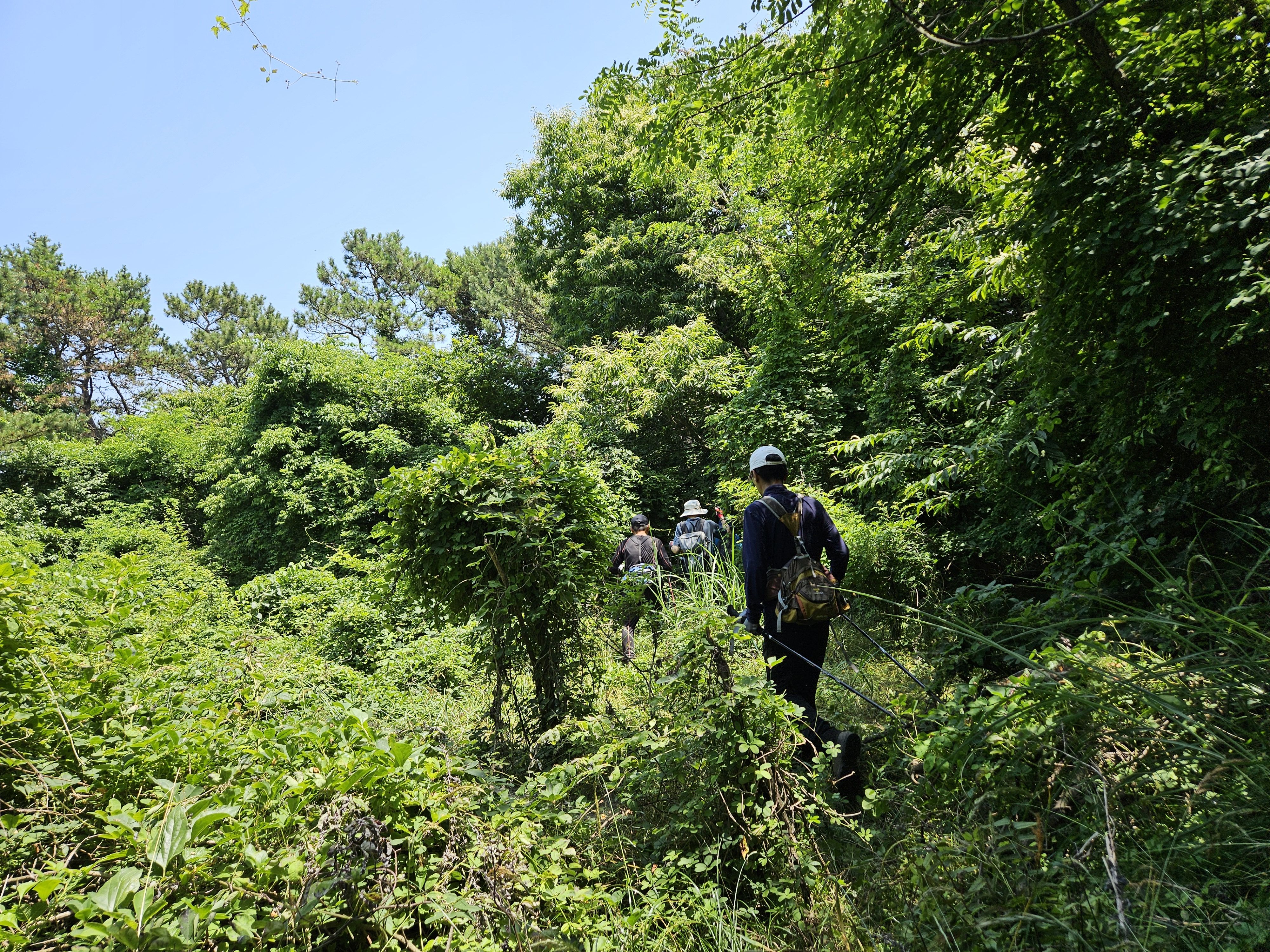 더운날씨 그나마 산행시간 짧아 다행이었습니다. 잡목과 가시넝쿨 시름하시느라 고생 많이 하셨습니다.