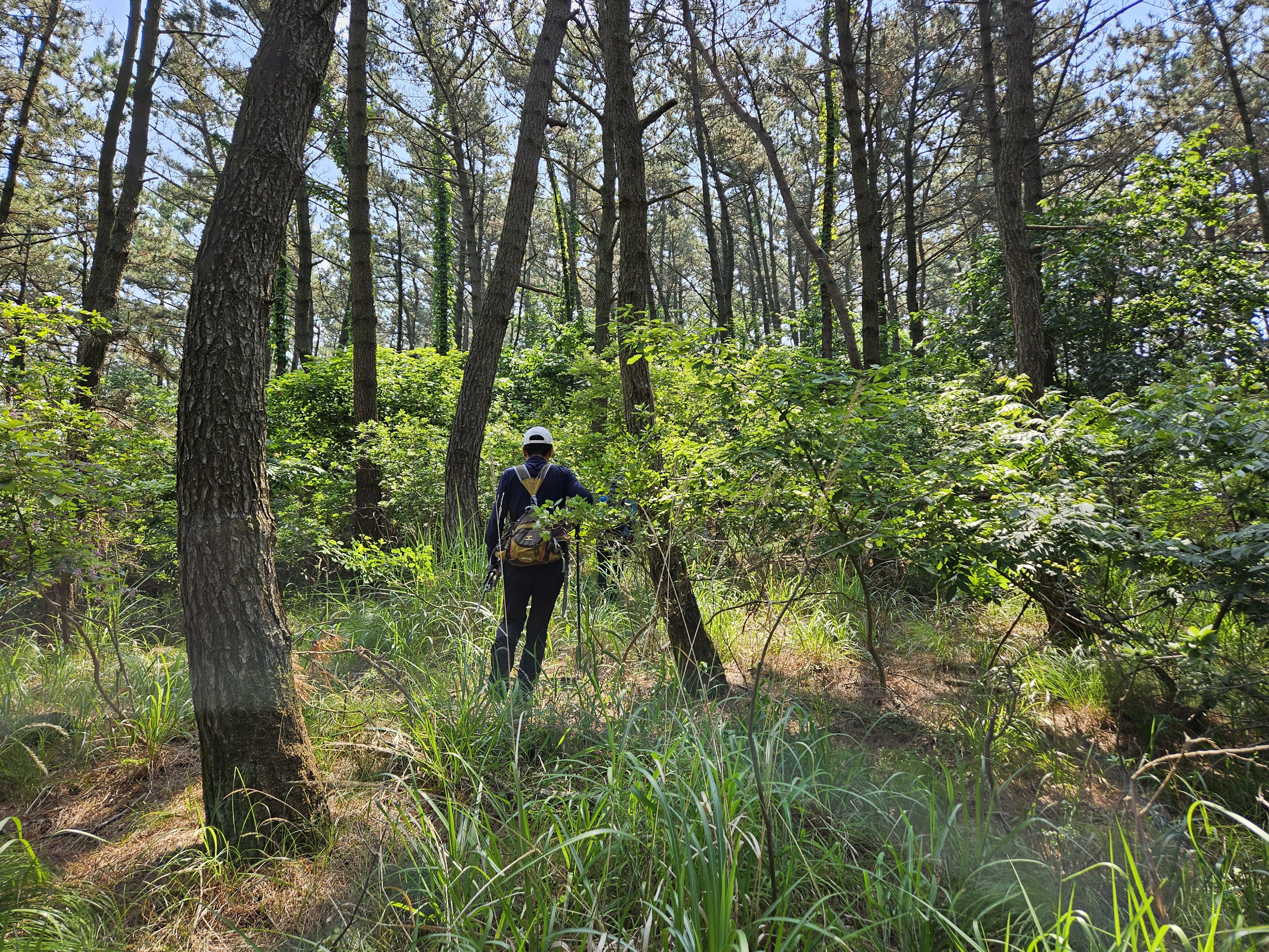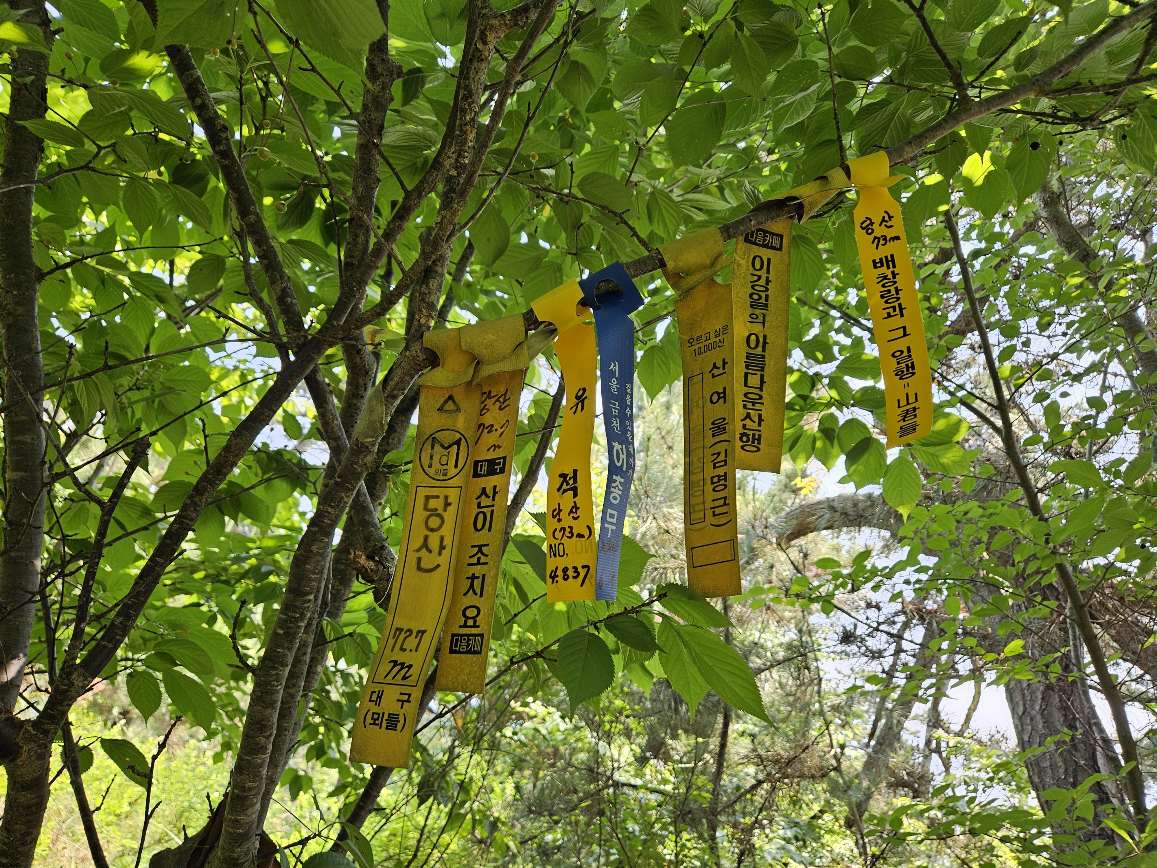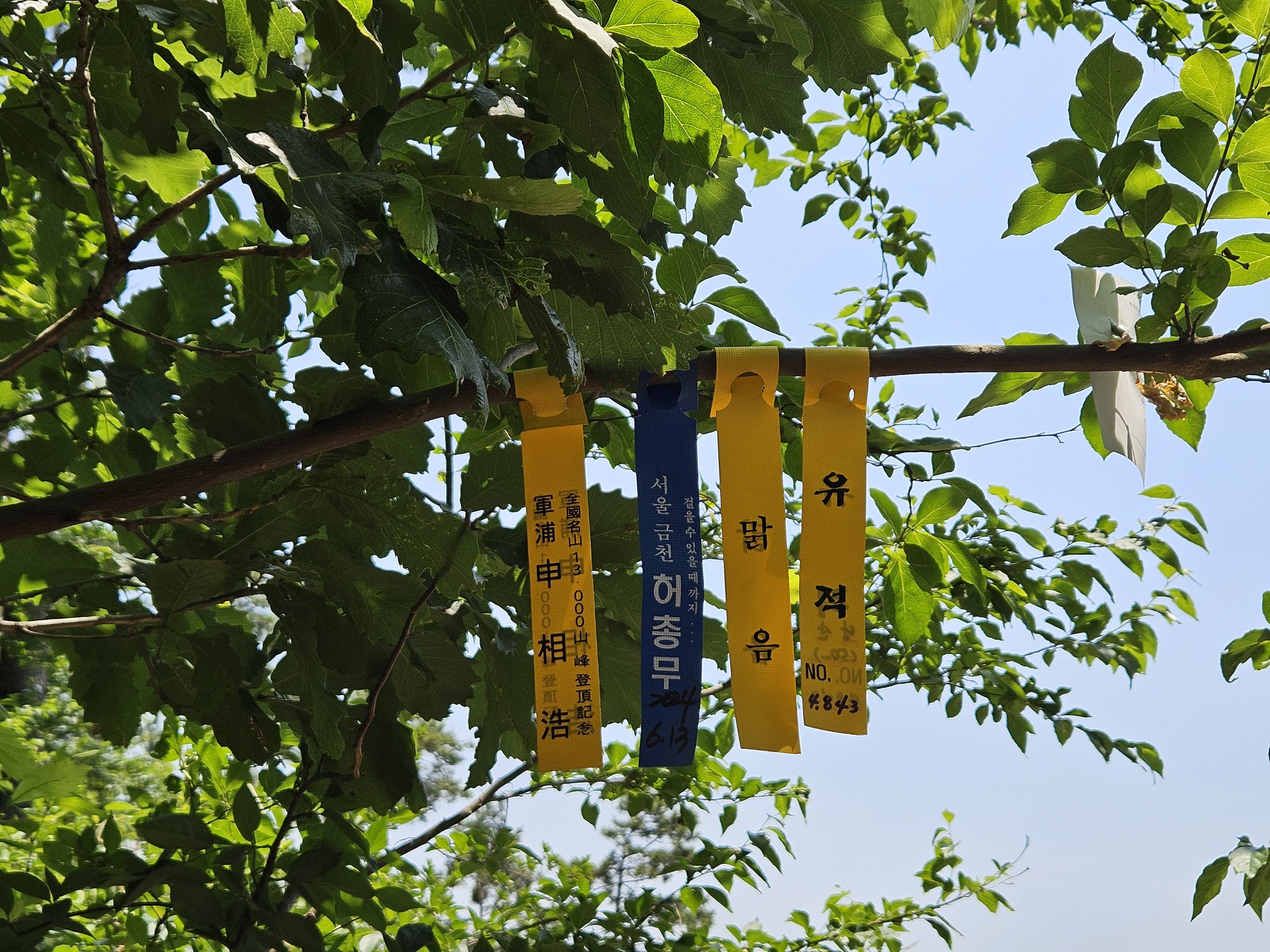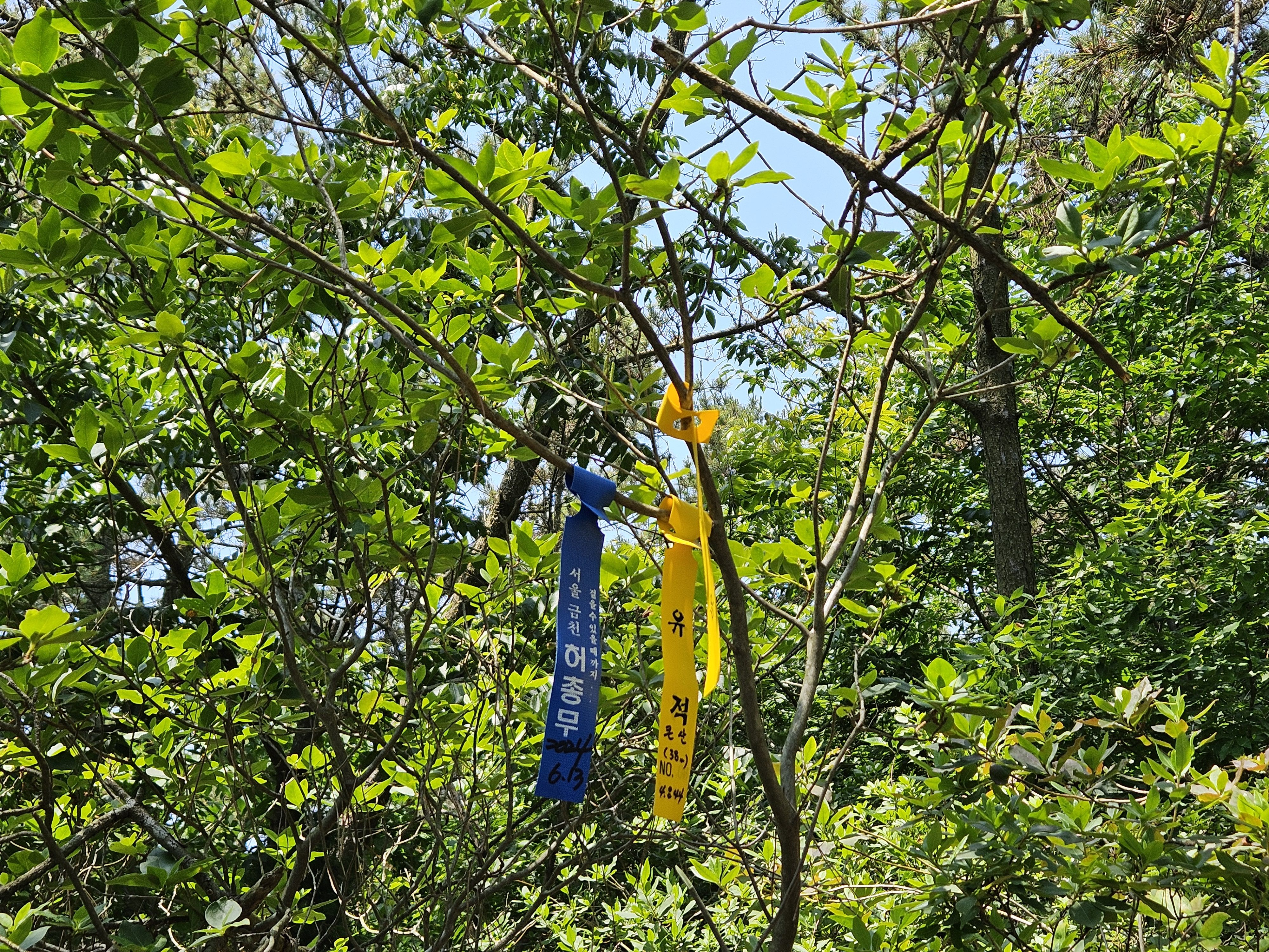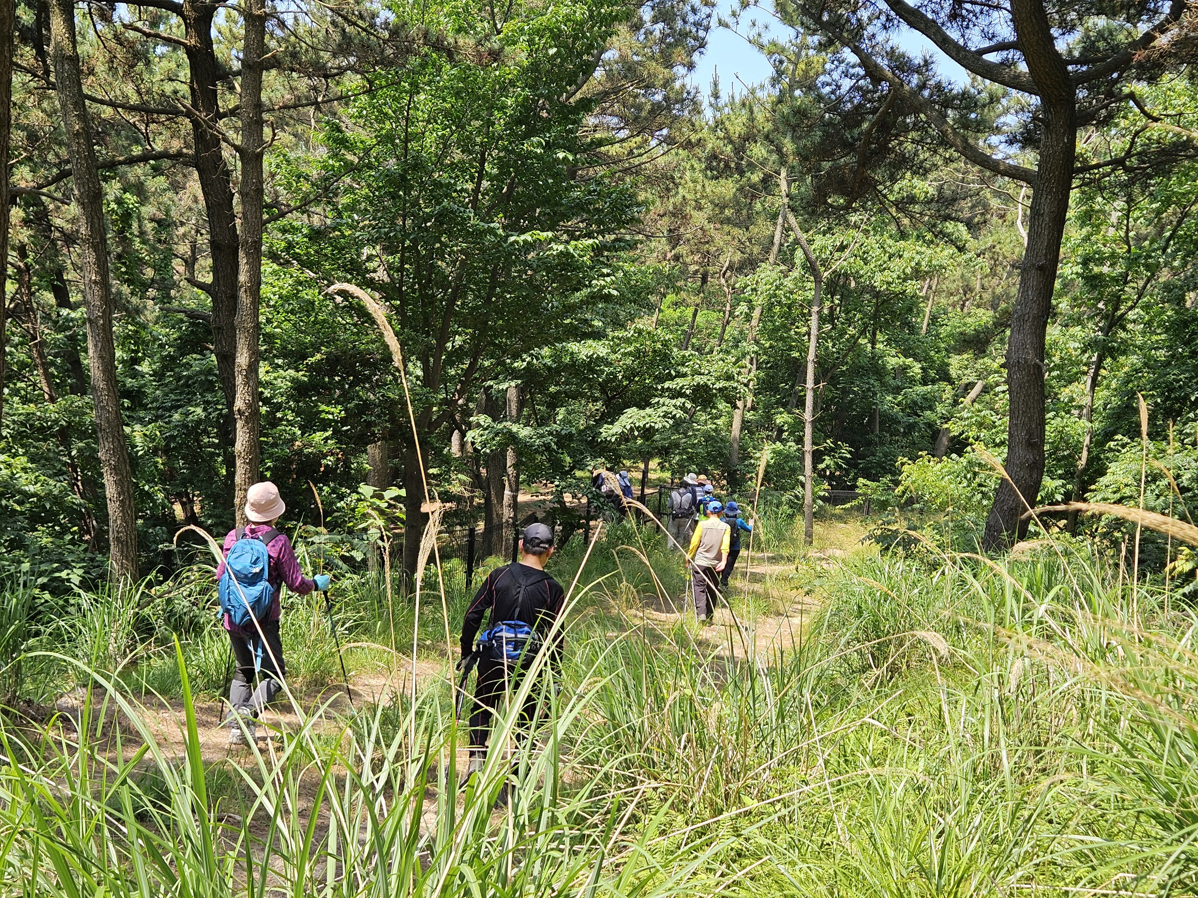 더운날씨 그나마 산행시간 짧아 다행이었습니다. 잡목과 가시넝쿨 시름하시느라 고생 많이 하셨습니다.