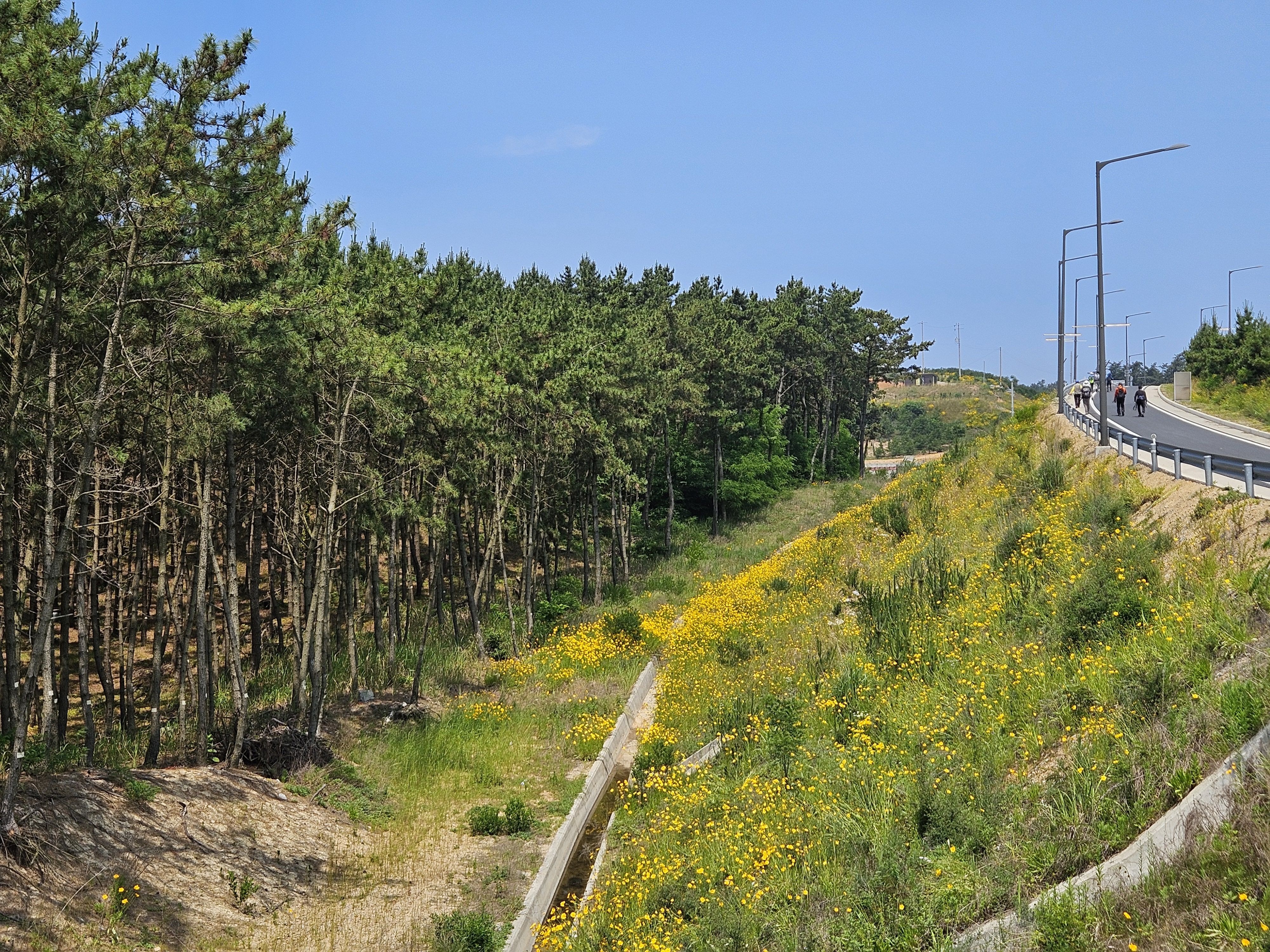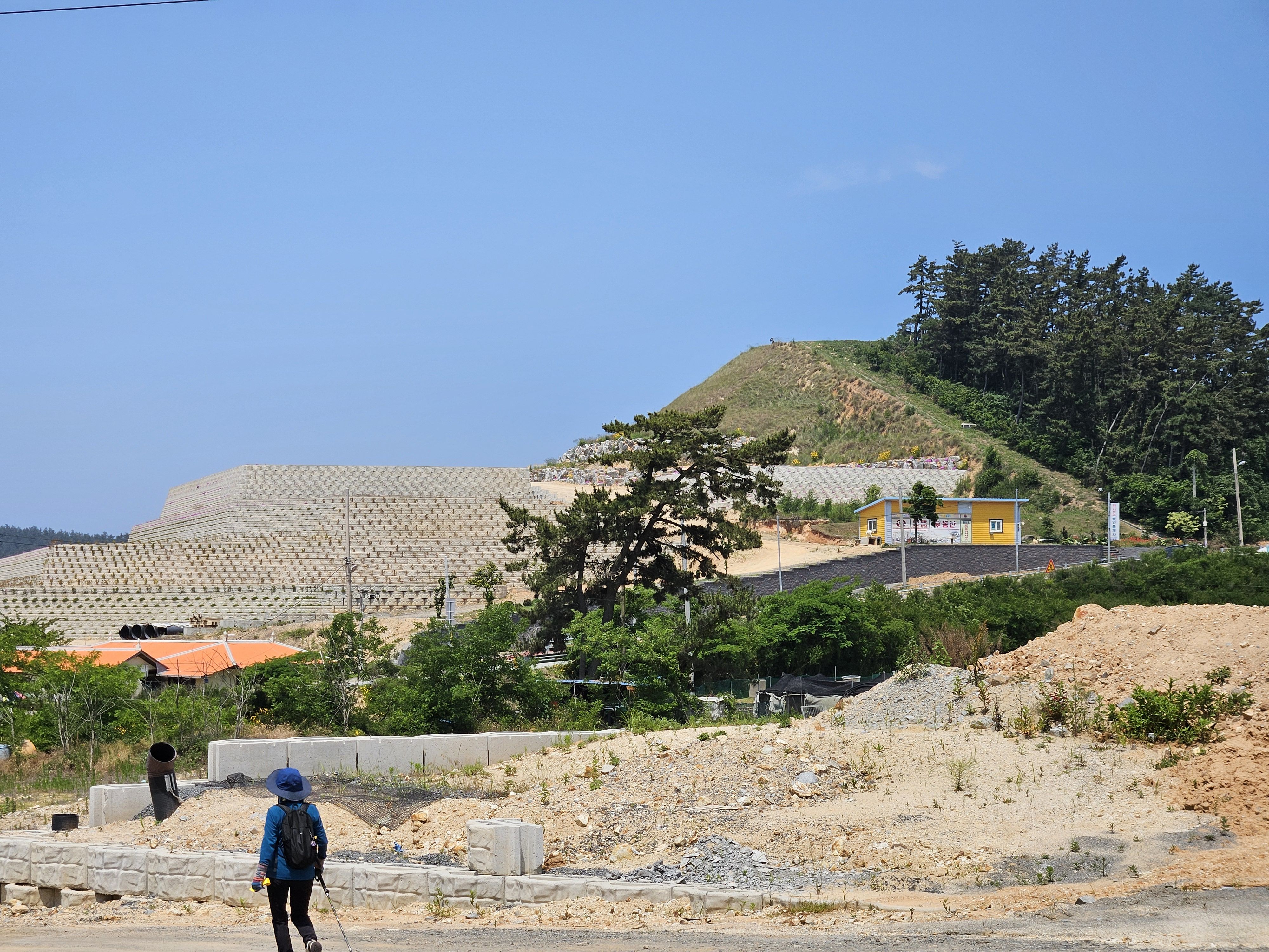 텅빈 공터 담이 높아서 내려가기 위험해 다시 돌아돌아 내려갔습니다. (목적지는 앞산 맨 왼쪽 오르막길)