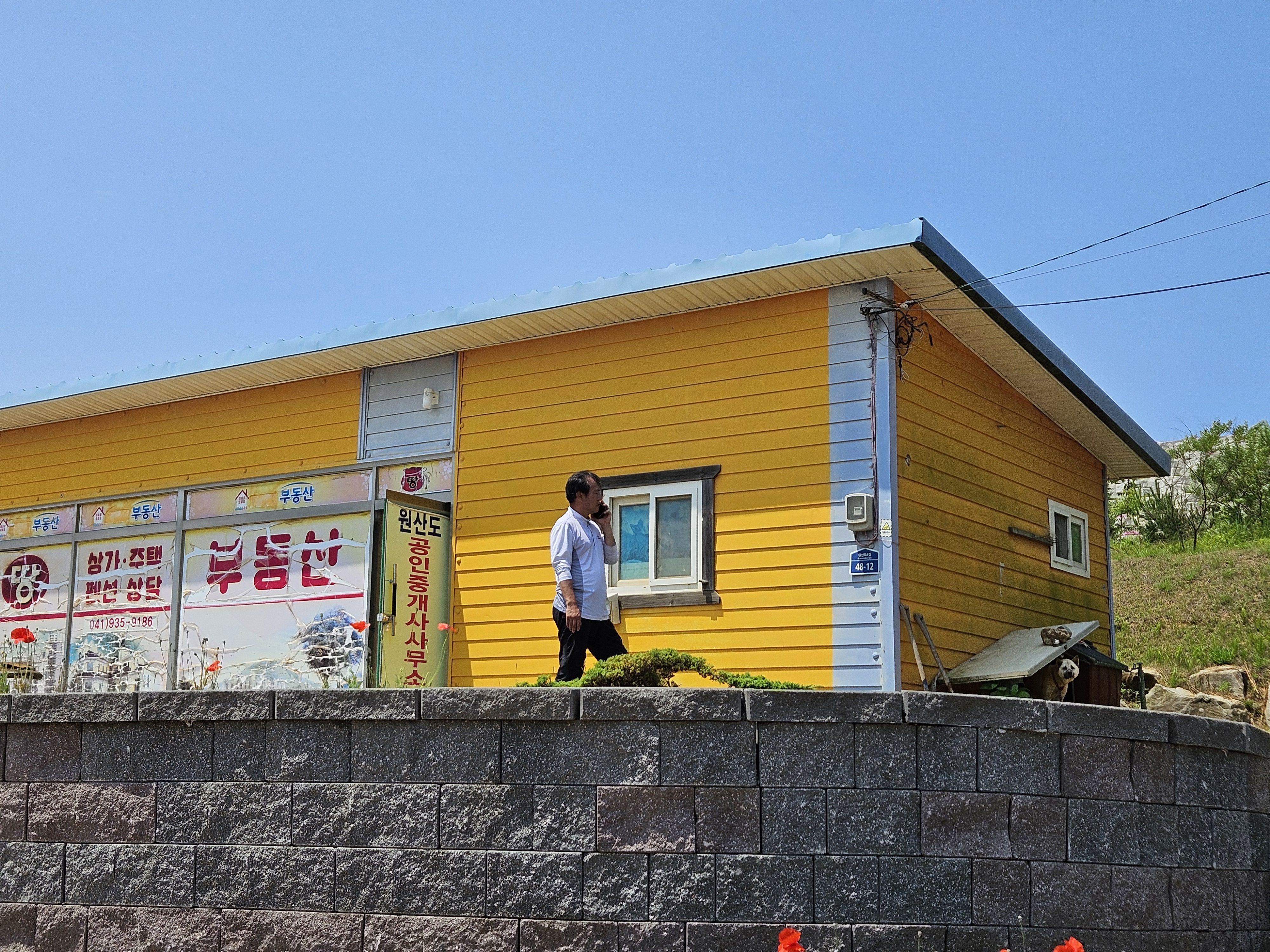 노오란 건물이 원산도부동산 이고 건물 오른쪽 언덕길로 올라 갈 예정