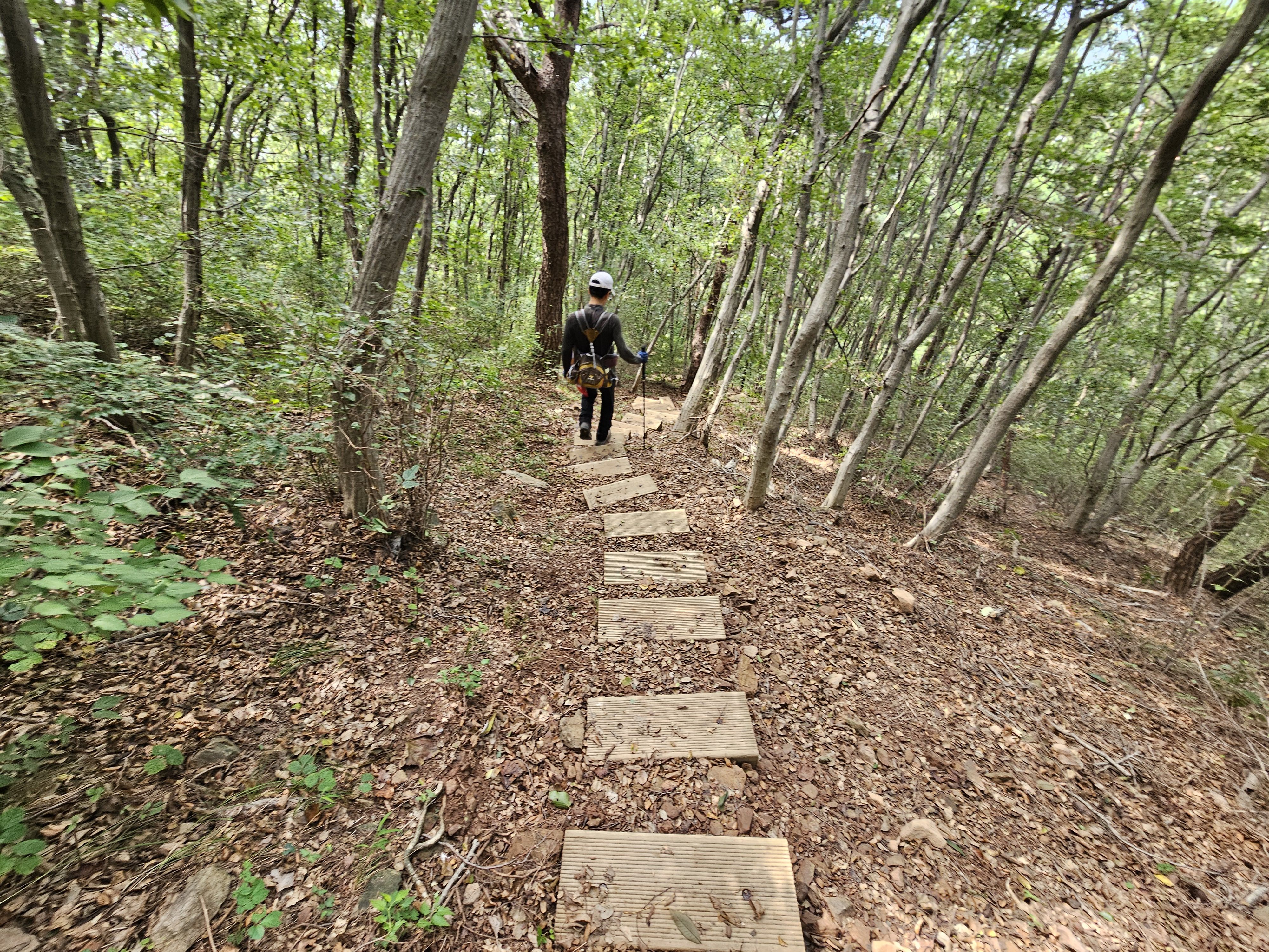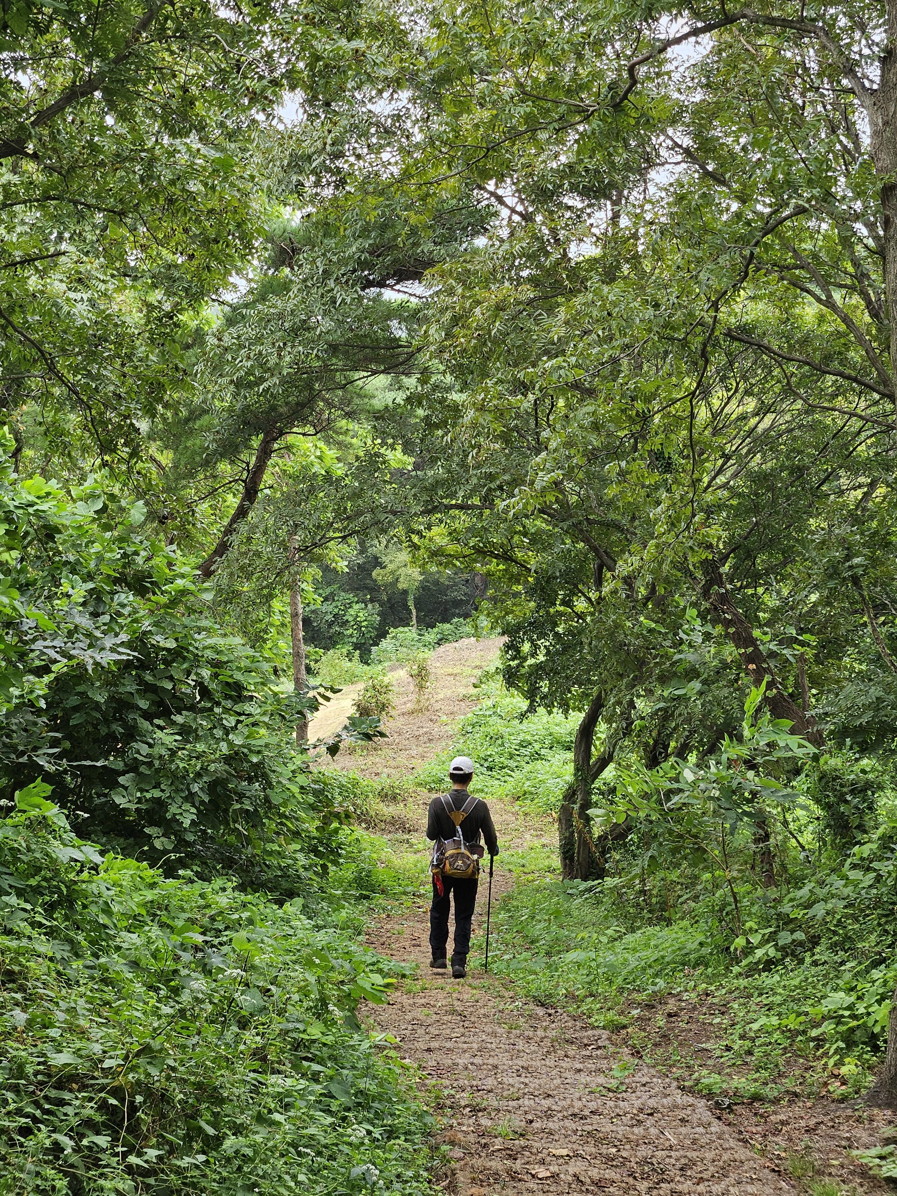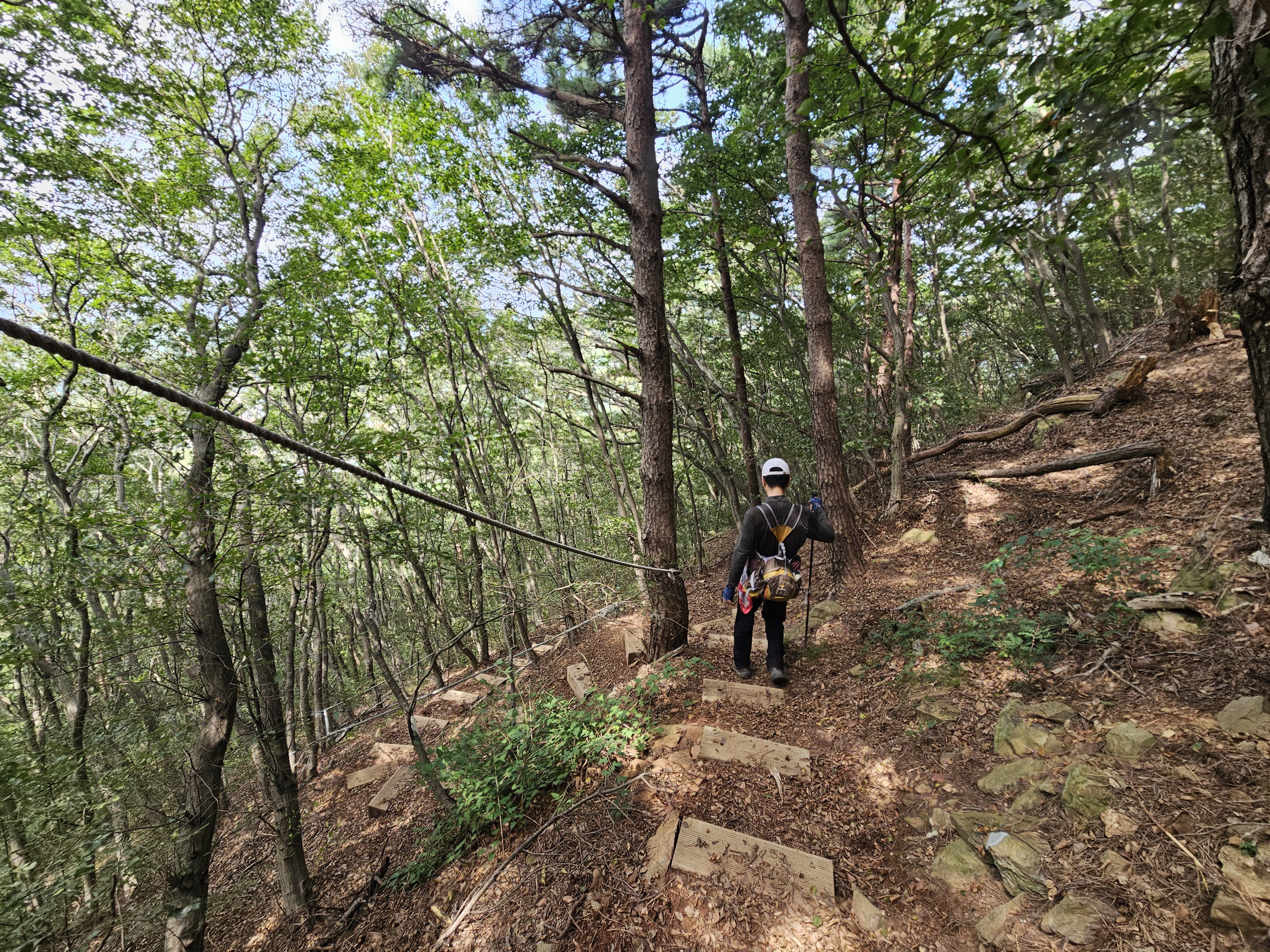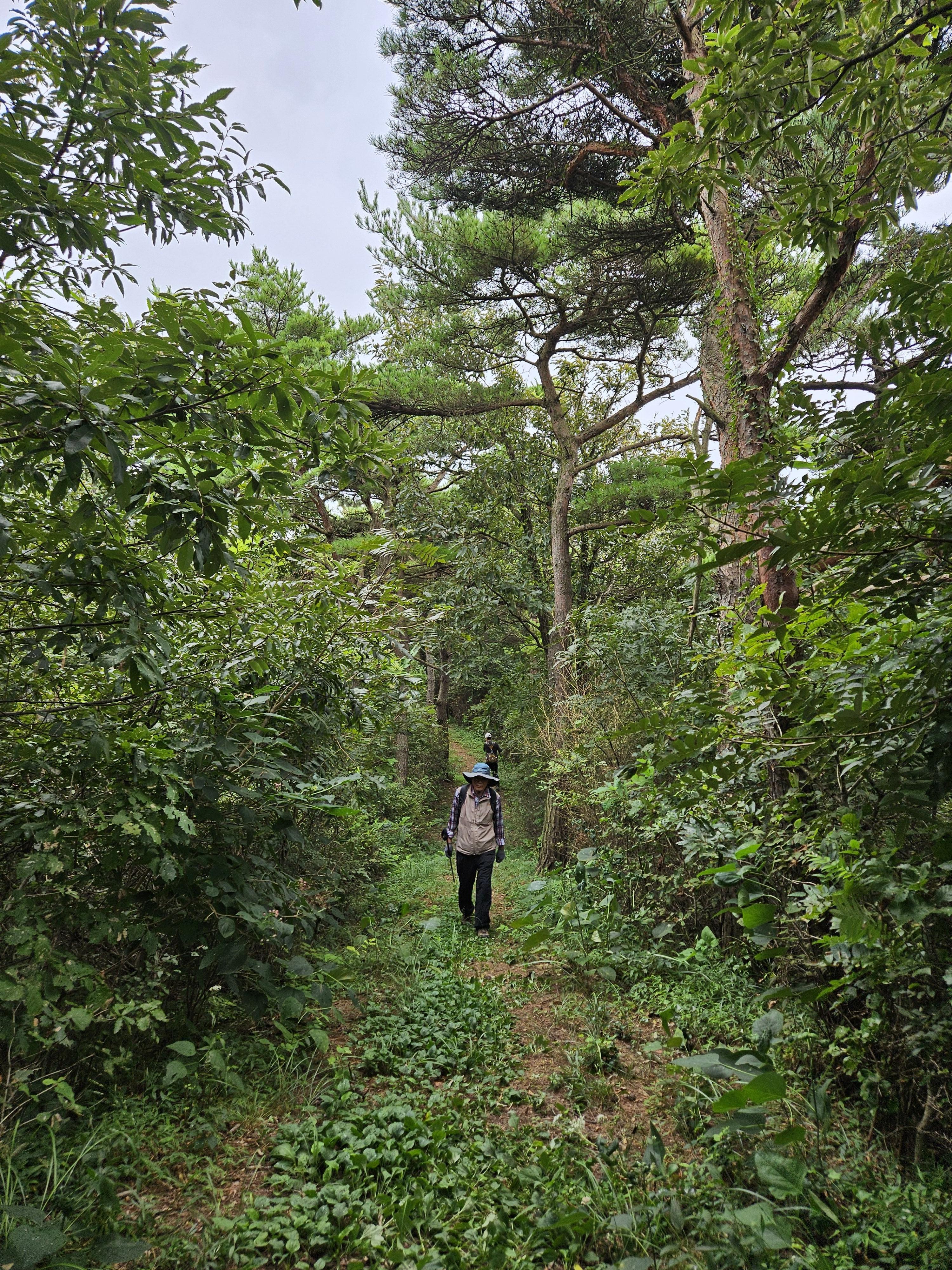 현재 비가 막 쏟아지고 있었고 테크길로 가려 했는데 주민이 테크끝에 정자에서 길이 끊어졌다고 해서 포기하고...
