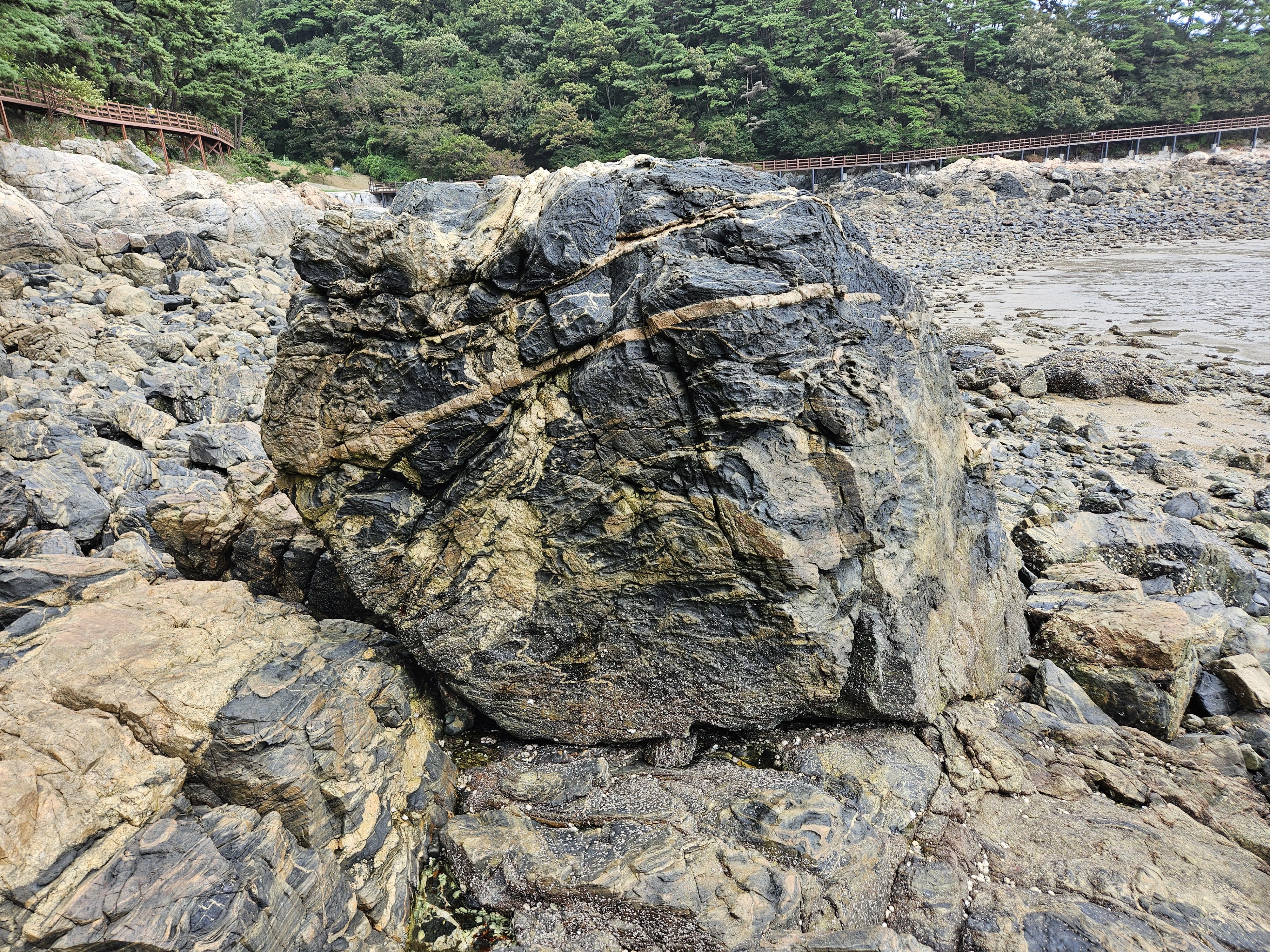 검은빛 암석 일대가 모두 *한반도 최고령암석* 이라고 합니다.