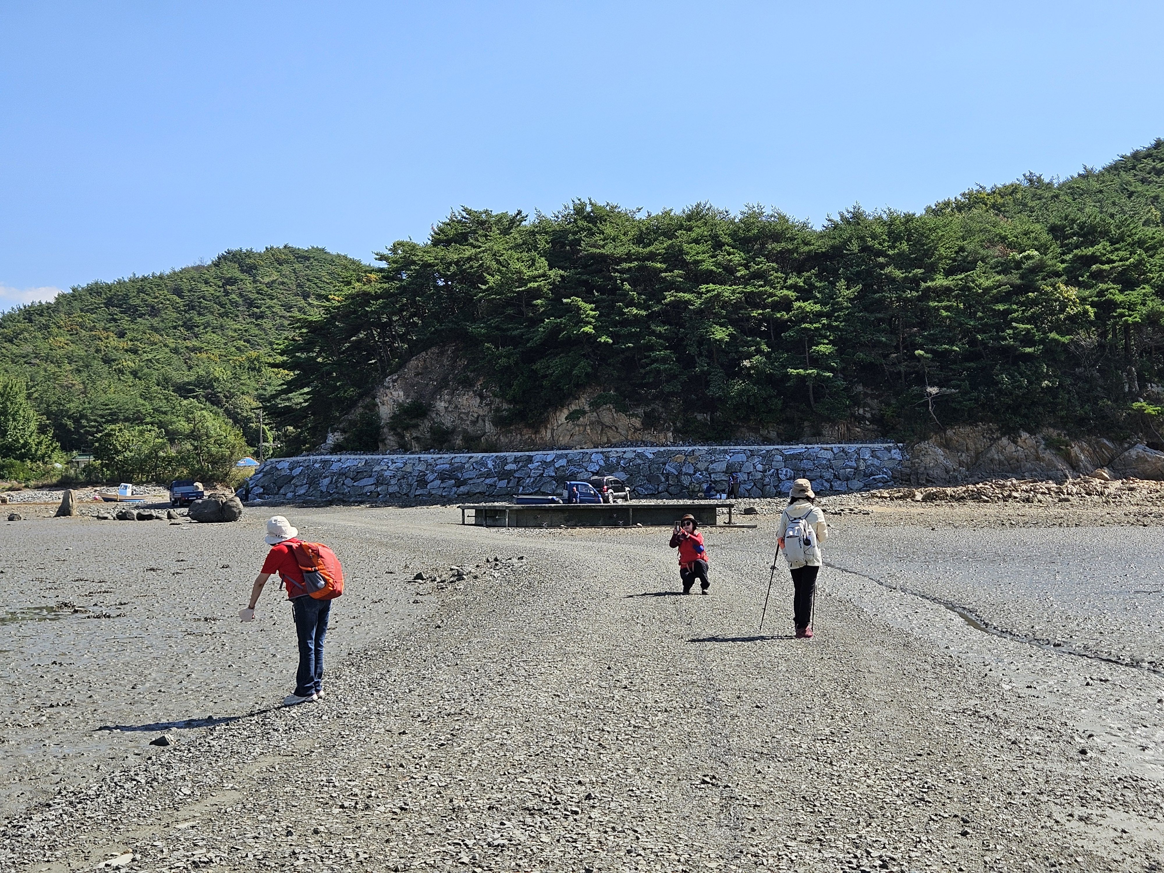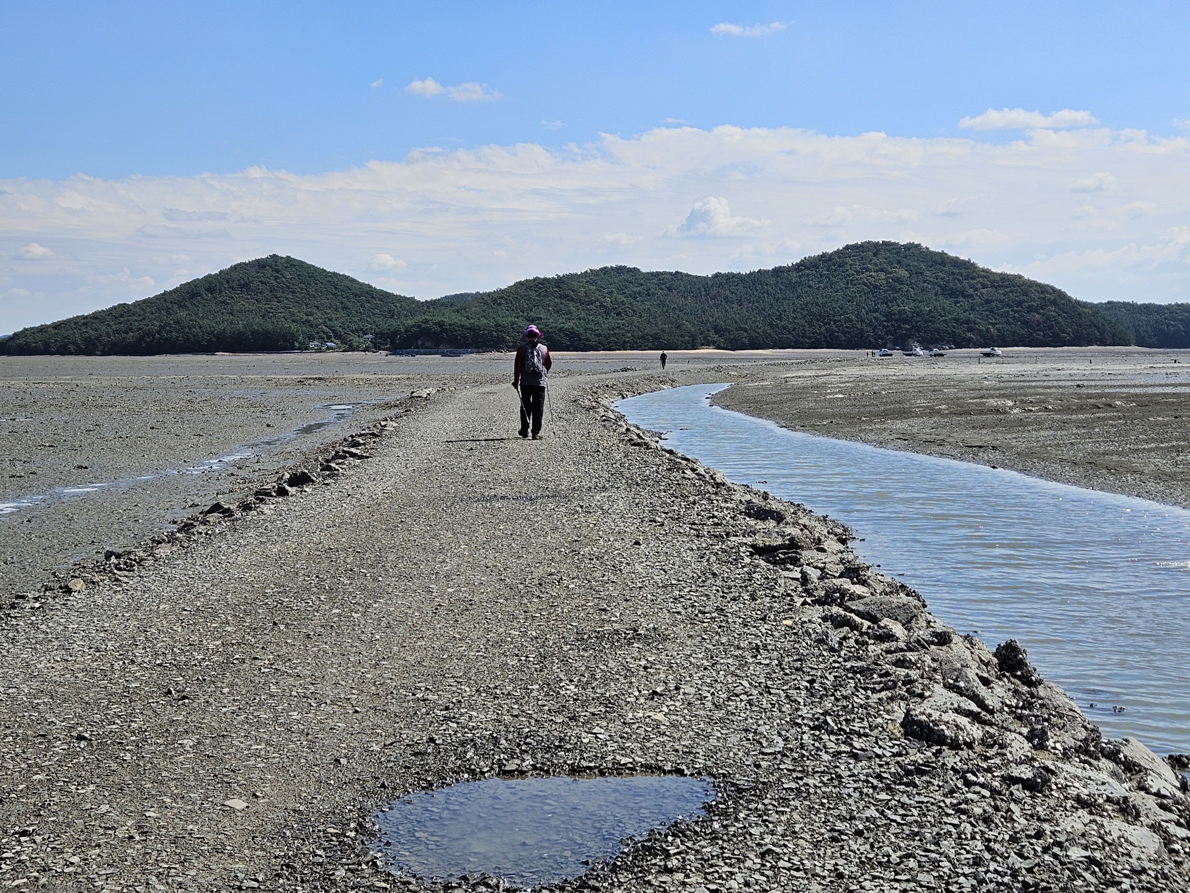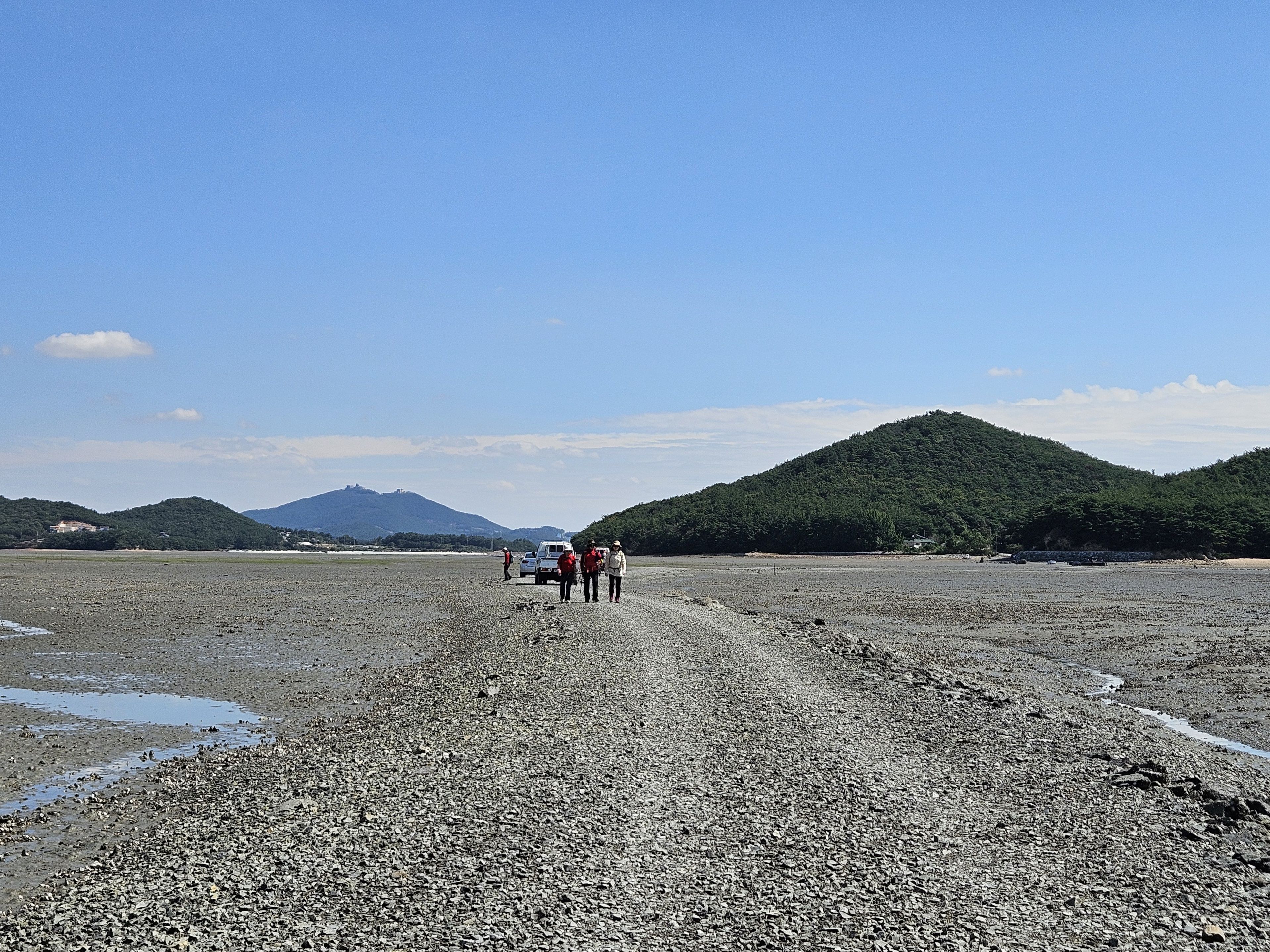 섬에 갇일것 같아 부지런히 걷습니다.