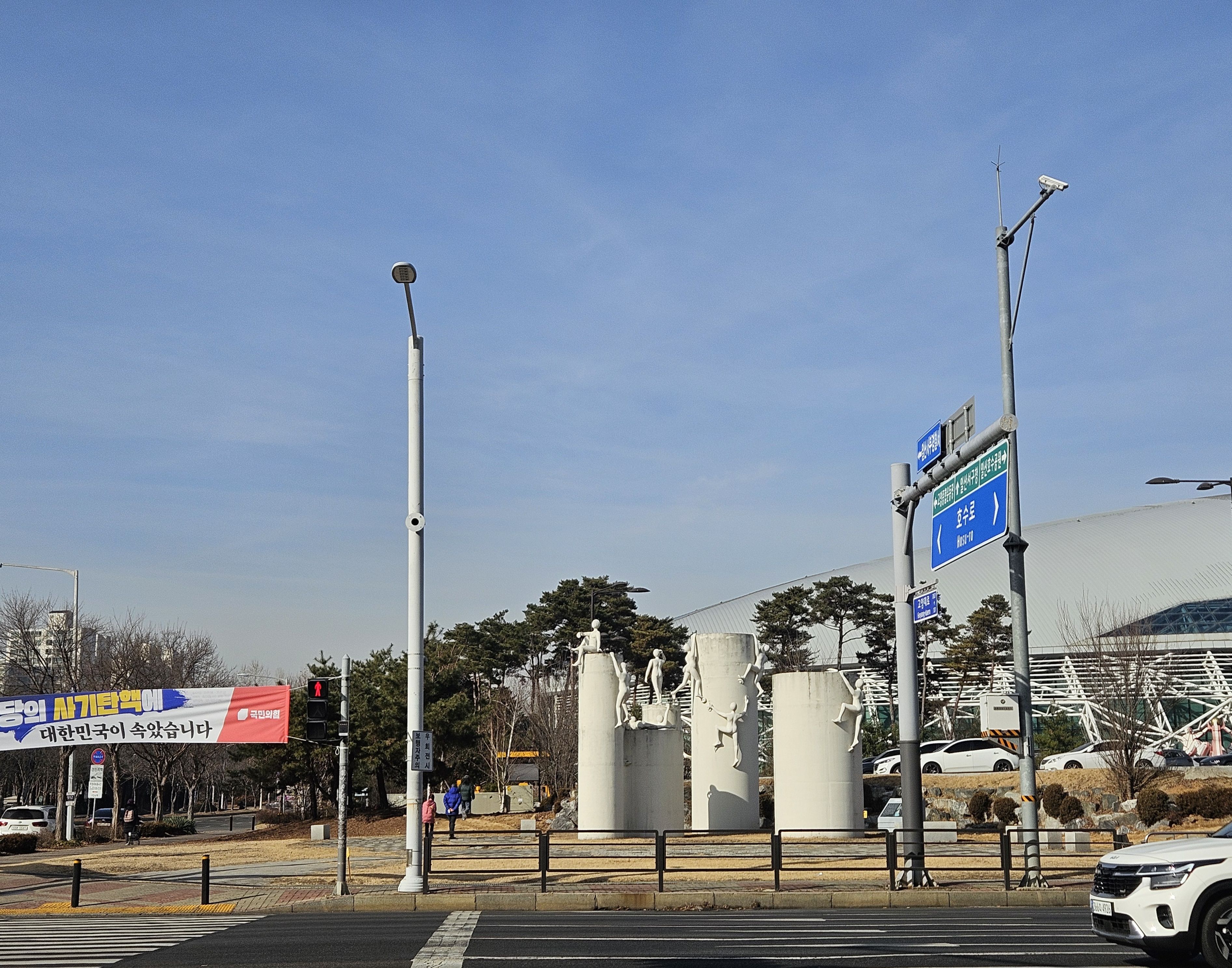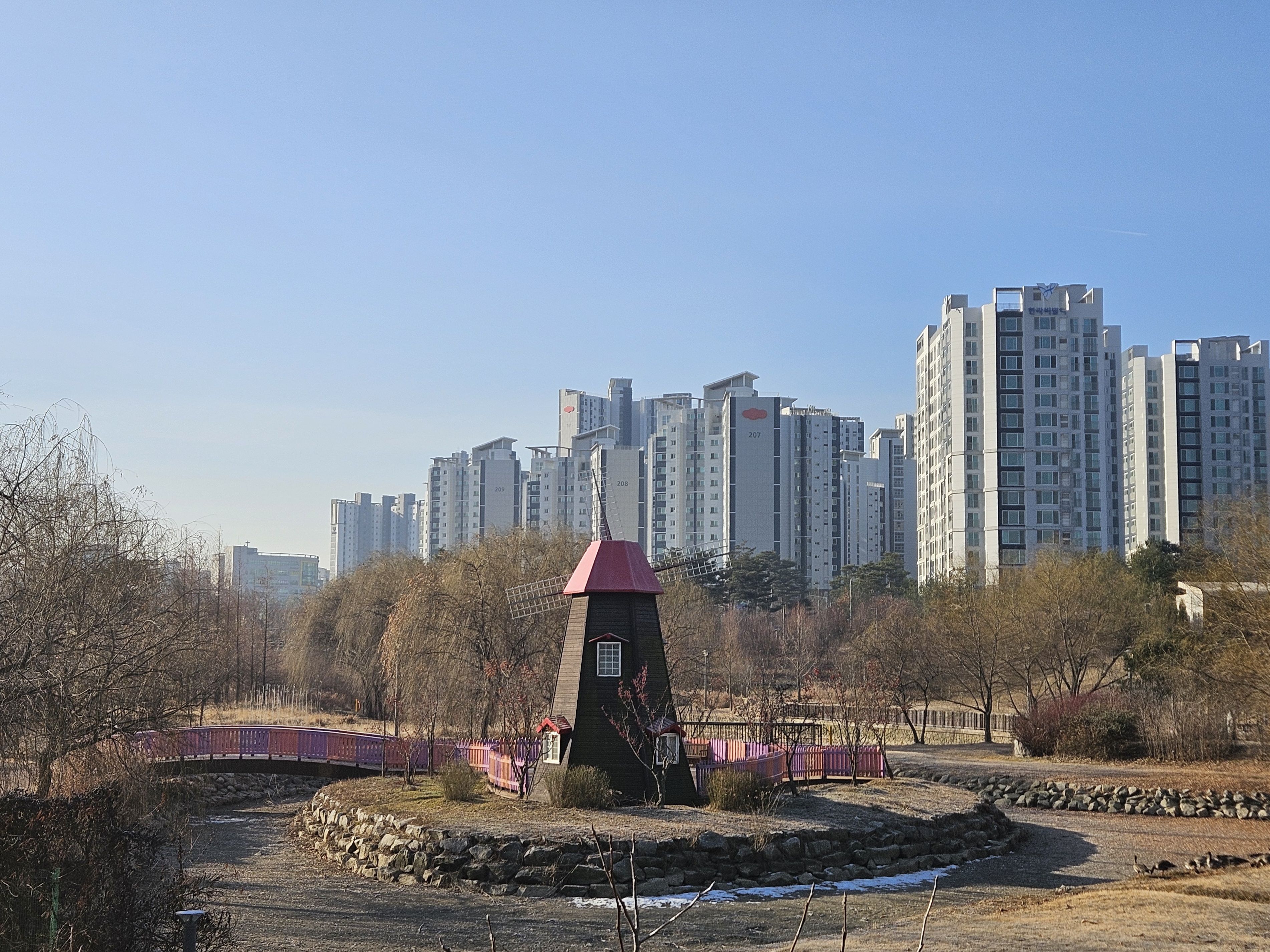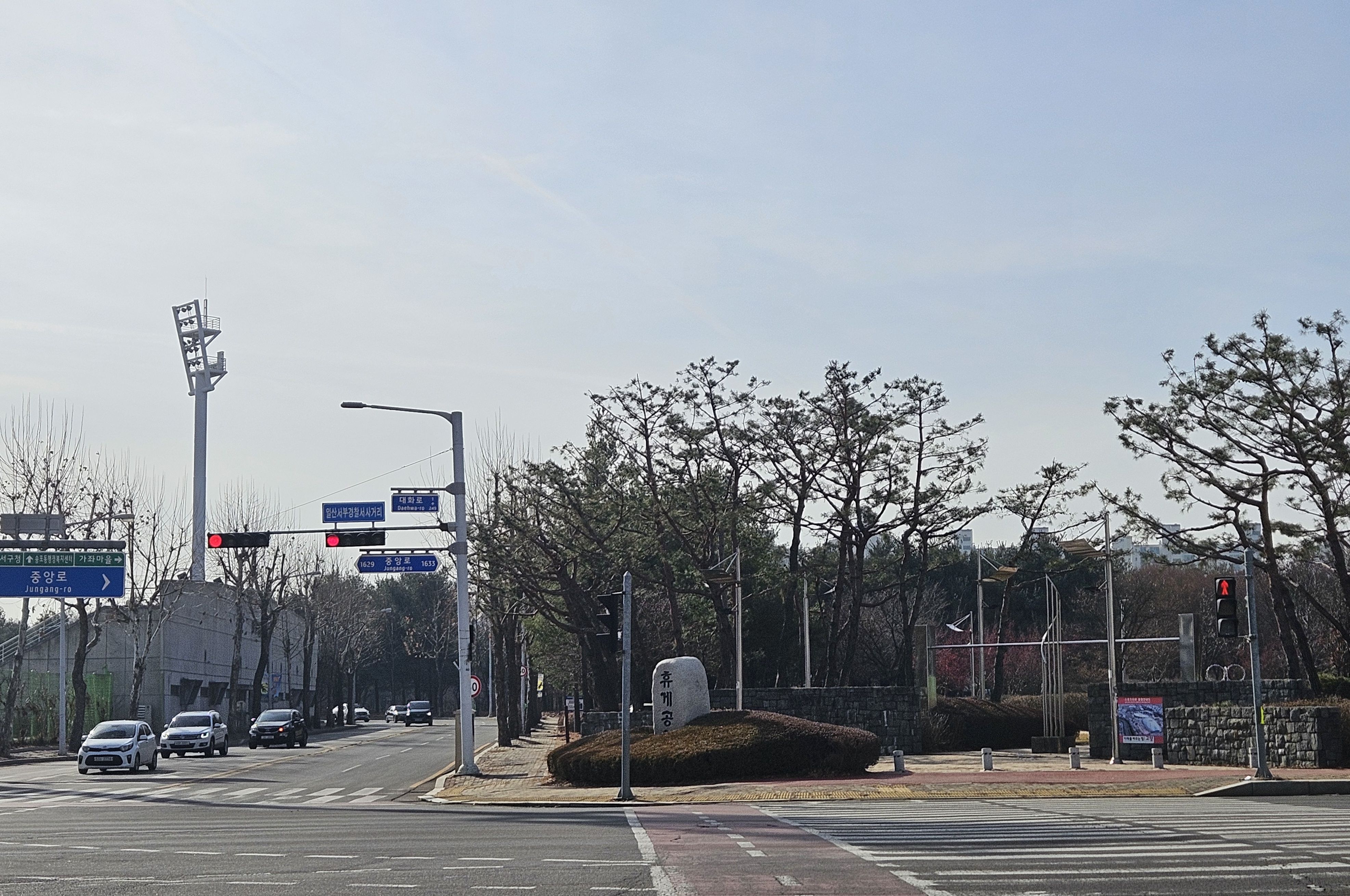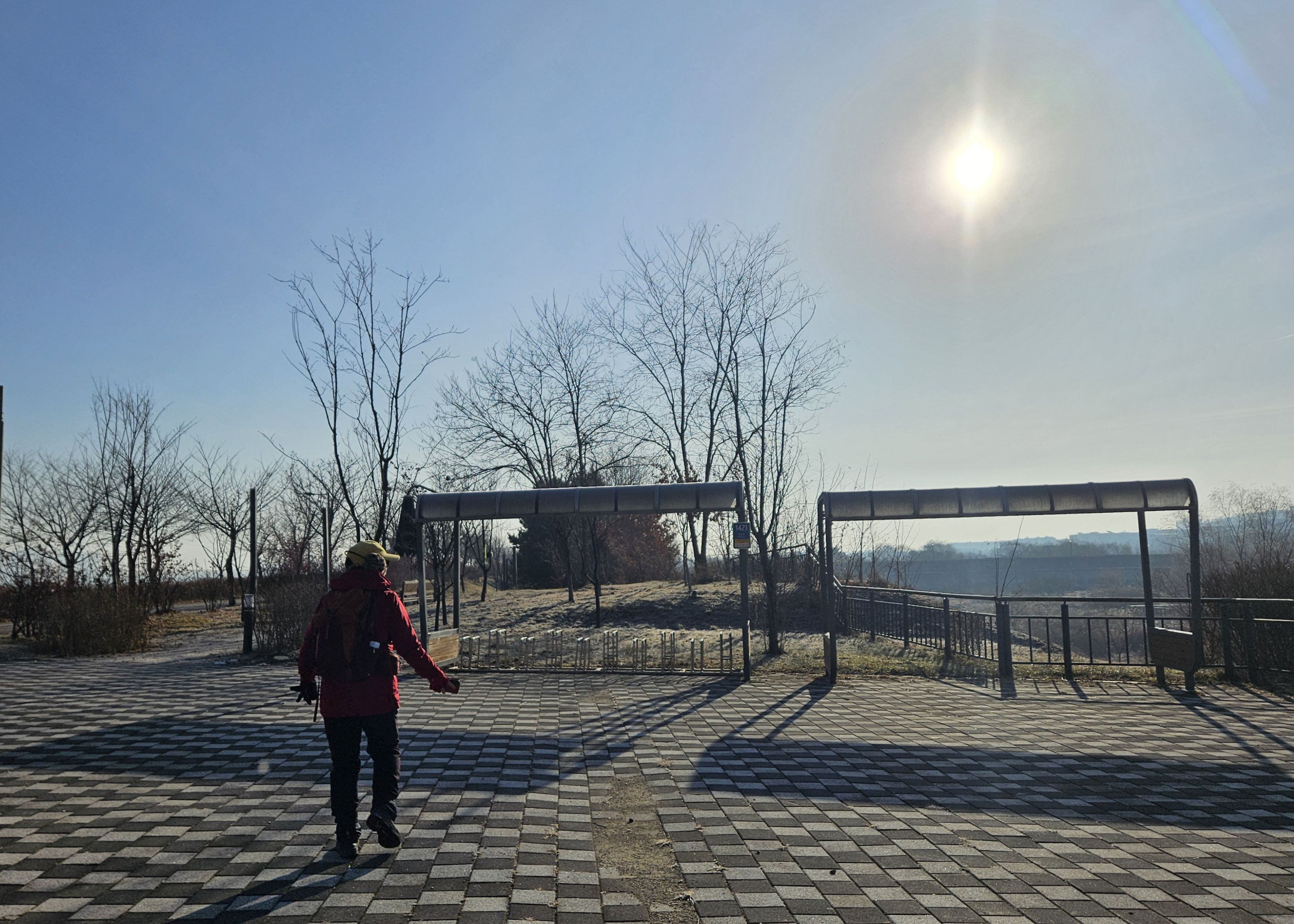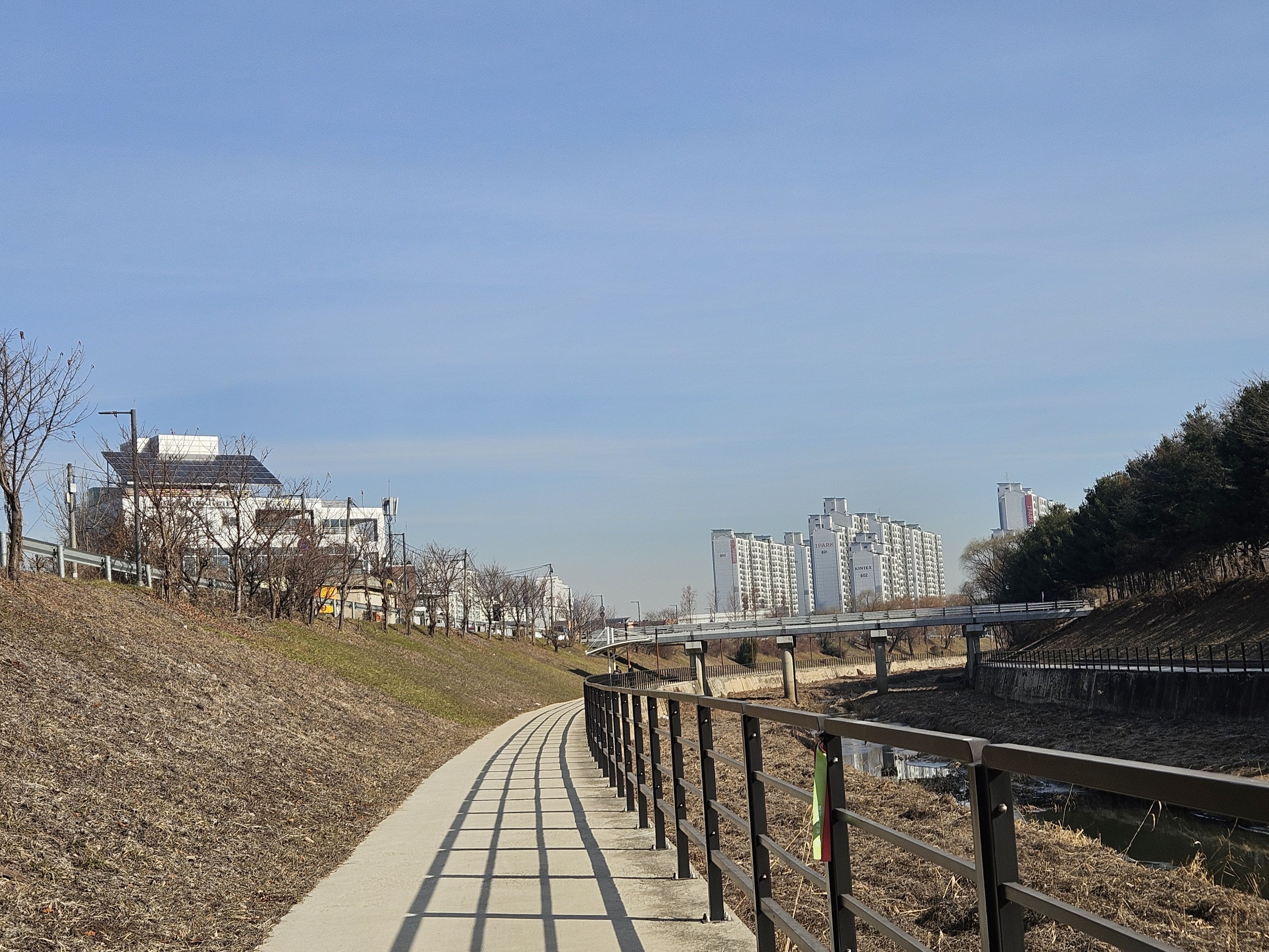 그나마 매서운 날씨 아니였기에 천만다행 이란 생각 절로절로 되새기며 대교종점 오니 자유로.. 시원스럽게 질주하는 자동차가 부러웠답니다. 나도 자동차로 달리고 싶었습니다. 고양시 접어들어 시내길.수변길 걷다보니 휴게공원 도착... 식사 후