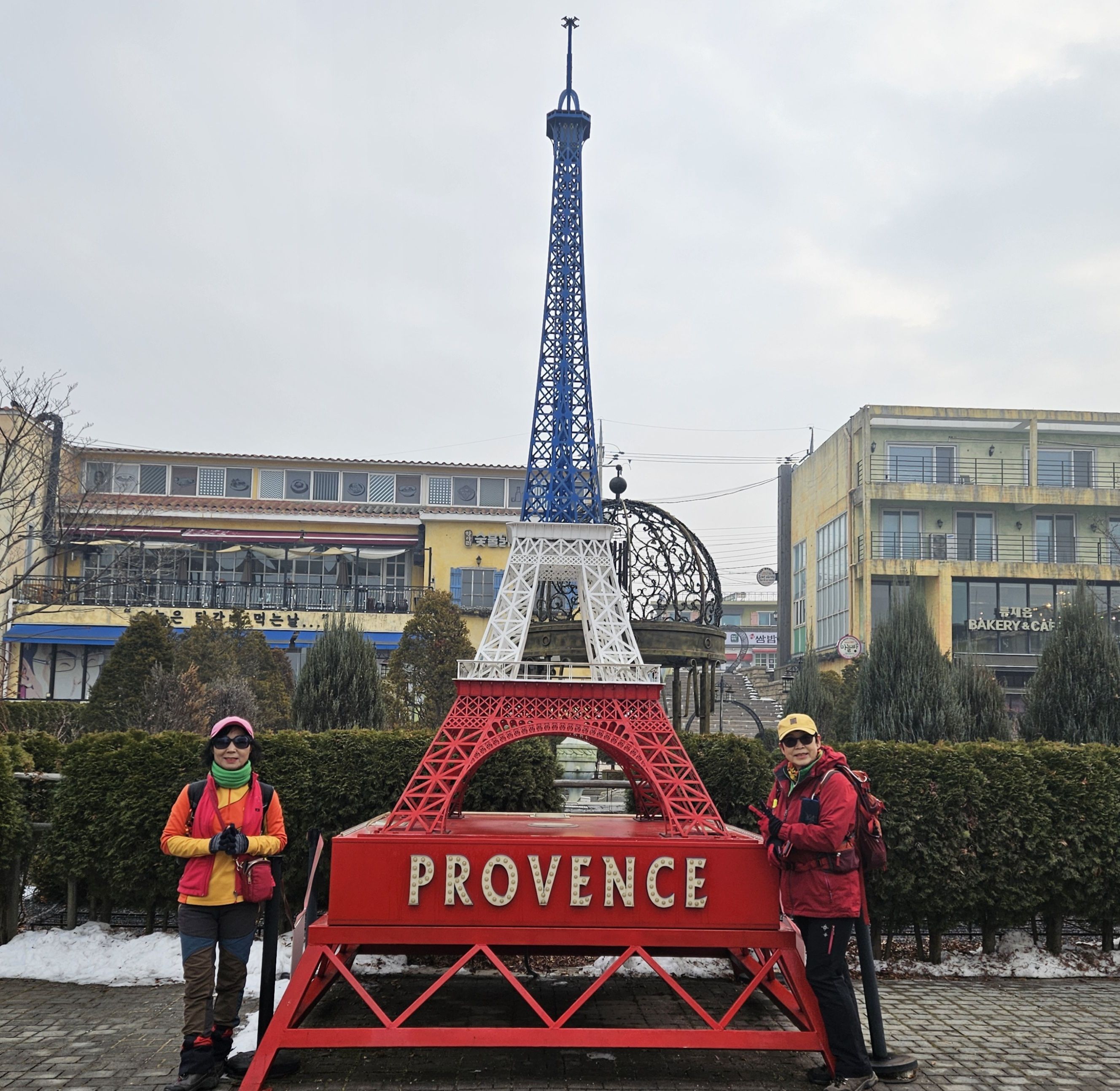 35분 후 6코스 시점 도착. 걷기 시작 했습니다. 약 10분 후 *프로방스 마을* 도착 야심차게 관광하기로 했지만 여기 또한 오픈시간대 가 아니라서 모두 잠잠....여기저기 구경거리 많았지만 모두 불발~~~나름 조형물만 대충 찍고 끝~~~