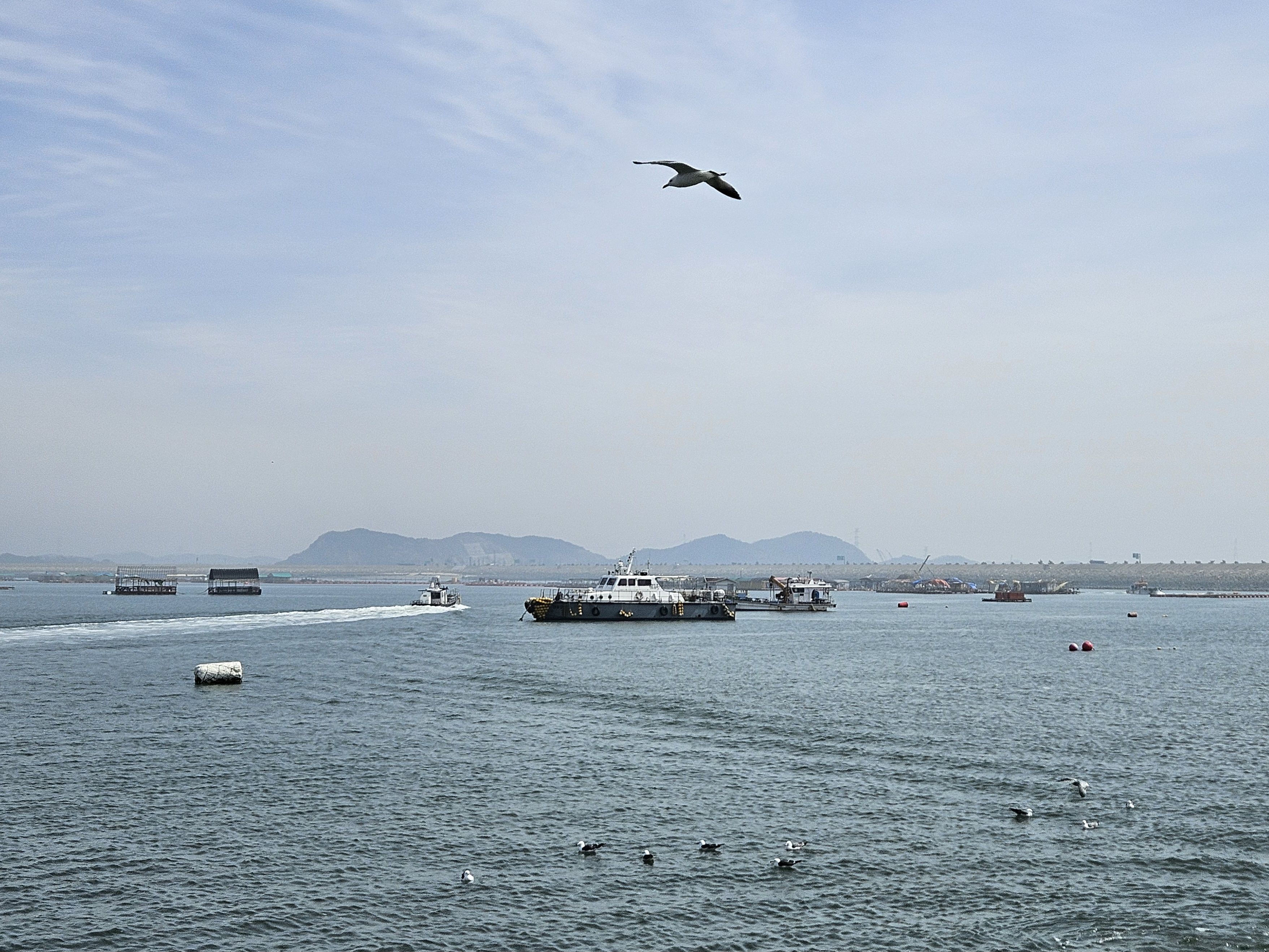 중국 배 라고 하는데 일정한 간격을 두고 여섯대 정도 지나갔습니다.
