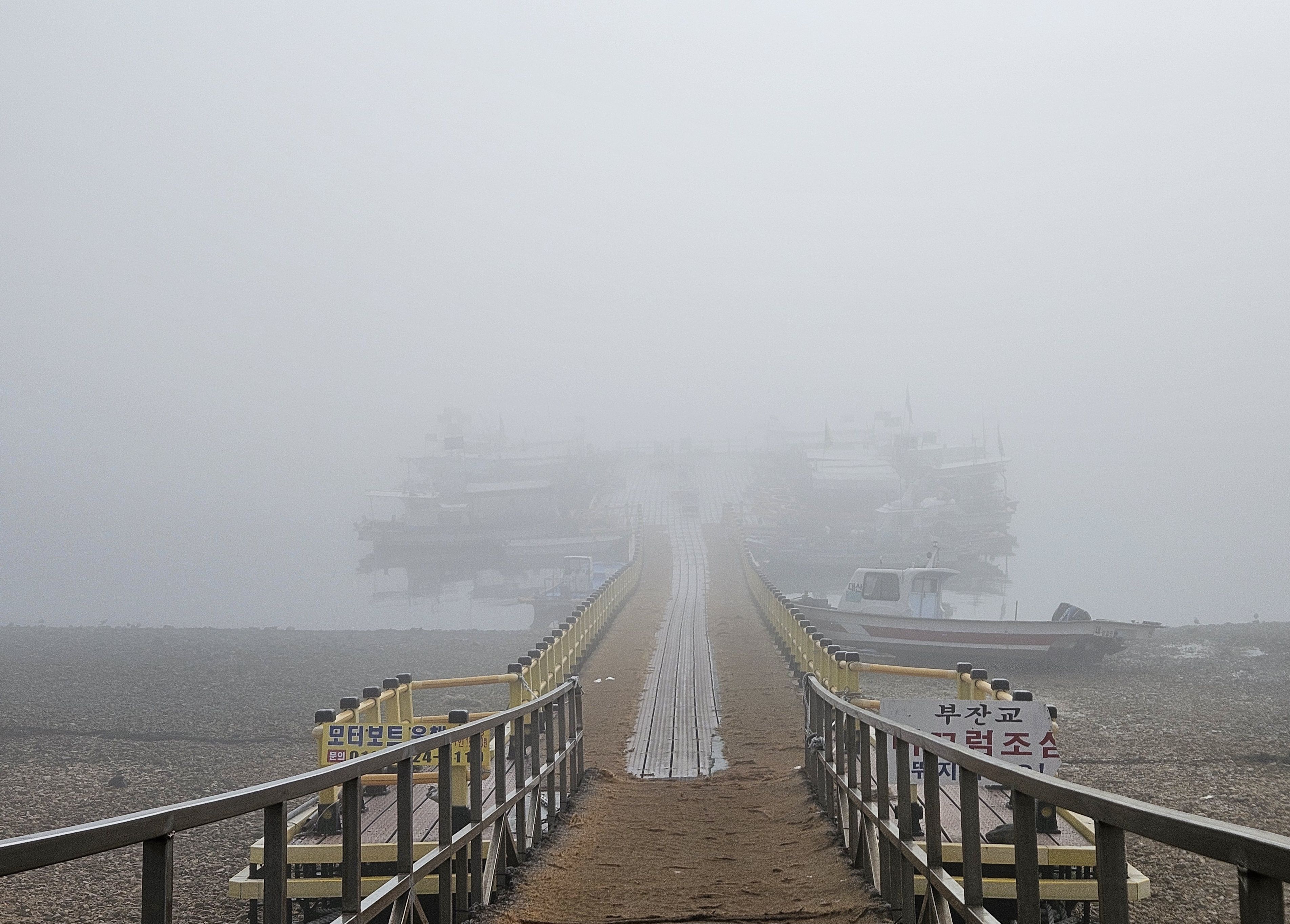 짙은 안개속으로 9시 유람선 결항 (무한대기 랍니다.)