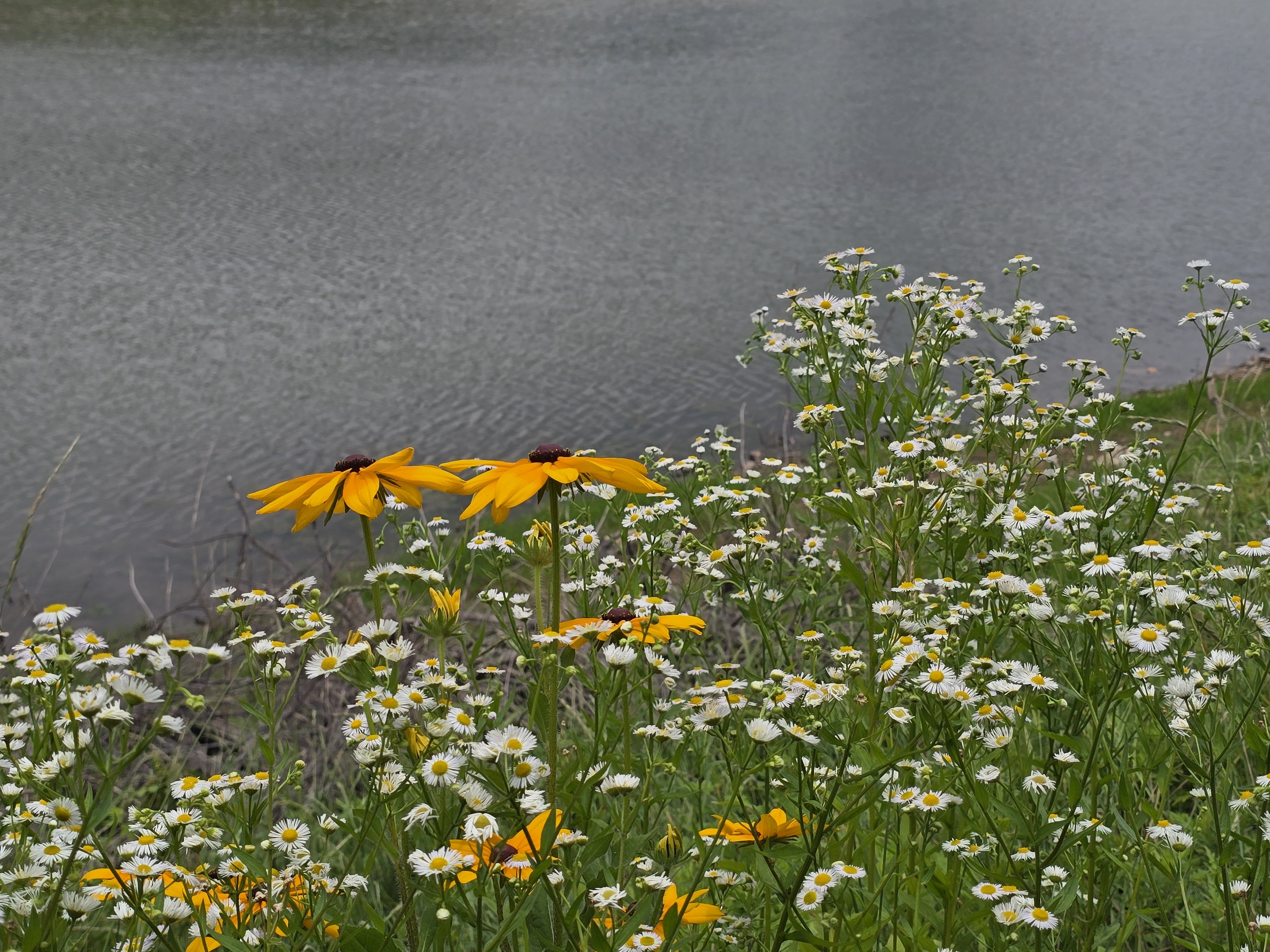 용설호수 주변 개망초꽃 천국 아름다움을 더 빛나게 해 주었습니다.