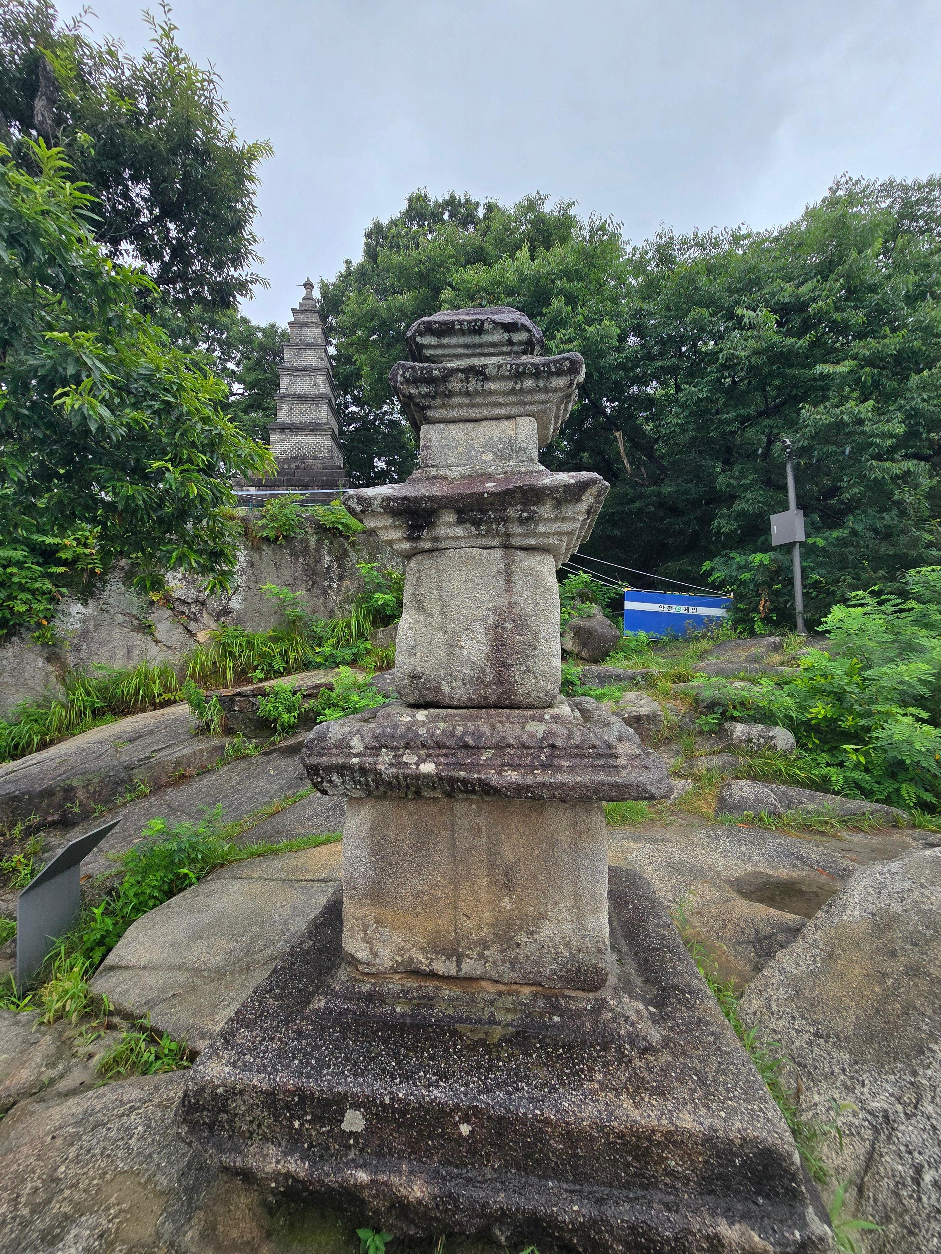 삼층석탑 (화강암으로 깍아 만든 암반에 세워진 부처님의사리를 모신 무덤 양식에서 기원한것)