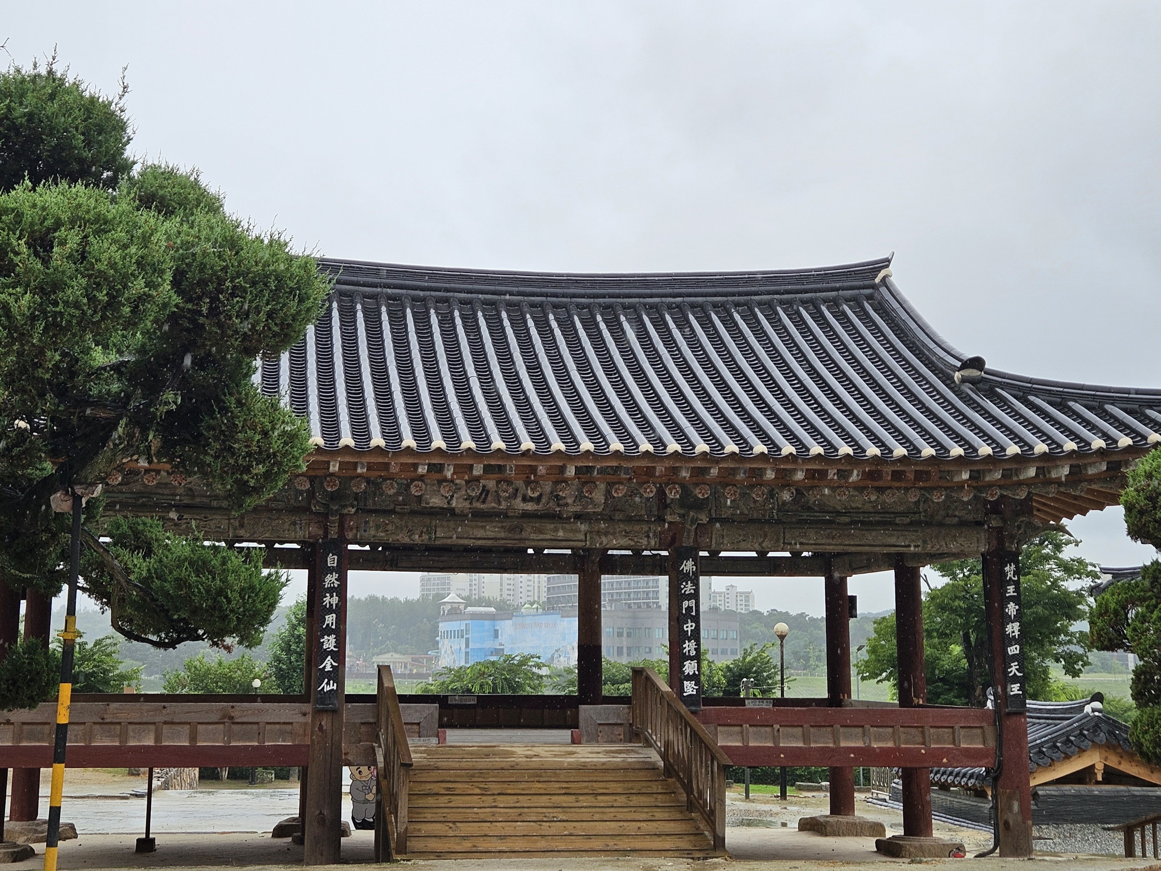 출렁다리 가려는데 비가 무지 많이 내립니다.