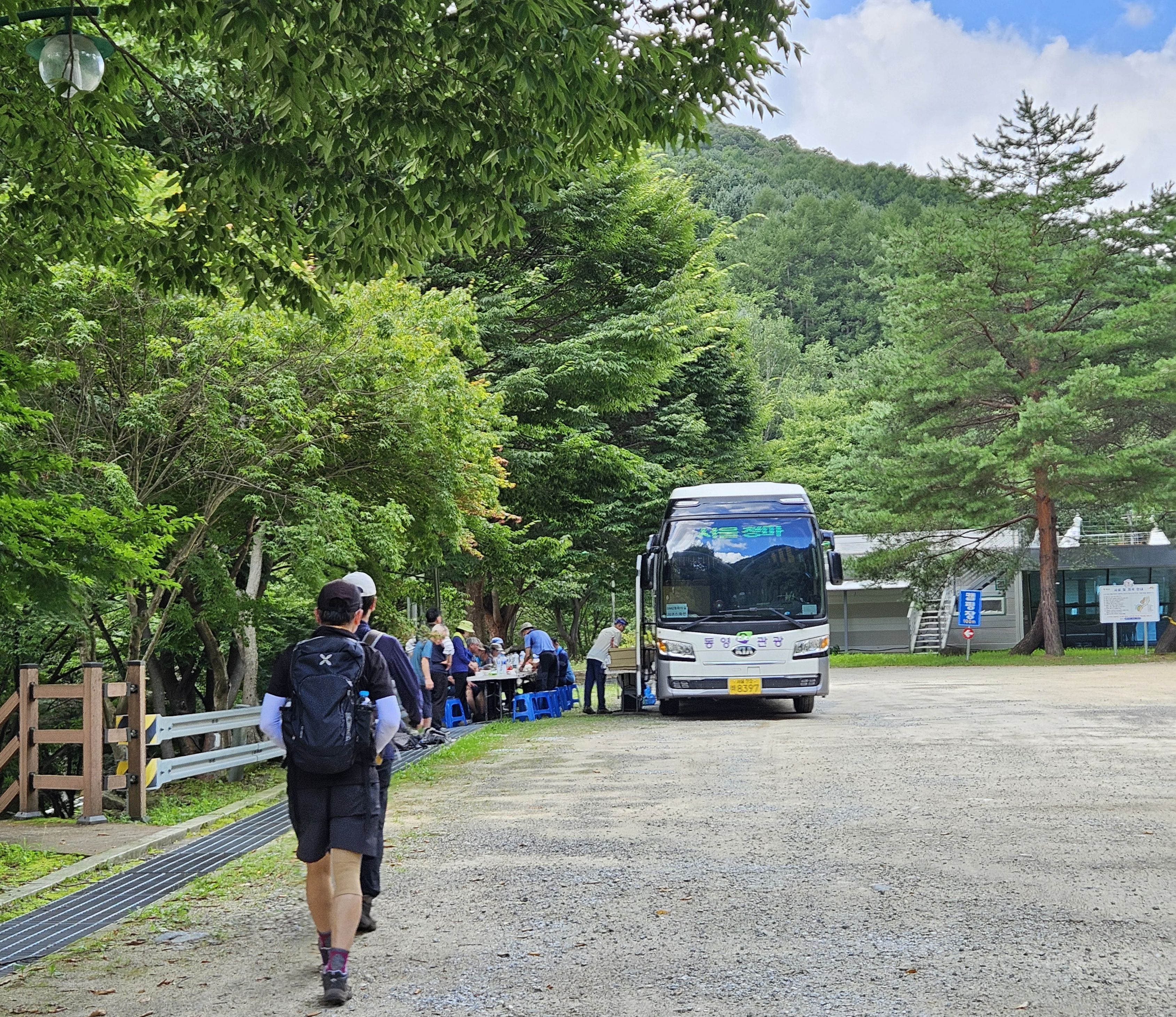 2년전 평화누리길 걸을땐 (만산령) 올라가는데 거의 초죽음 이었던 기억으로 걱정을 많이 했었는데 평화의길 은 코스를 짧게 잡아주어 너무나 다행으로 큰 힘 들이지 않고 만산령 올랐습니다. 이후는 모두 내리막길 이었기에 회원님들 모두 예정된 시간보다 훨 일찍 끝내주셨습니다. 식사도 빠르게 마치고