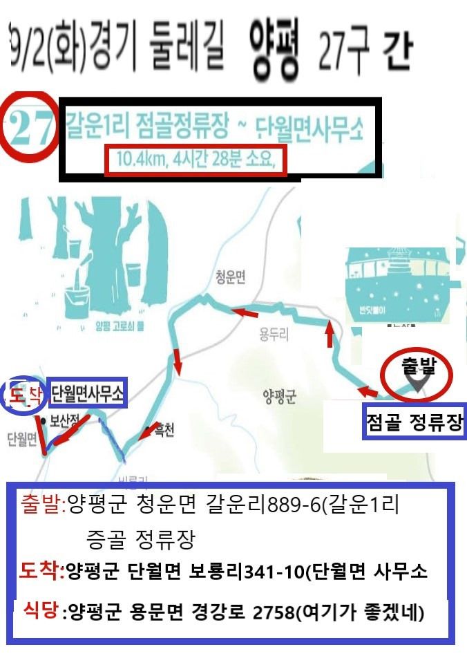 경기도 양평군 청운면 갈운리/ 단월면 면사무소앞 (갈운1리 마을-용두리-흑천-비룡리-보룡리-보산정-단월면사무소)