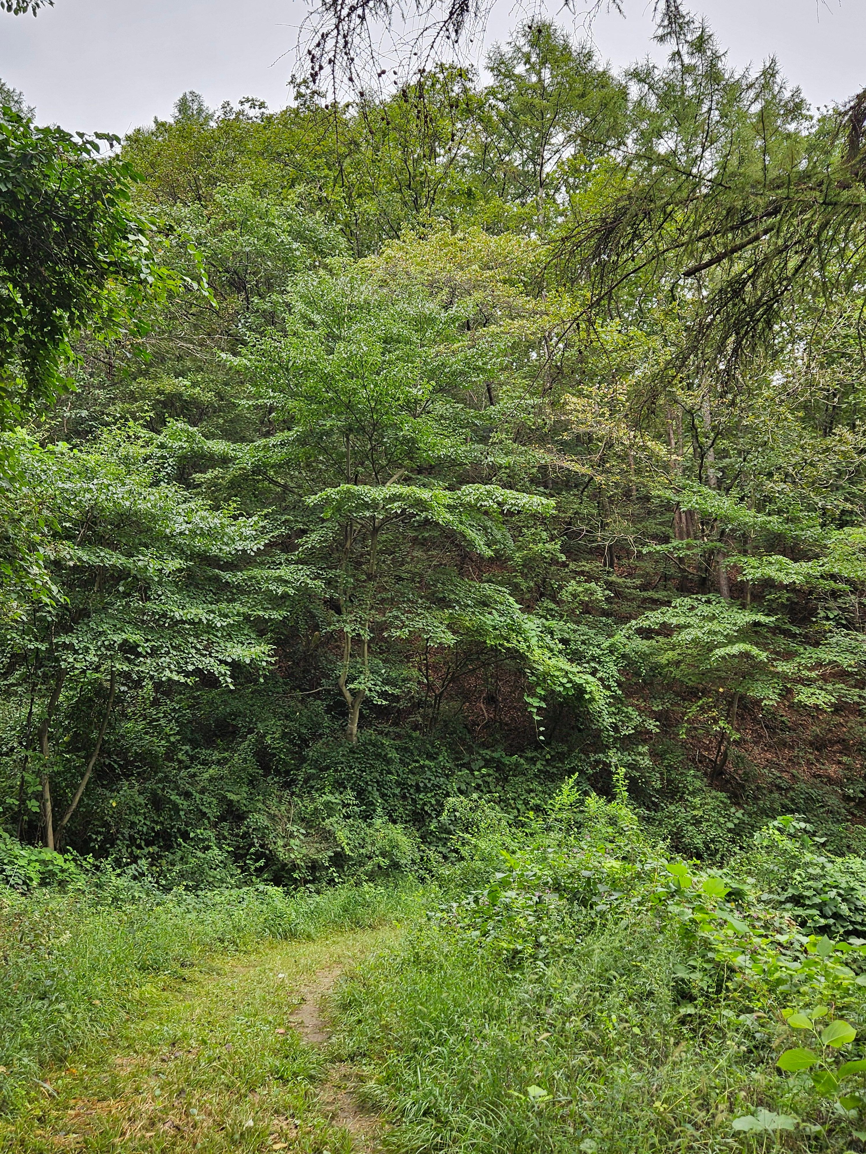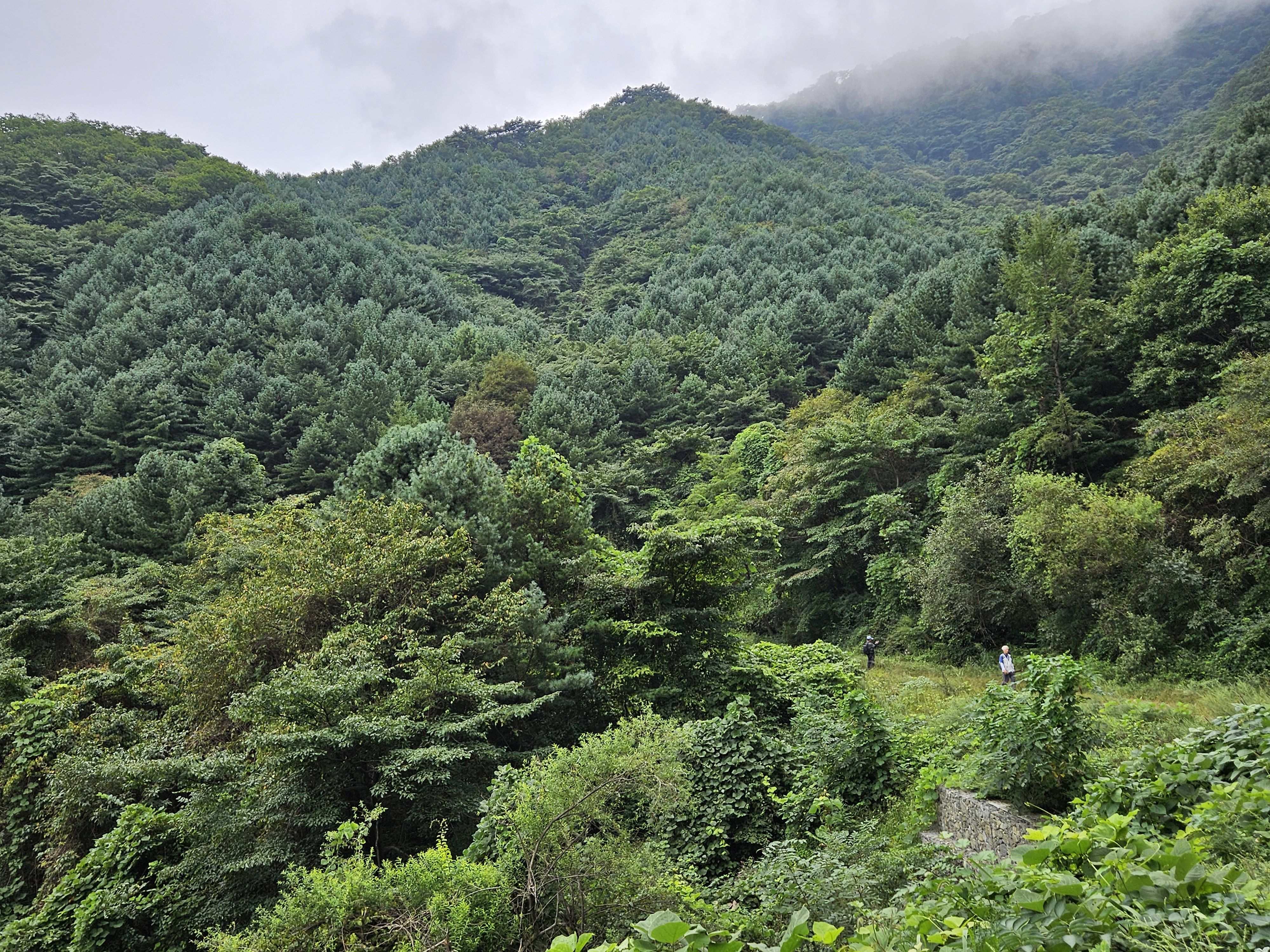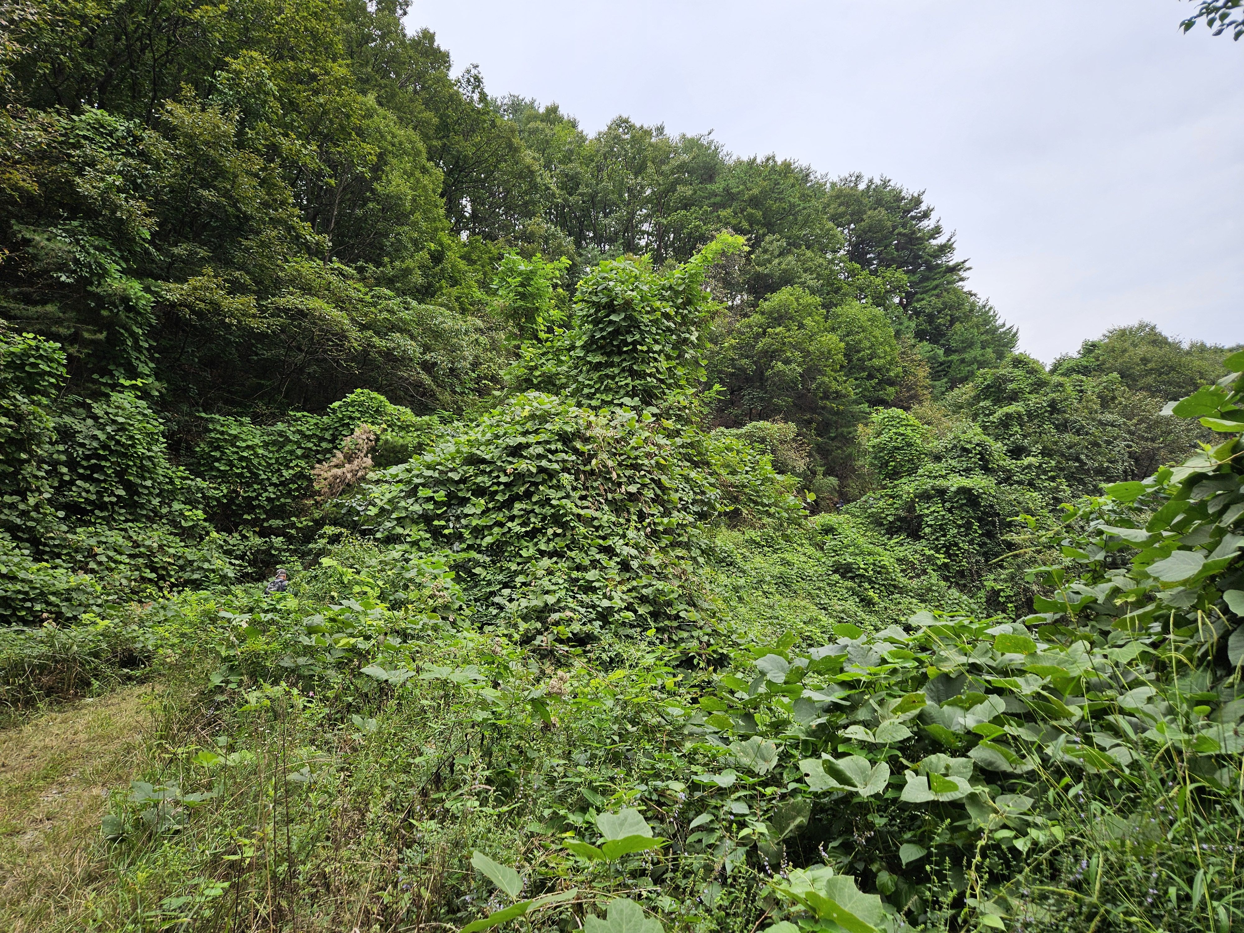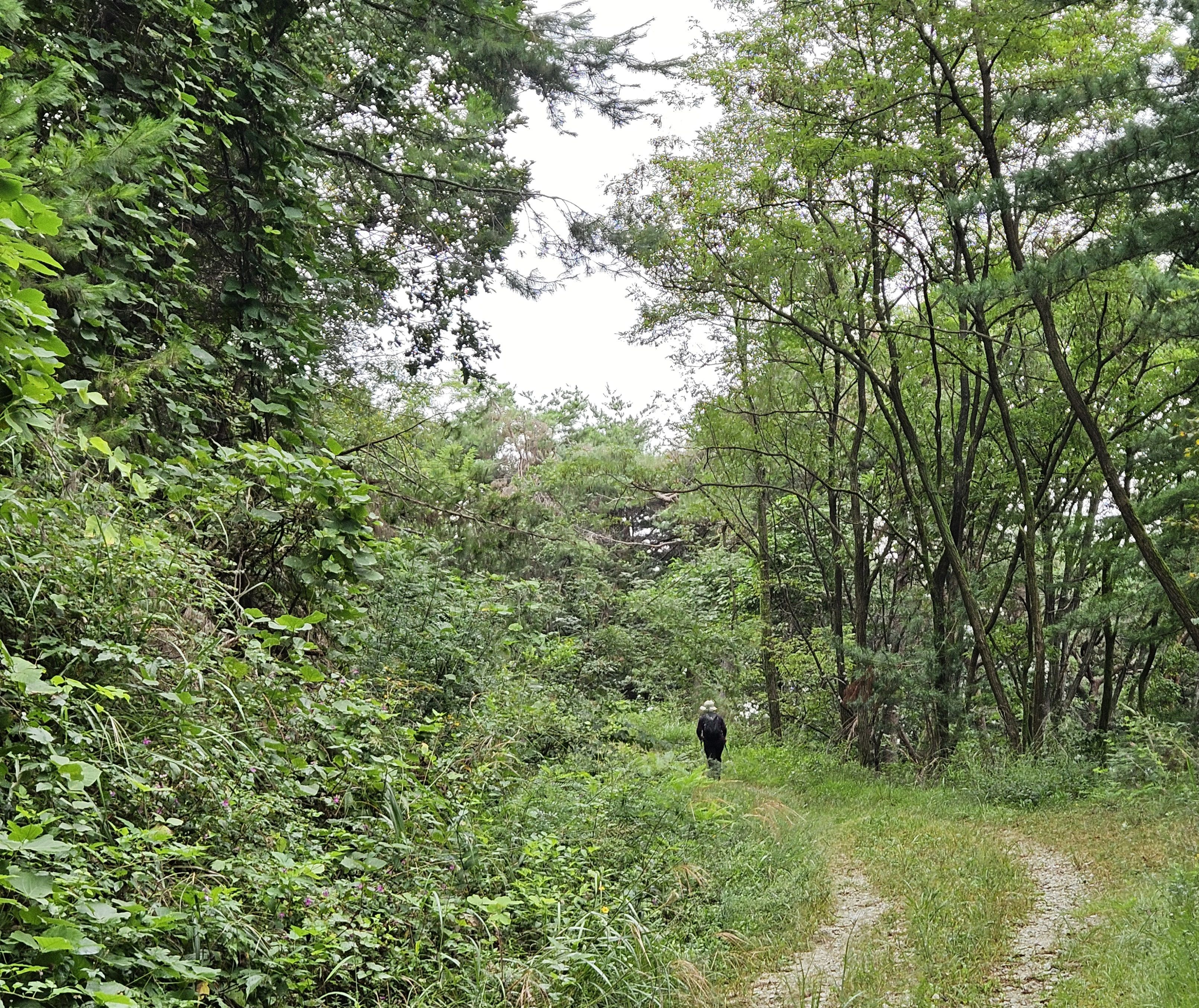 임도 오른쪽 절벽엔 잡초. 잡목이 울창합니다.