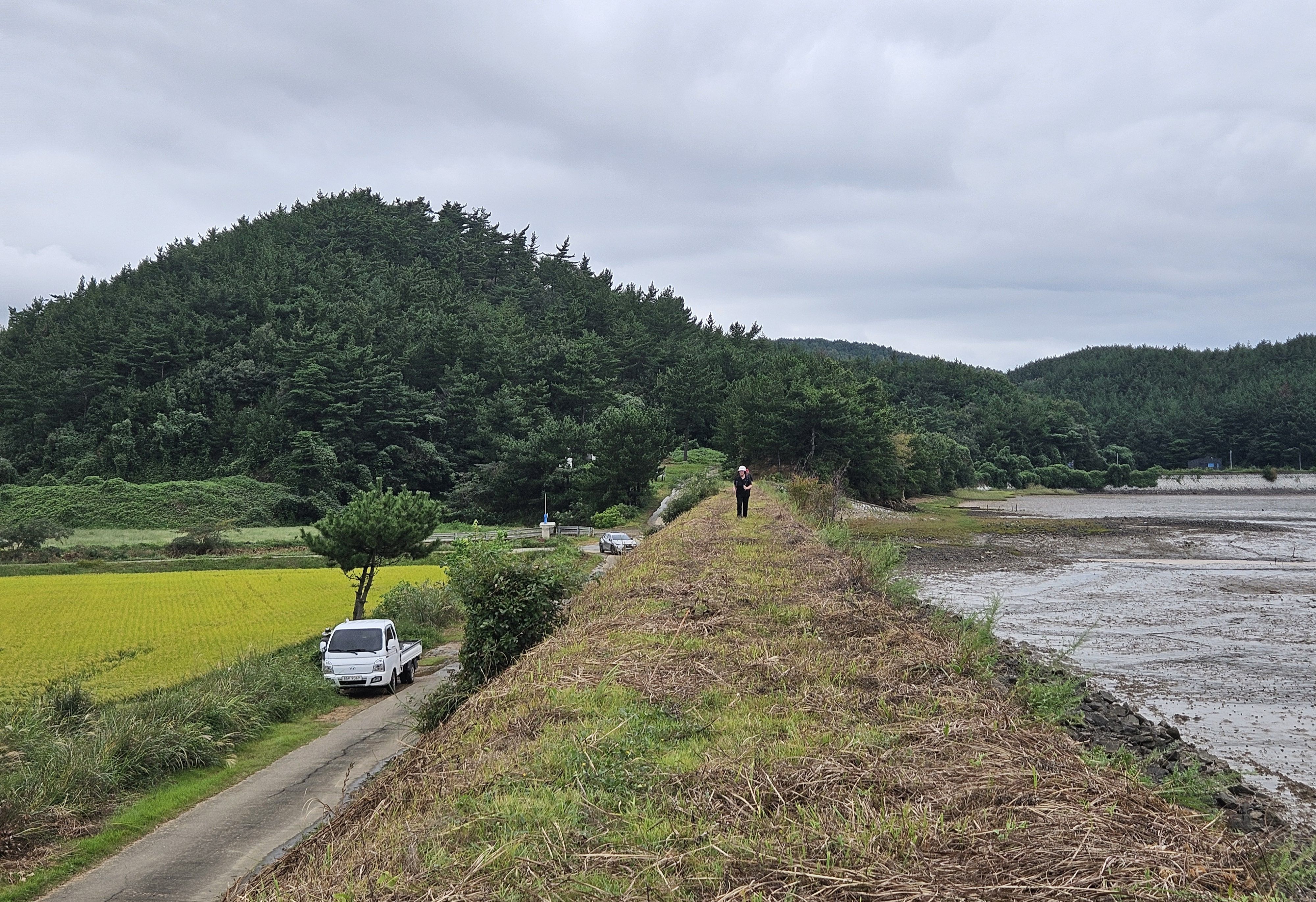제방길 왼쪽 (바다) / 누런 들판 (오른쪽) 운치가 있다고 봐요죠....