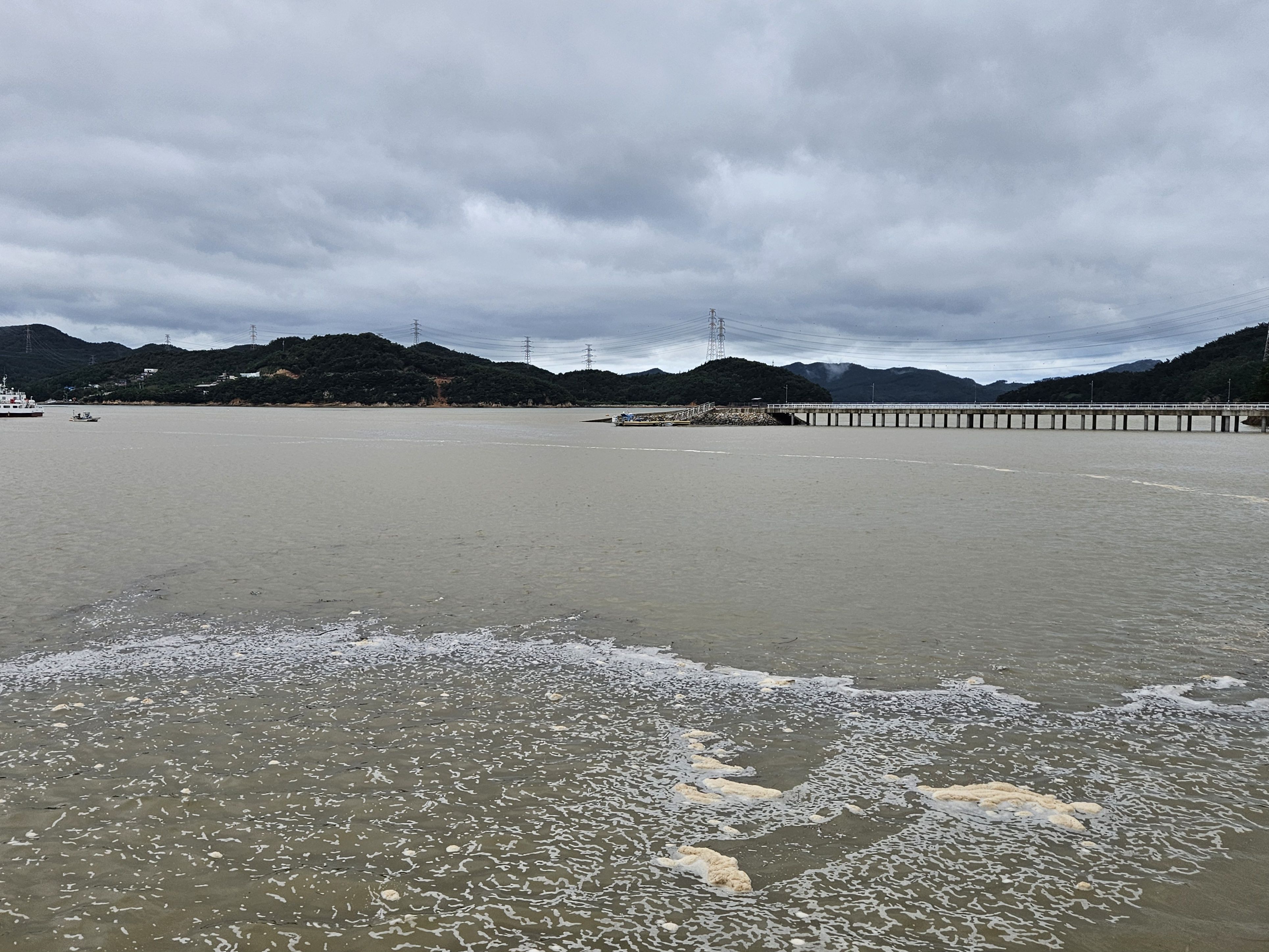 어제부터 내린 빗물 유입으로 바닷물 색깔이 이렇게 보입니다.