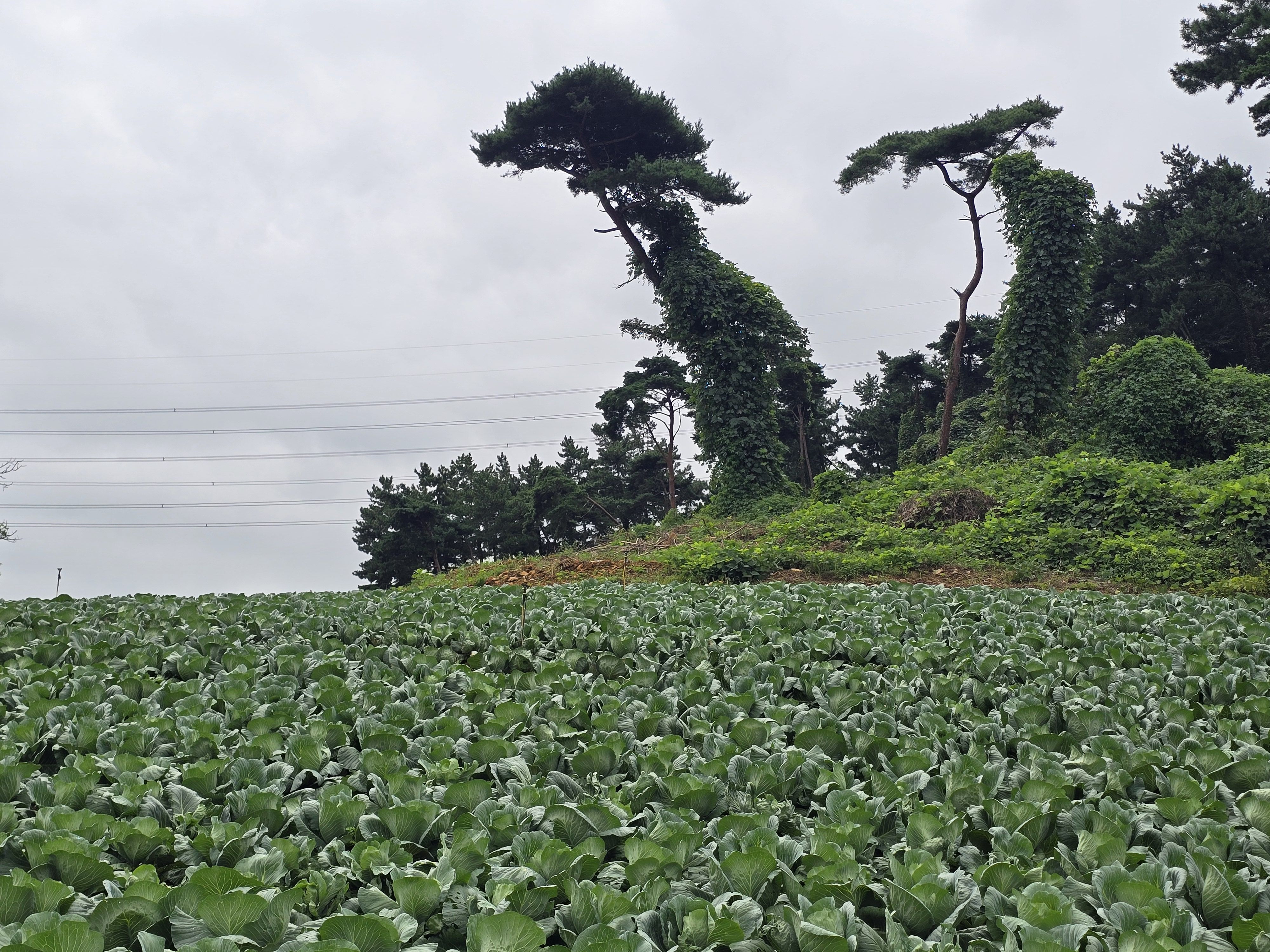 양배추밭 위 소나무는요 칡넝쿨 때문에 고문당하는중