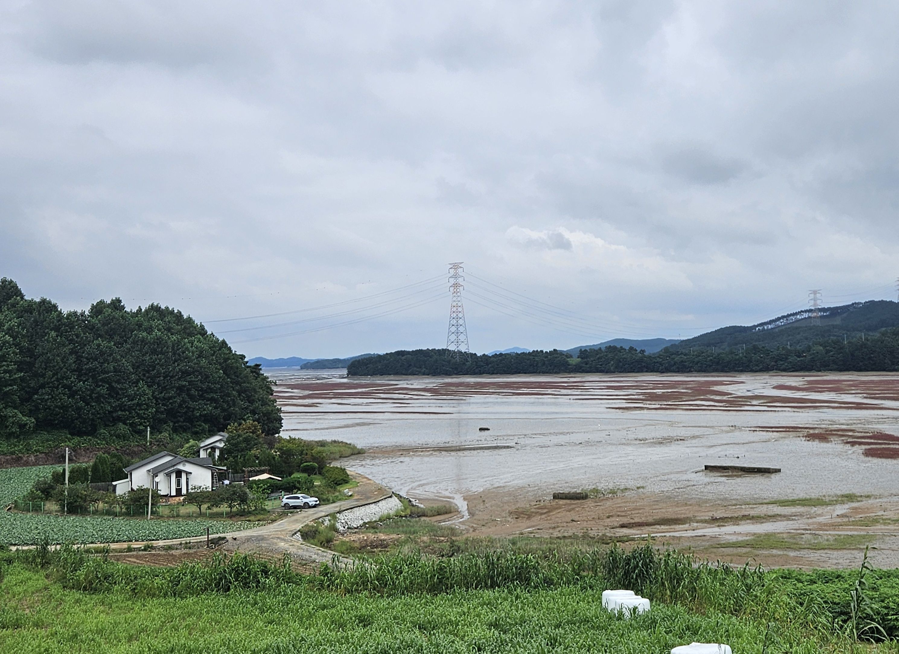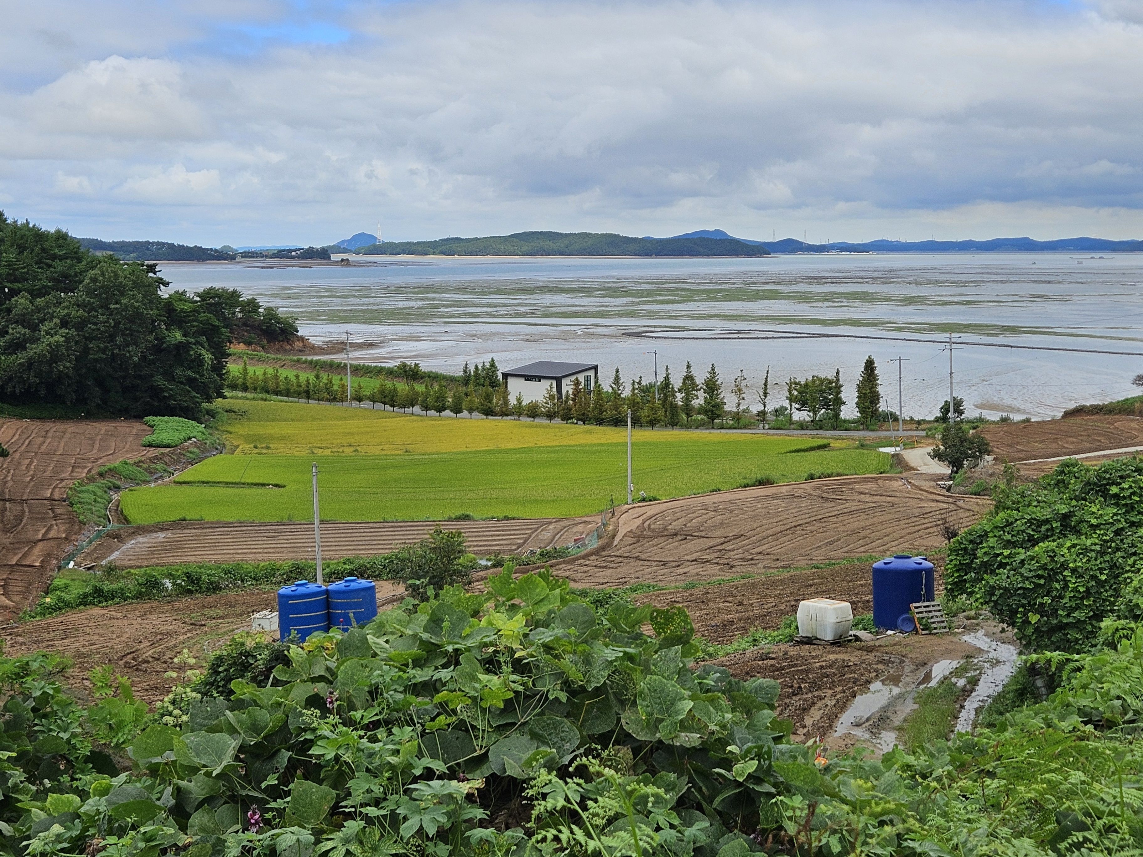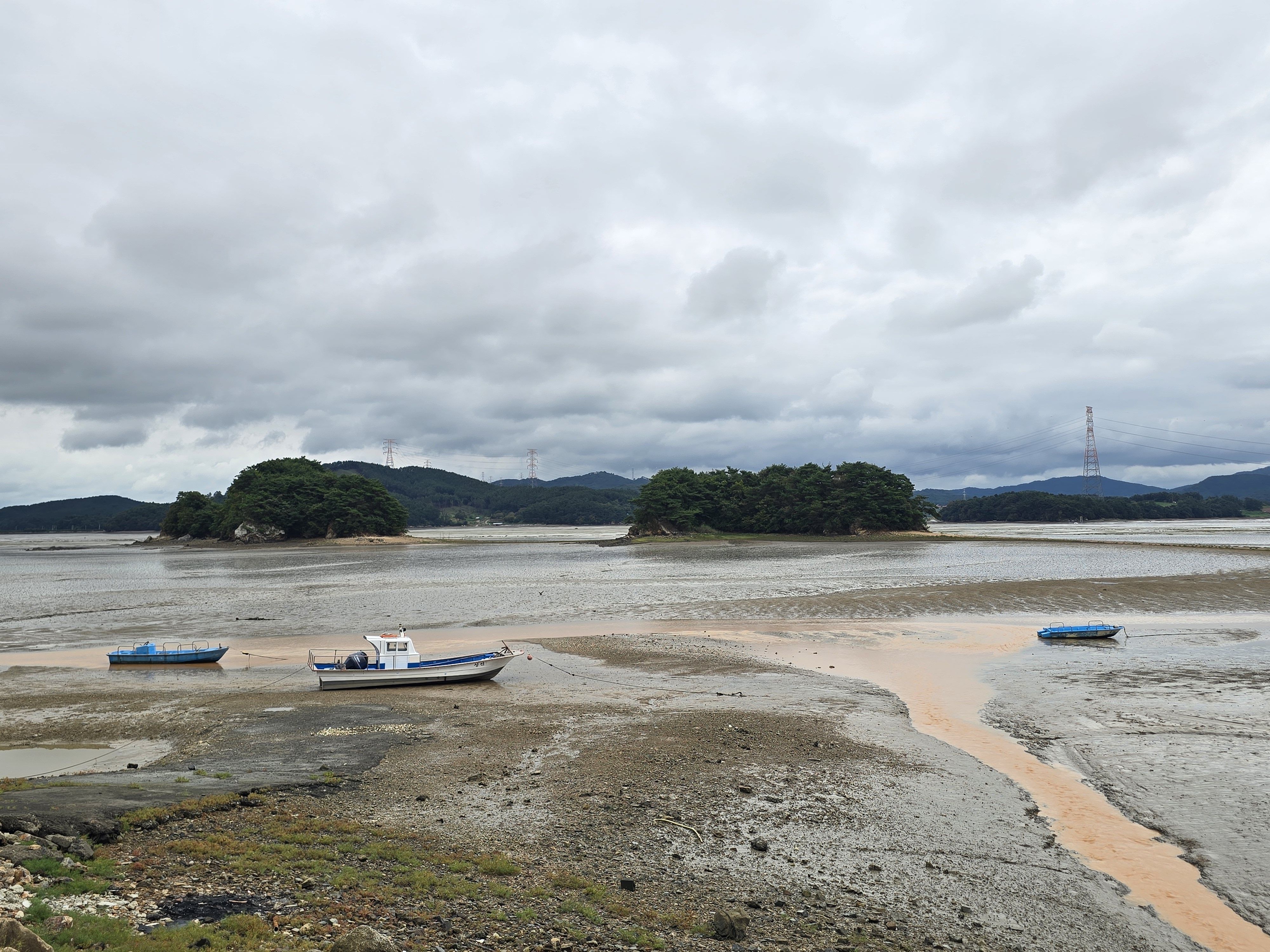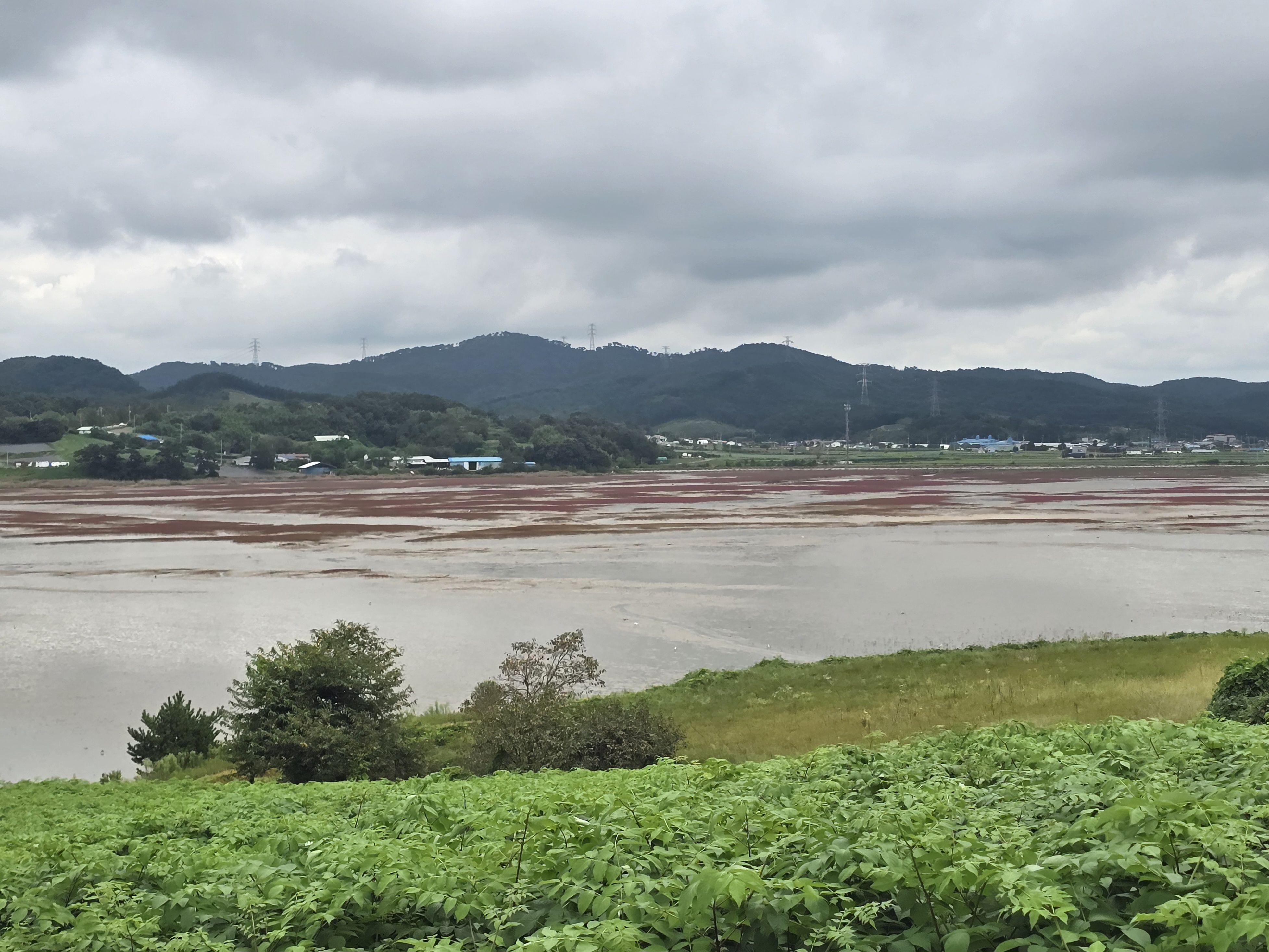 곳곳에 농수로에서 바다로 흘러 들어가는 대단한 흙탕물 때문에 바닷물색 이 아주 변했답니다.