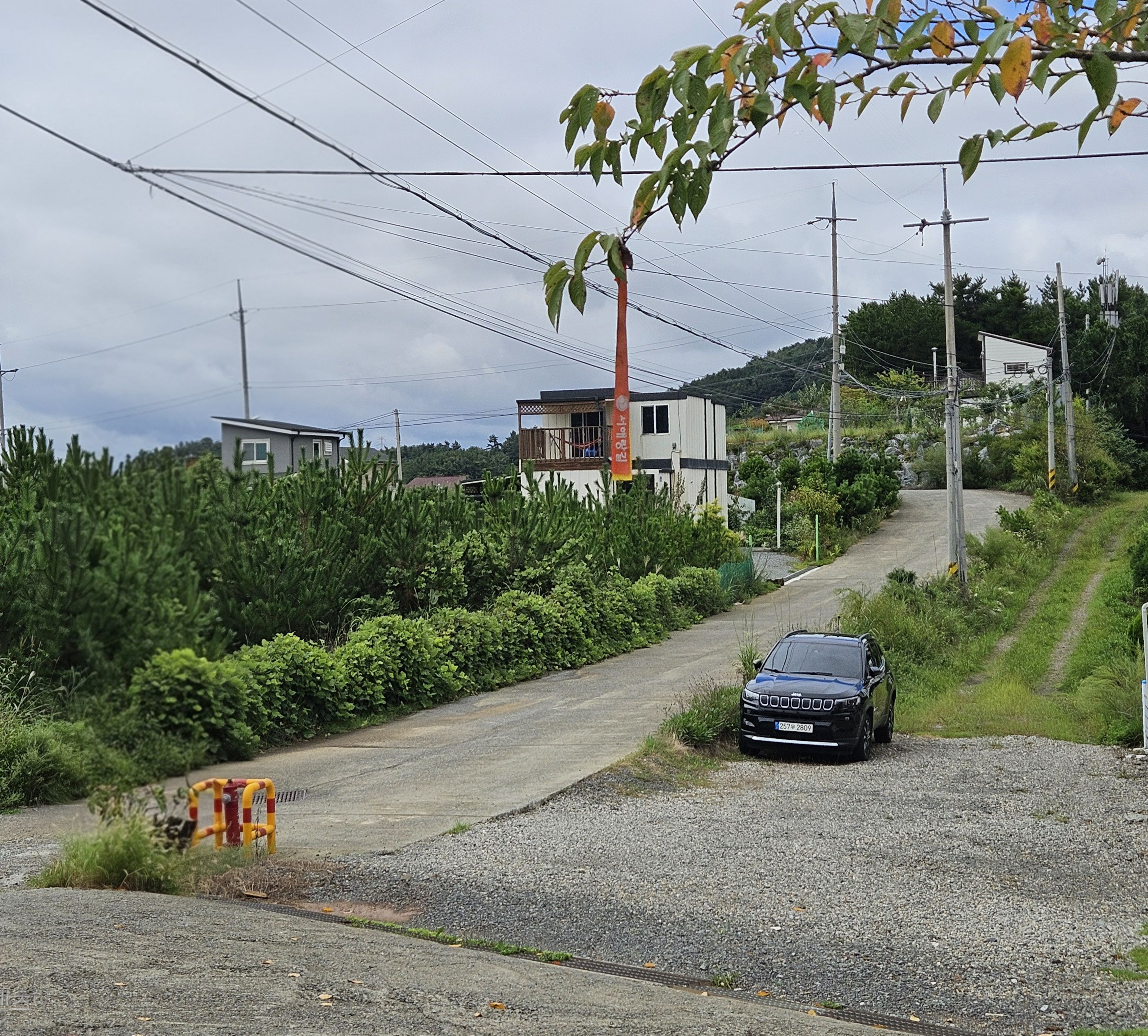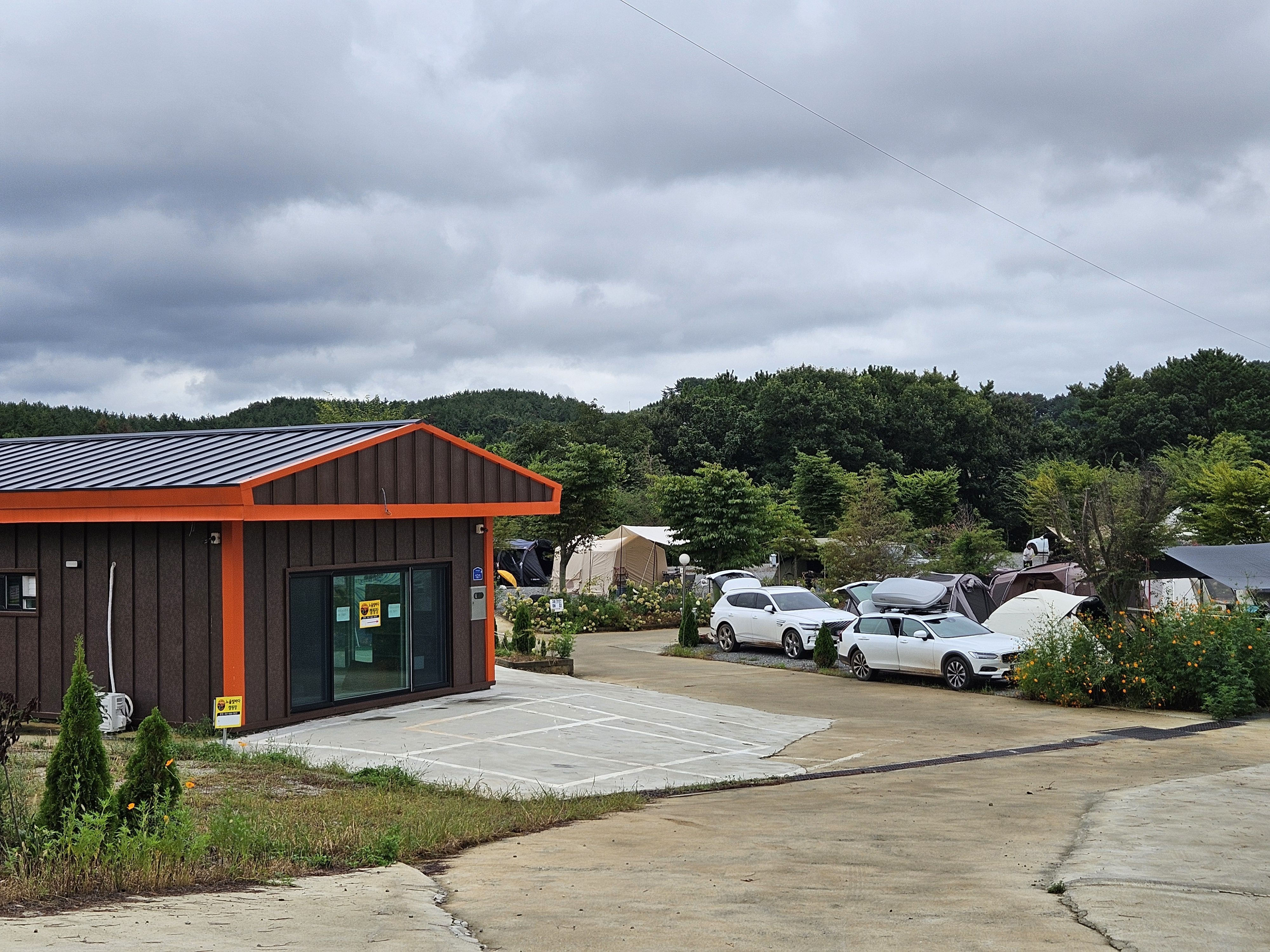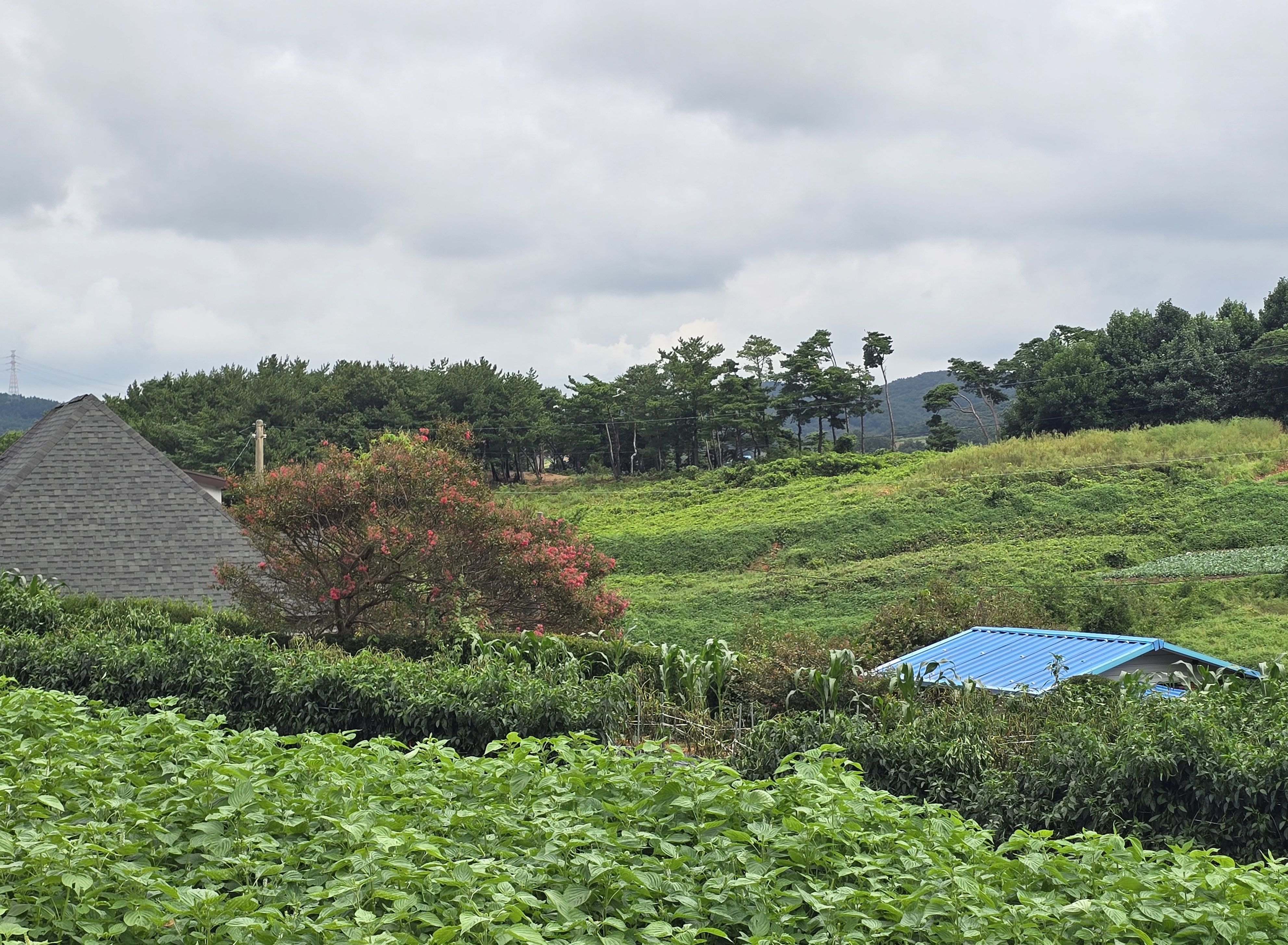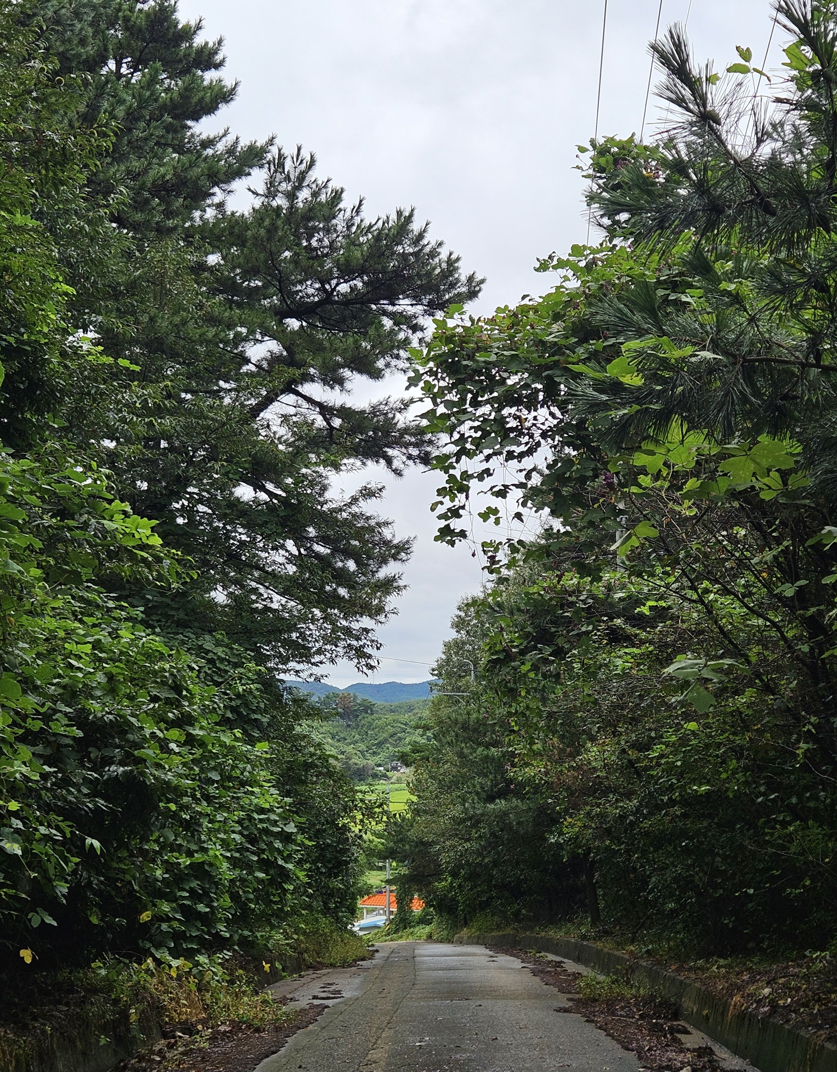 비는 내리지 않았지만 잔뜩 흐린날씨 탓에 주변이 어두웠습니다. (한적한 산골마을)