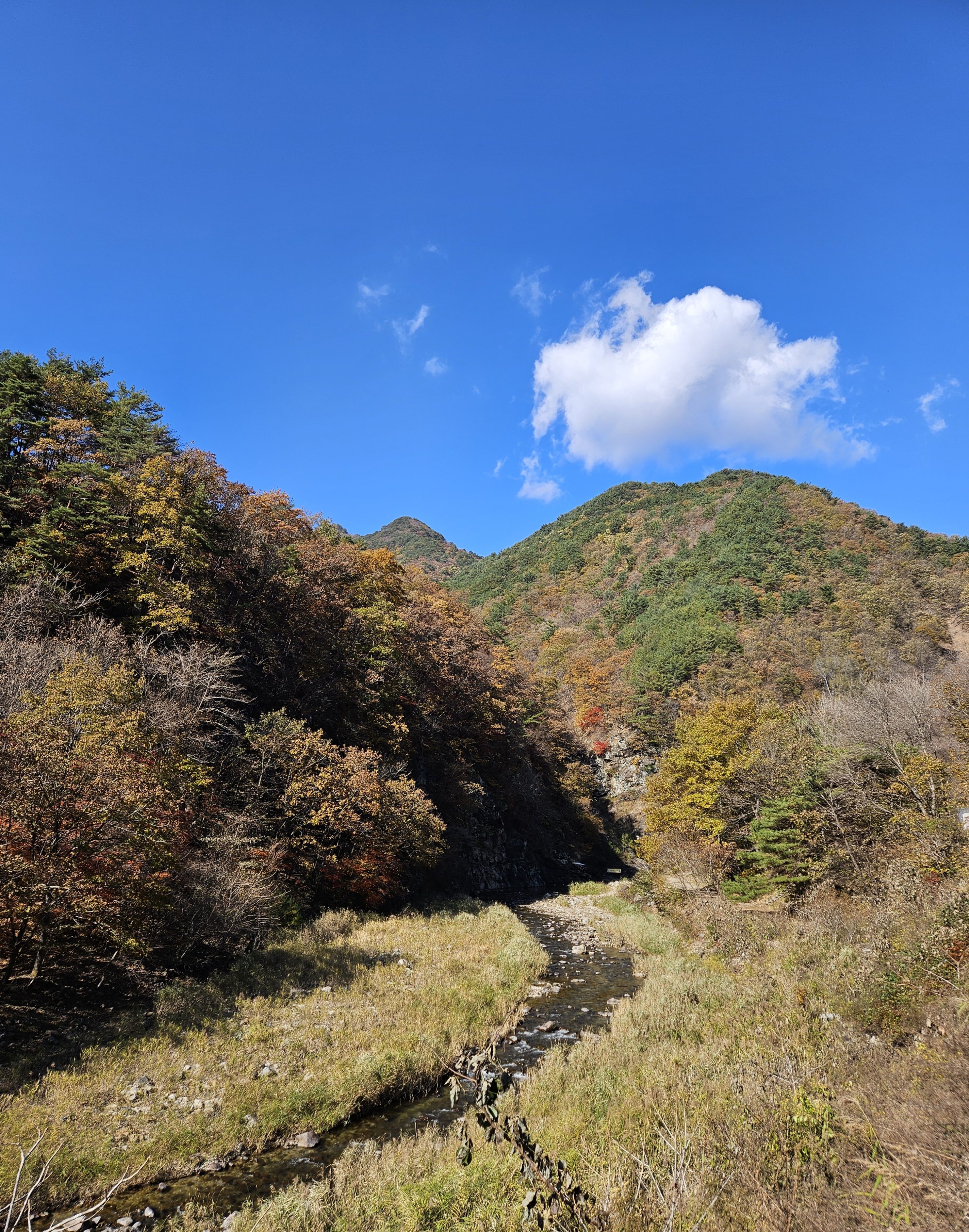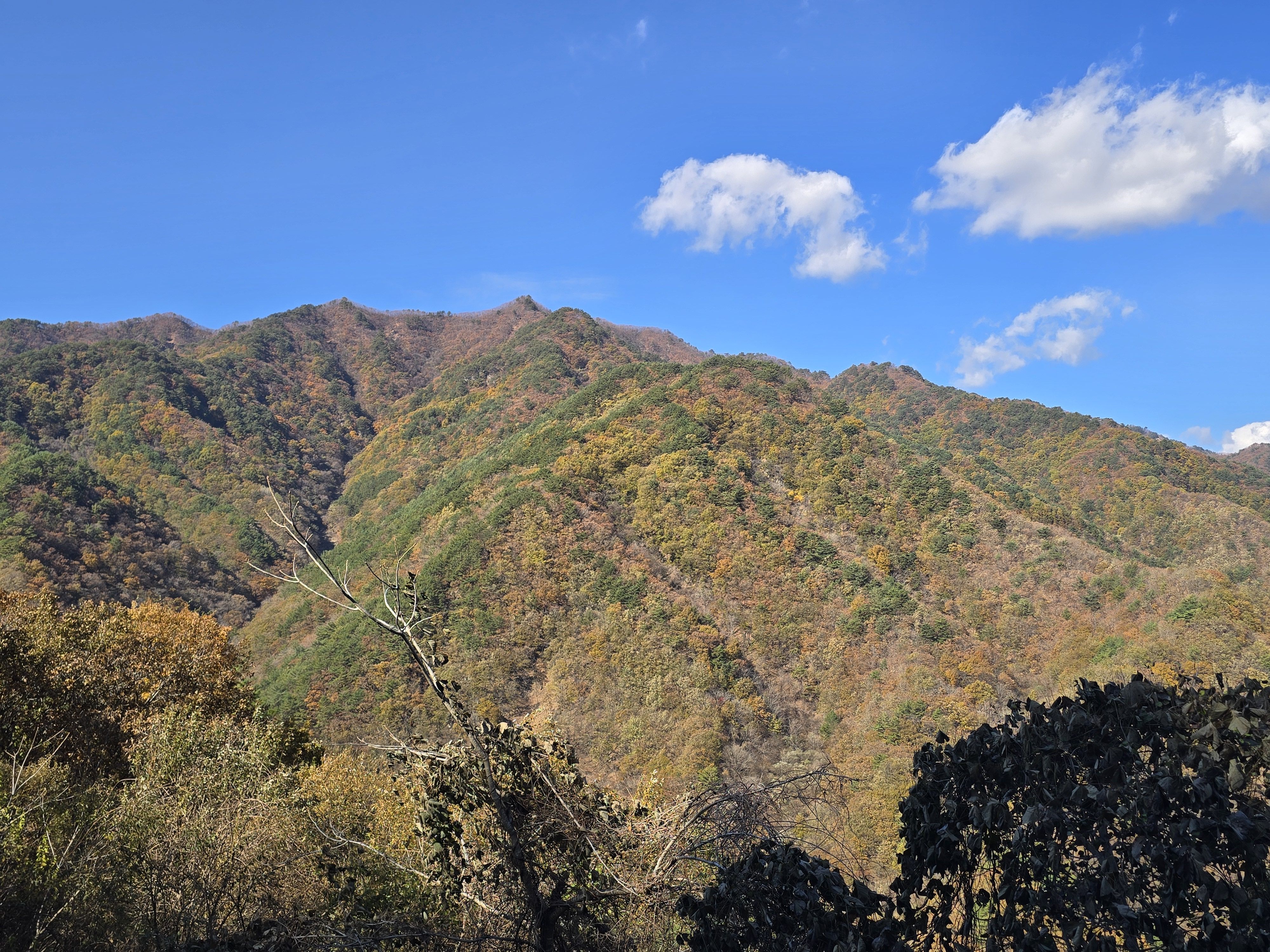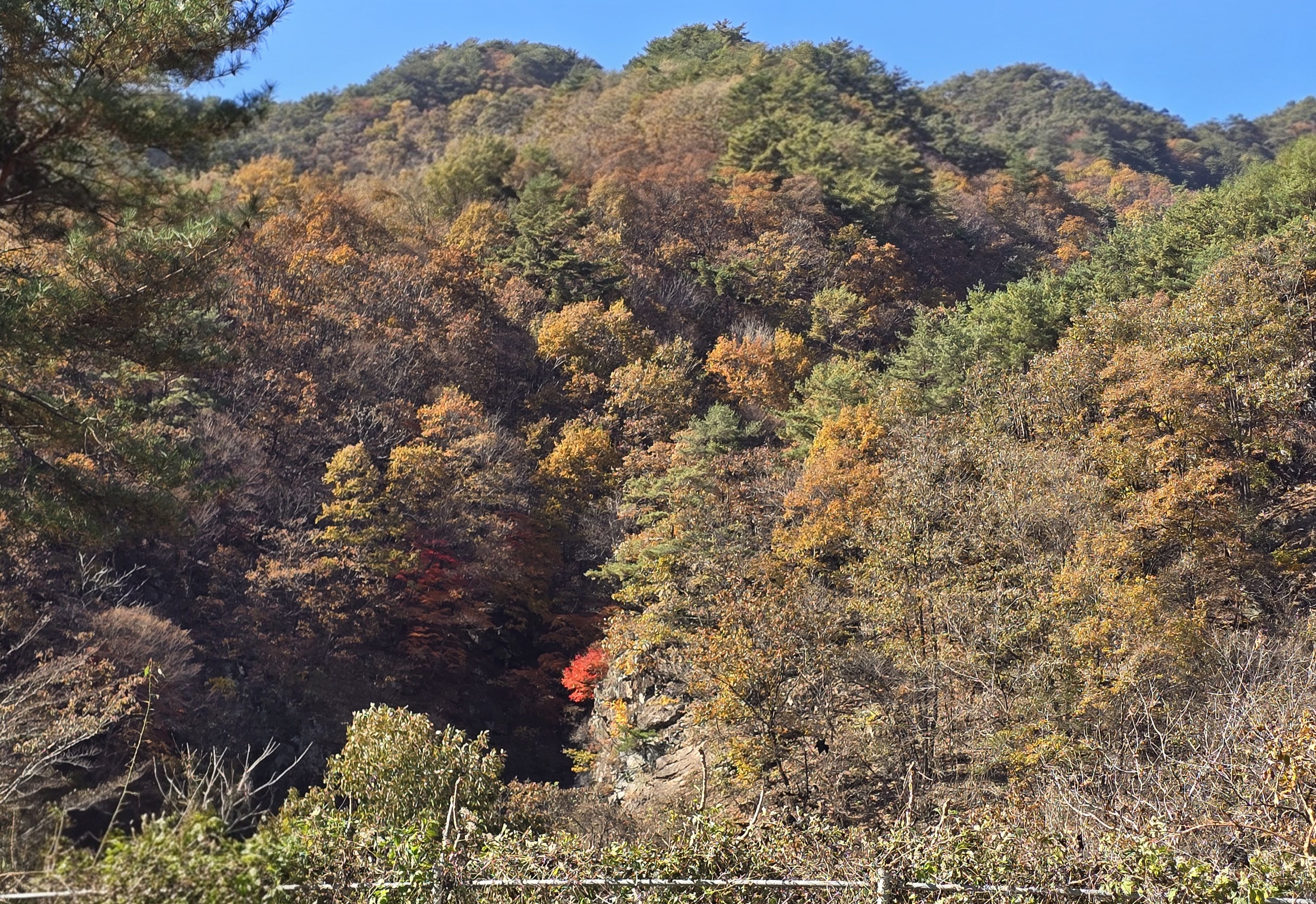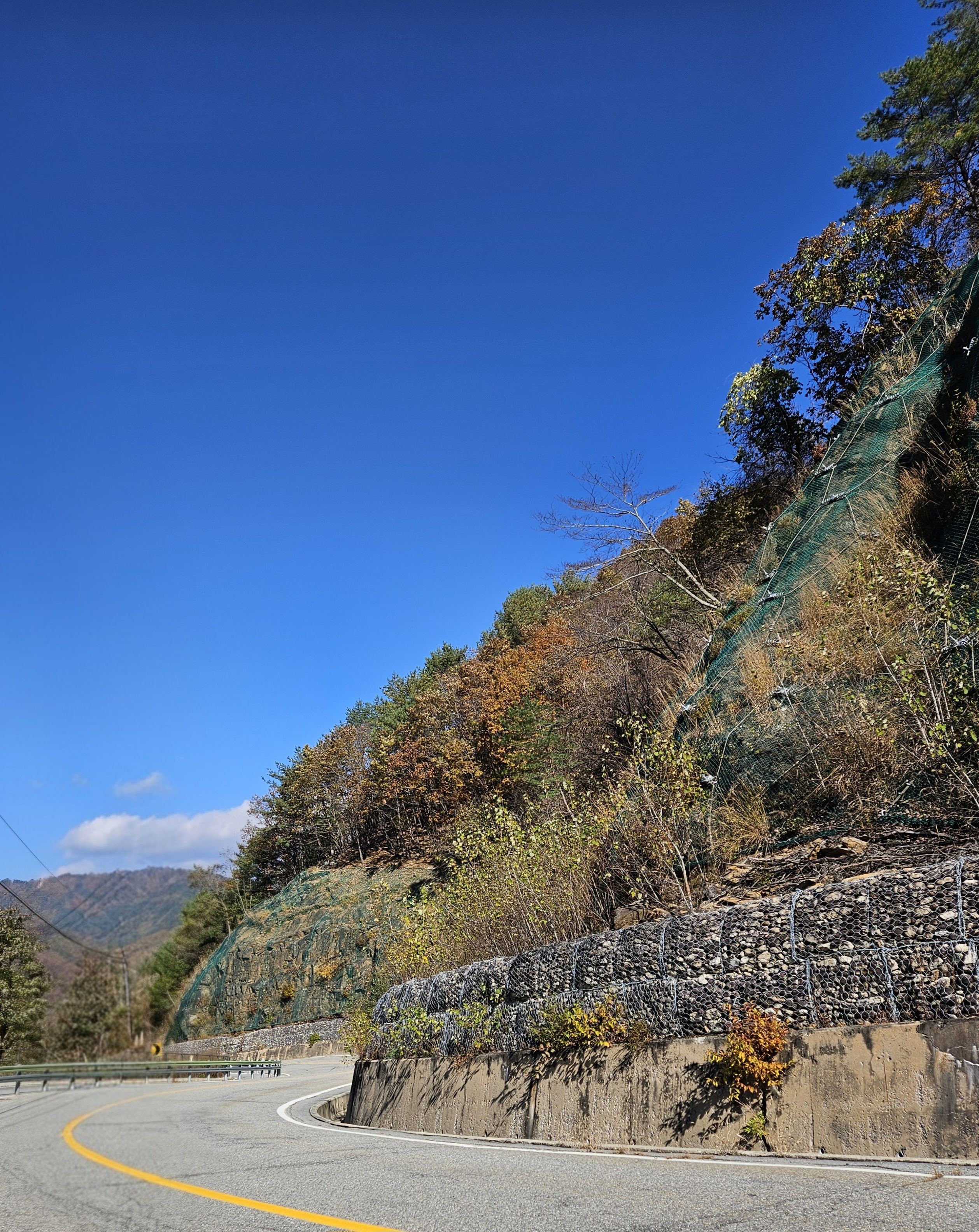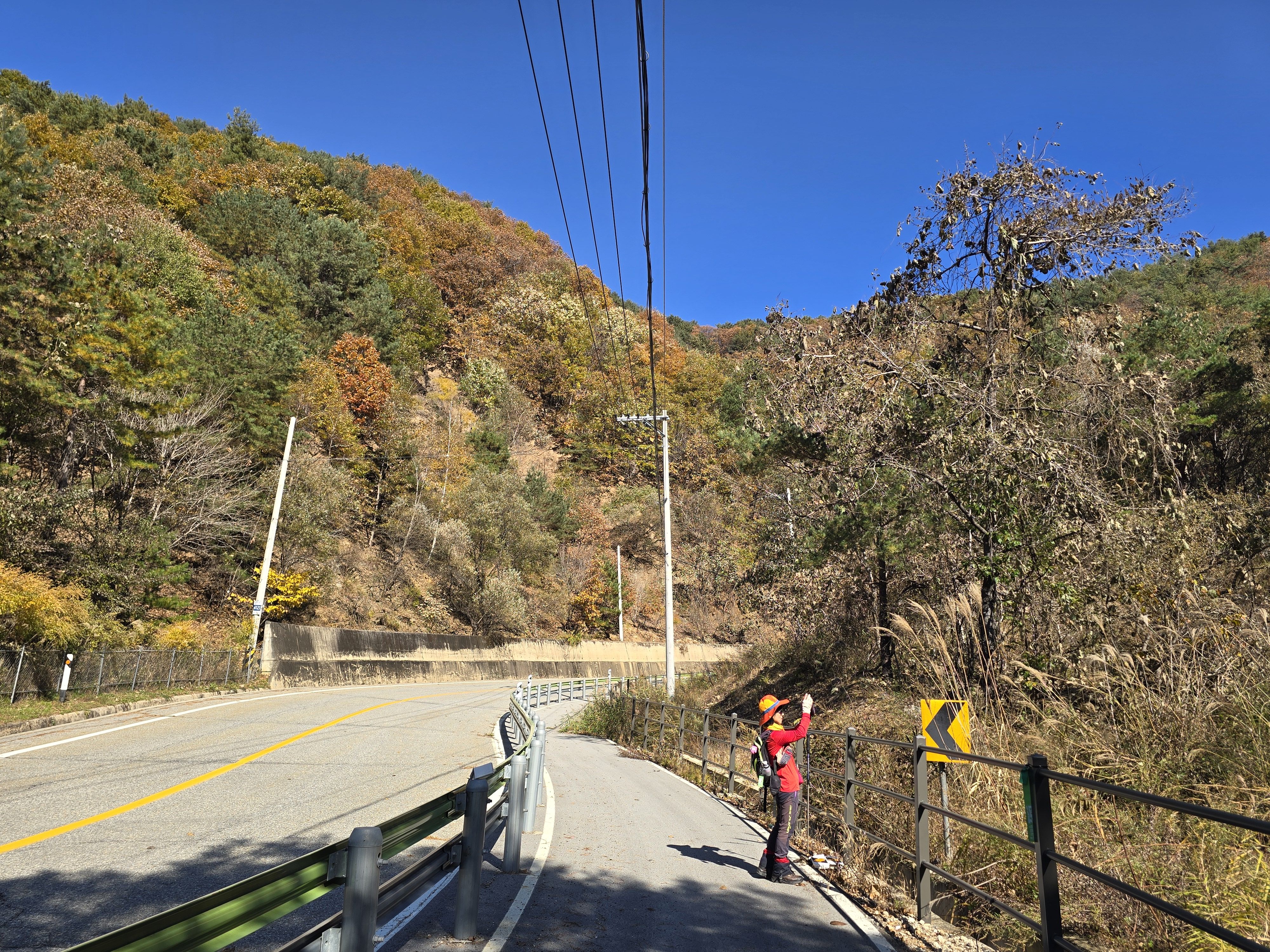 출발부터 종점까지 아스팔트 포장도로 걸었지만 그다지 지루함 느끼지 못하고 산행 종점으로...중간에 오천터널 내부로 걸을땐 위험 하지 않을까? 살짝 걱정이 되었지만 전혀 걱정하지 않아도 괜찮습니다 (양방향 차량 왕래가 거의 없고 내부 인도 도 넓어 무사 통과 가능한 길 이었답니다.) 터널 지나 내려오는길 가을 풍경을 한층 더 해 준 울긋불긋 단풍과 파아늘 하늘. 모두가 만족했던 가을 기분좋은 트레킹 이었습니다. 그런데 서울상경 길은 고속도로 사정 별로 좋지 않아 단풍철 도로정체... 오전 과 오후 모두 정체정체 반복 후 목적지 도착 하게되었습니다.