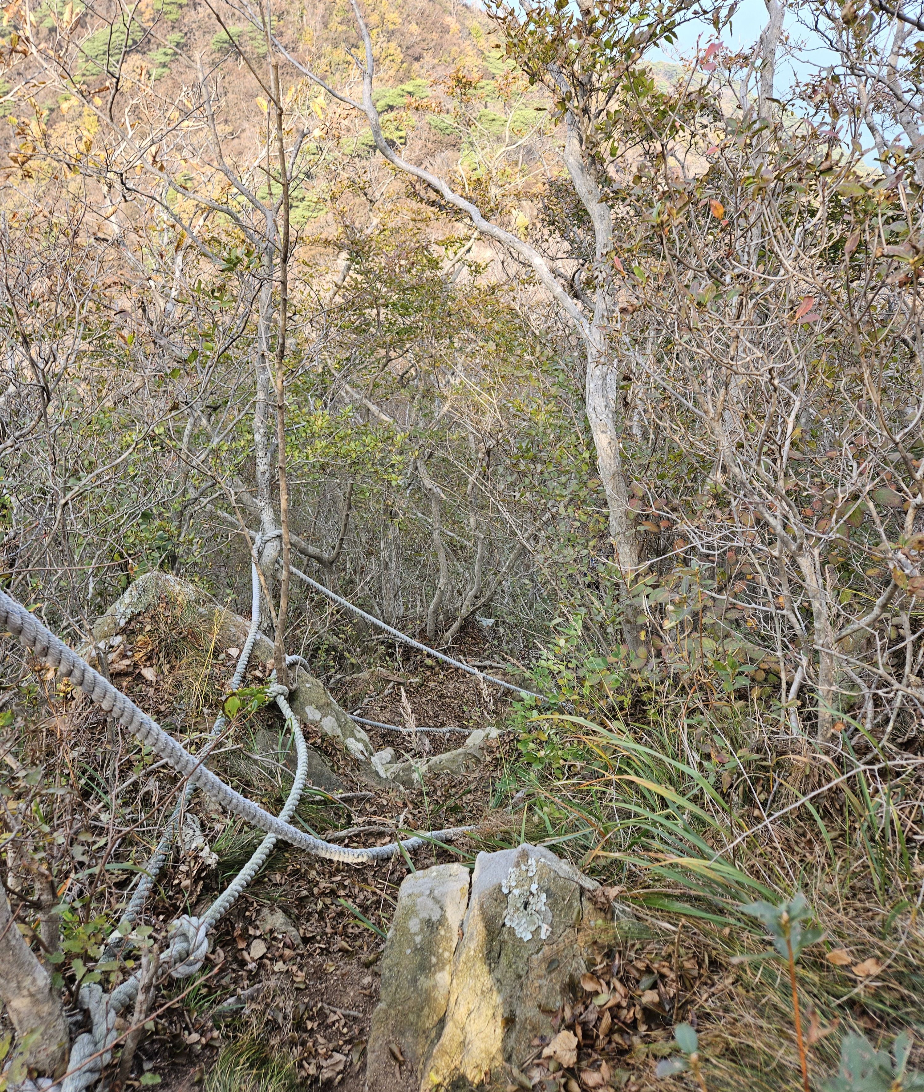 하산길은 급경사 였기에 로프가 많이 설치되어 있었습니다.