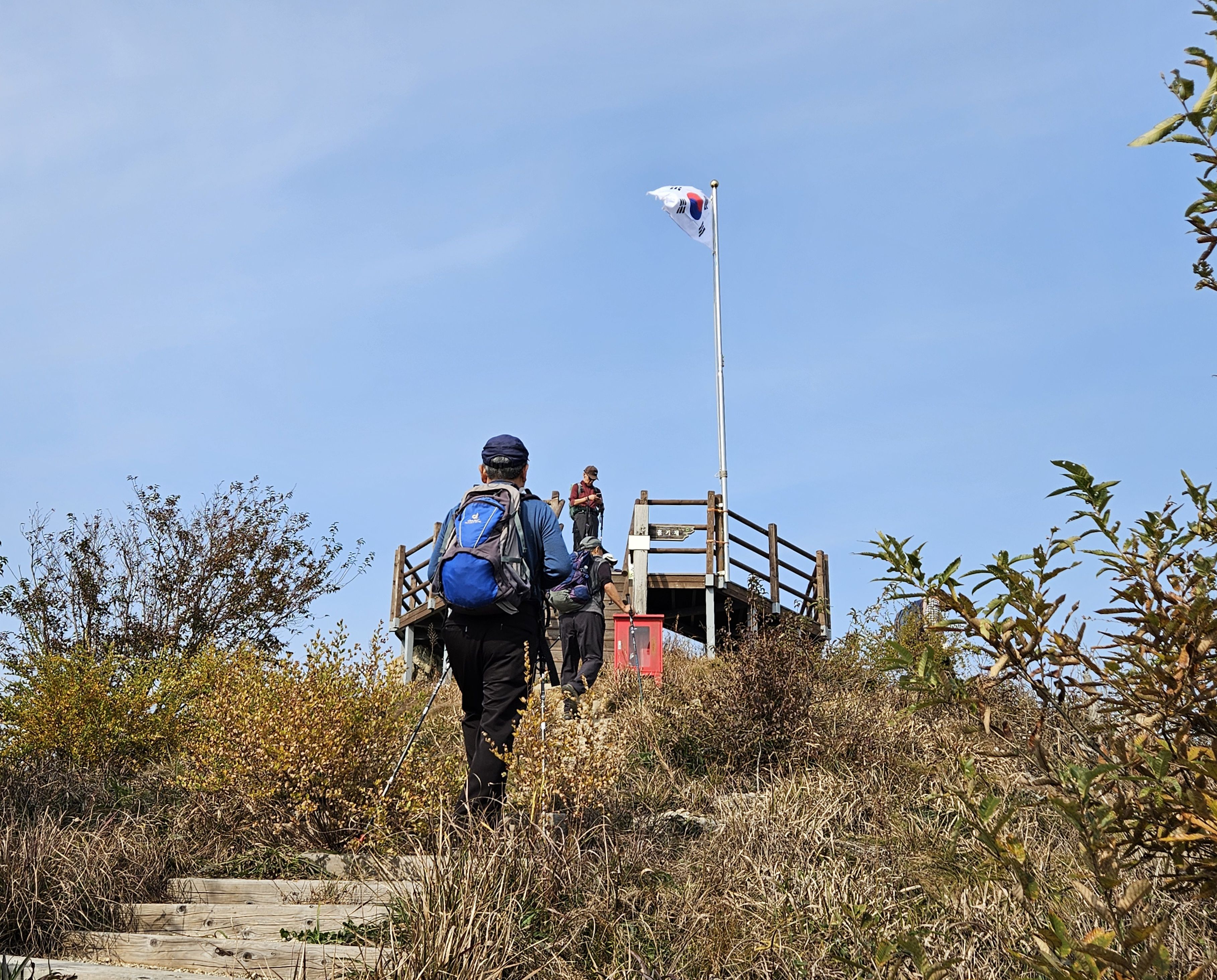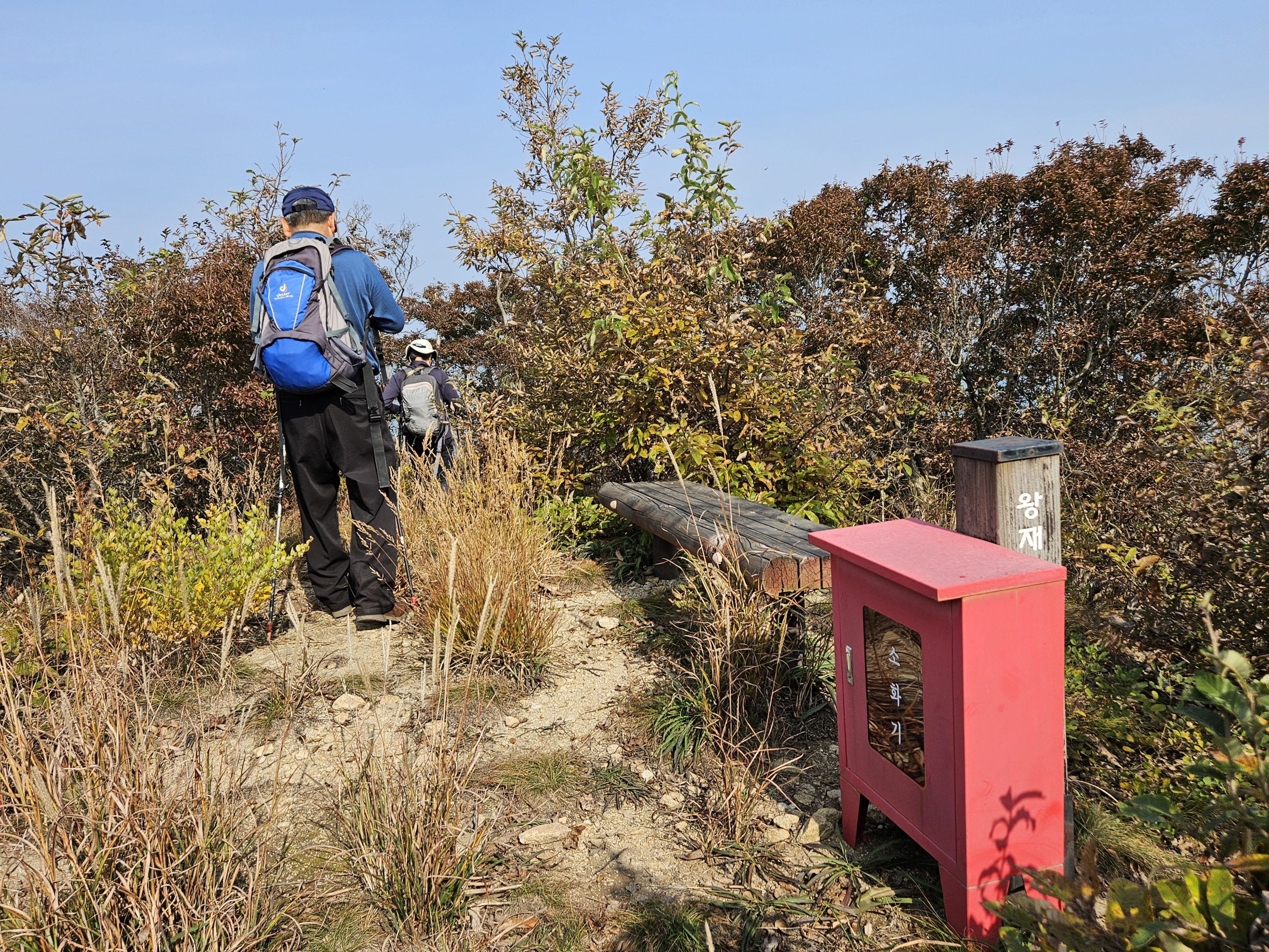 오르막 7분 후 (왕재봉) 도착