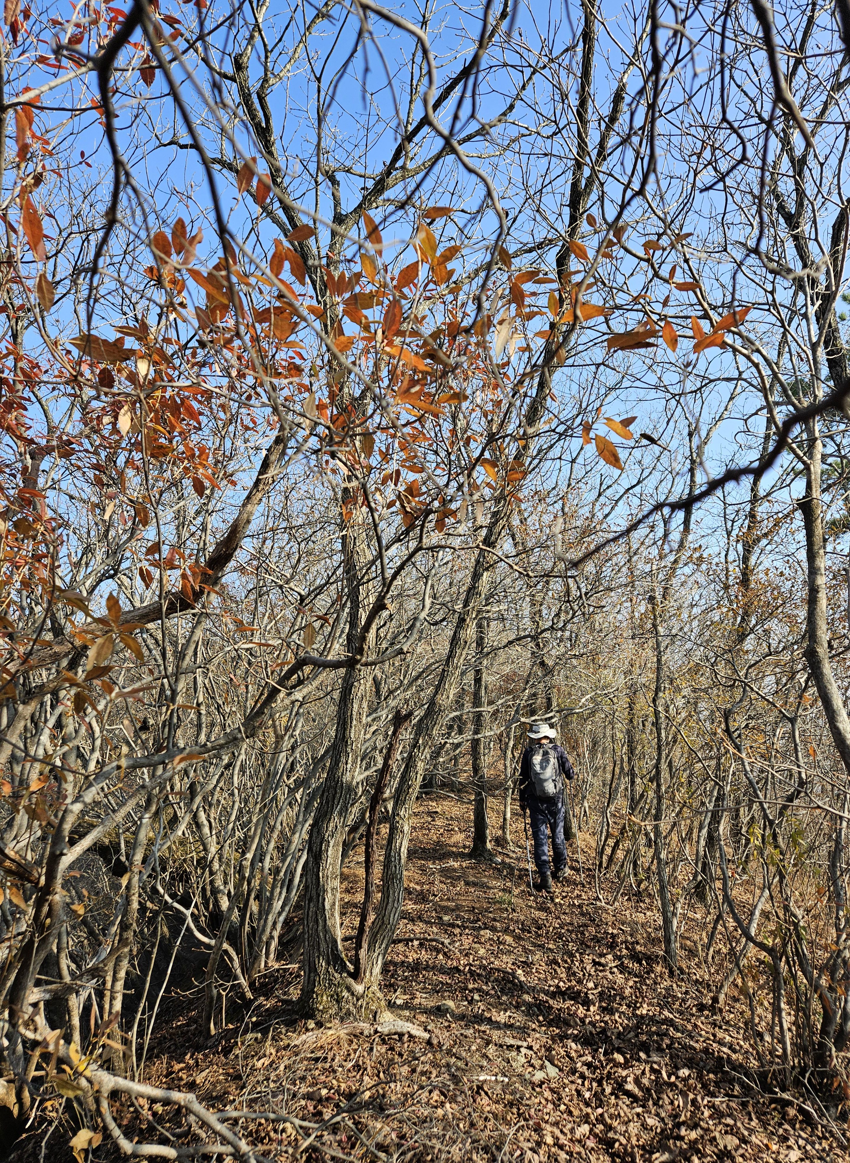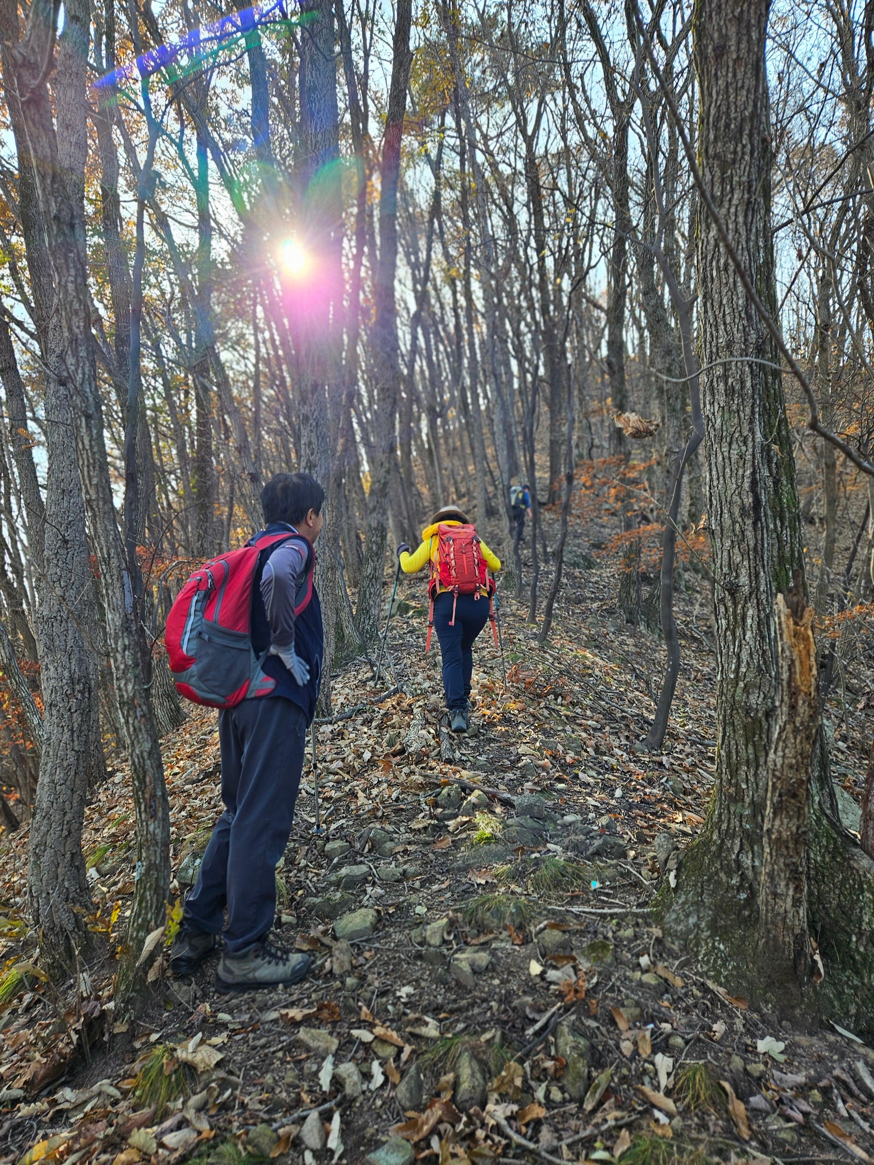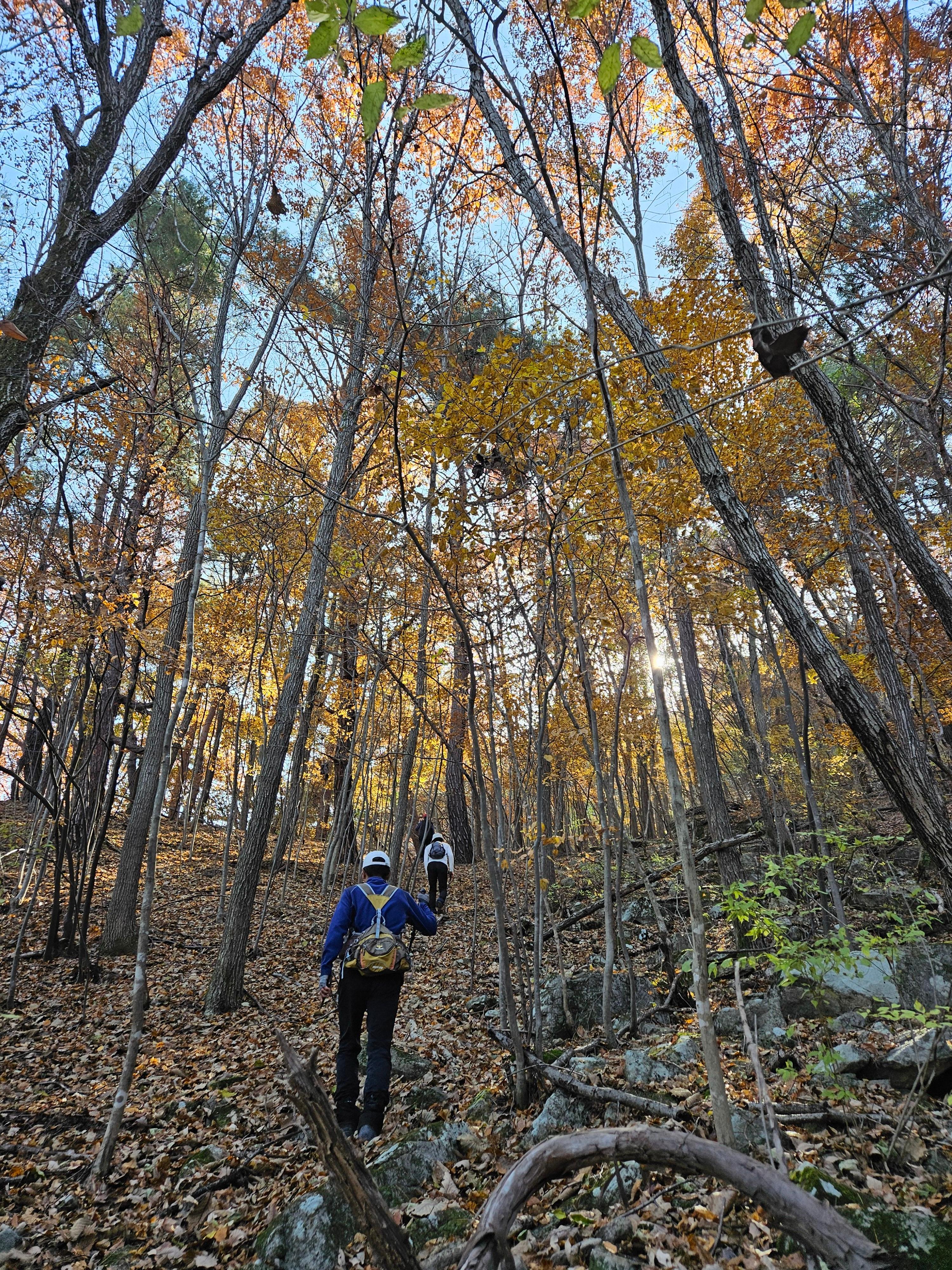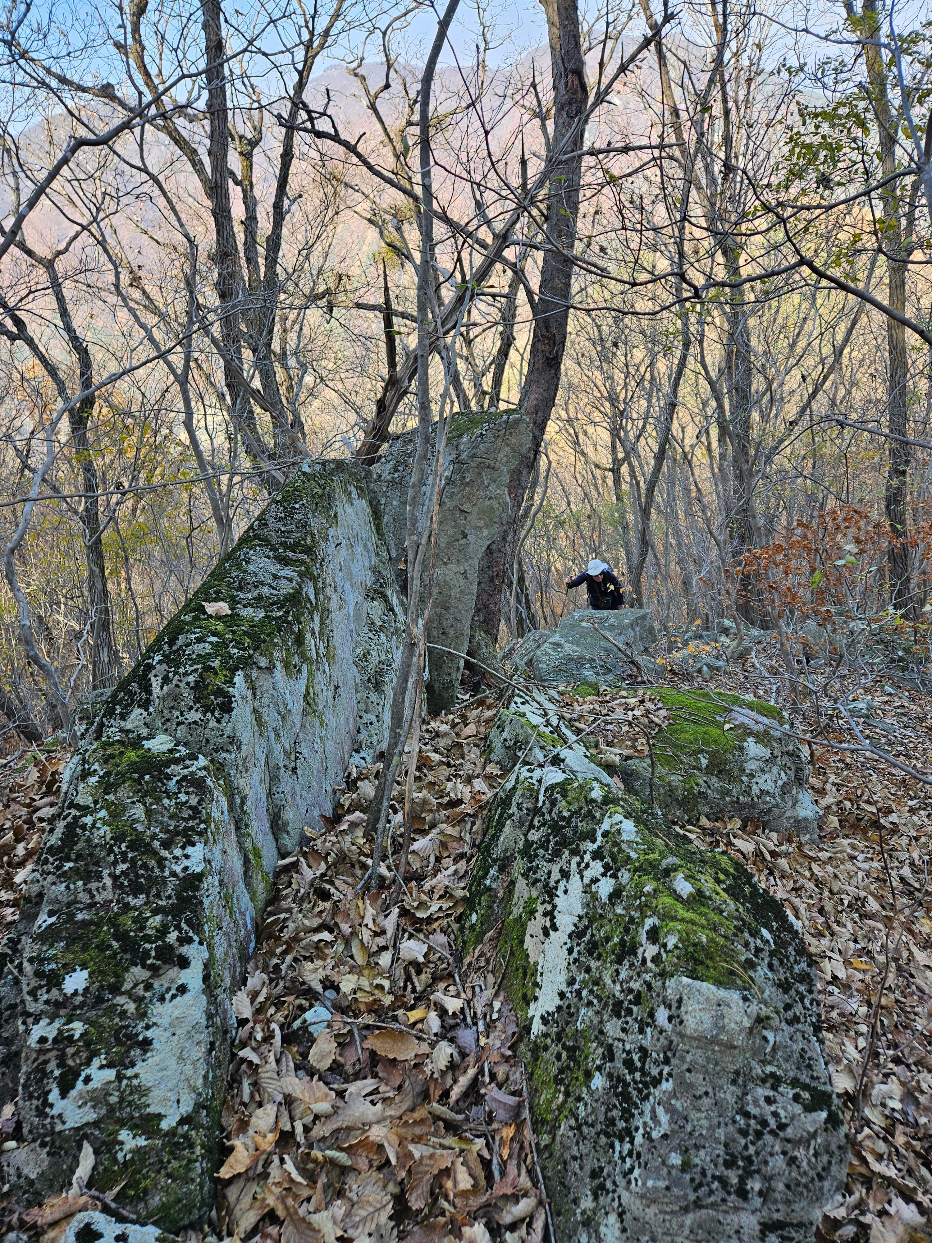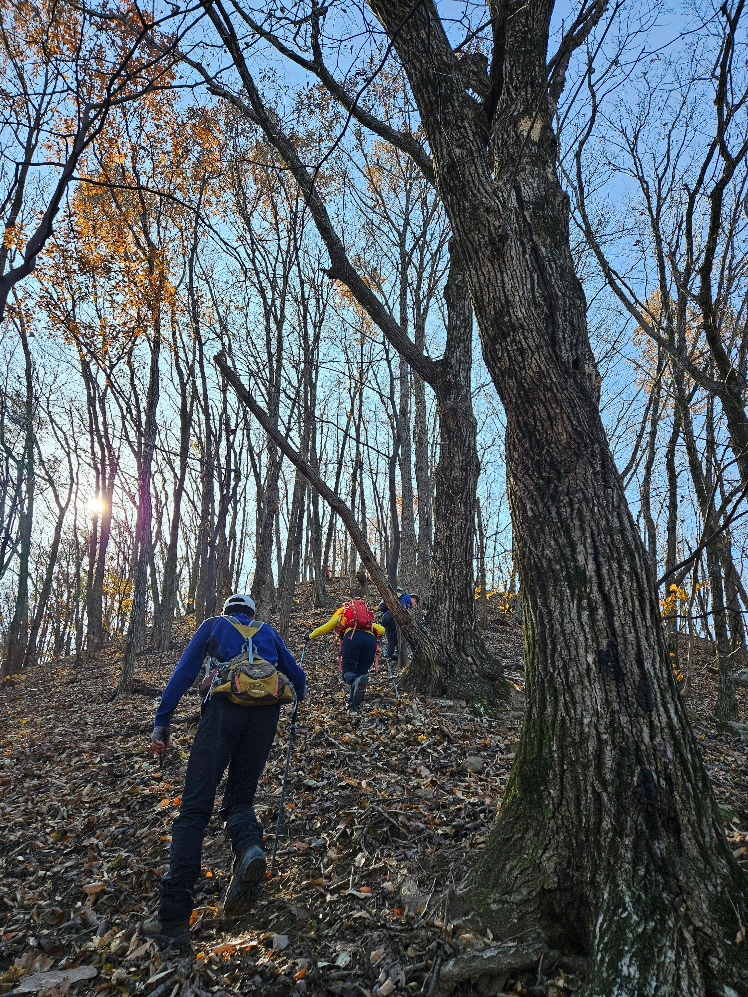 산이 높은 지대라 그런지 산 진입부터 단풍은 떨어진 낙엽이 되어 쌓였고 앙상한 뼈대로만 남은 나무기둥은 외롭게 우뚝~~