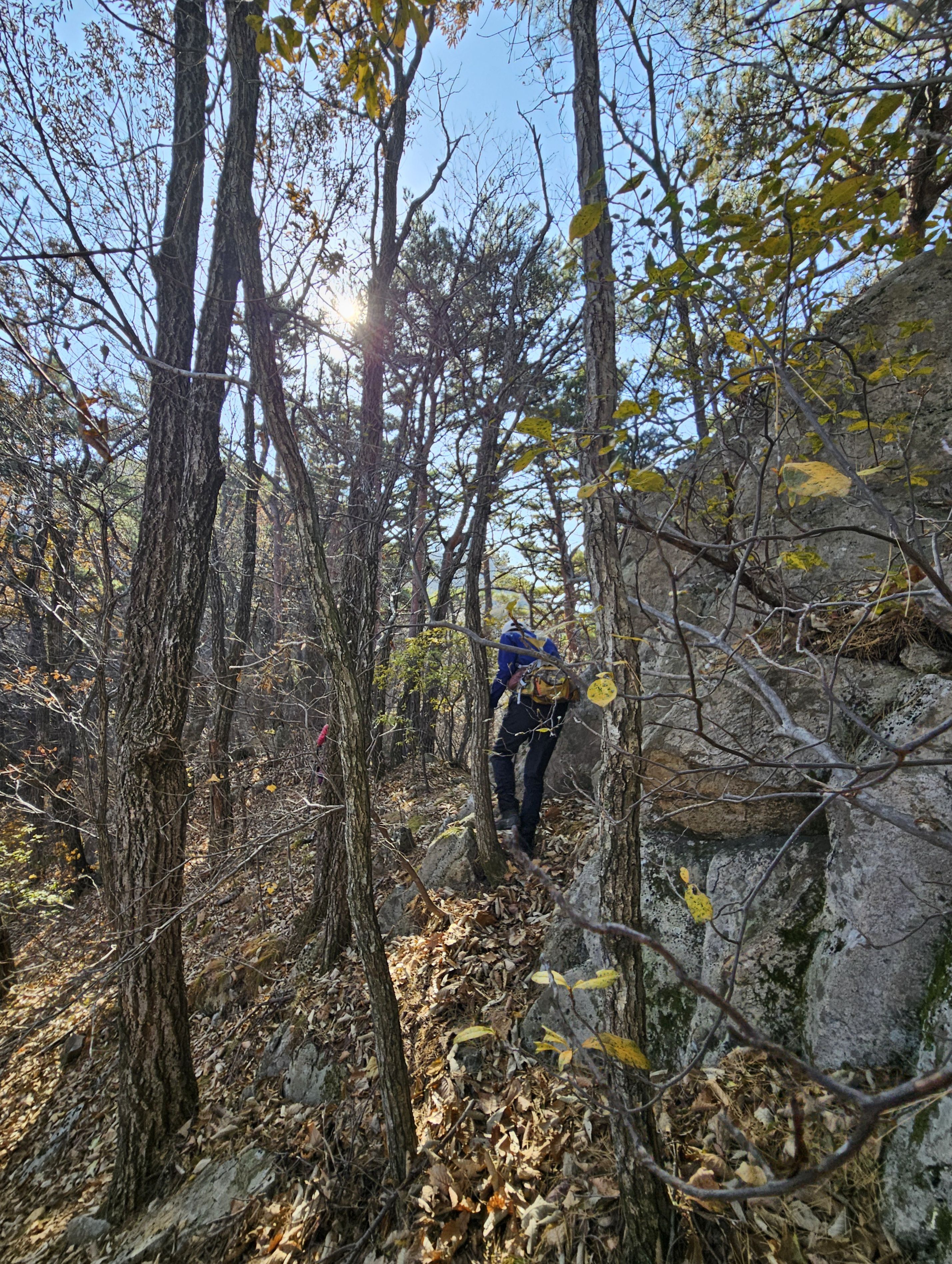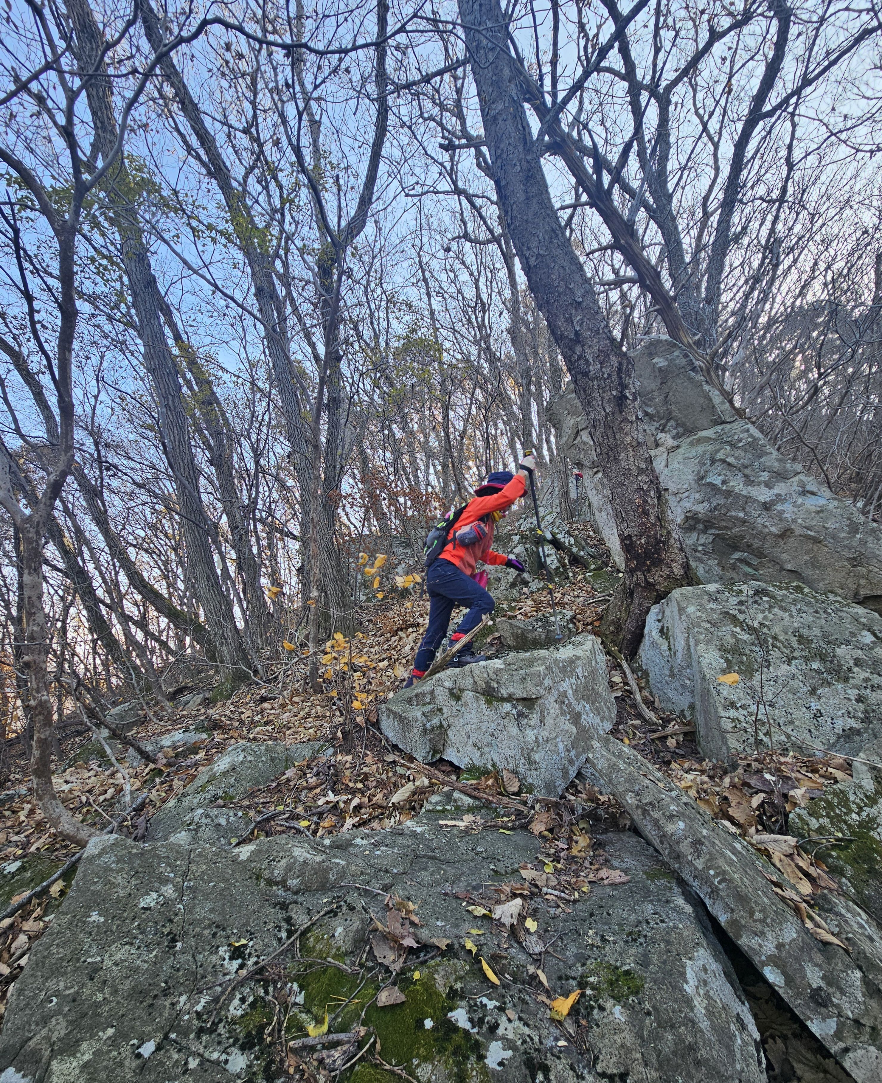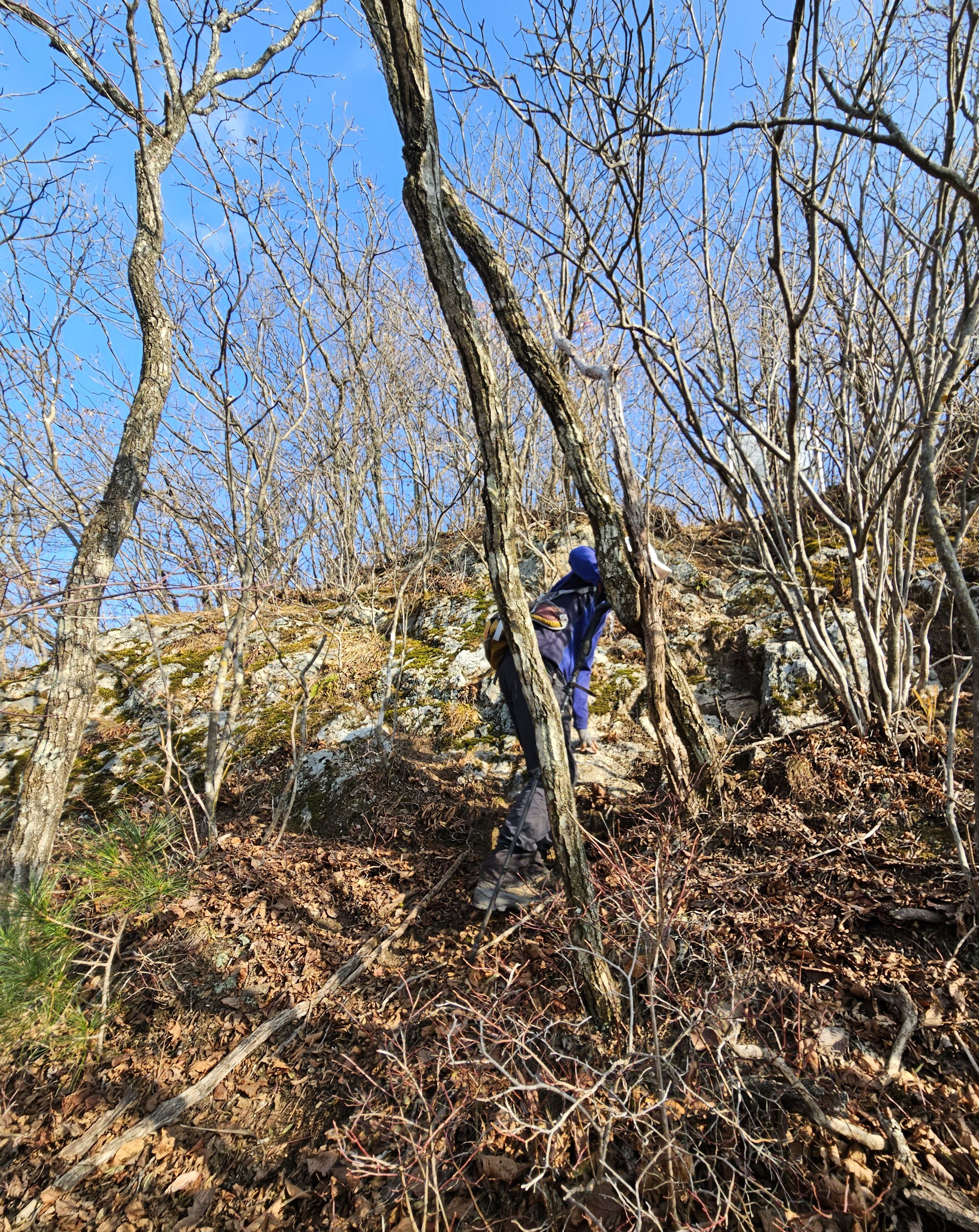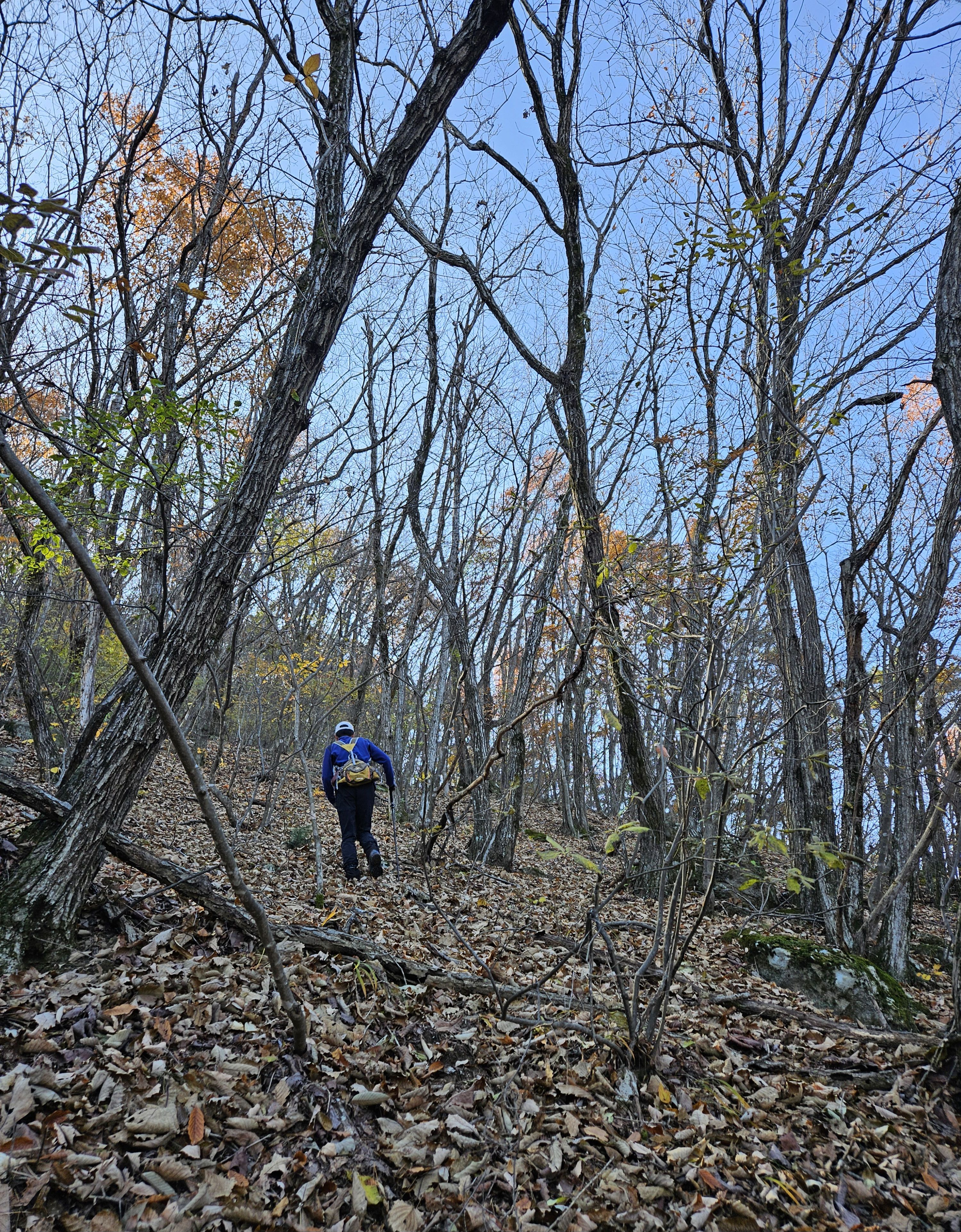 산이 높은 지대라 그런지 산 진입부터 단풍은 떨어진 낙엽이 되어 쌓였고 앙상한 뼈대로만 남은 나무기둥은 외롭게 우뚝~~