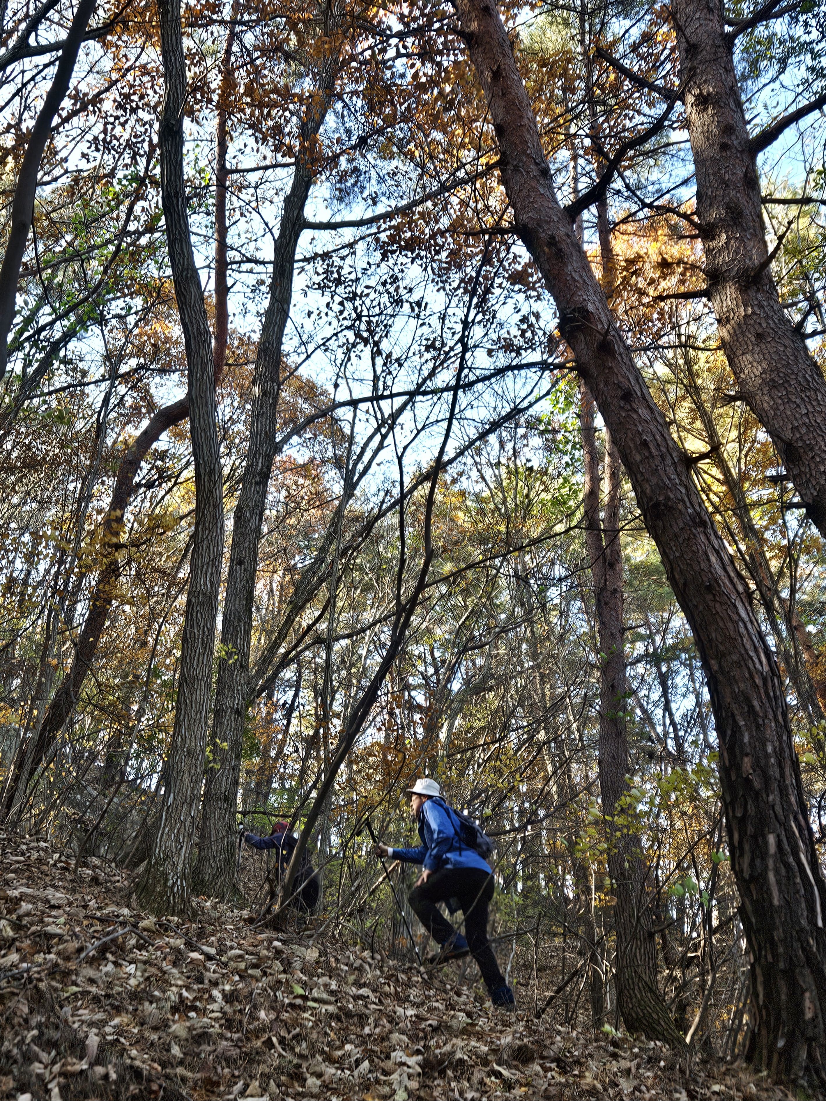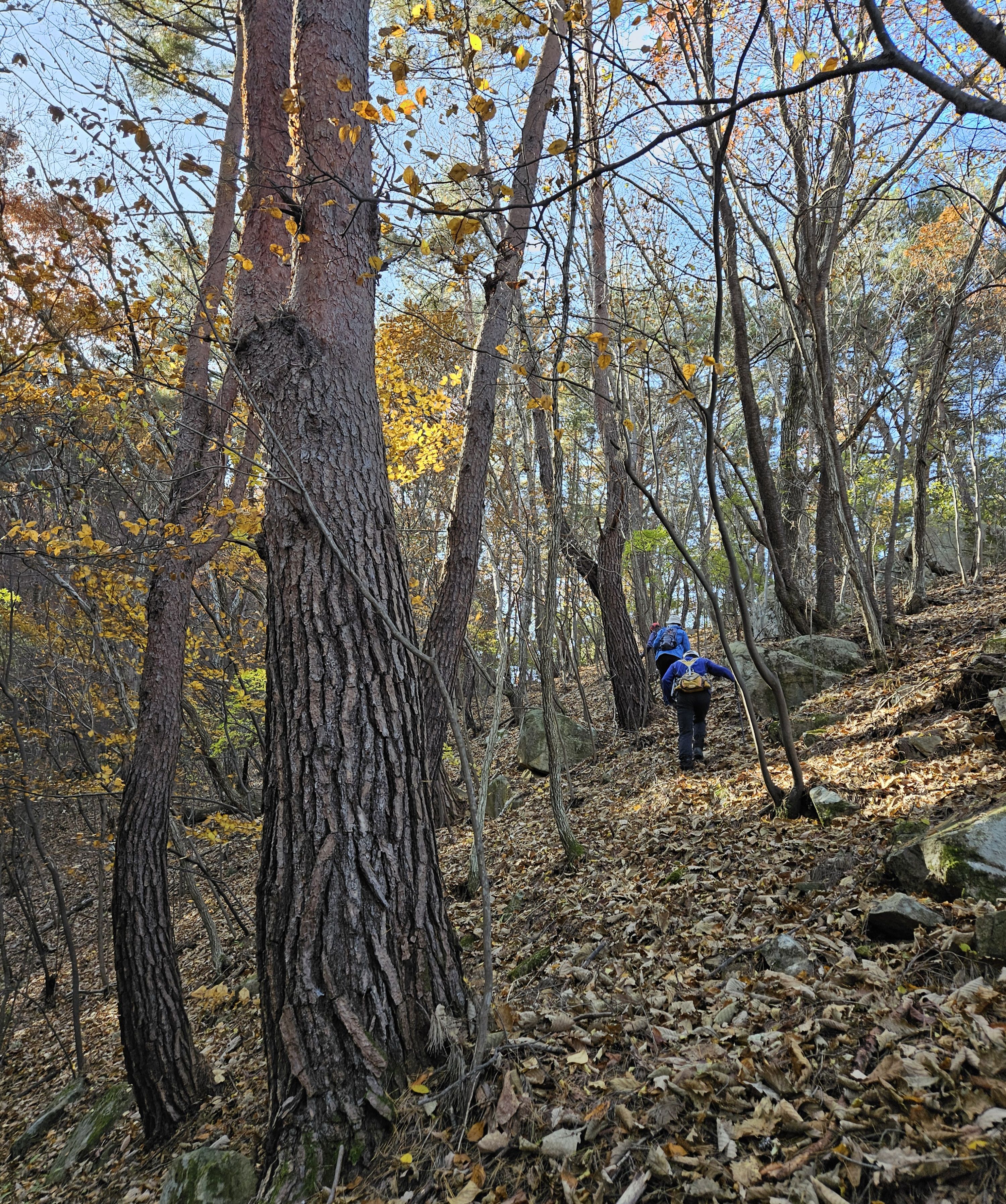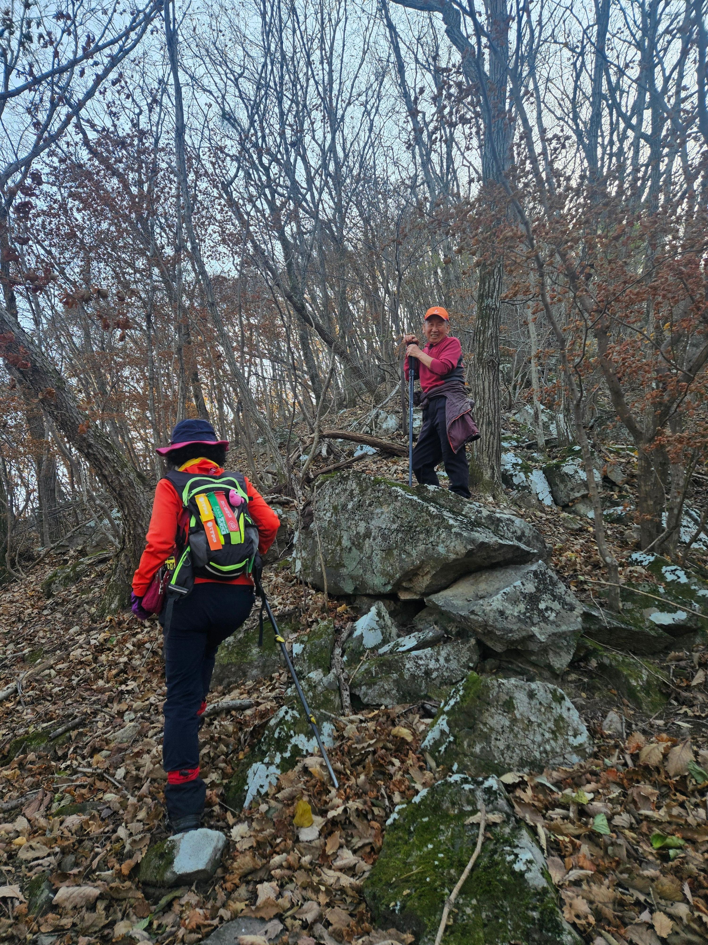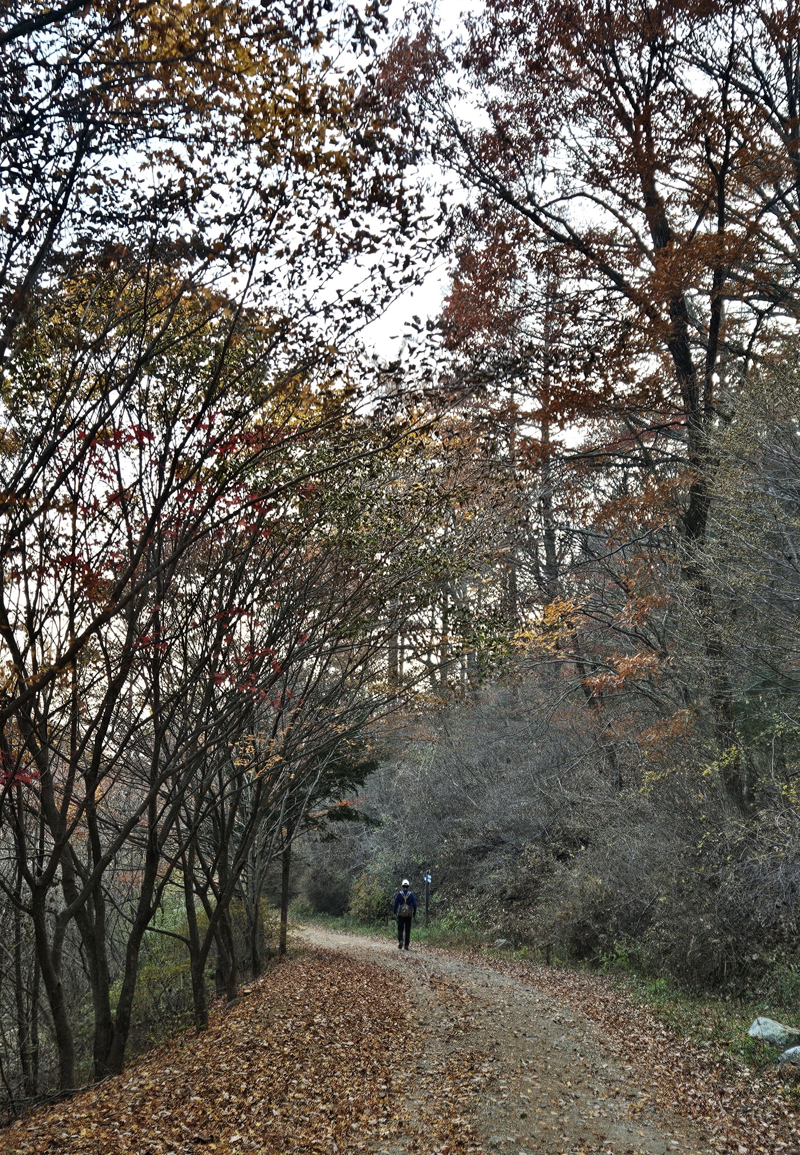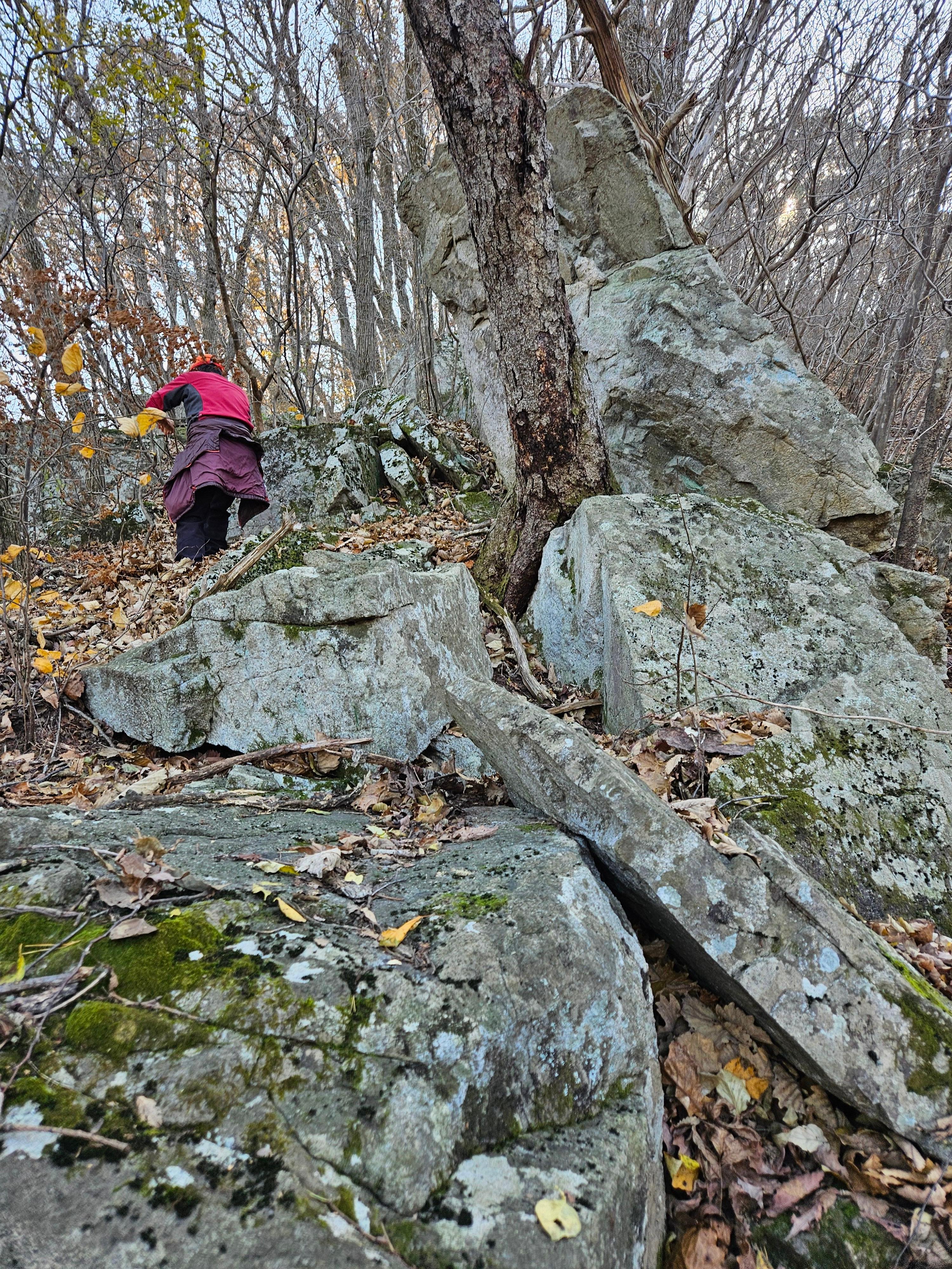 산이 높은 지대라 그런지 산 진입부터 단풍은 떨어진 낙엽이 되어 쌓였고 앙상한 뼈대로만 남은 나무기둥은 외롭게 우뚝~~