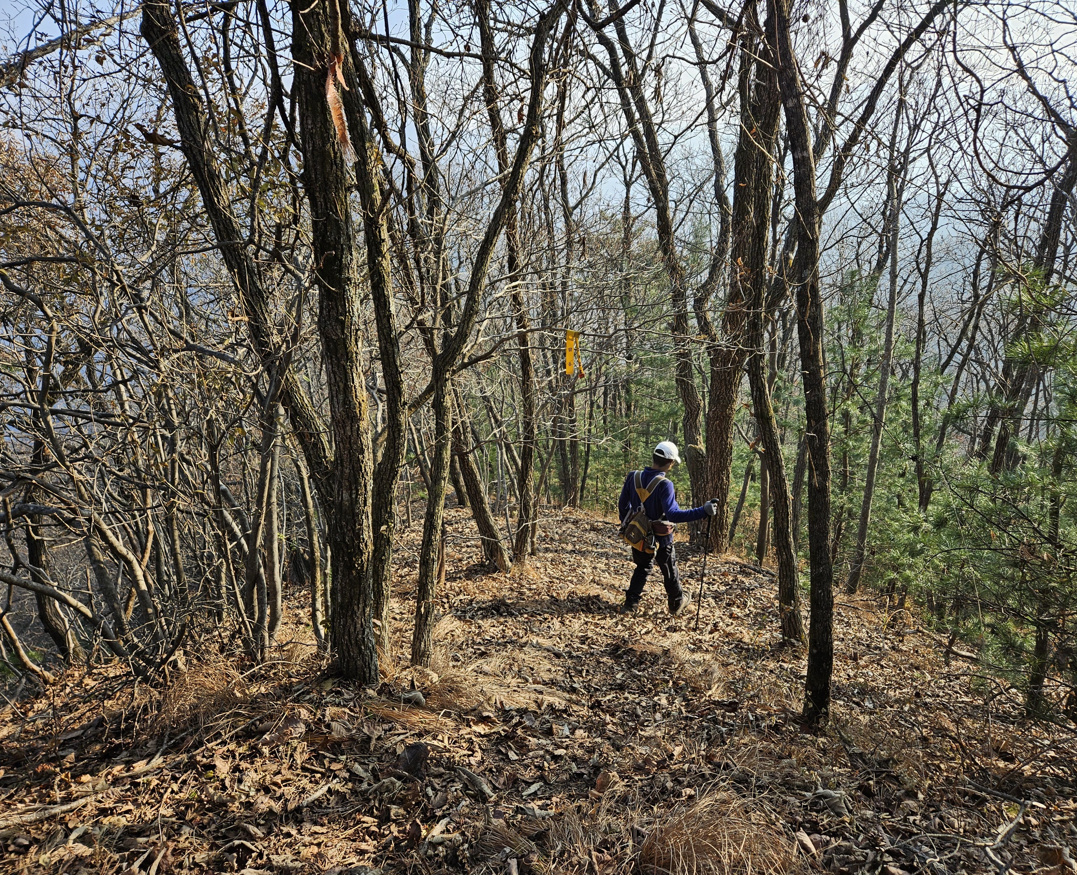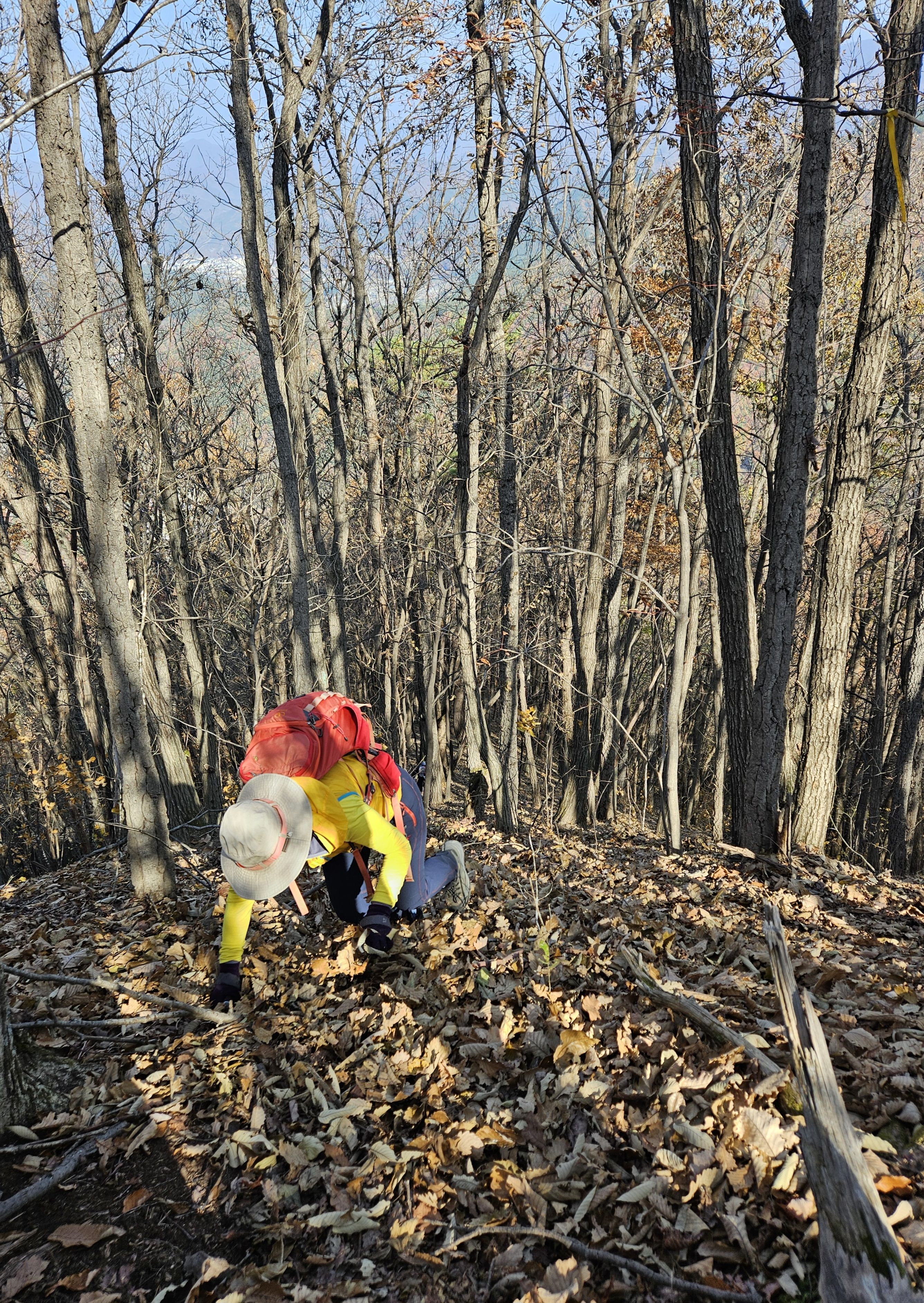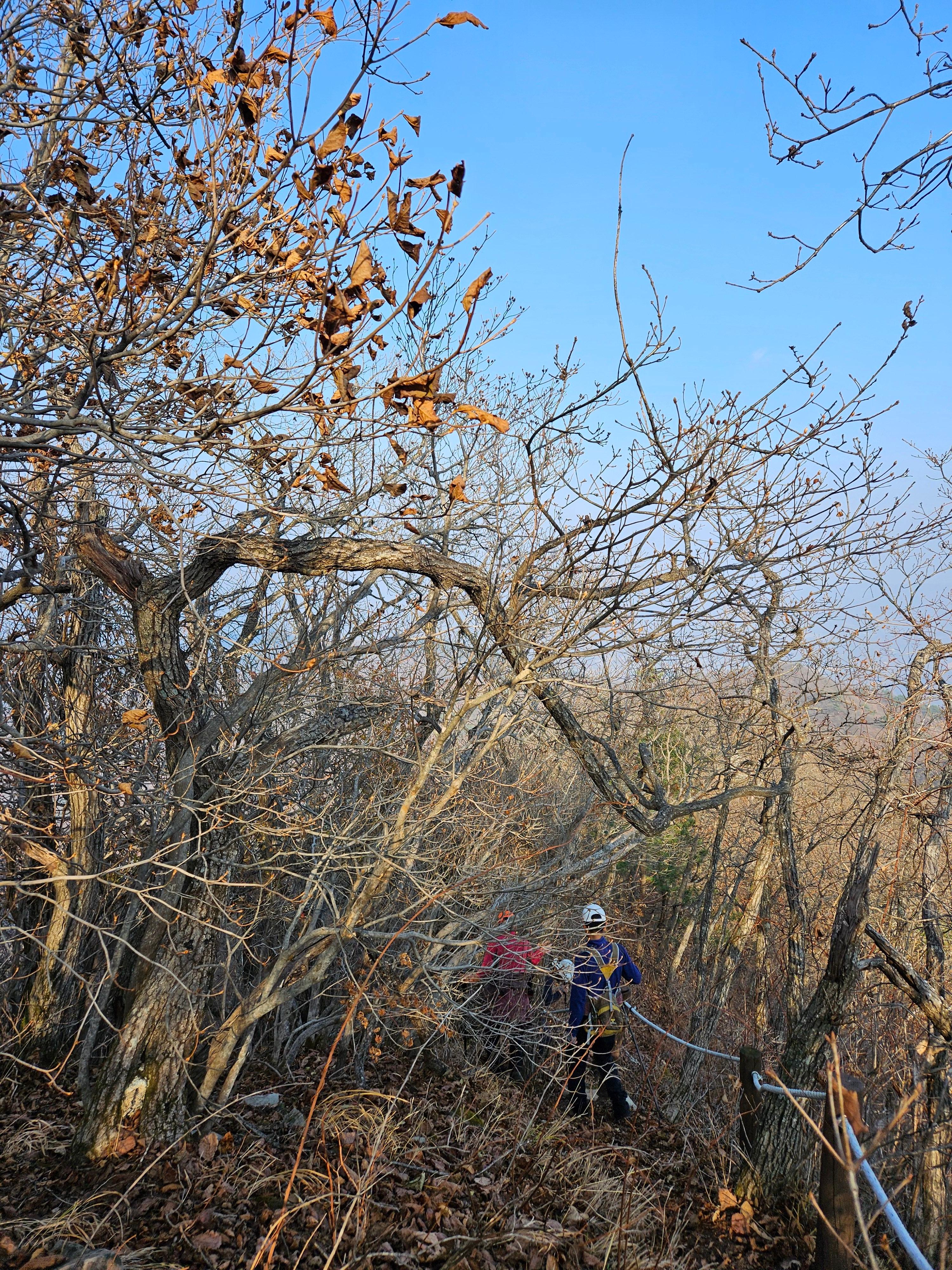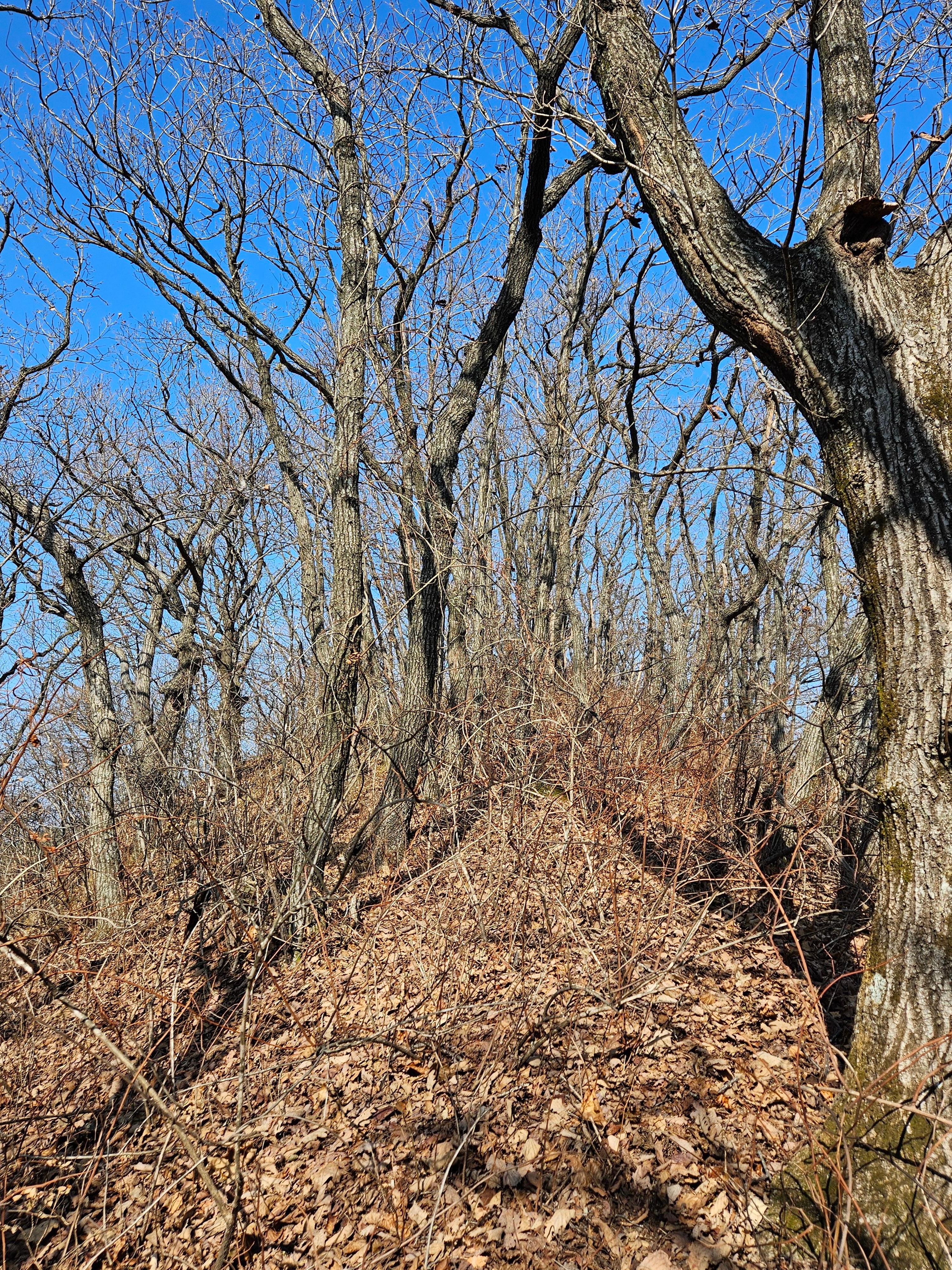 산이 높은 지대라 그런지 산 진입부터 단풍은 떨어진 낙엽이 되어 쌓였고 앙상한 뼈대로만 남은 나무기둥은 외롭게 우뚝~~
