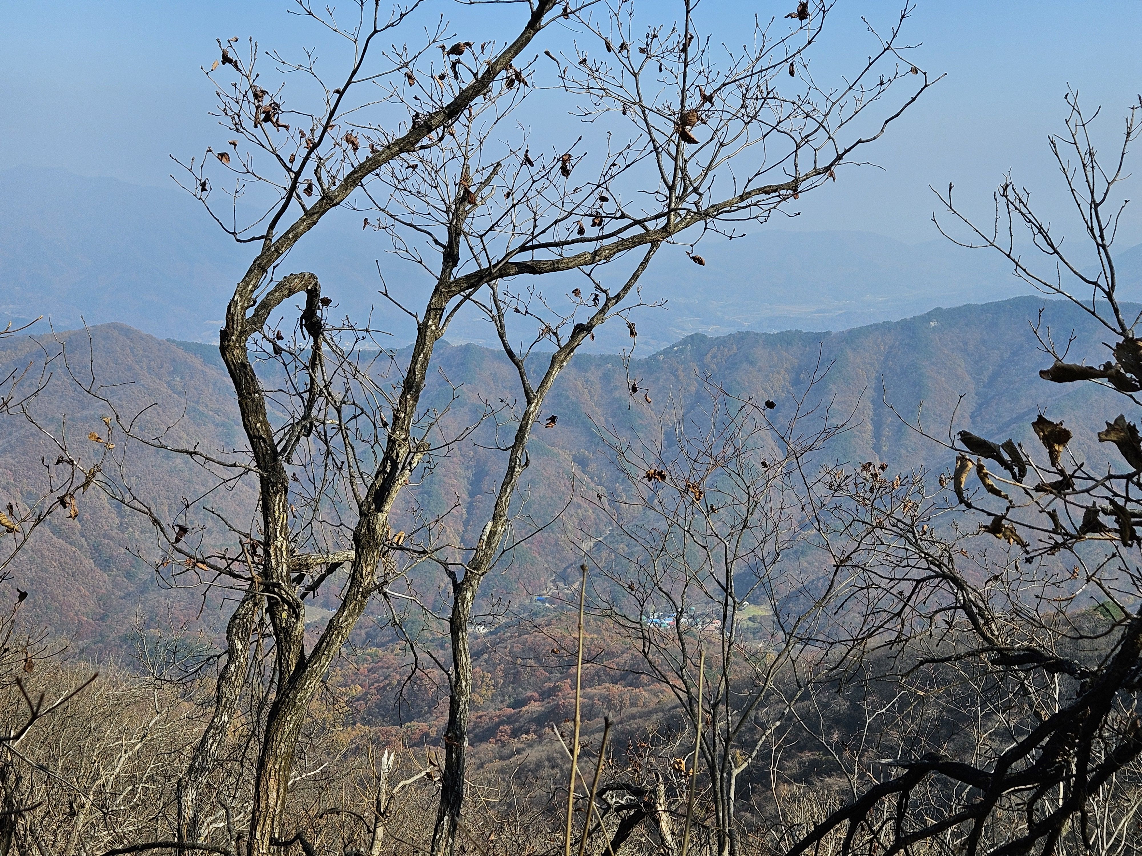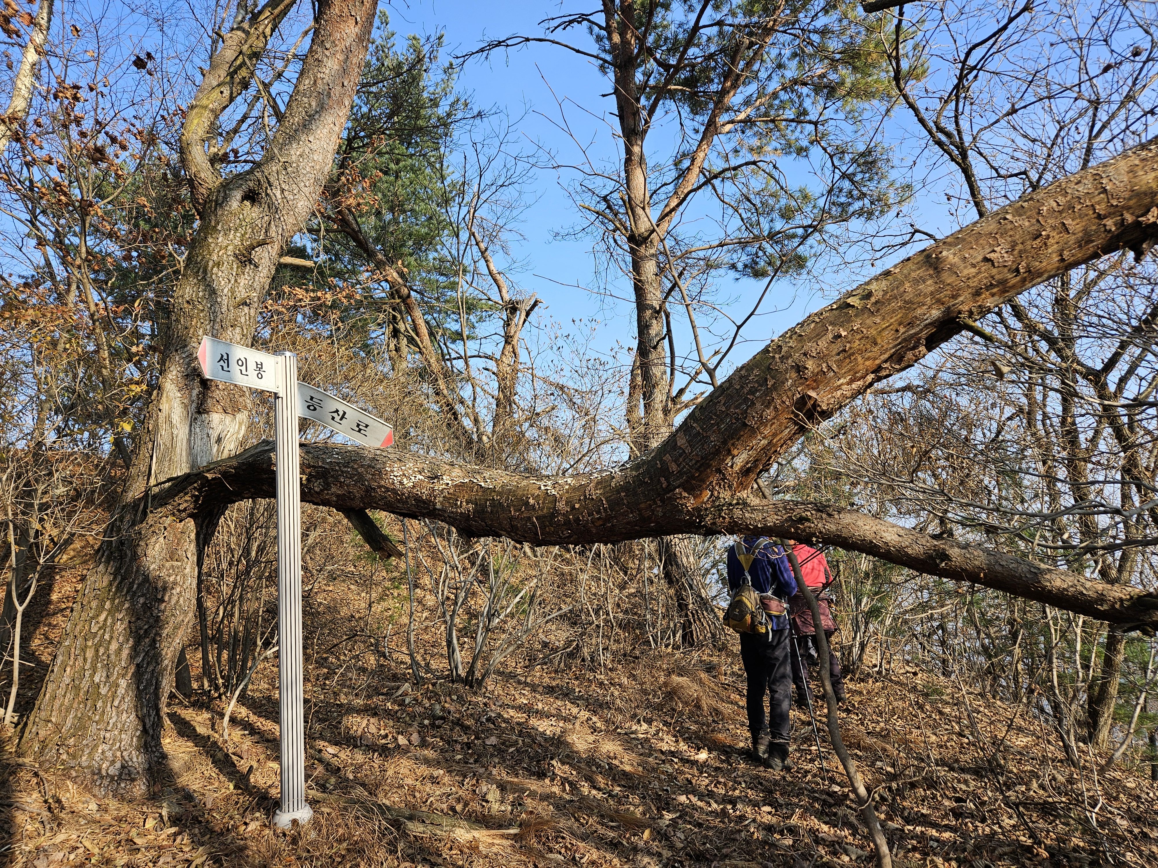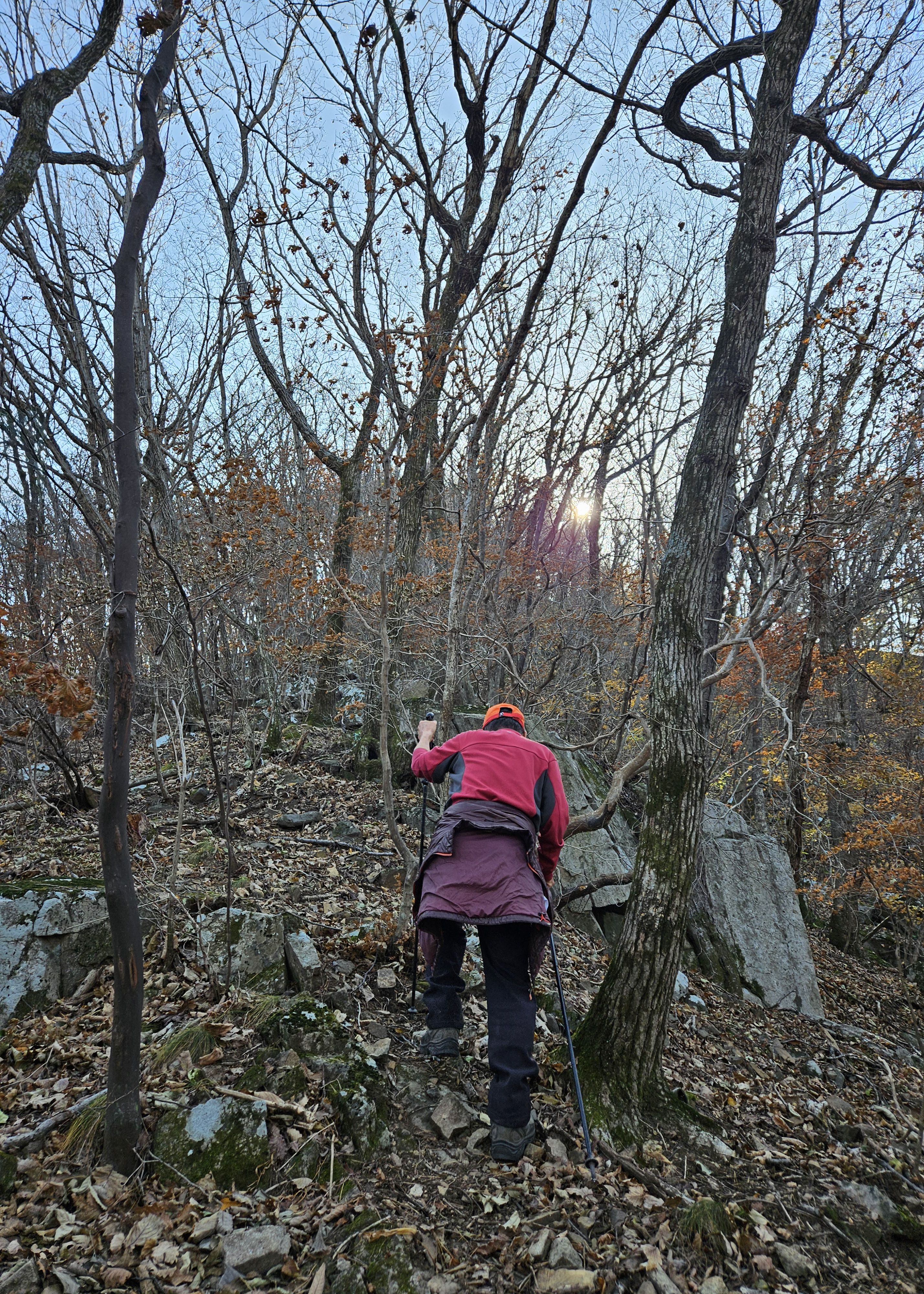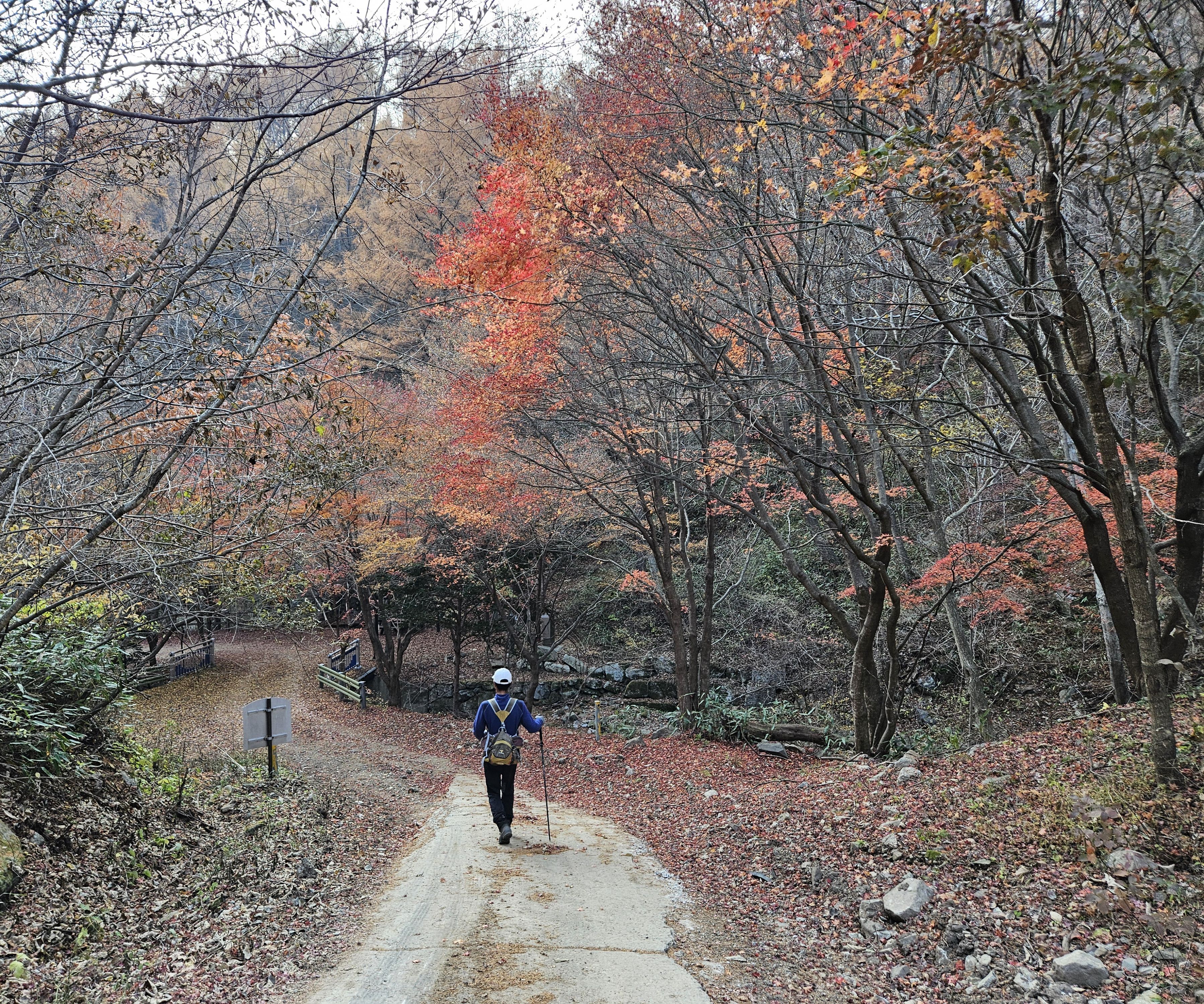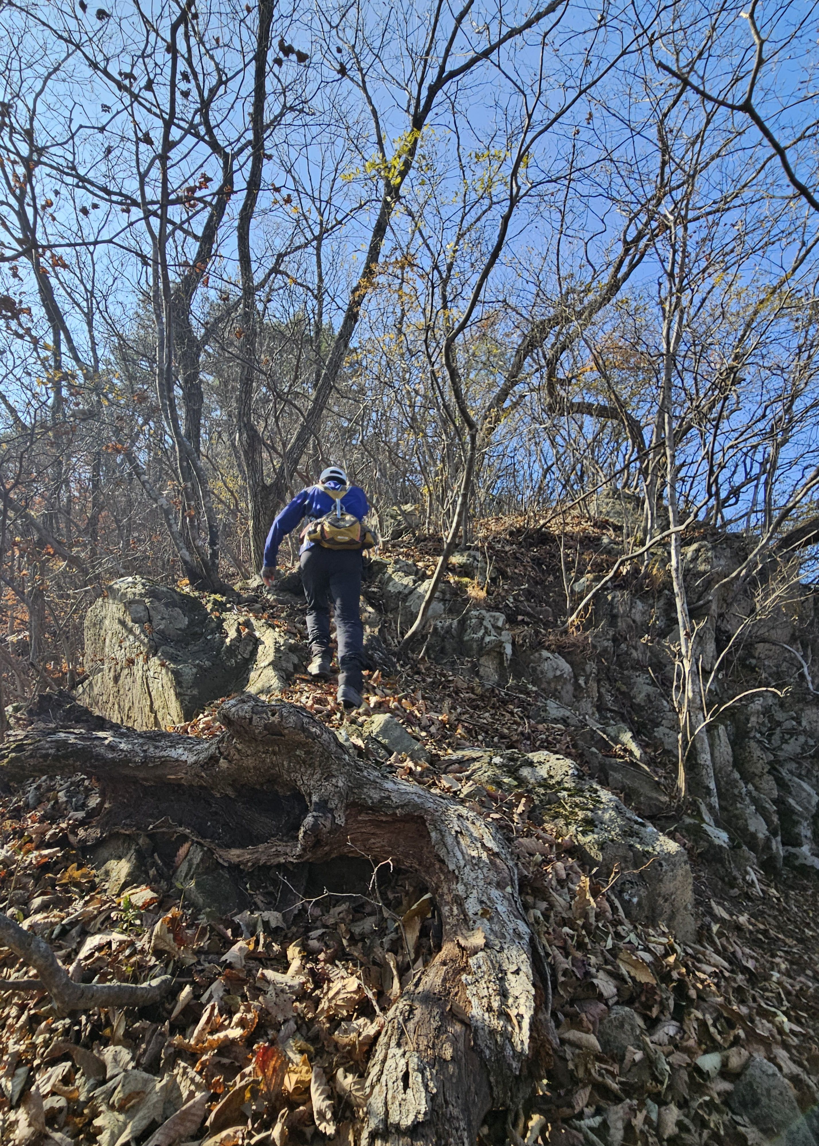 산이 높은 지대라 그런지 산 진입부터 단풍은 떨어진 낙엽이 되어 쌓였고 앙상한 뼈대로만 남은 나무기둥은 외롭게 우뚝~~