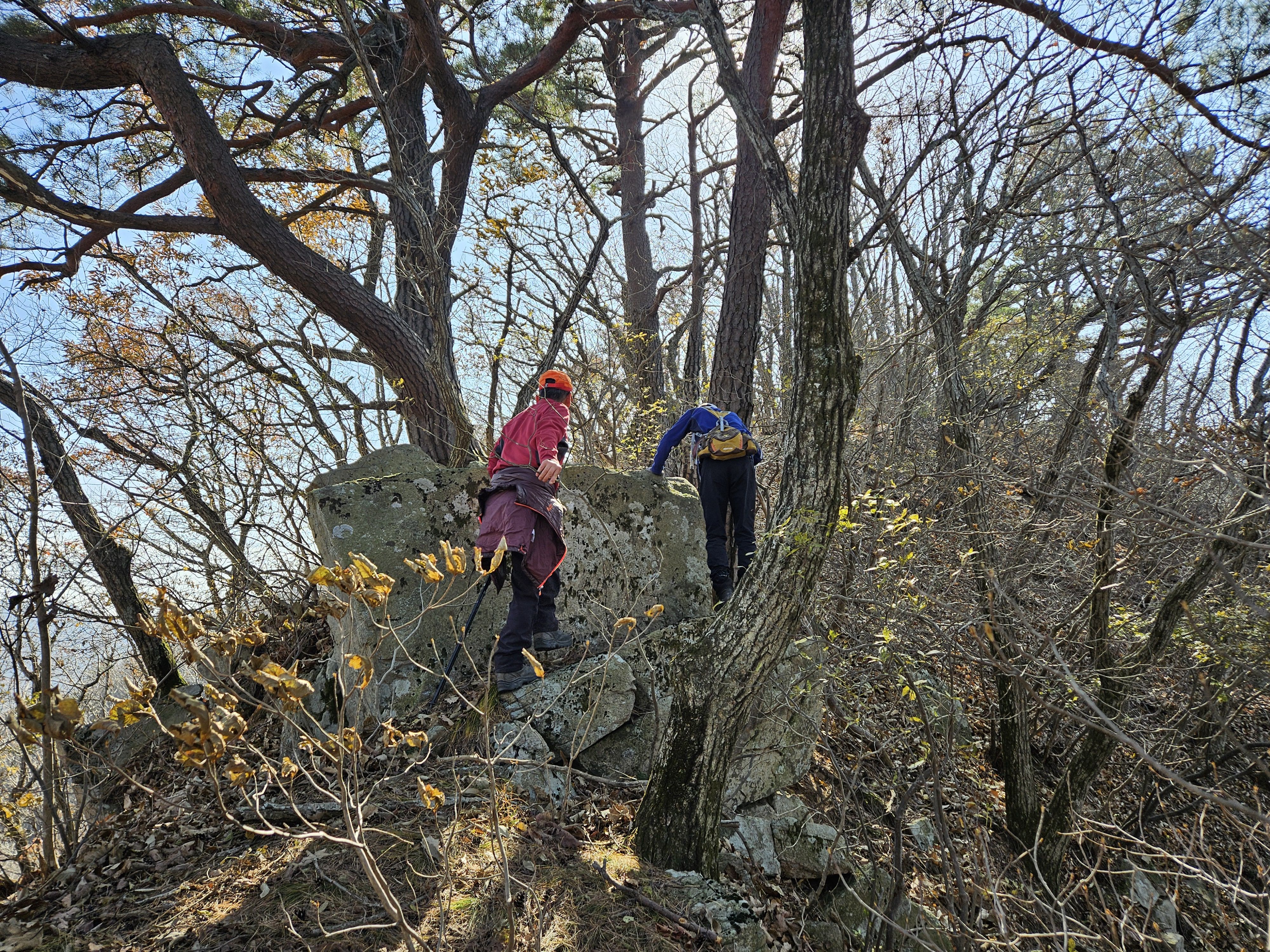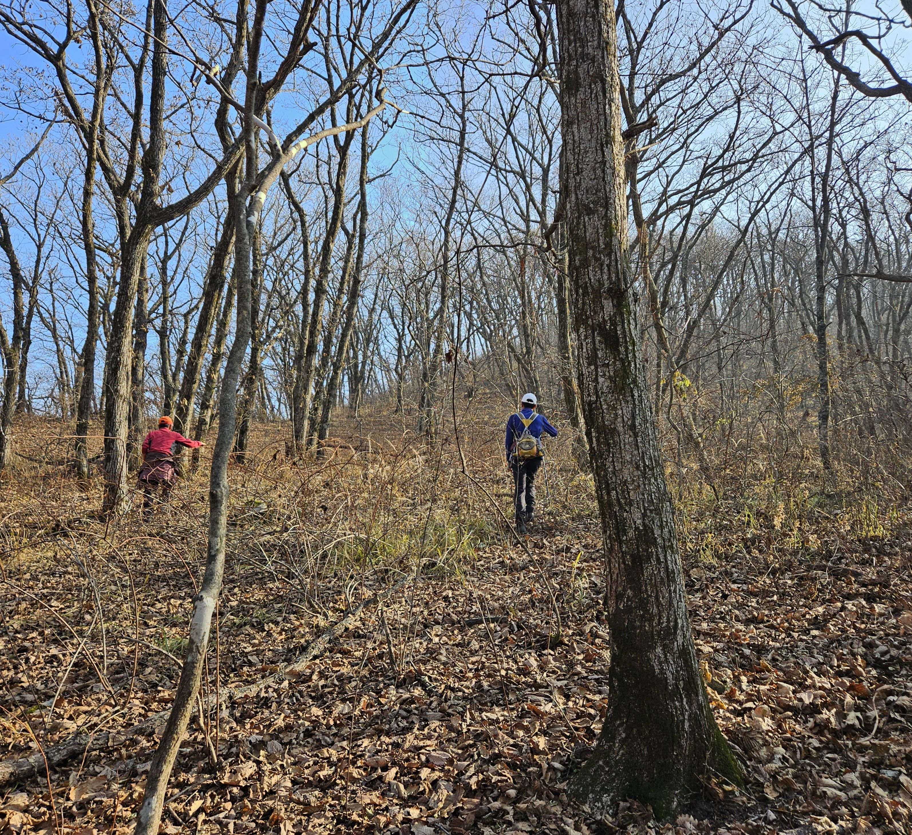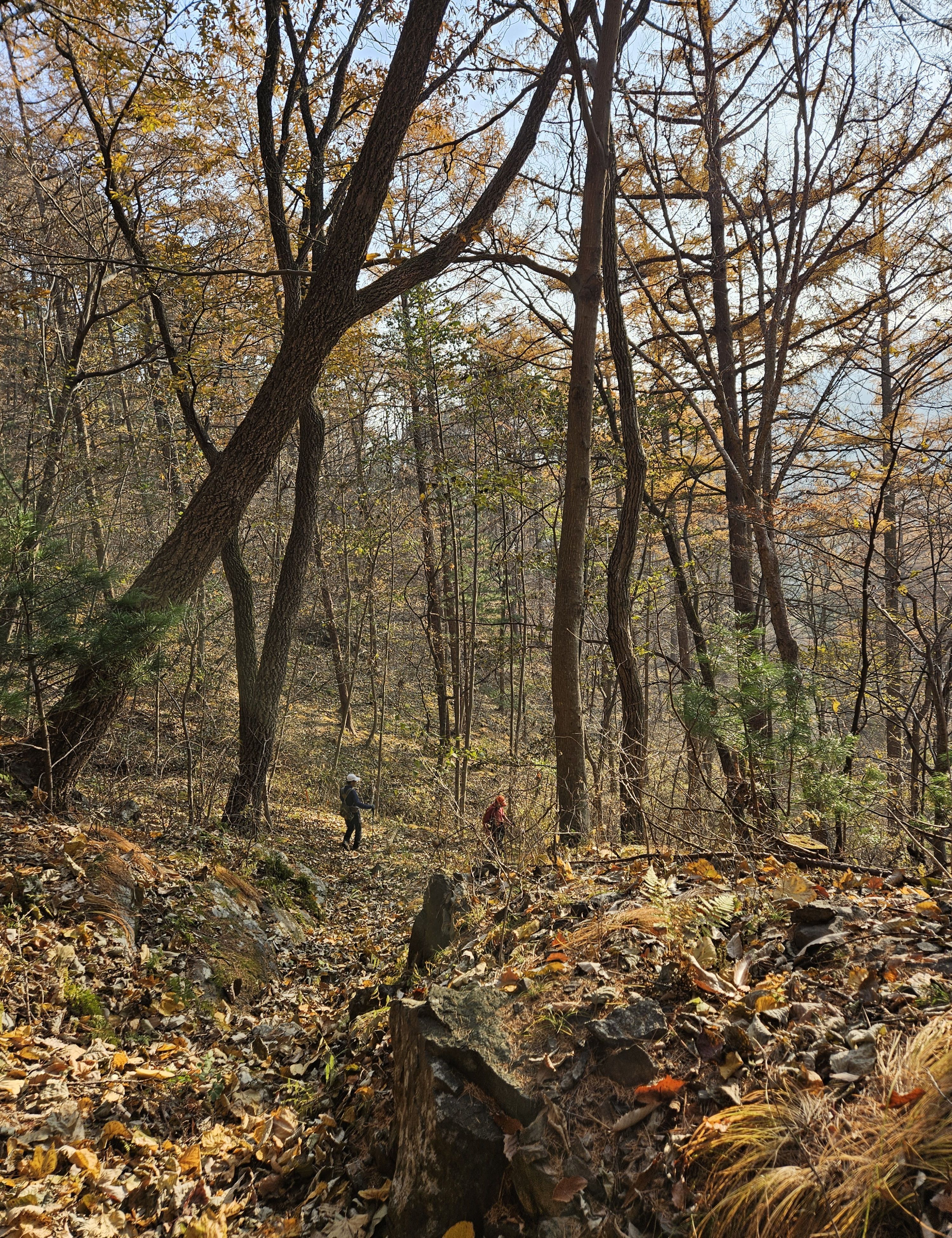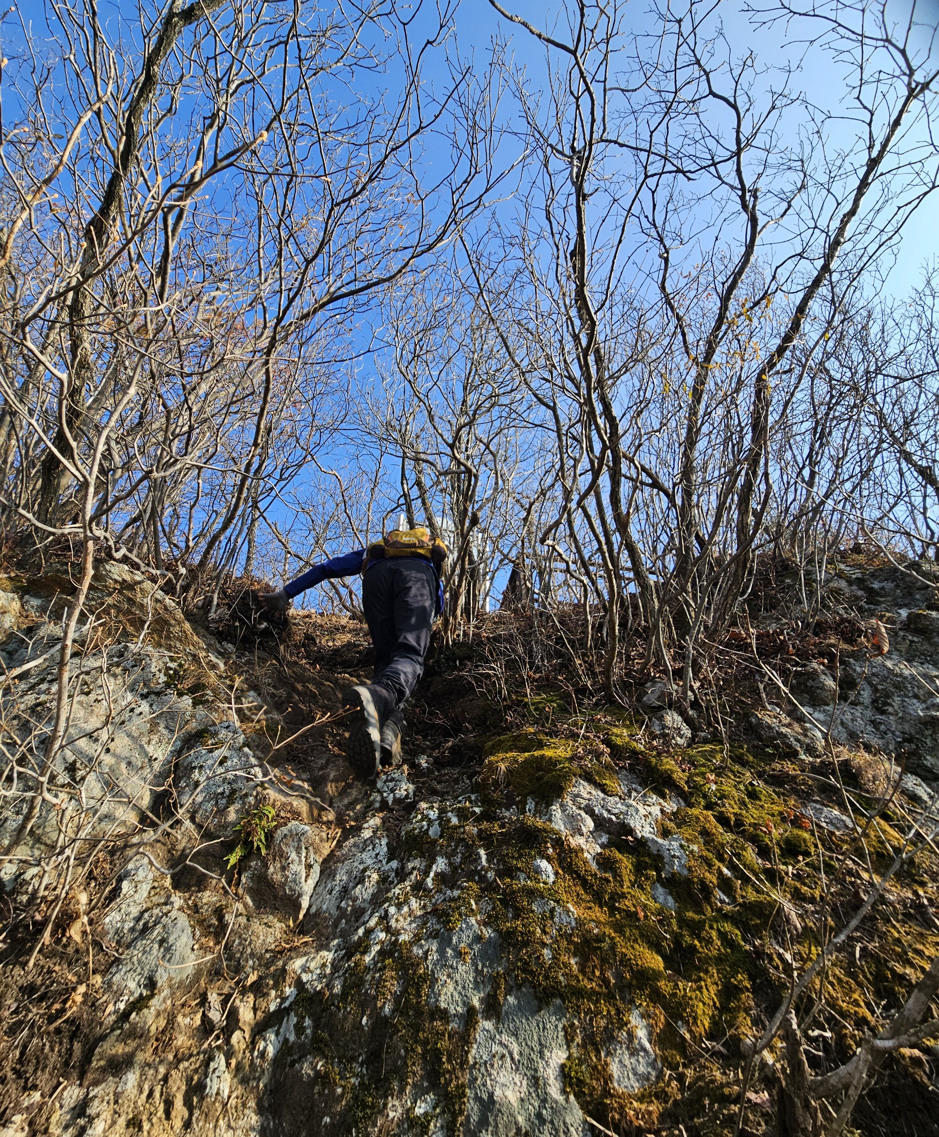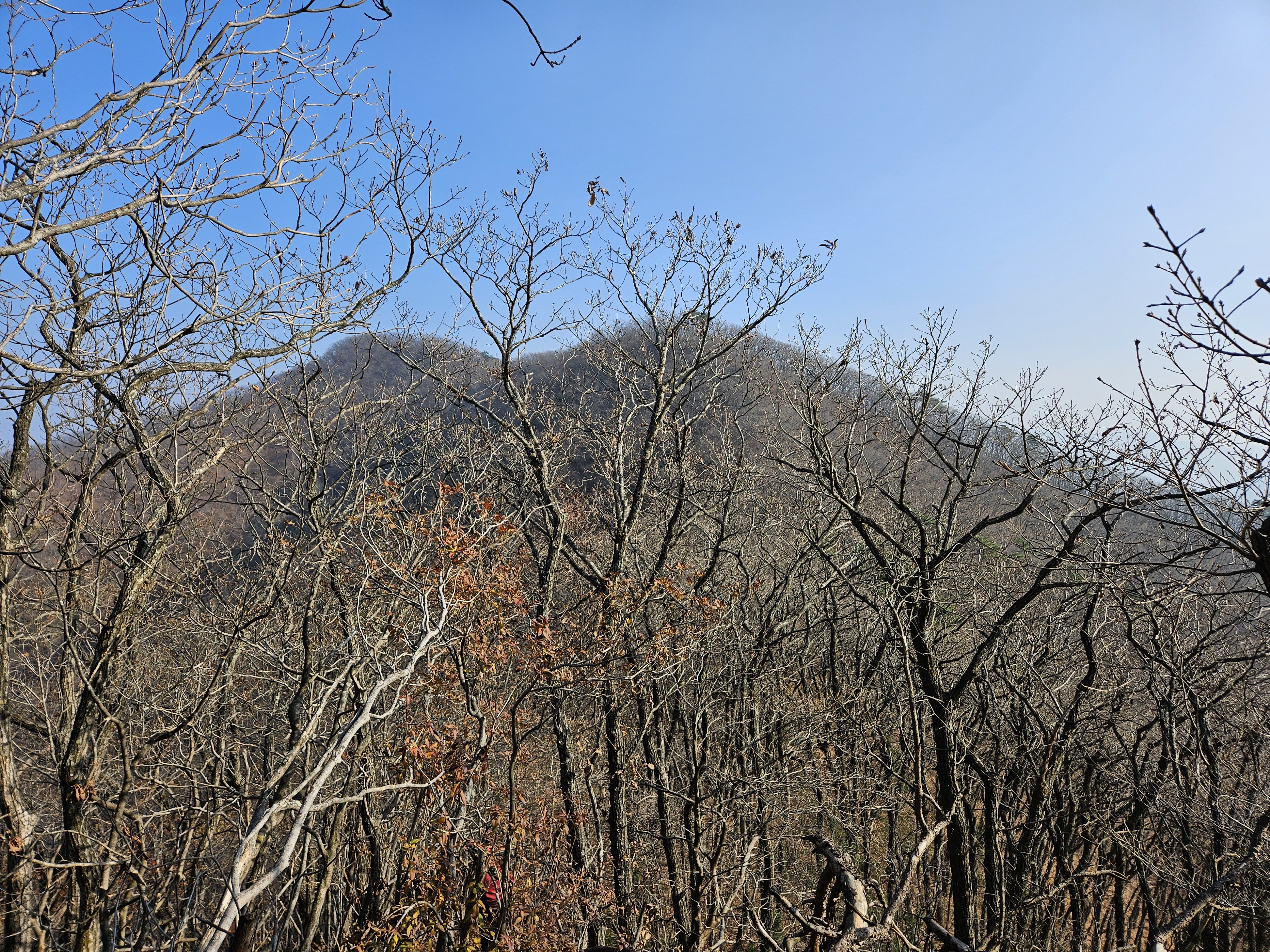 산이 높은 지대라 그런지 산 진입부터 단풍은 떨어진 낙엽이 되어 쌓였고 앙상한 뼈대로만 남은 나무기둥은 외롭게 우뚝~~
