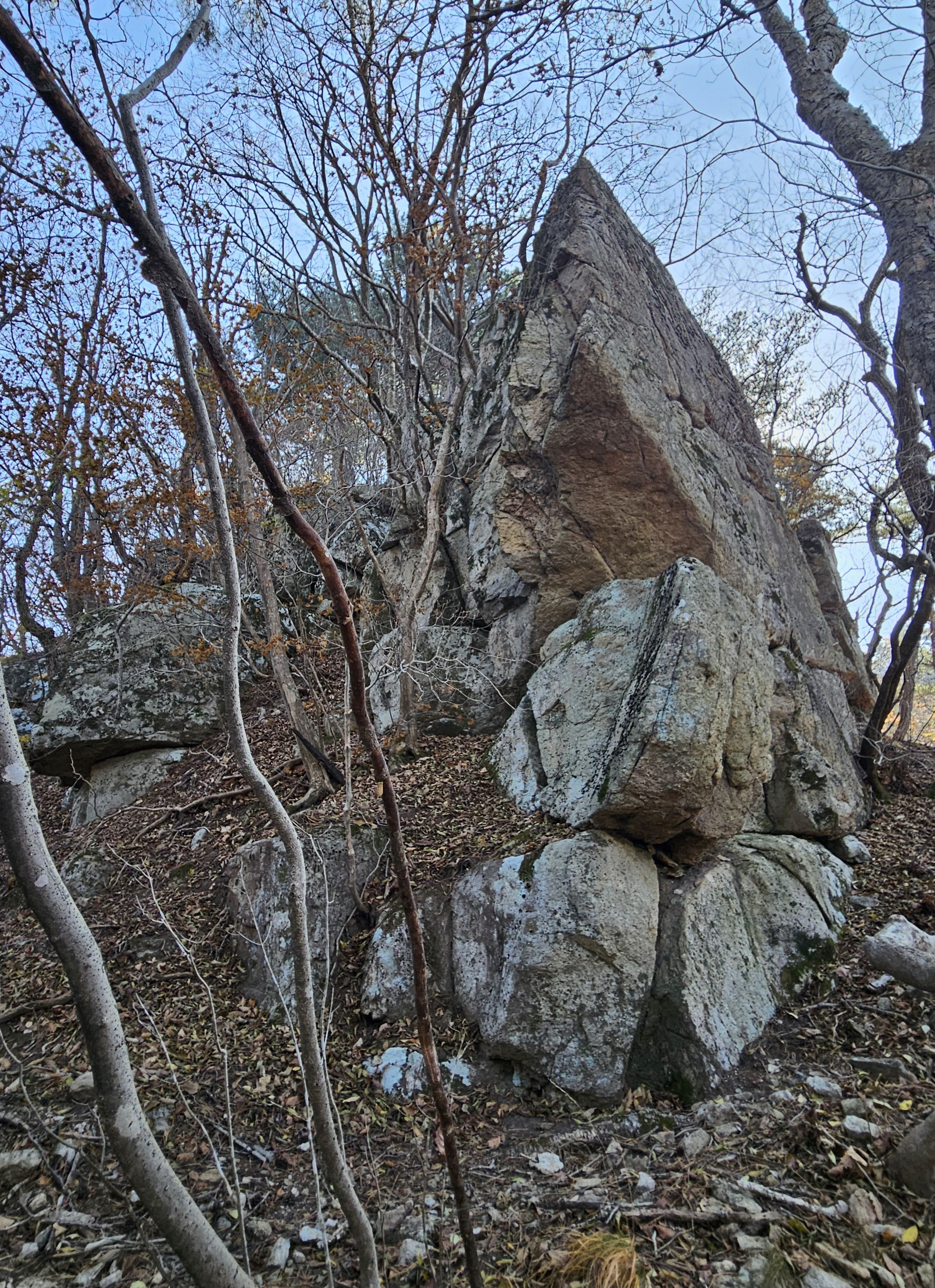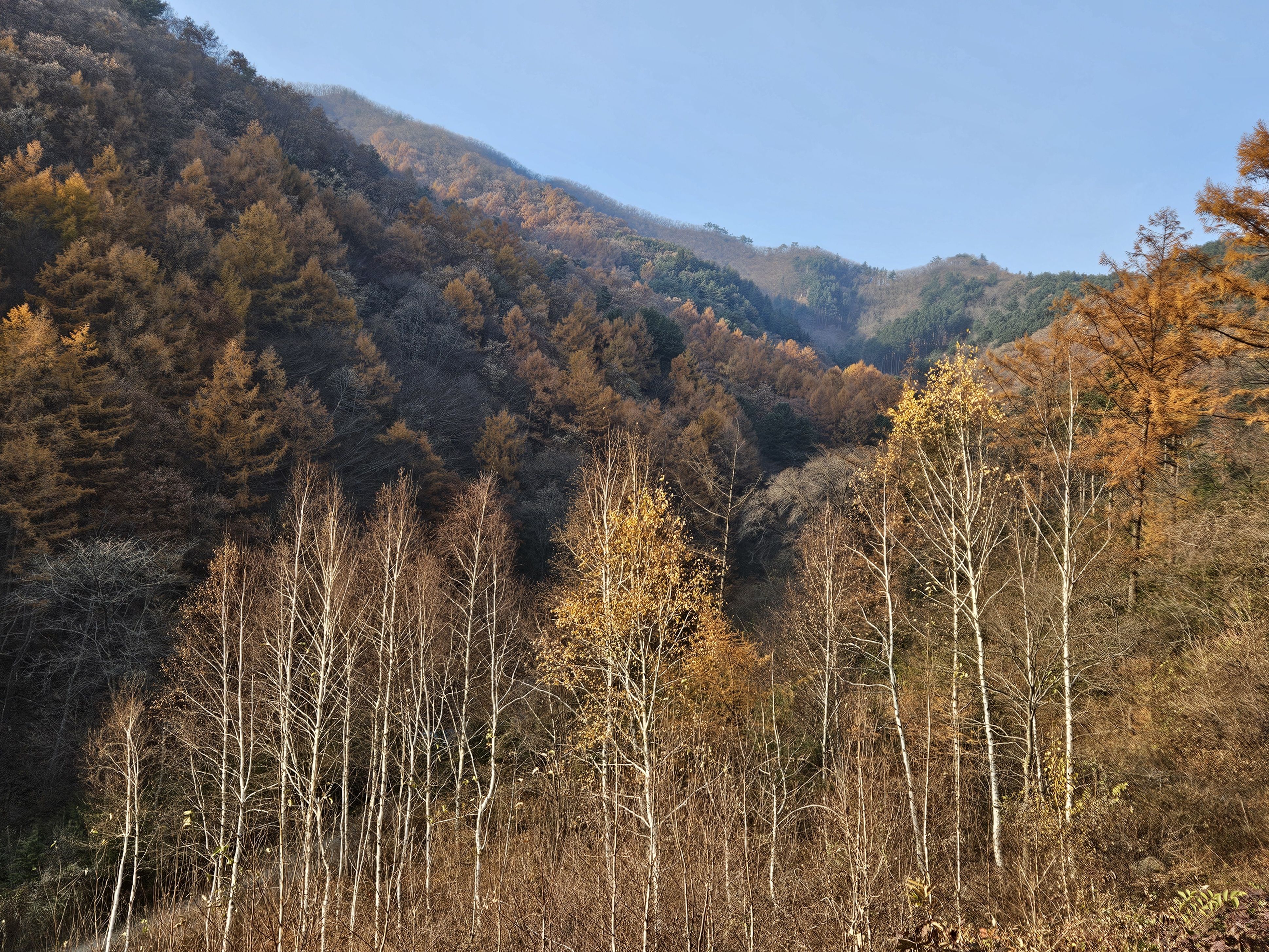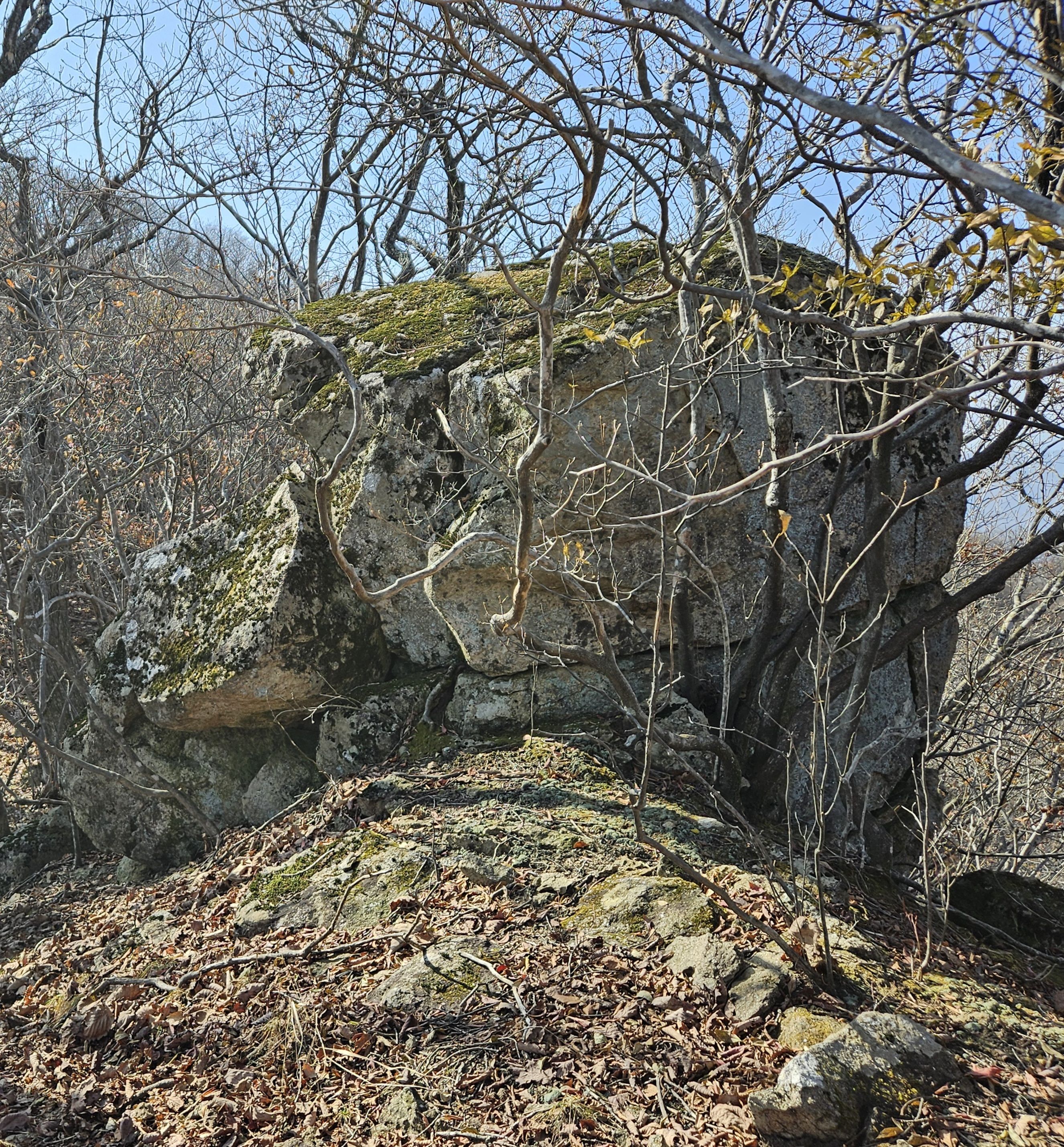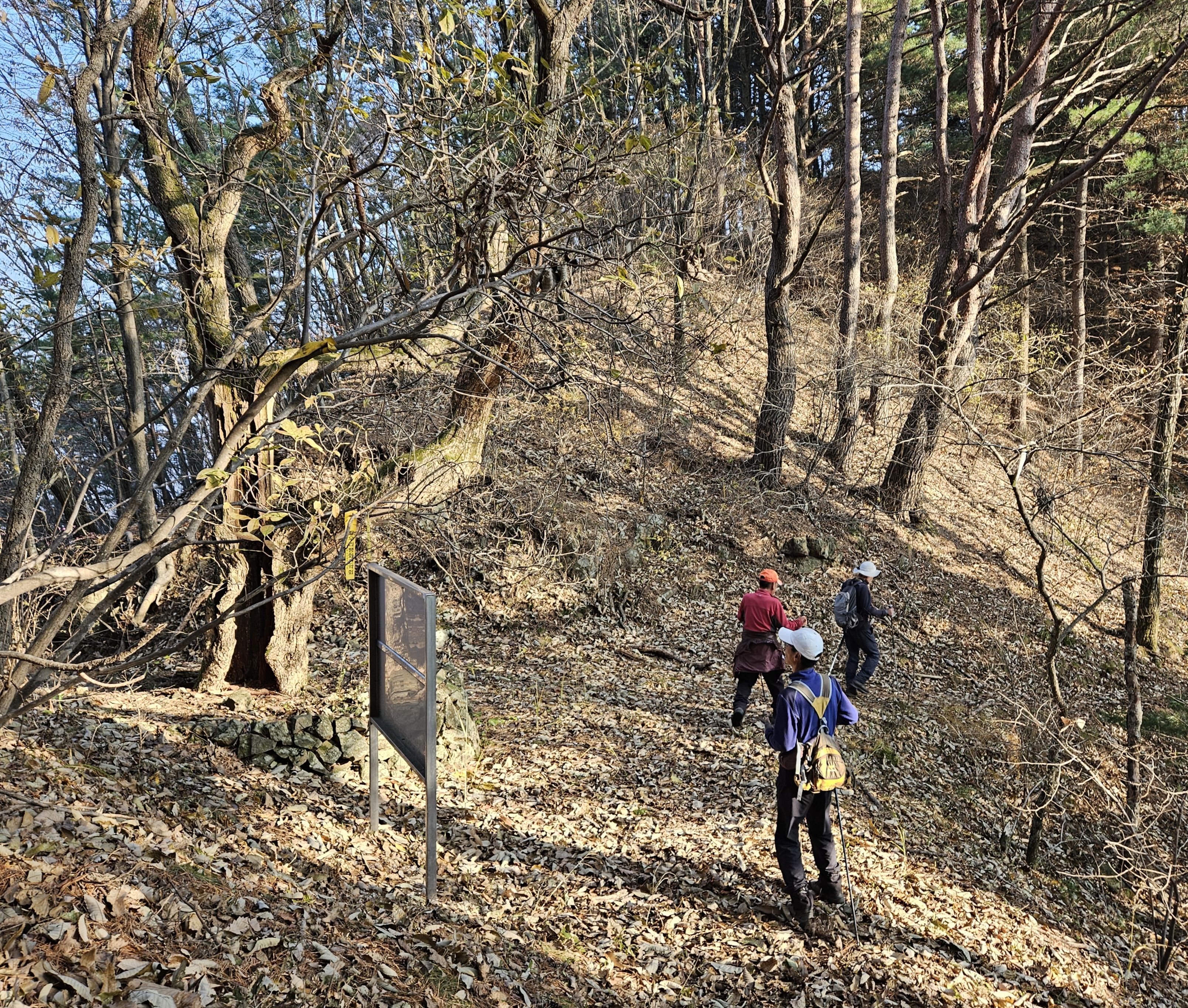산이 높은 지대라 그런지 산 진입부터 단풍은 떨어진 낙엽이 되어 쌓였고 앙상한 뼈대로만 남은 나무기둥은 외롭게 우뚝~~