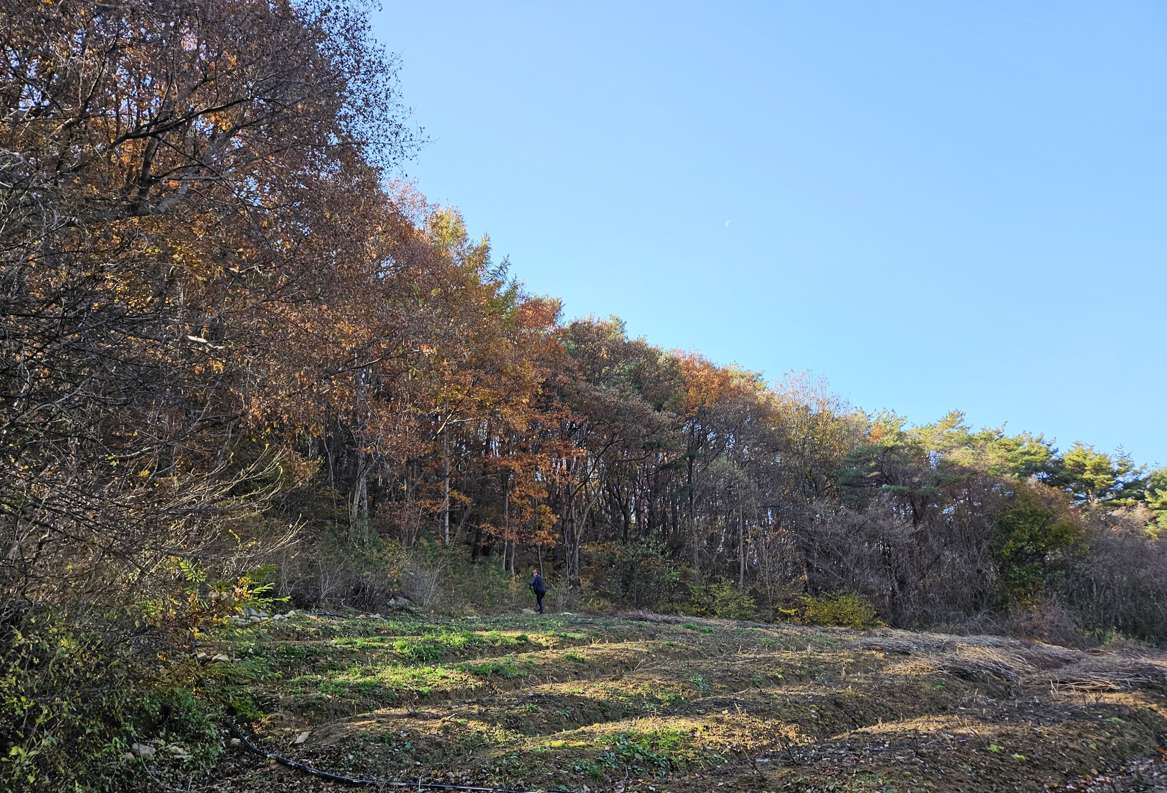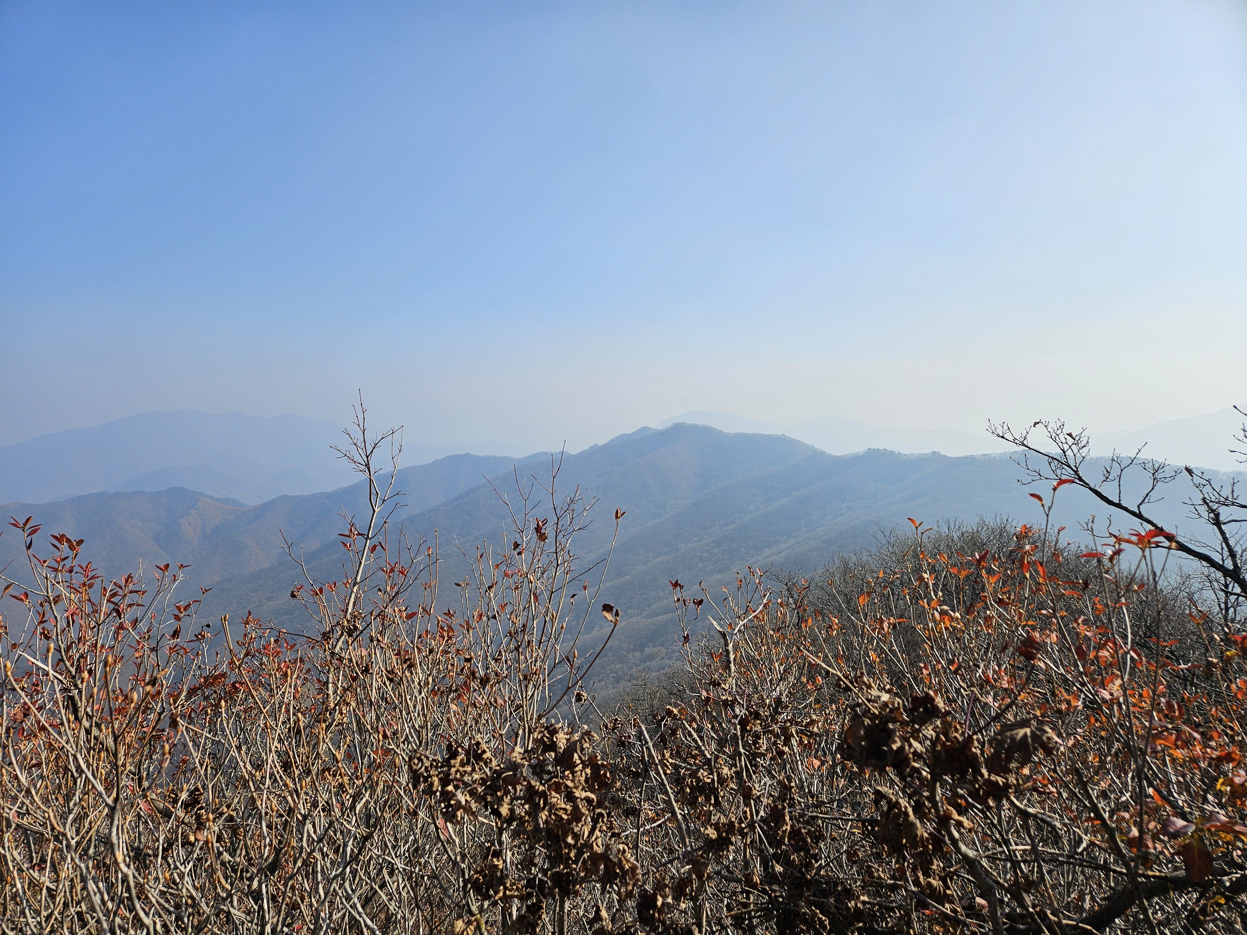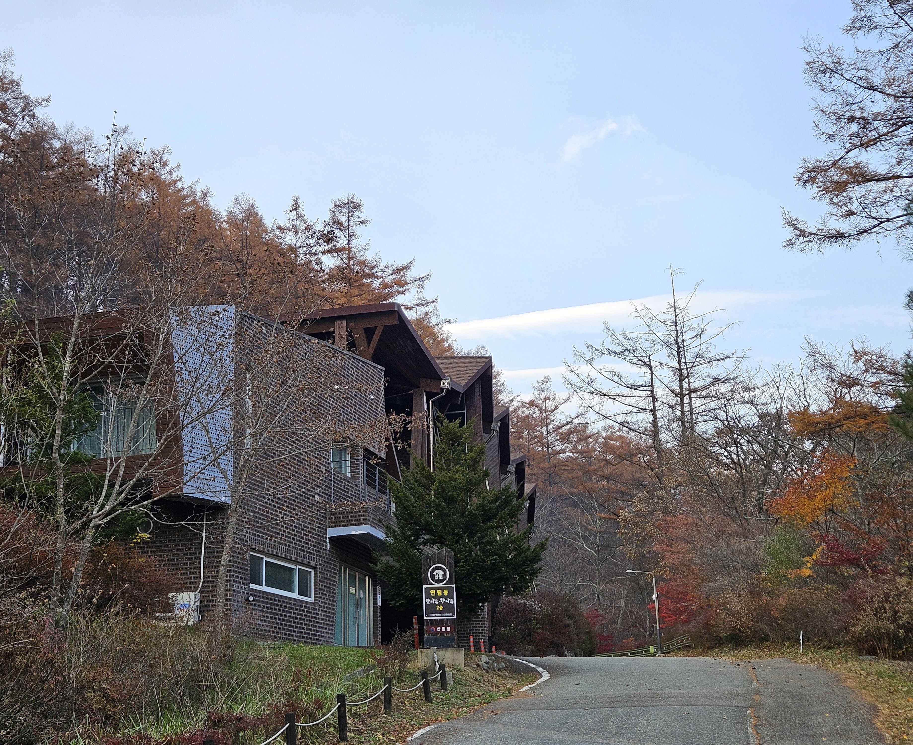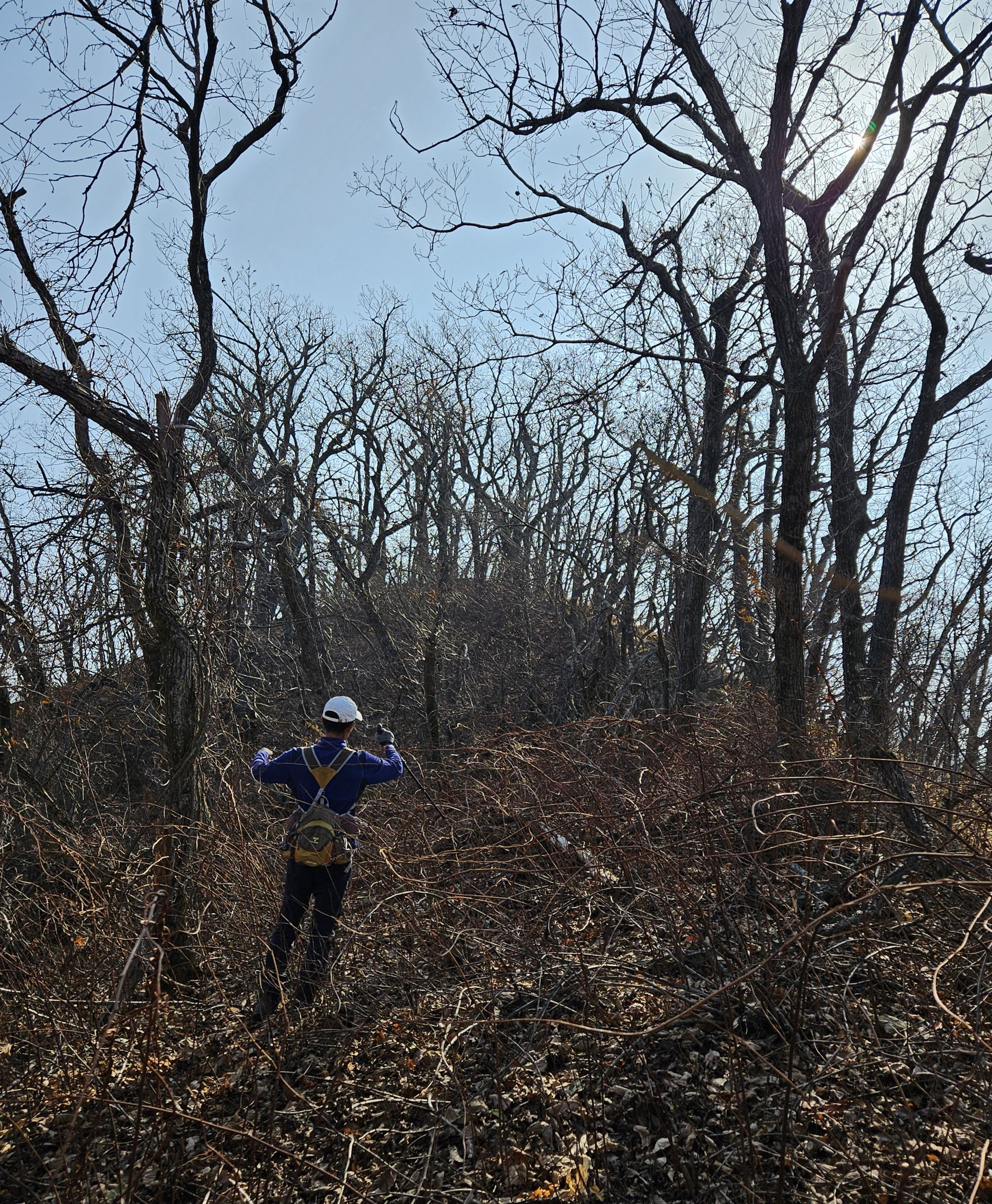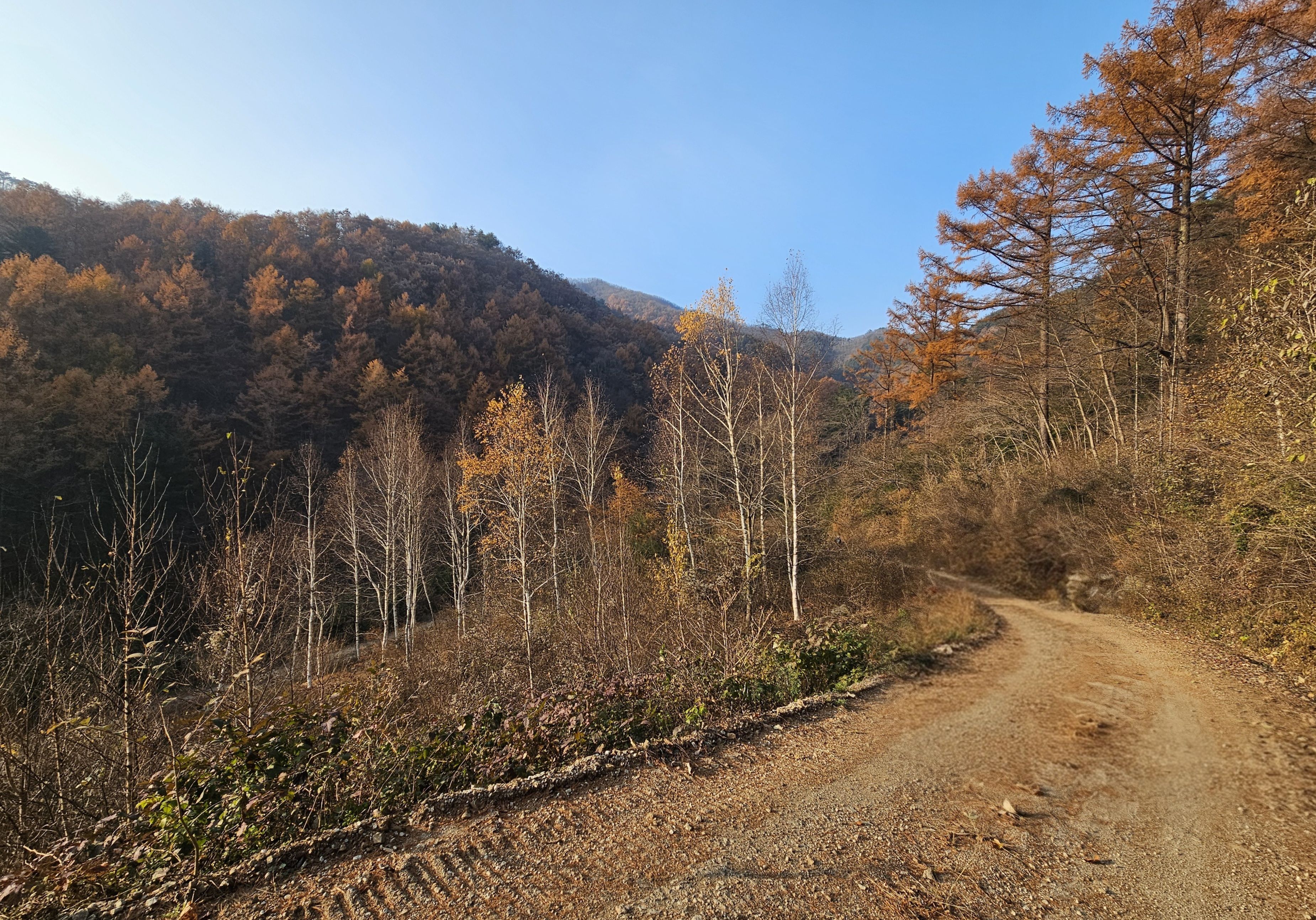 산이 높은 지대라 그런지 산 진입부터 단풍은 떨어진 낙엽이 되어 쌓였고 앙상한 뼈대로만 남은 나무기둥은 외롭게 우뚝~~