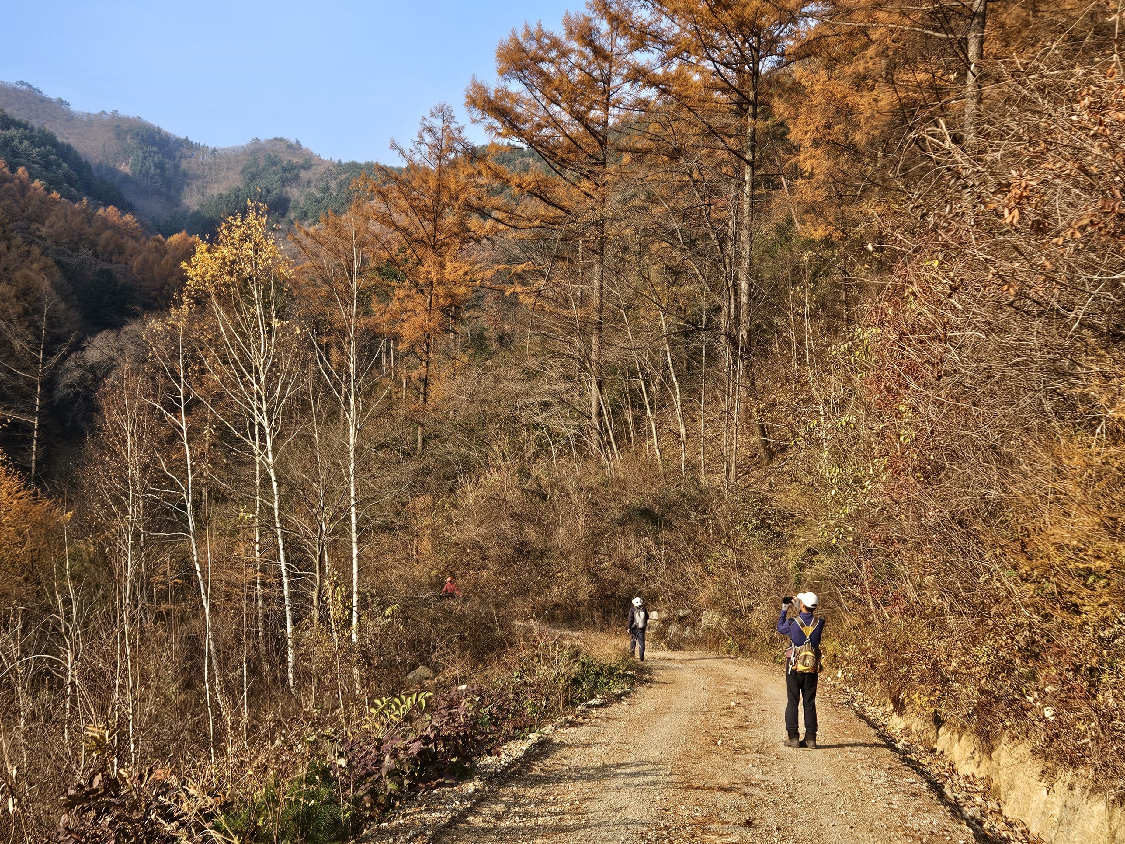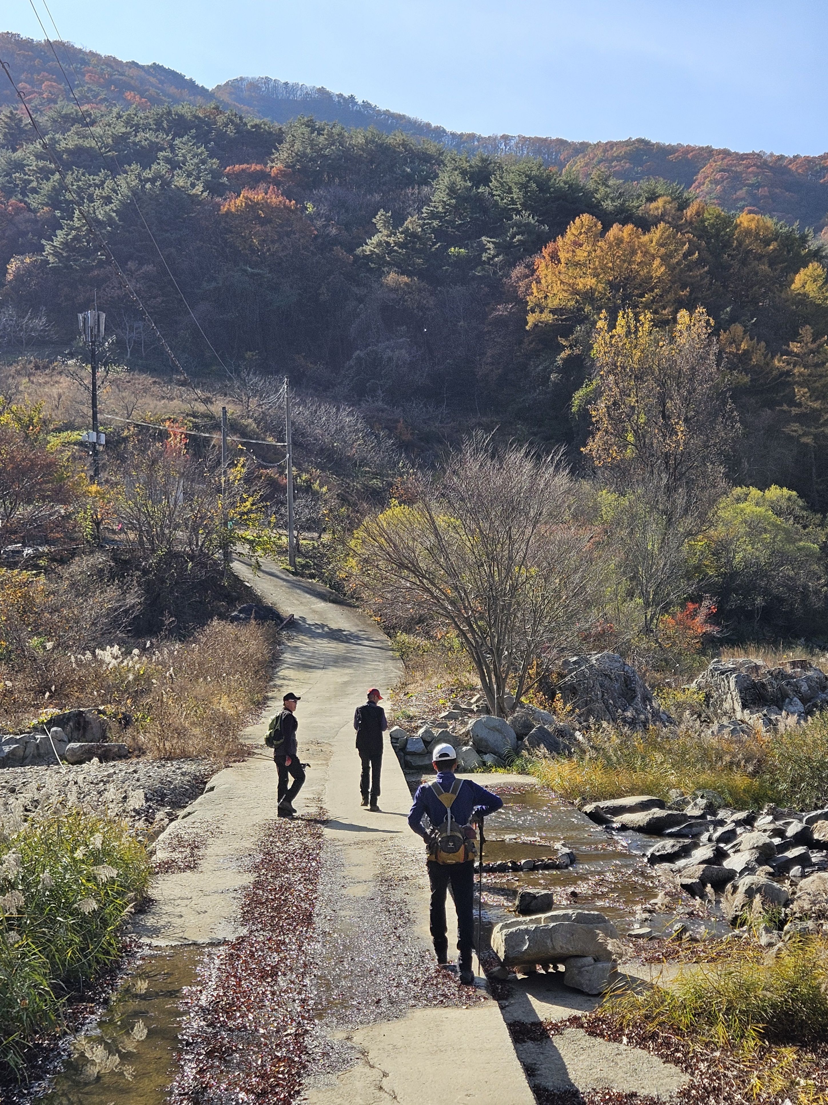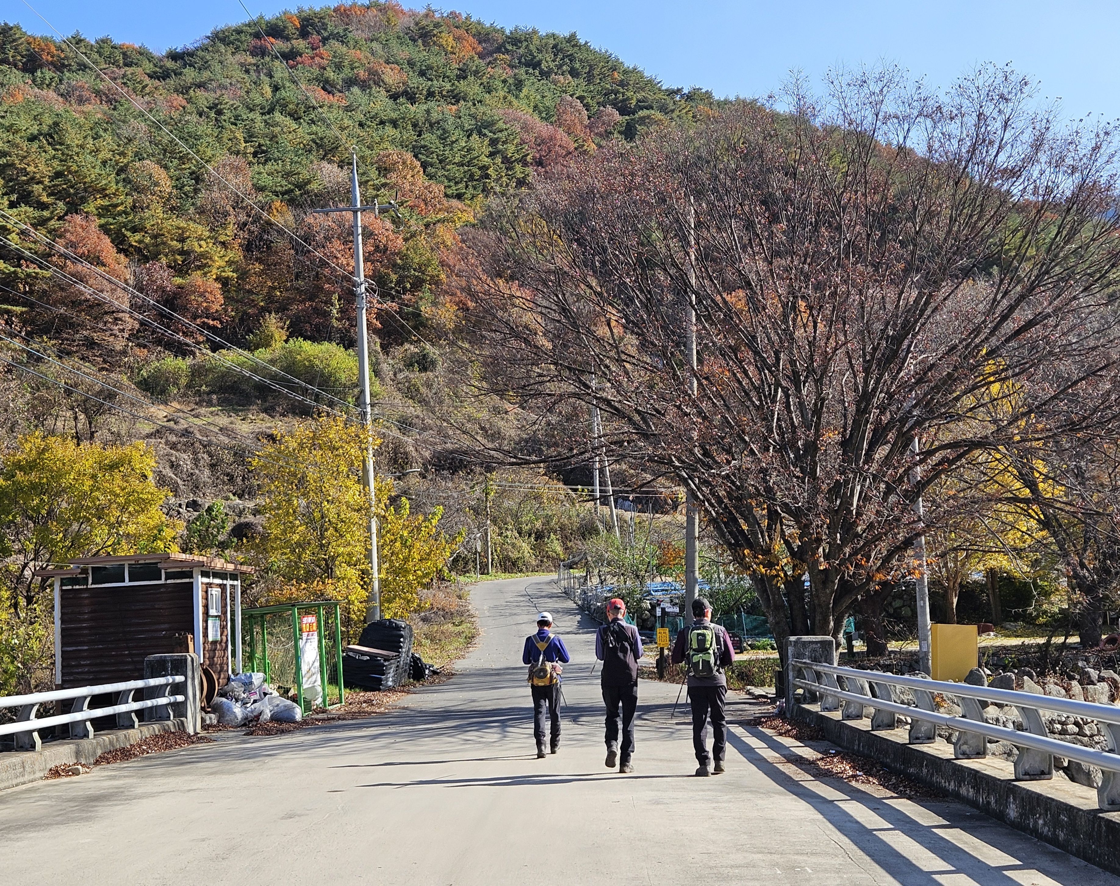 버스타고 올땐 예쁜 단풍길만 보았는데 산으로 접어드니 앙상하게 남은 나뭇가지만 삭막하게 보입니다.