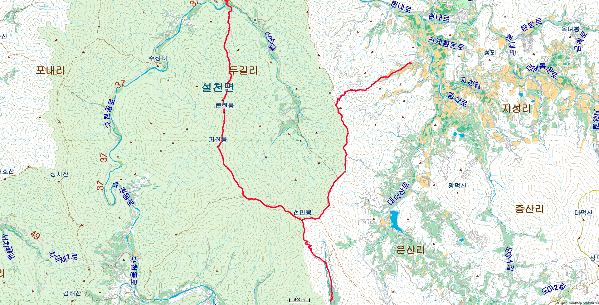 전북 무주군 설천면 두길리/심곡리 (구산마을-설천정수장-구산-큰절봉-거칠벙-선인봉-삼각점봉) 덕유산자연휴양림