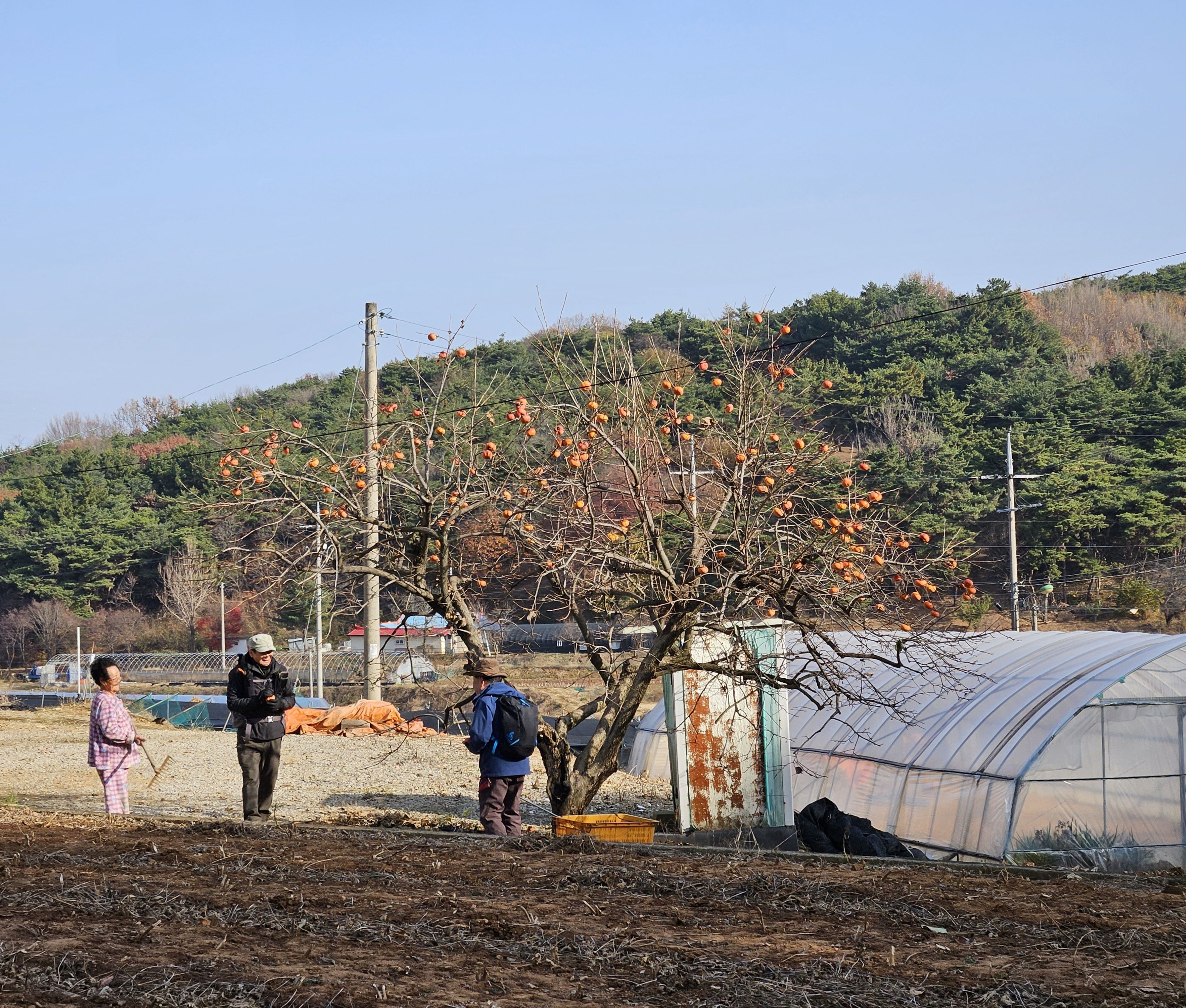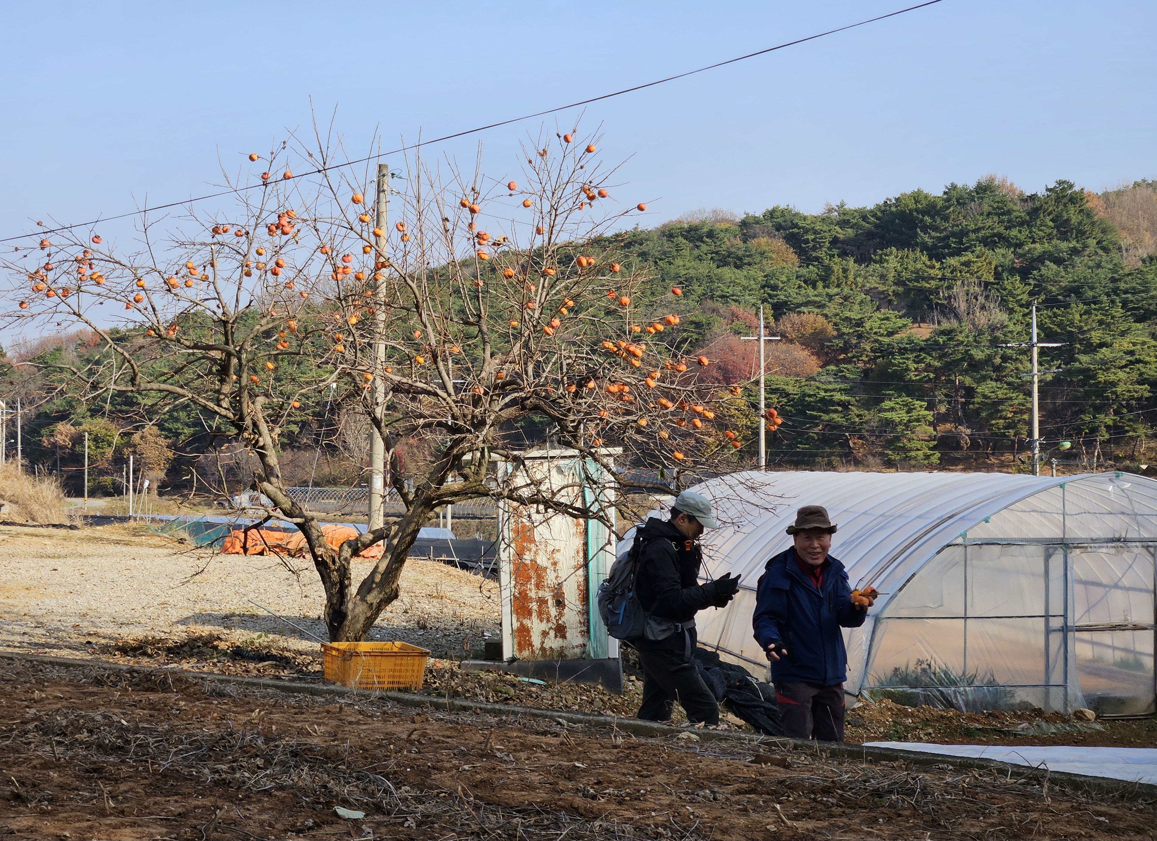 인심 좋으신 할머니 단감 따 먹고 가라십니다.