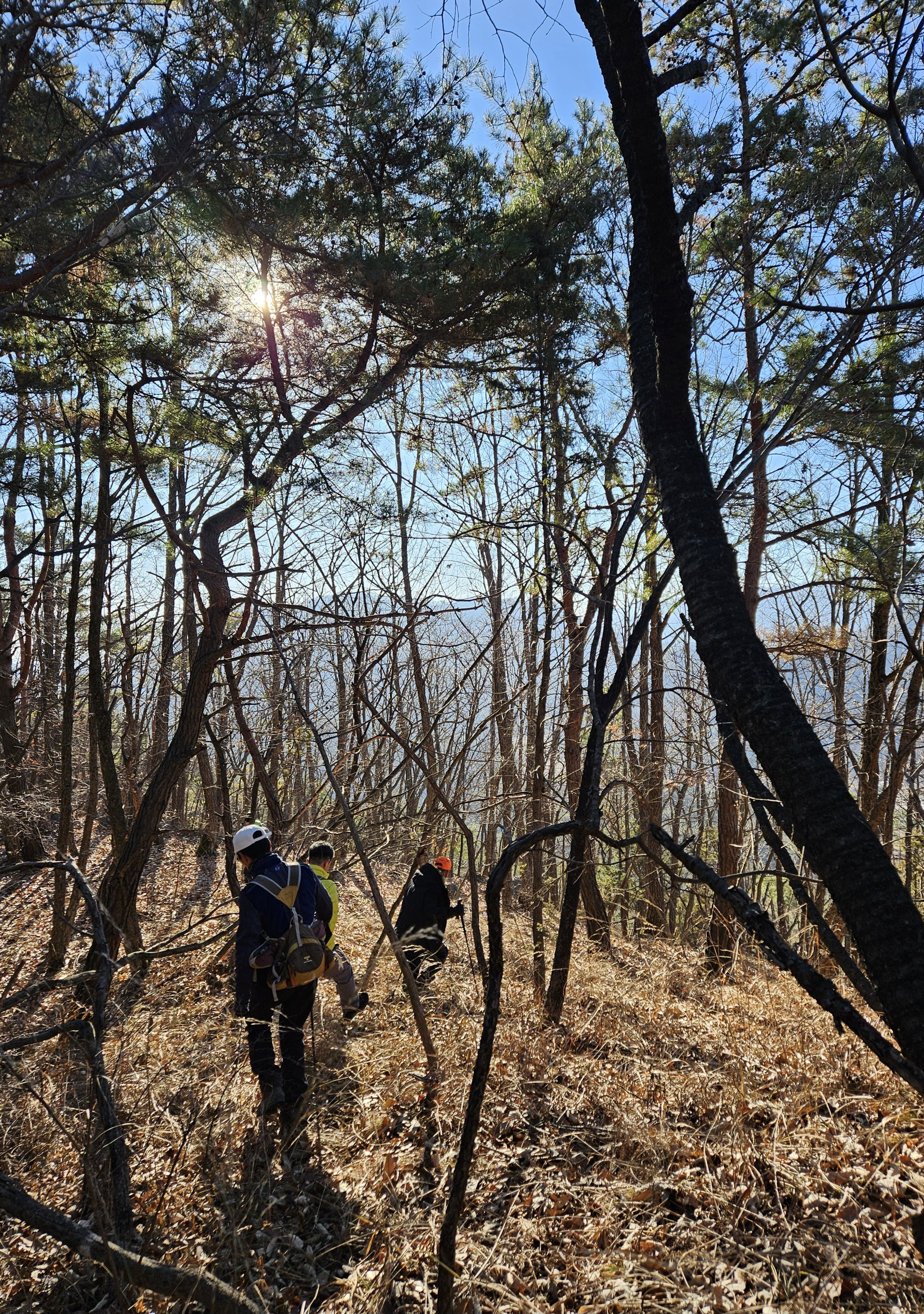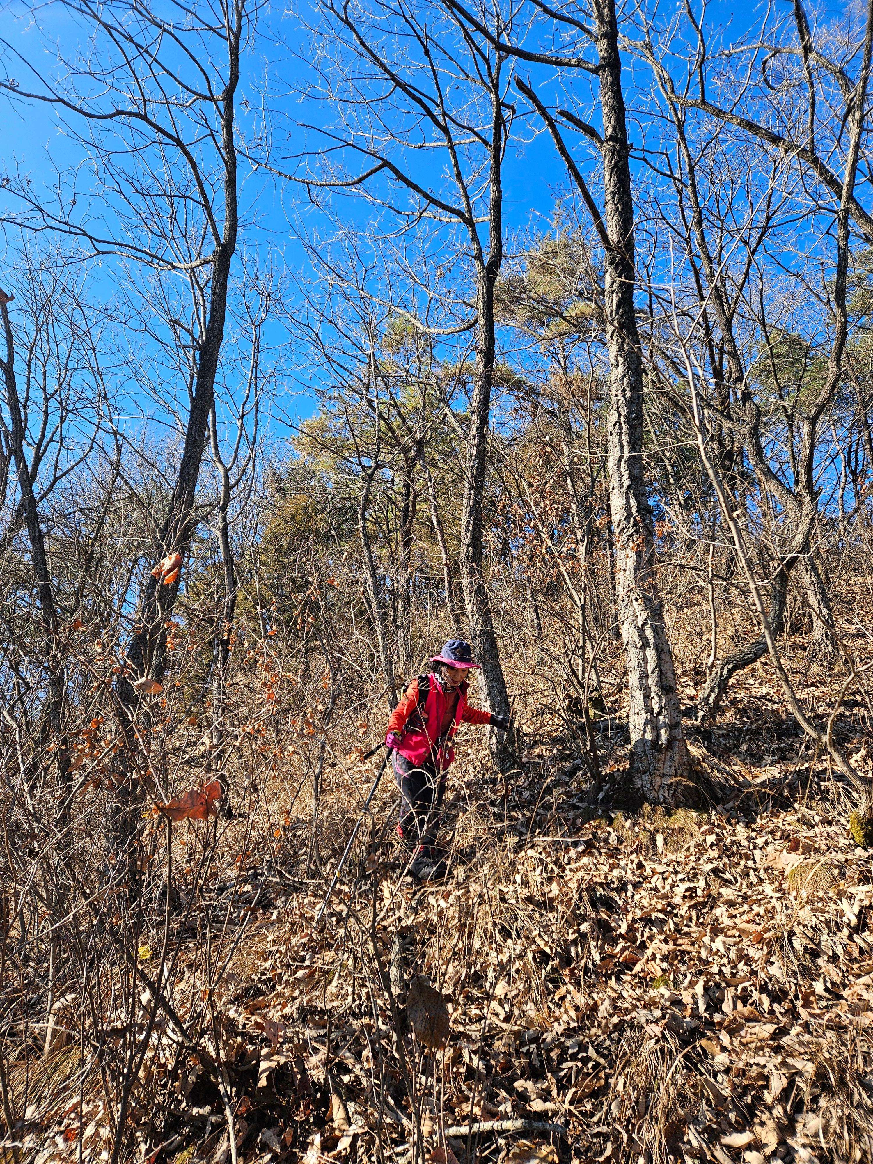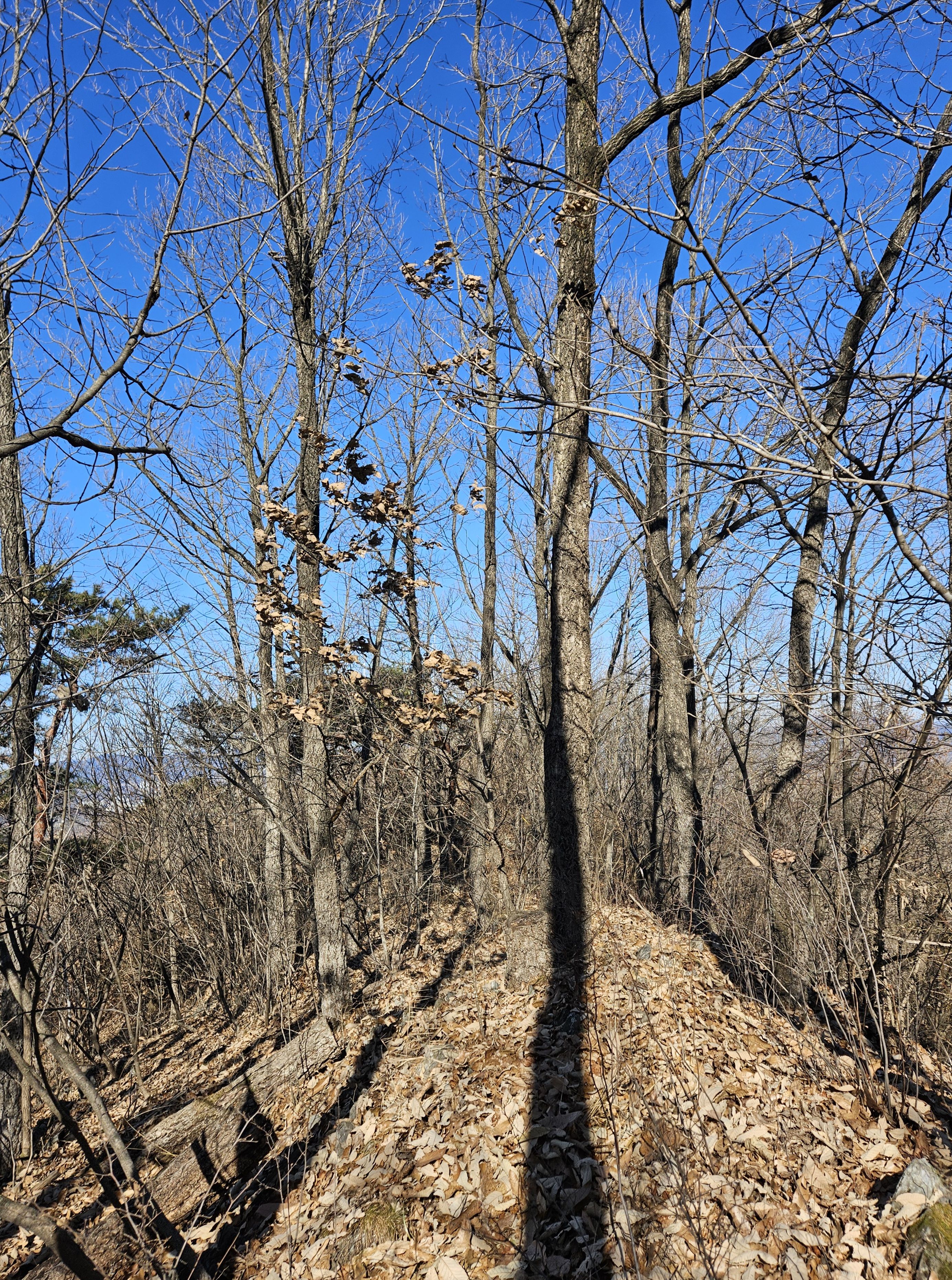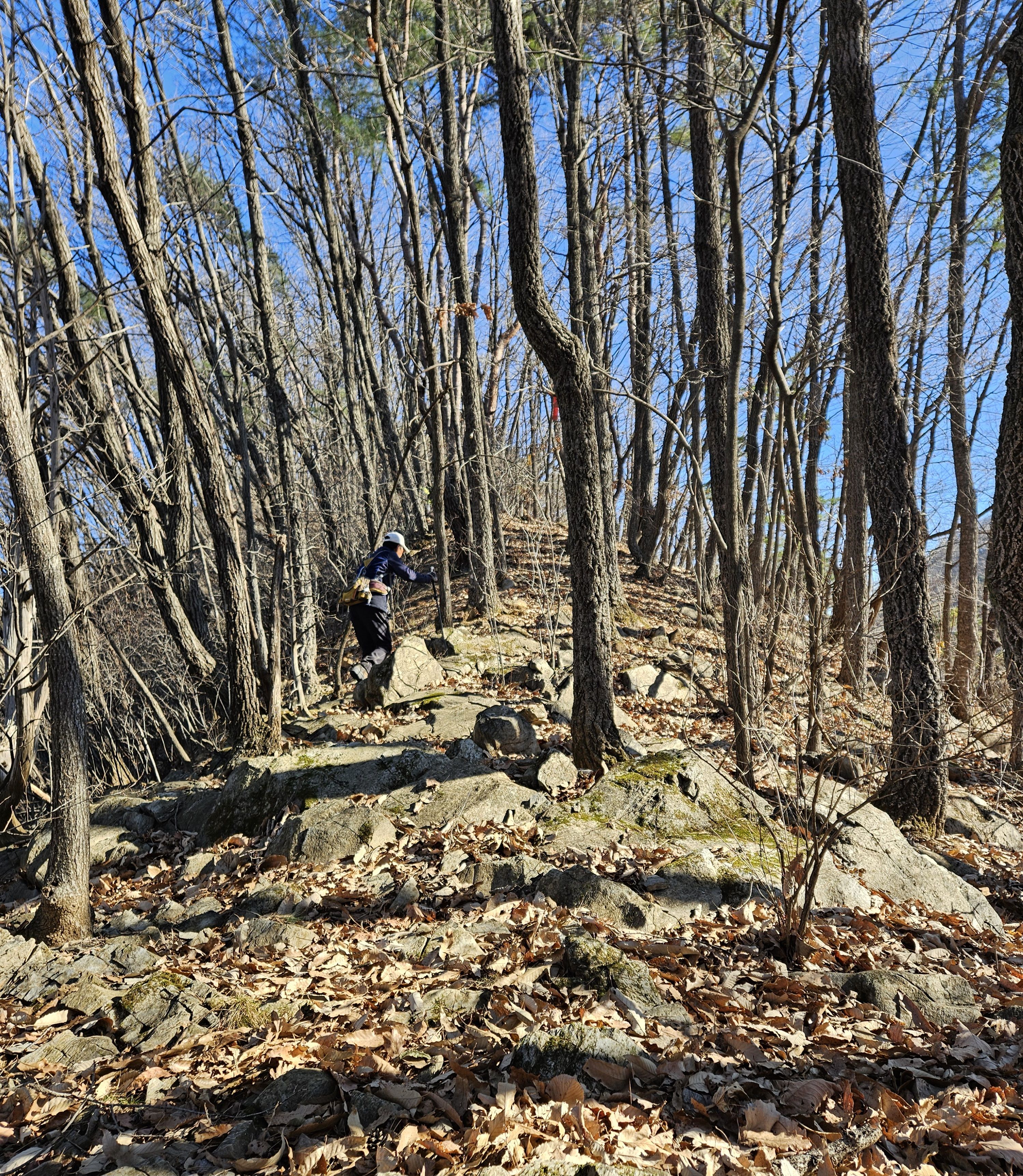 산행들머리 도착 시간 오전 9시12분 무지 추울것 같았는데 바람이 없고 맑은 날씨 (햇볕 쨍~~) 로 전혀 춥지를 않고 오히려 살짝 땀이 날 정도로 날씨 도와주어 짧은 산행 이었기에 가뿐히 마무리하고 모처럼 일찍 하산 했습니다.