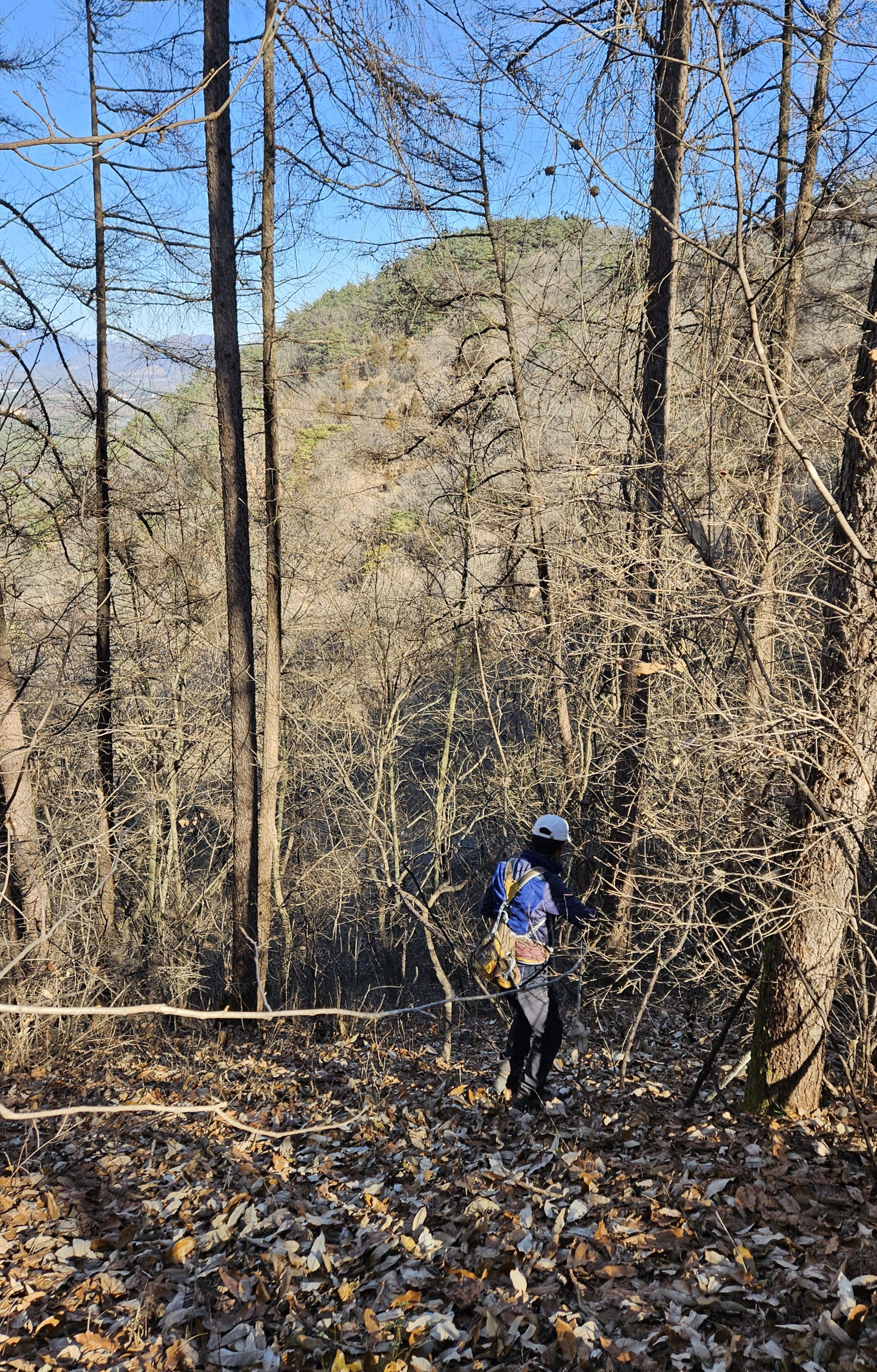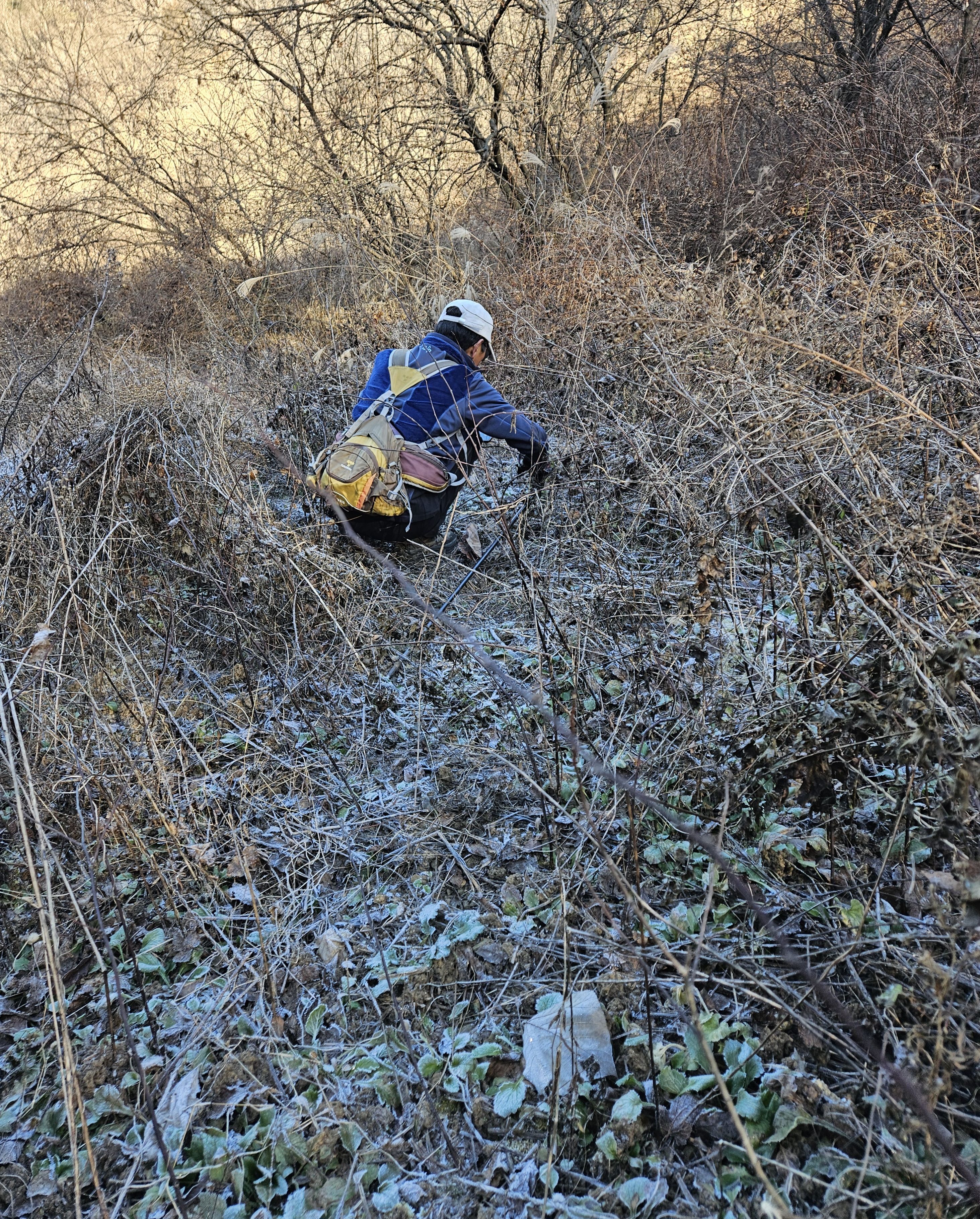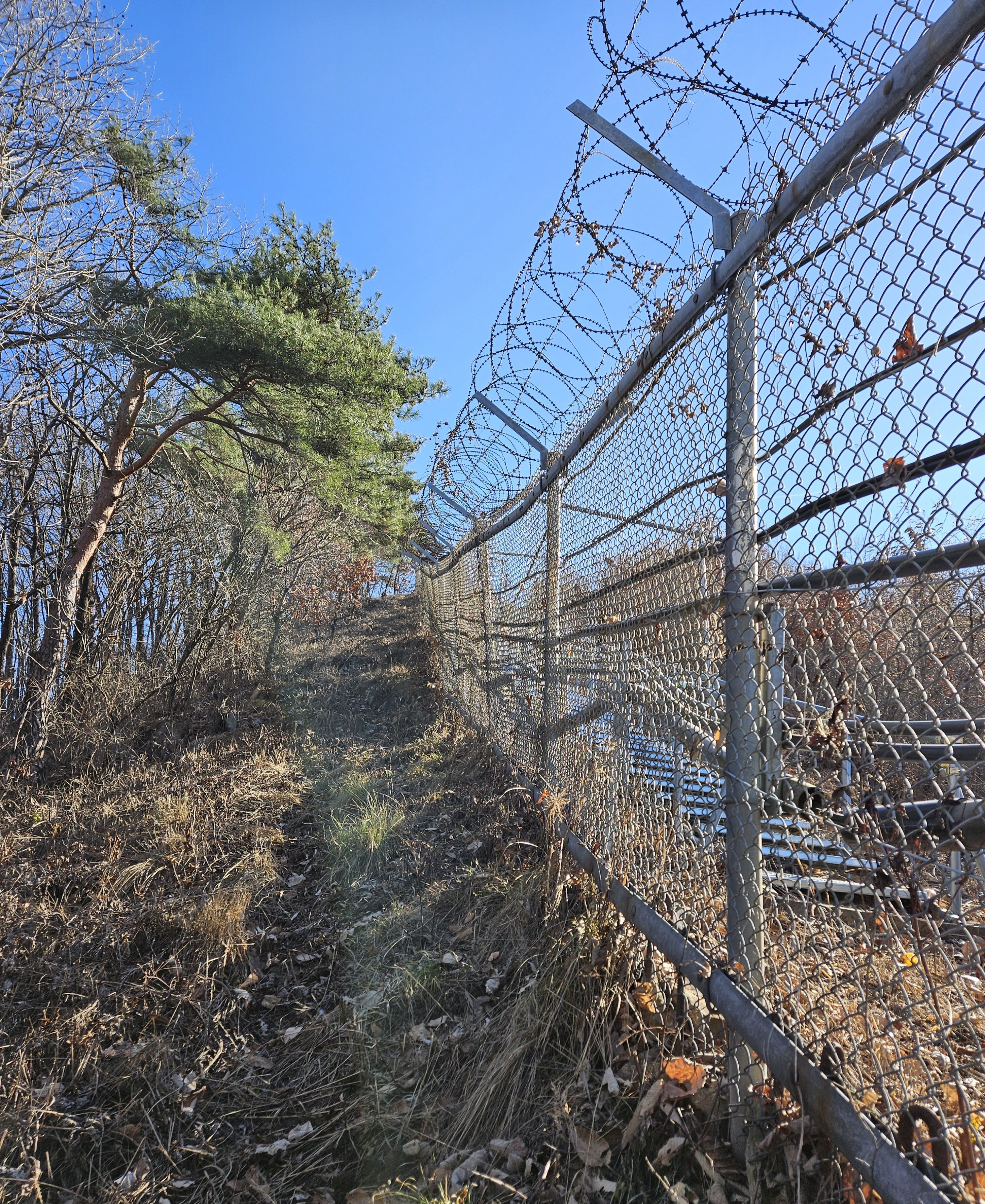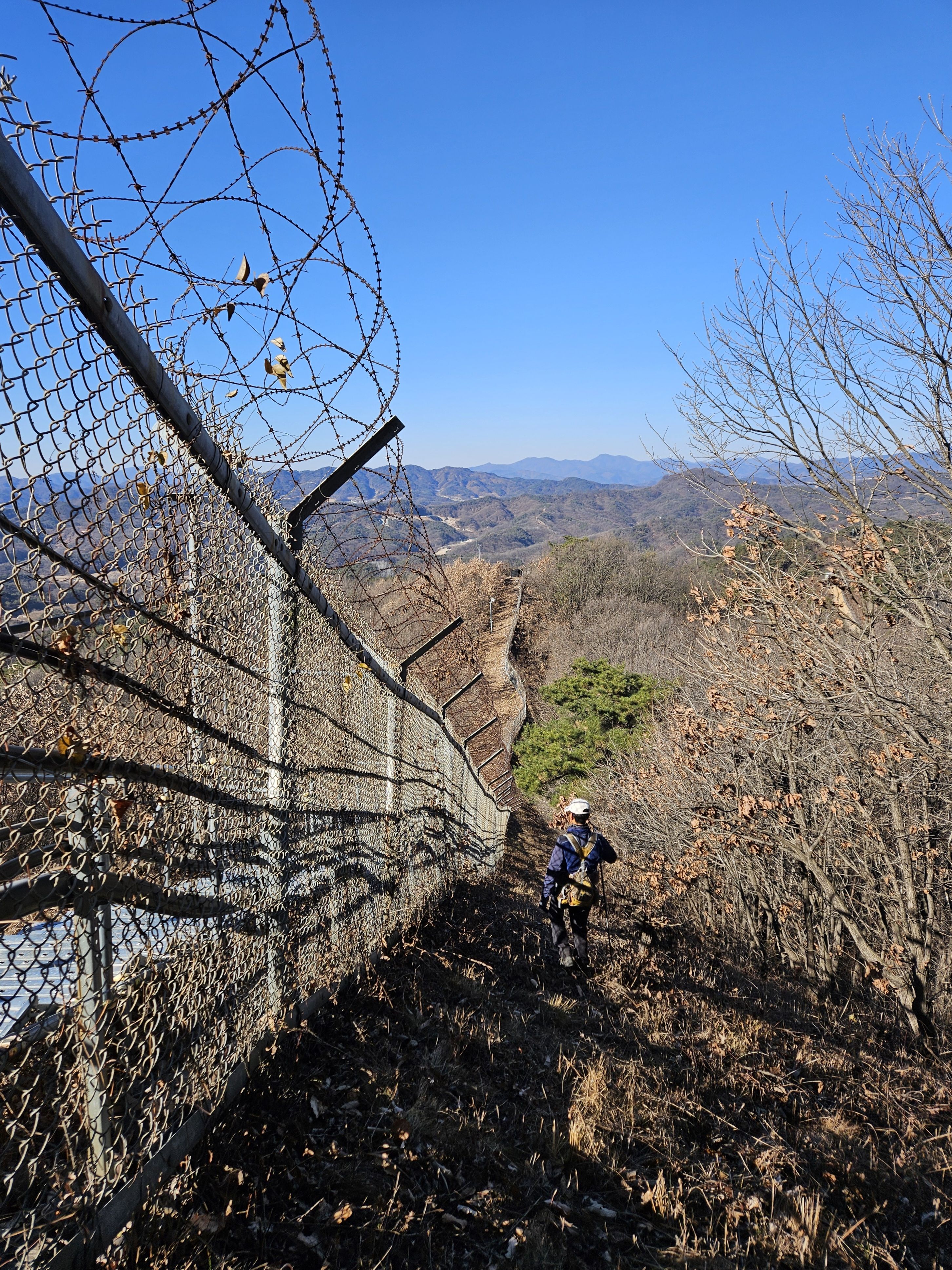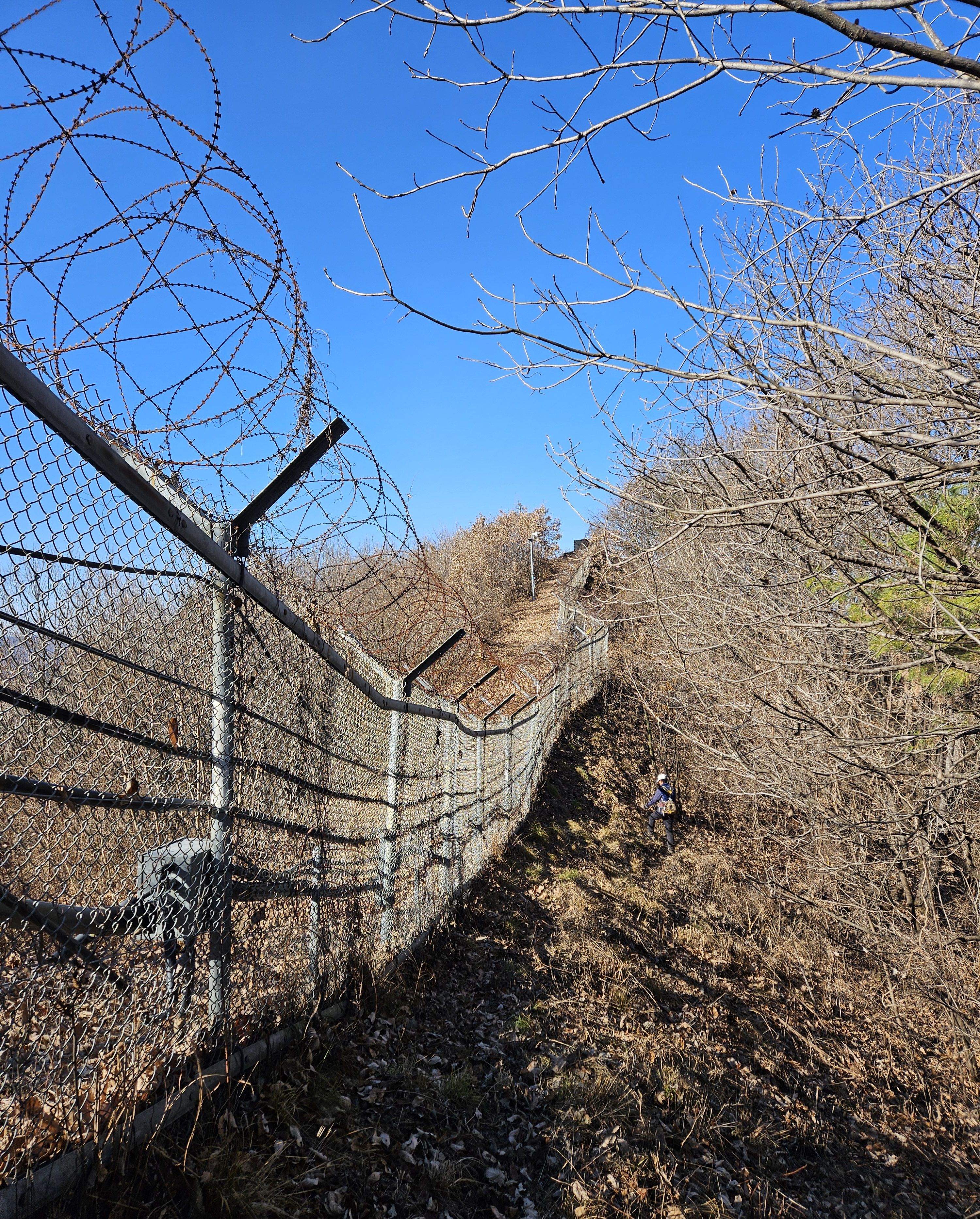 철조망 계속 걸을수 없어 적당한 곳 찾아 치고 내려갔습니다.