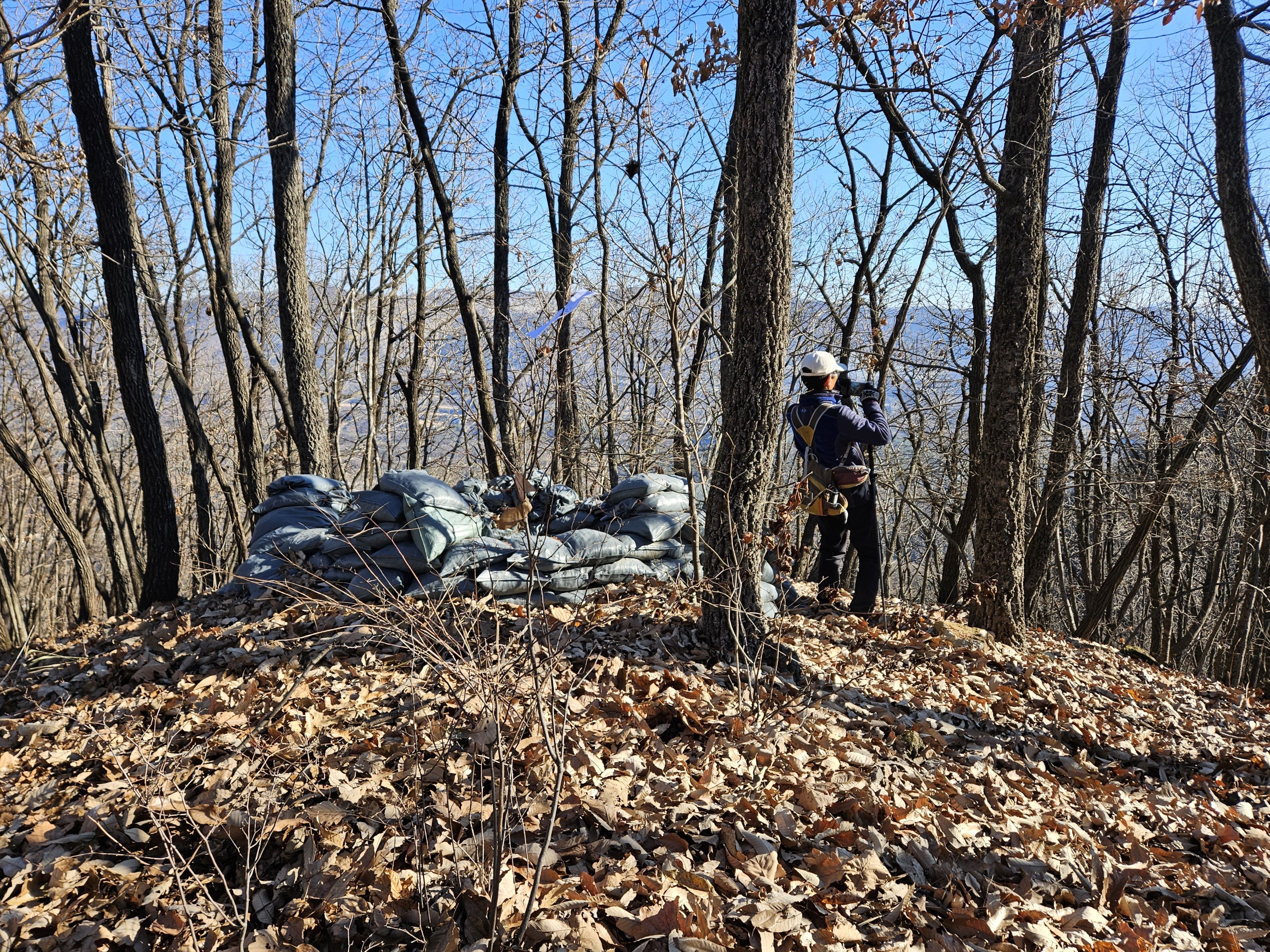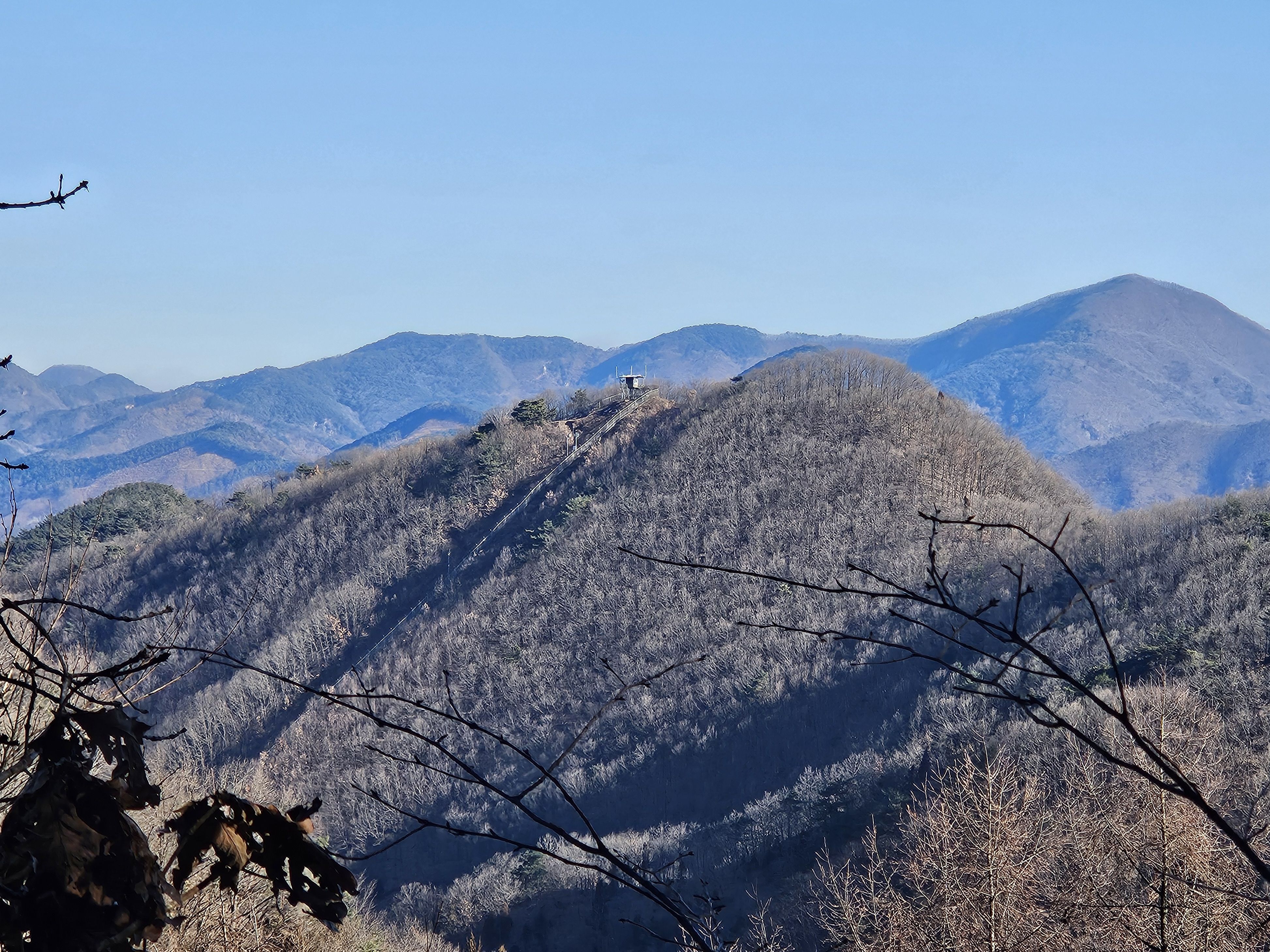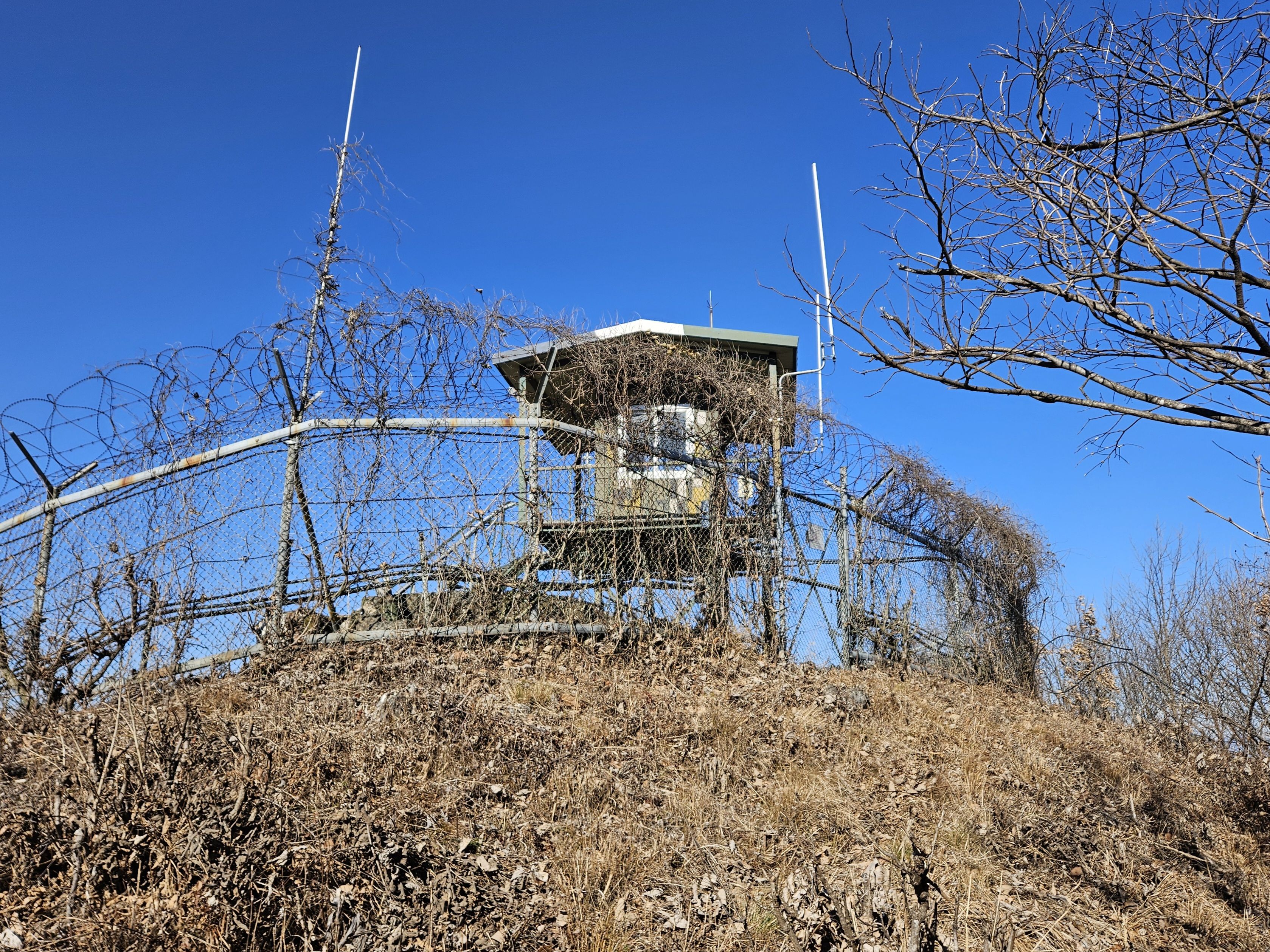 필봉 정상은 군부대 초소 (하산은 군부대 철조망 따라서 내려가게 되는데 잡목을 잘라놓아 걷기가 매우 위험했습니다.)