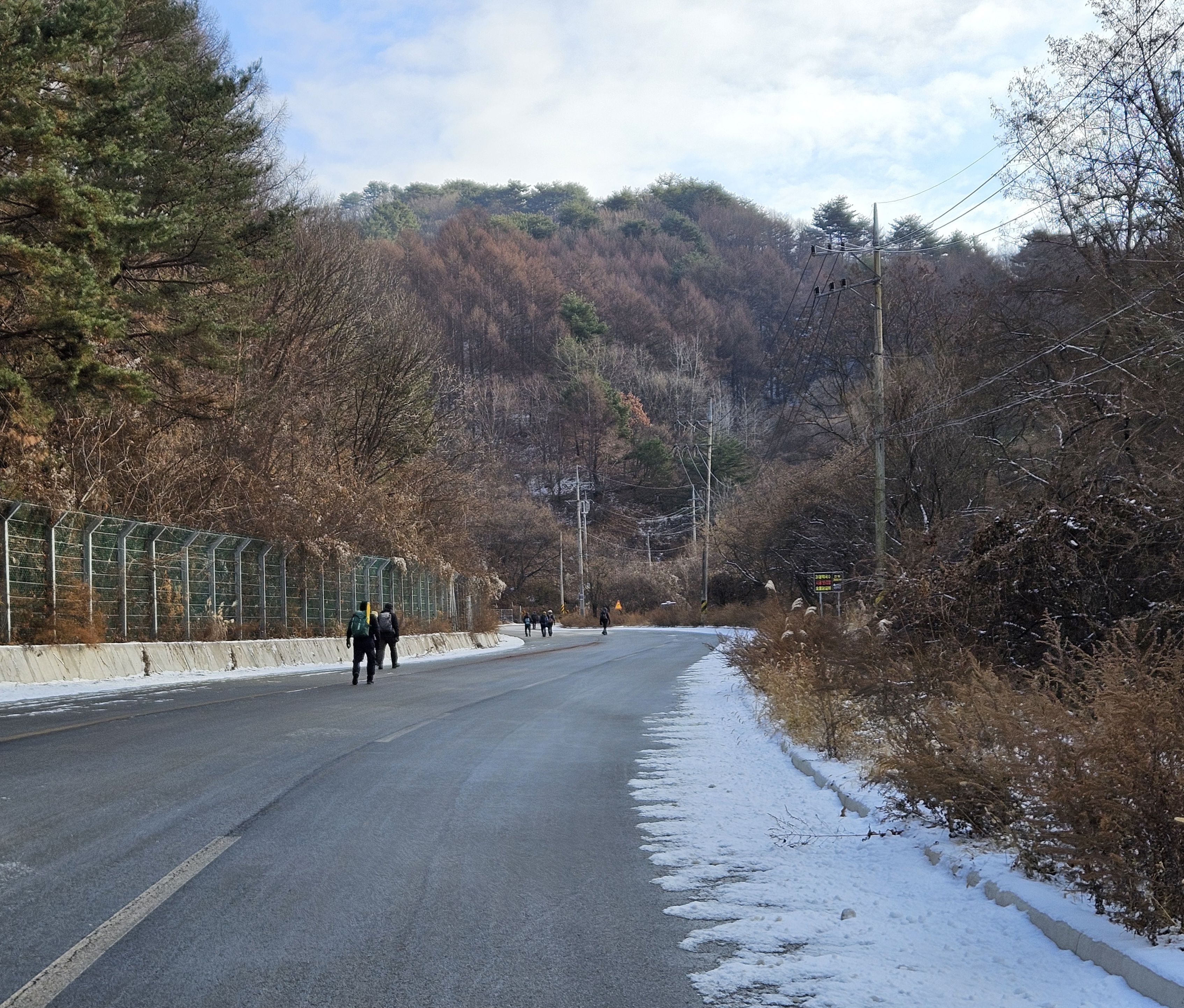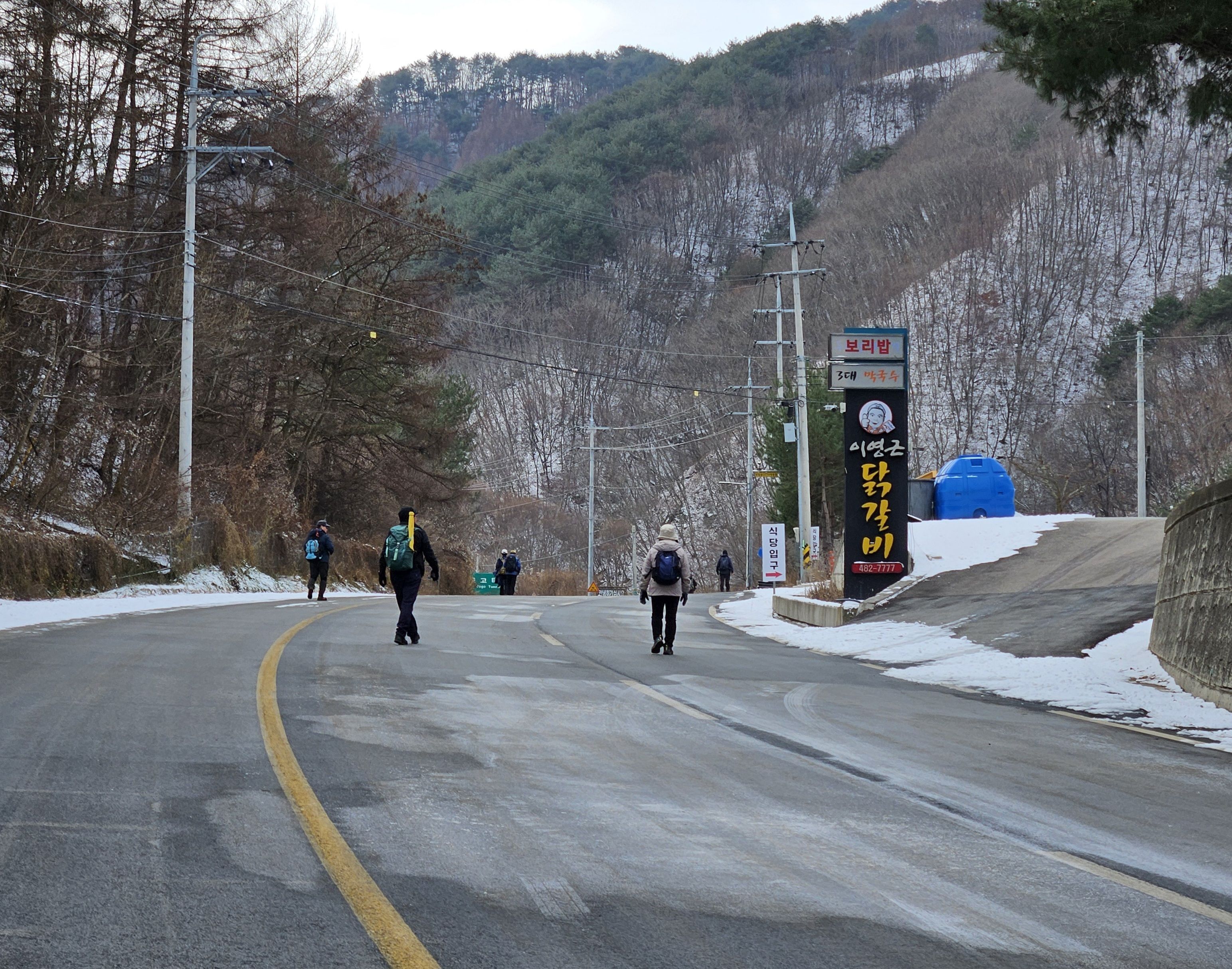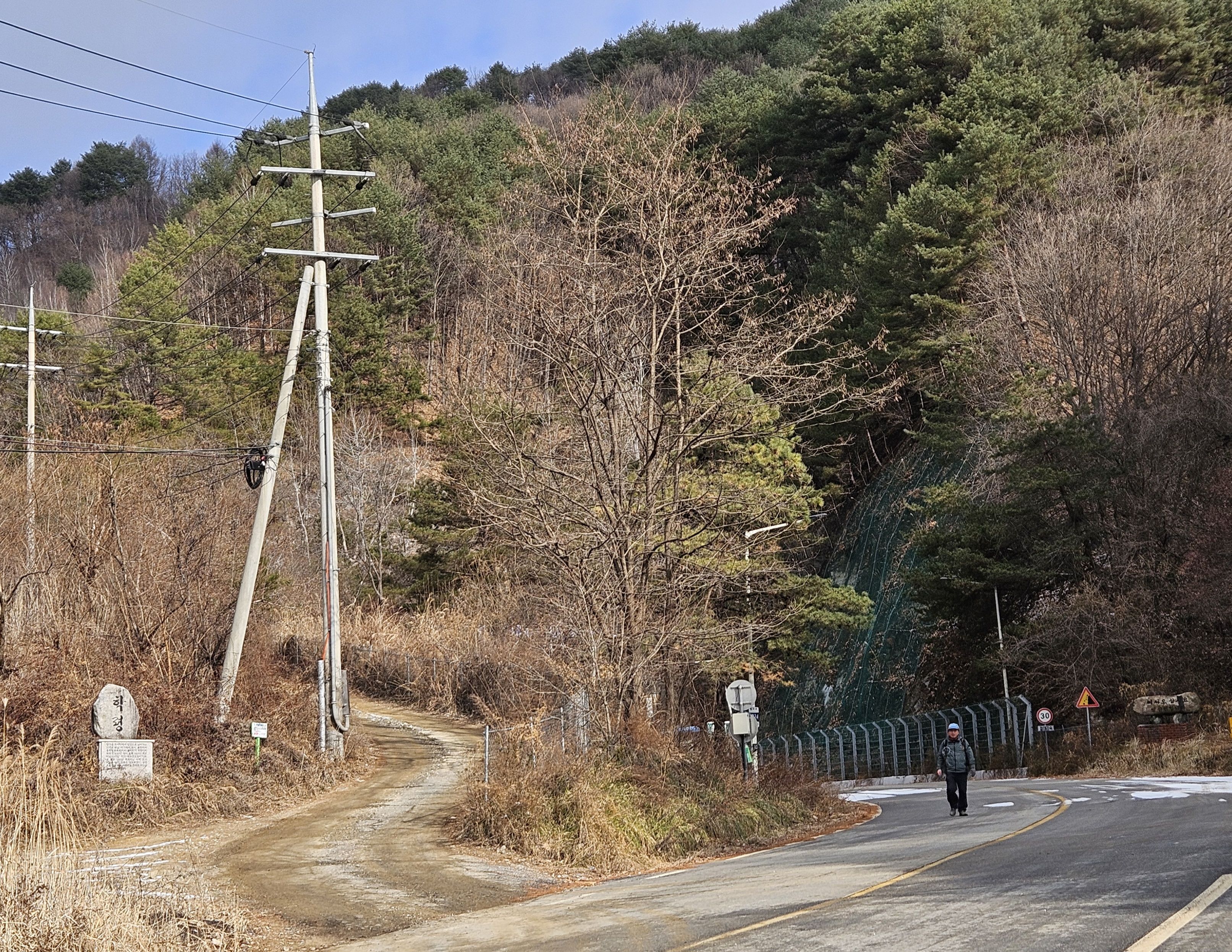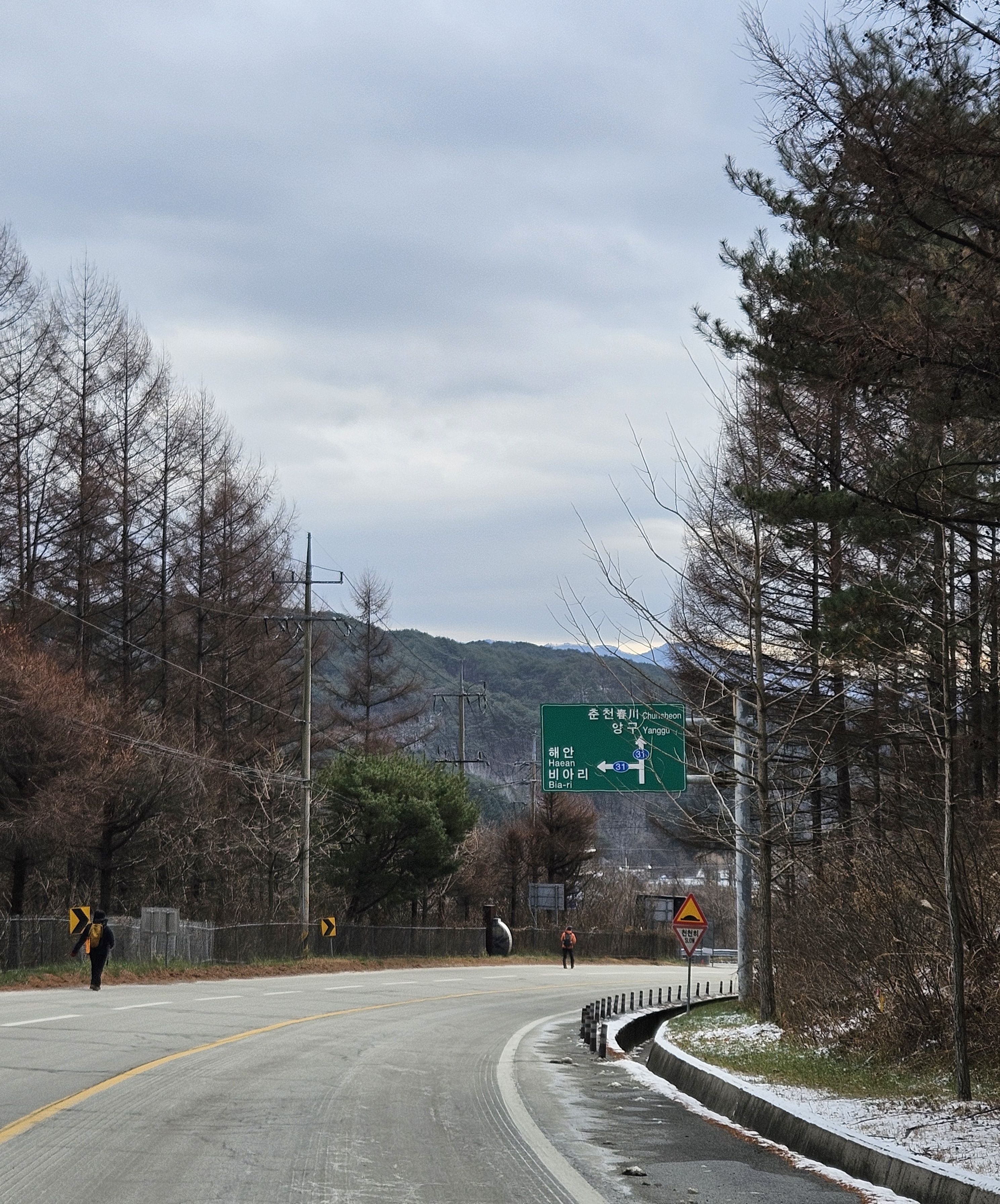 이틀전 서울에도 첫눈이 아주 많이 내렸기에 양구라는 지방엔 얼마나 많은 눈이 내렸을까? 정말 걱정걱정 하면서 갔었는데 산야를 보니 생각외로 눈이 적게 내렸더라구요 그리고 하차 후 찬기운 맴 돌았지만 잠시 후 부터 그리 춥지않고 포근한 날씨였기에 도로를 걷기엔 딱~~별로 지루함도 느끼지 못한채 종점까지 무사히 안착.