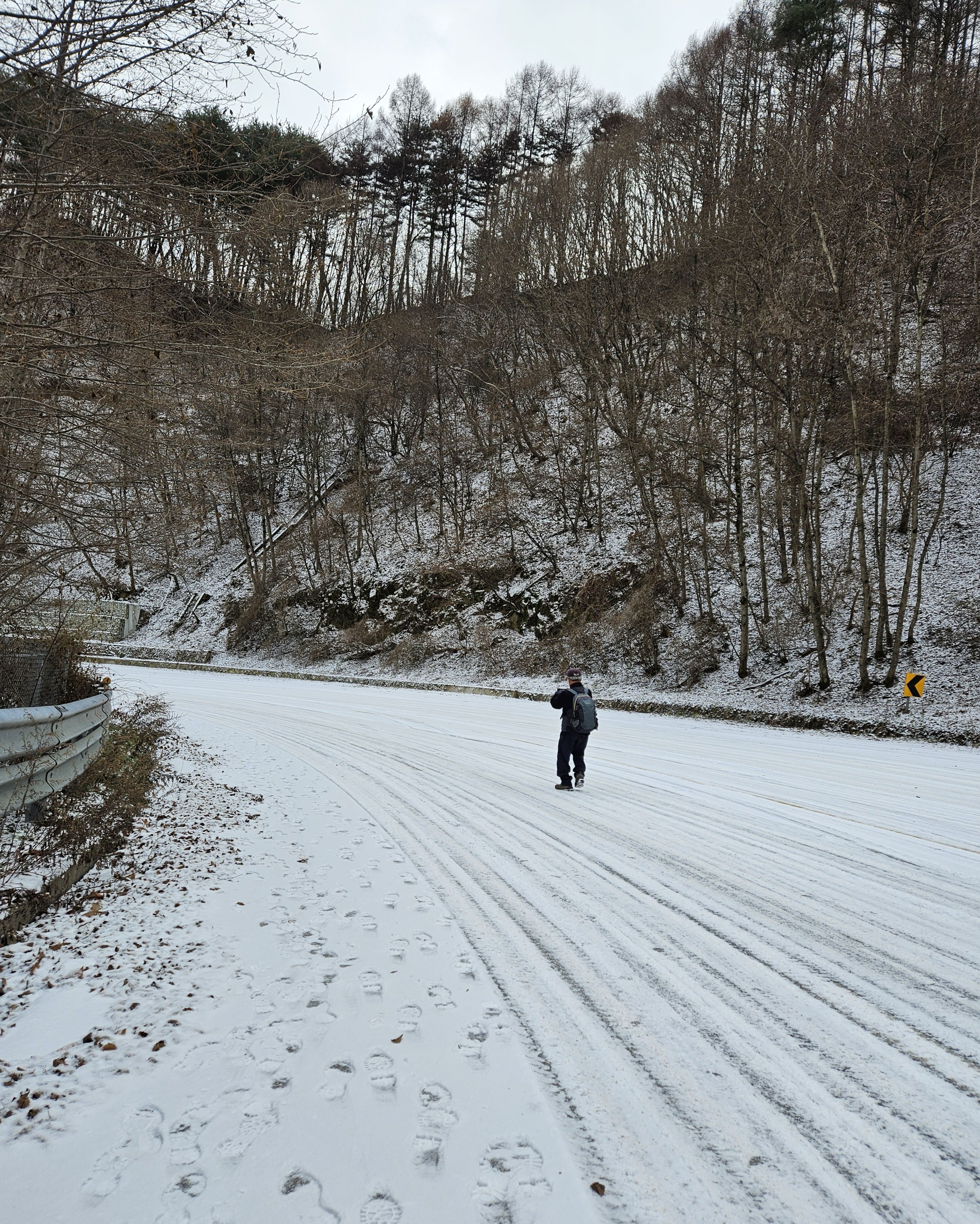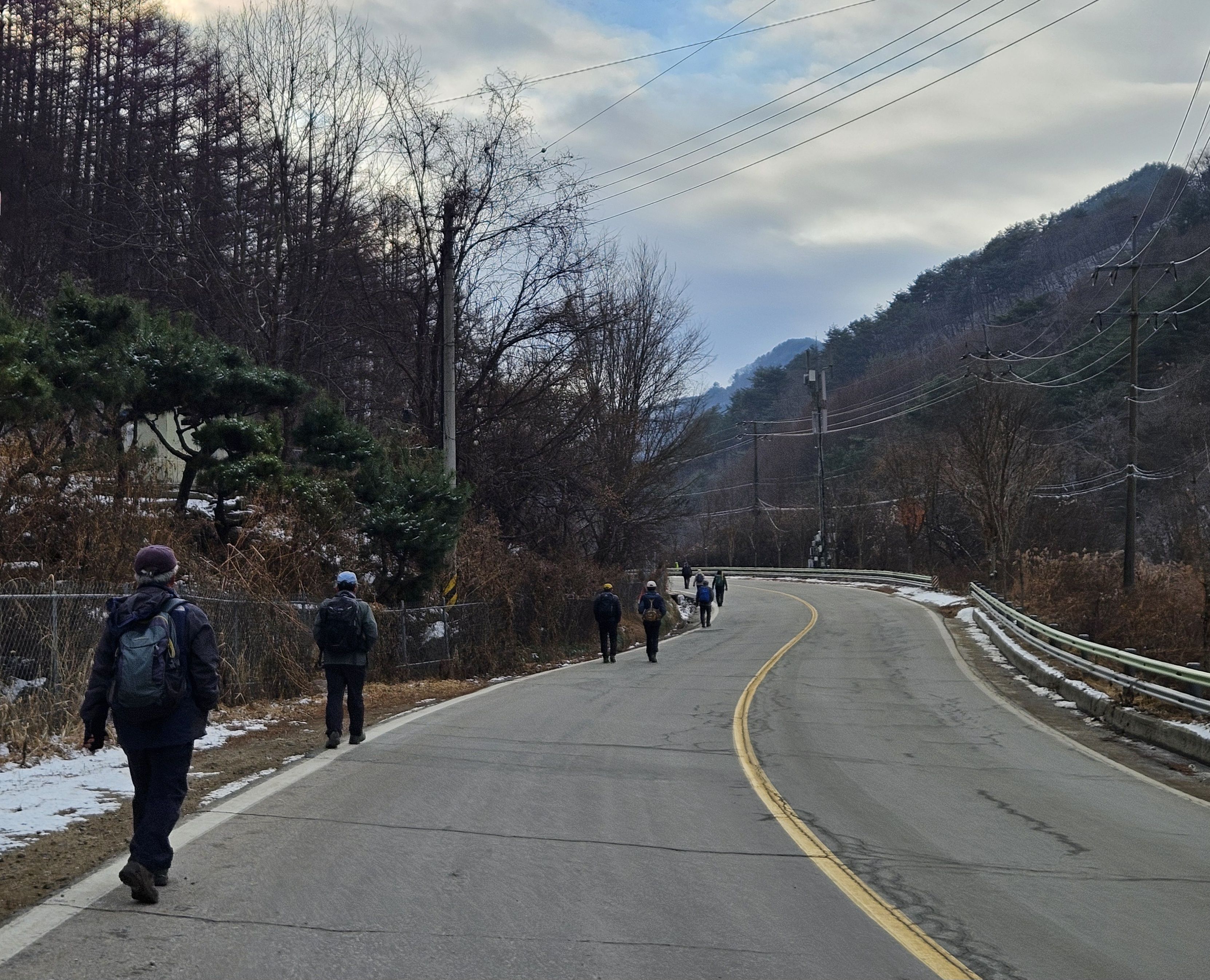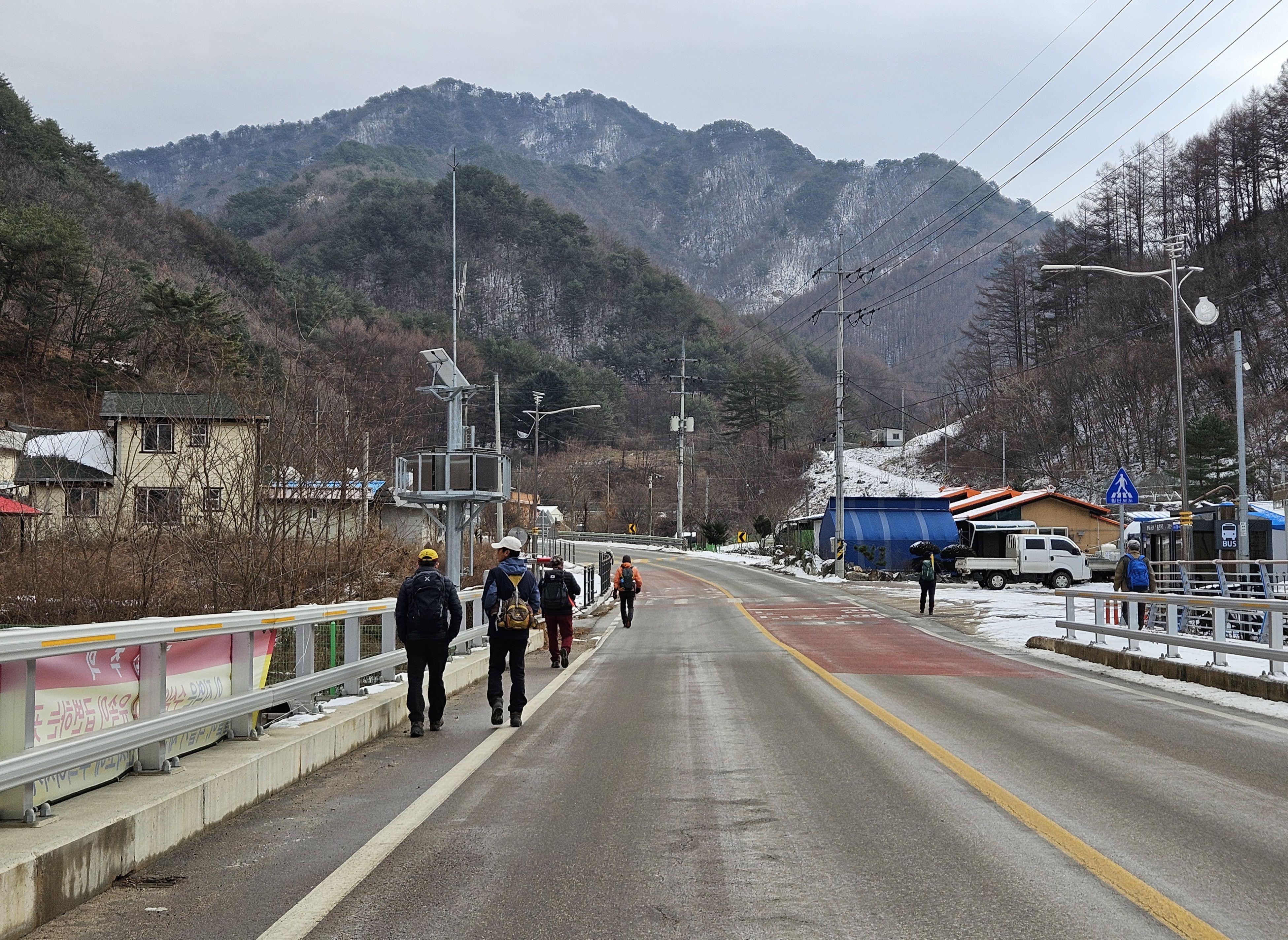 이틀전 서울에도 첫눈이 아주 많이 내렸기에 양구라는 지방엔 얼마나 많은 눈이 내렸을까? 정말 걱정걱정 하면서 갔었는데 산야를 보니 생각외로 눈이 적게 내렸더라구요 그리고 하차 후 찬기운 맴 돌았지만 잠시 후 부터 그리 춥지않고 포근한 날씨였기에 도로를 걷기엔 딱~~별로 지루함도 느끼지 못한채 종점까지 무사히 안착.