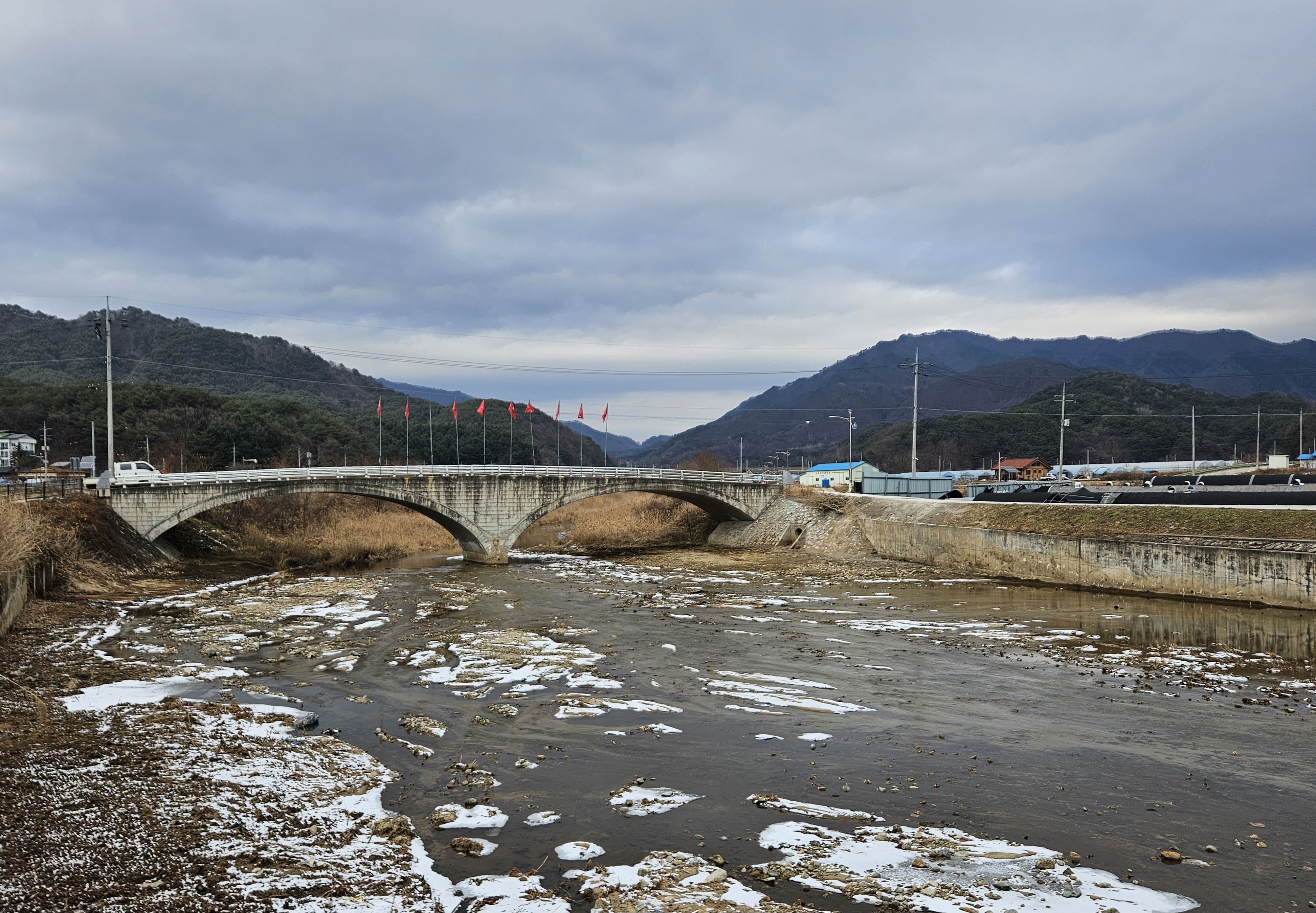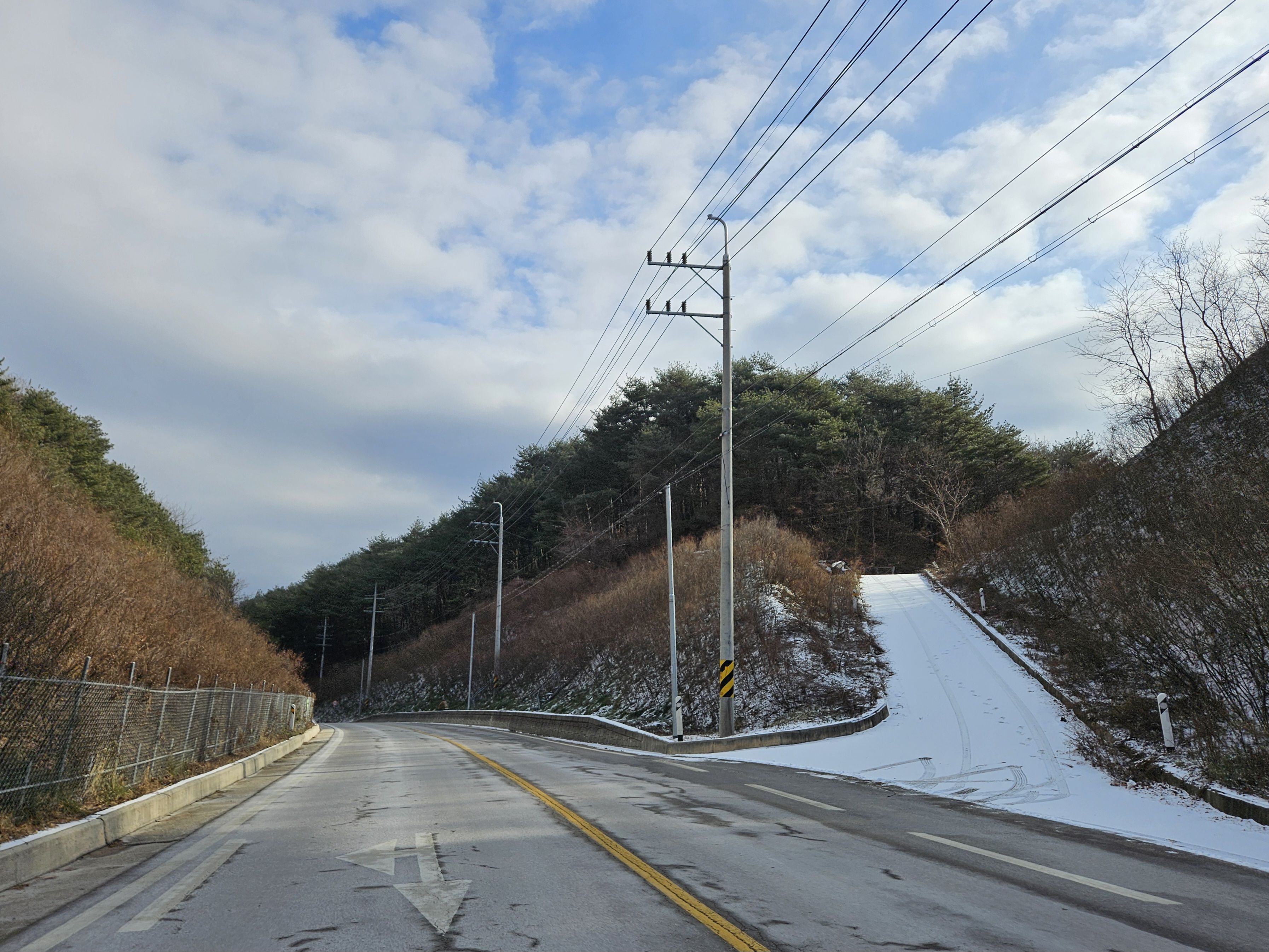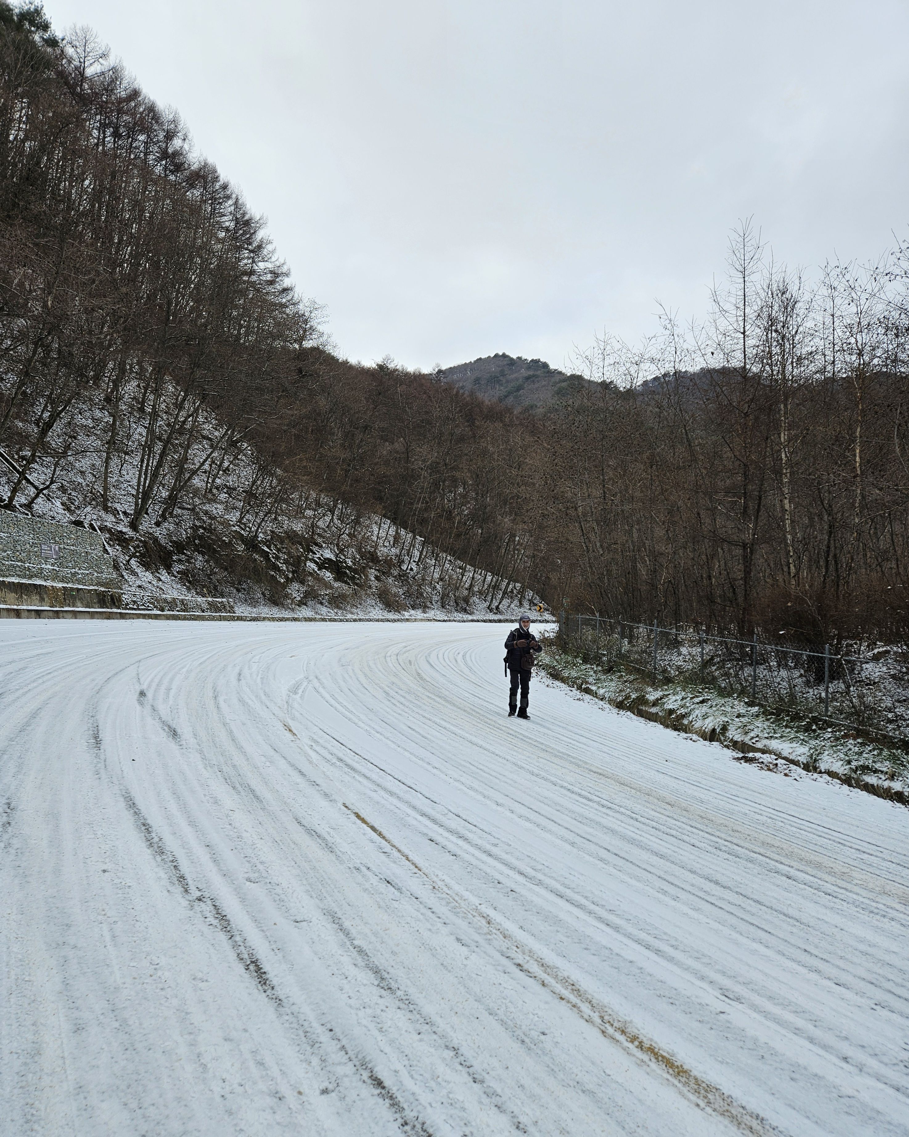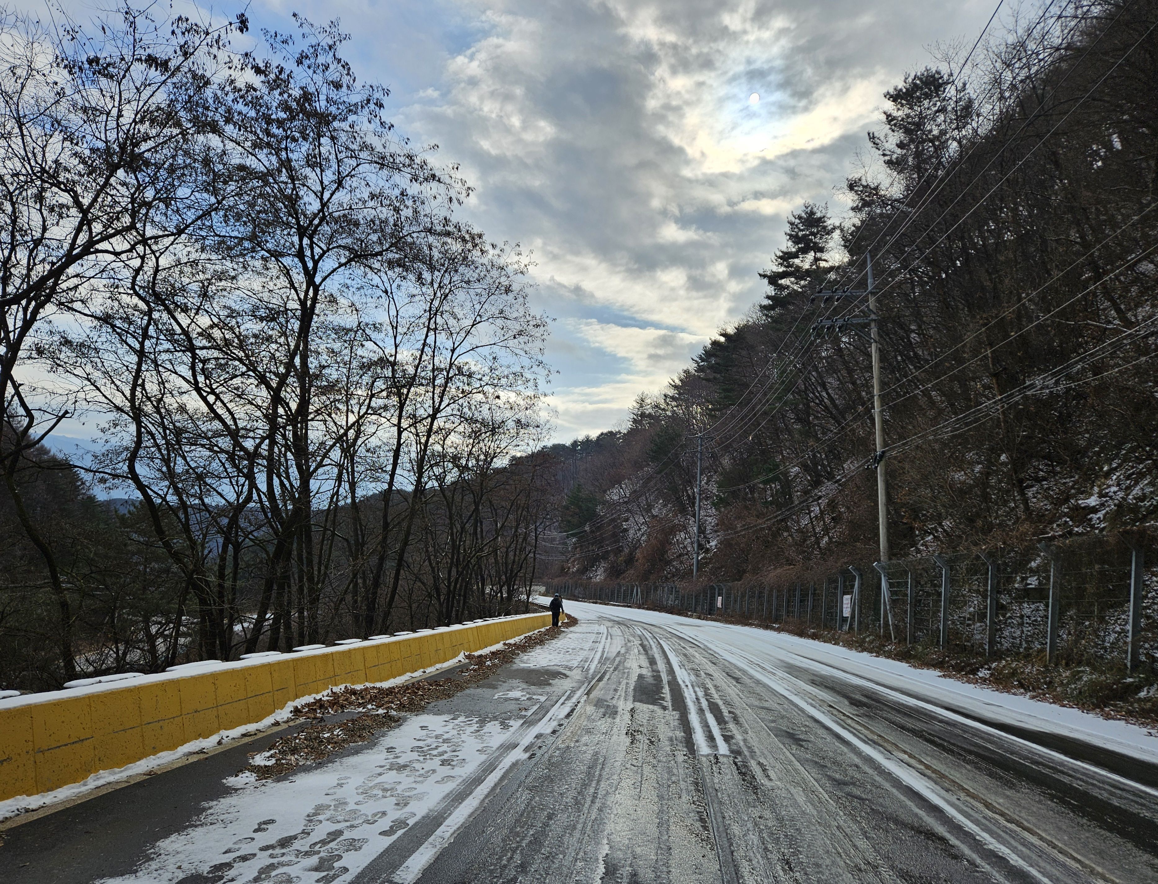 이틀전 서울에도 첫눈이 아주 많이 내렸기에 양구라는 지방엔 얼마나 많은 눈이 내렸을까? 정말 걱정걱정 하면서 갔었는데 산야를 보니 생각외로 눈이 적게 내렸더라구요 그리고 하차 후 찬기운 맴 돌았지만 잠시 후 부터 그리 춥지않고 포근한 날씨였기에 도로를 걷기엔 딱~~별로 지루함도 느끼지 못한채 종점까지 무사히 안착.