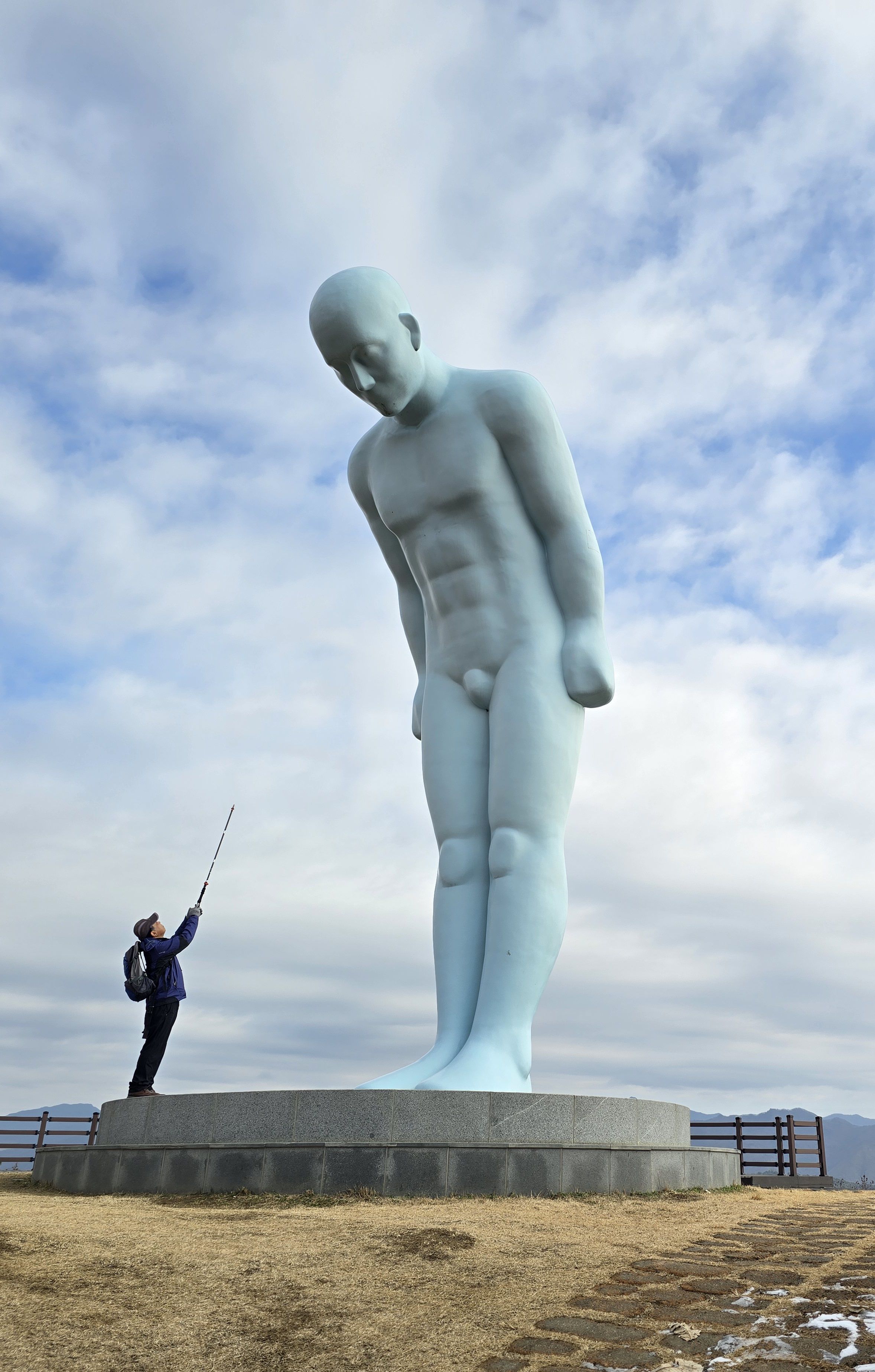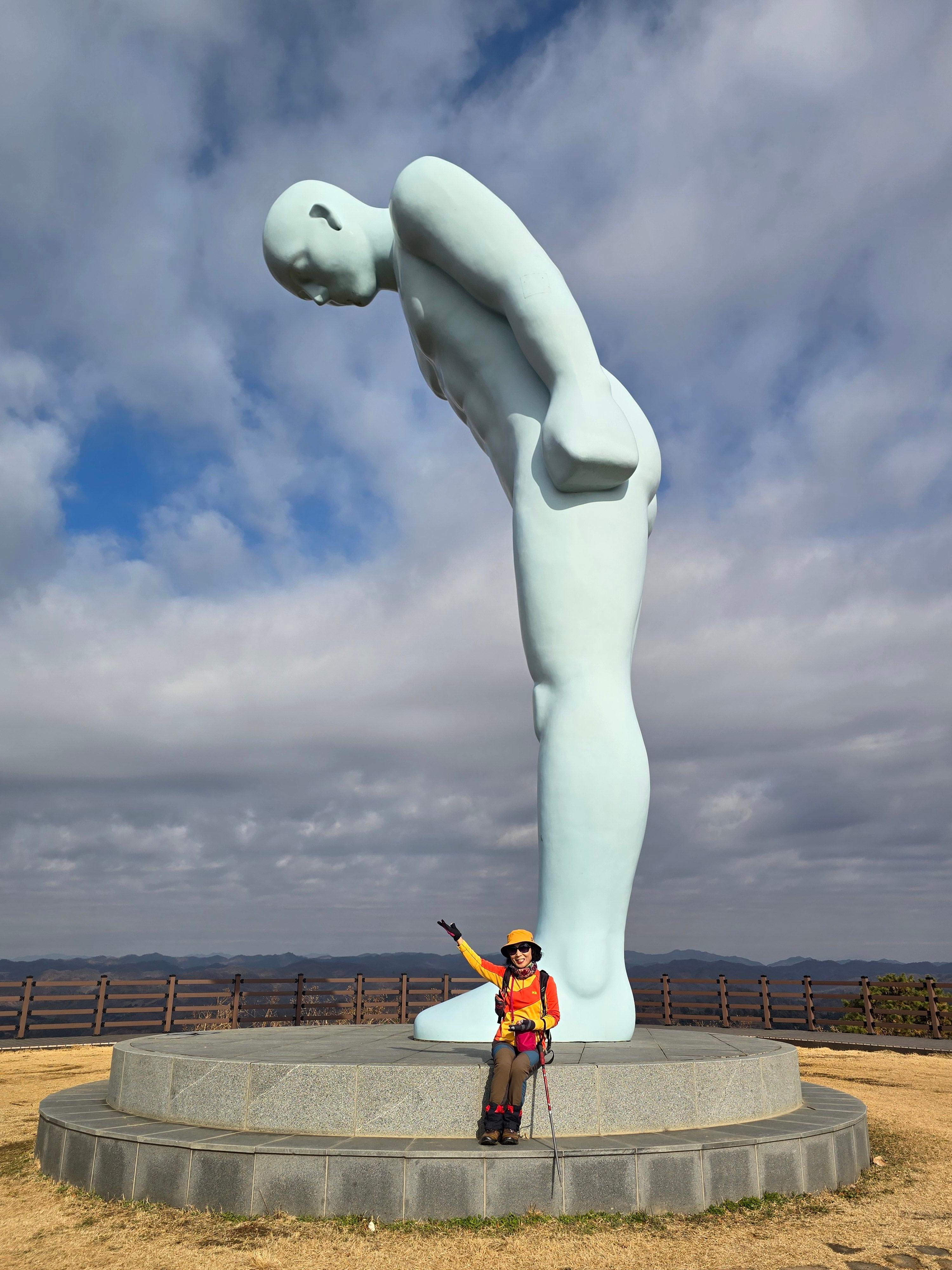 그리팅맨 (15도 각도로 인사하는 모습은 서로에 대한 배려.존중.평화의 의미) 2016년 4월23일 유영호 작가가 만든 조각상
