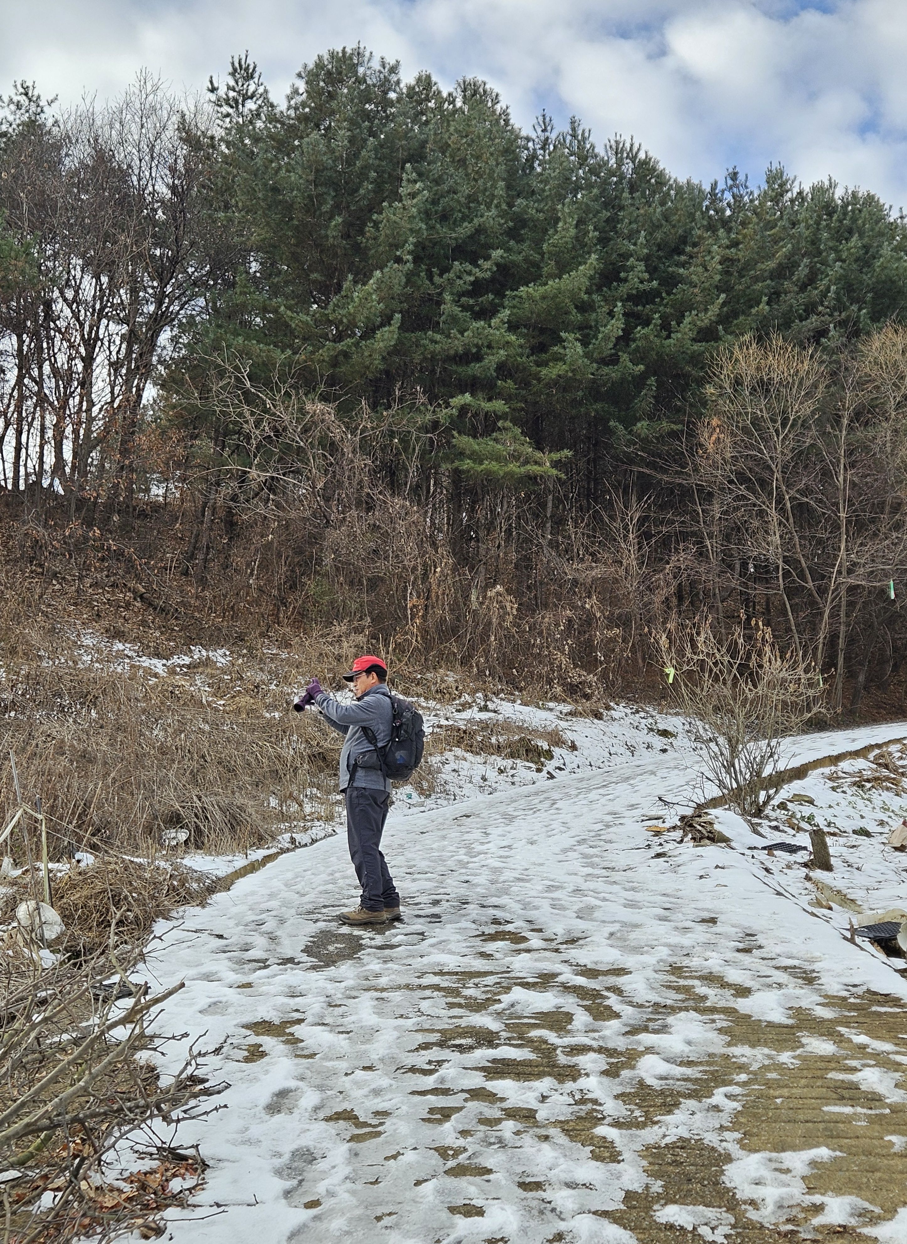 급경사 목계단 내려오면 응달진 곳 (미끌미끌...)