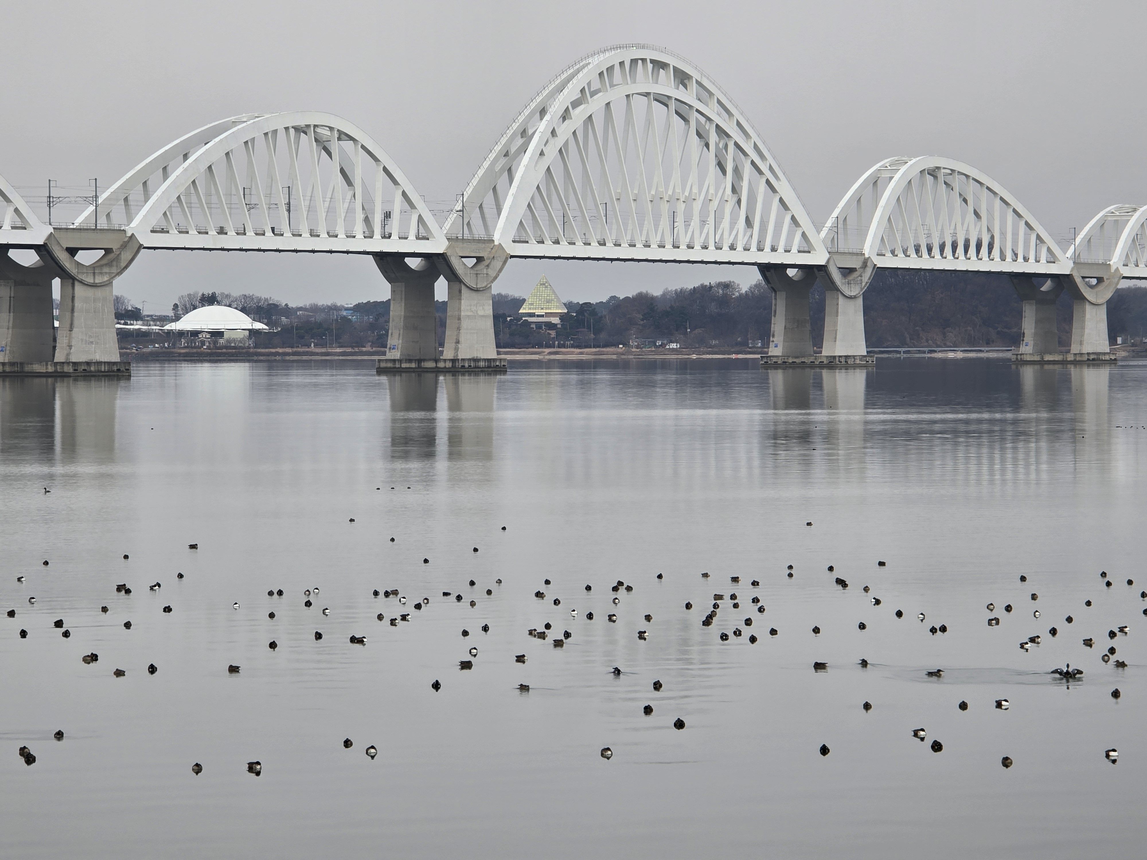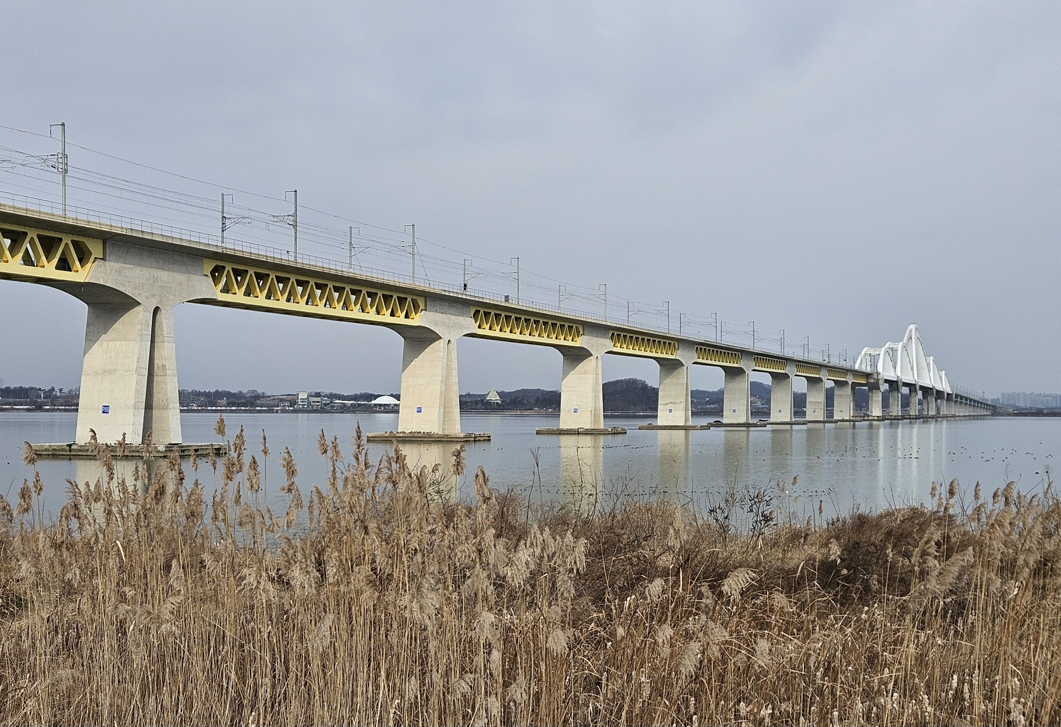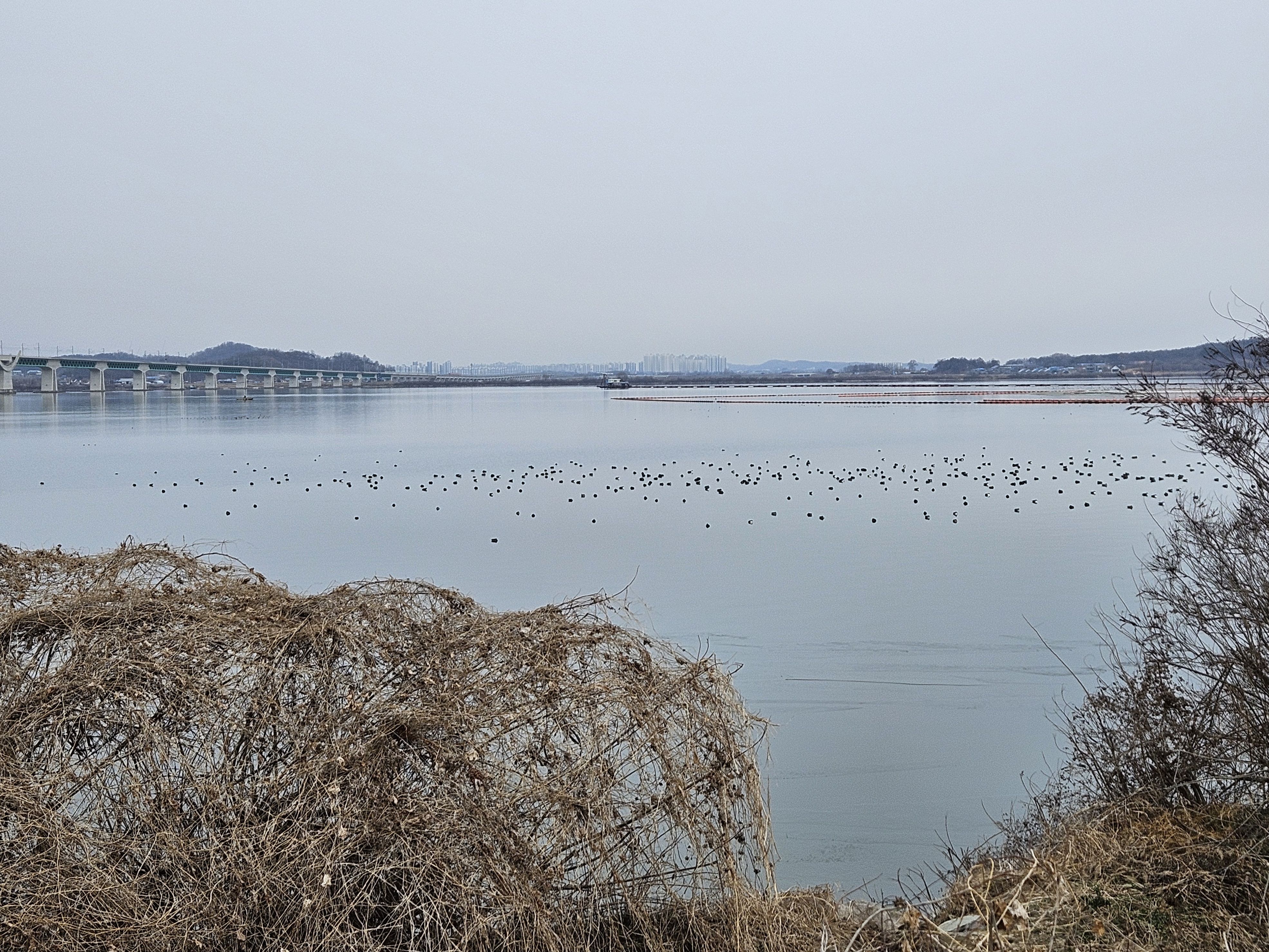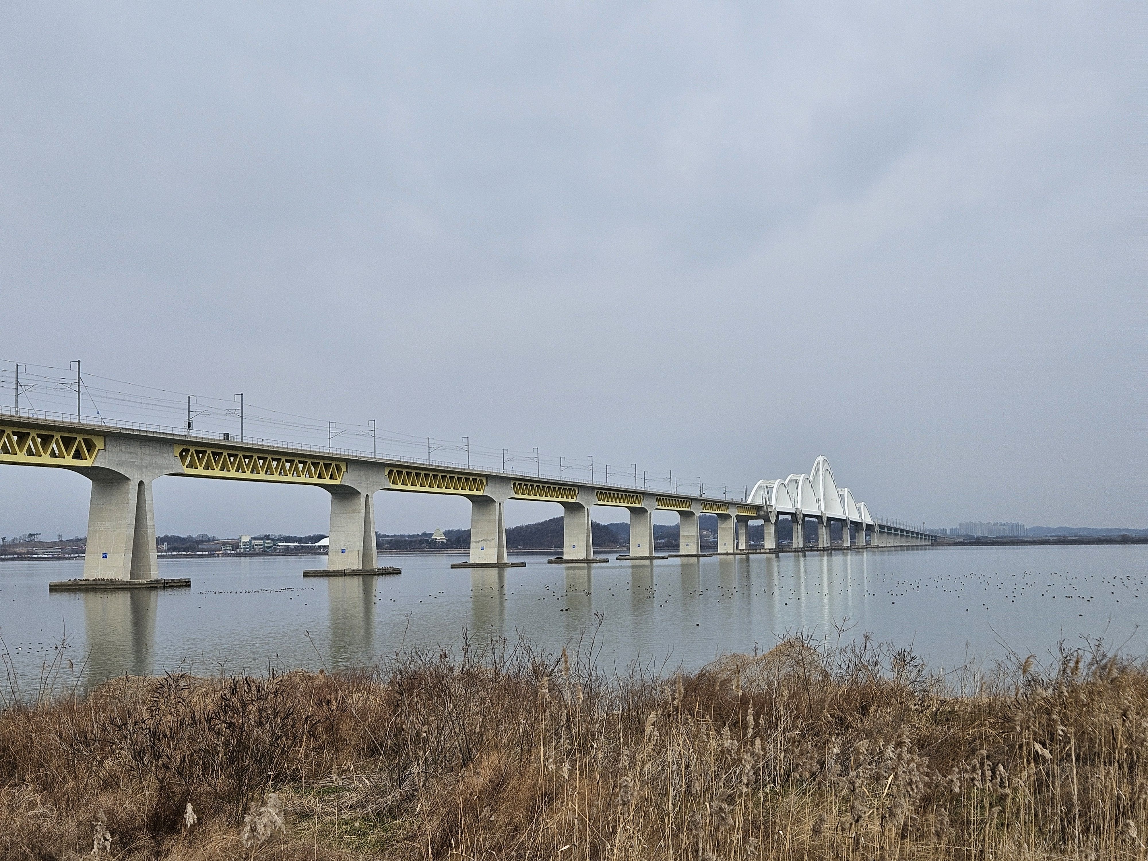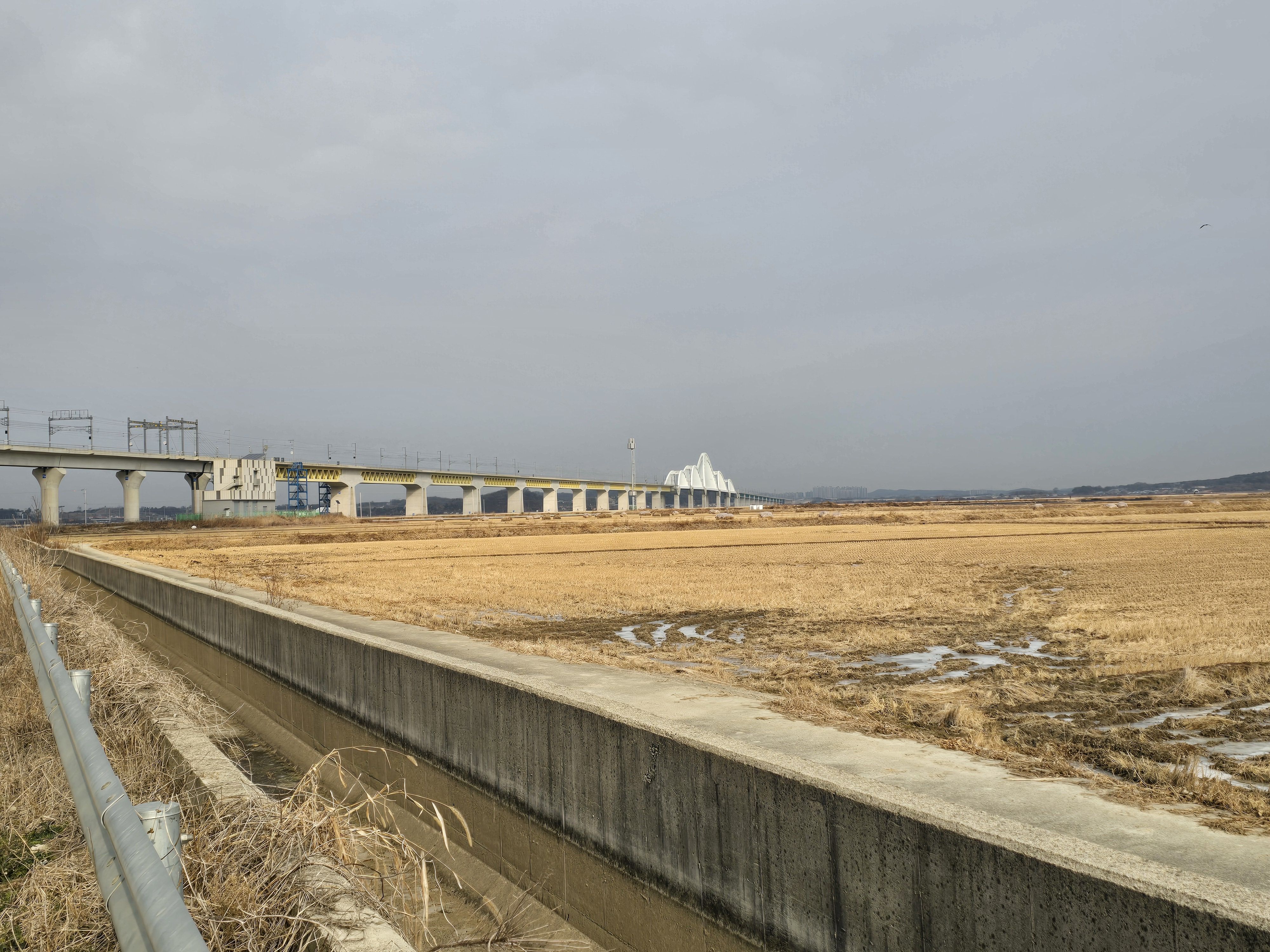 평택호/아산호 위 서해선 철길을 조망삼아 걷다보니 지루함 까지 잊게 되더라구요 장거리 임에도 불구 그다지 먼거리로 느껴지지 않았던 트레킹길 그 중 더 기분 좋았던것은 논에서 모이찾는 *기러기떼* 정말 많은 무리를 보게 되었는데 논 가운데까지 직접 방문해서 기러기떼 날려 주신 송림님 덕분에 기러기떼 하늘까지 수놓았던 장면 아~~~감격 이었습니다.(감사했습니다.)