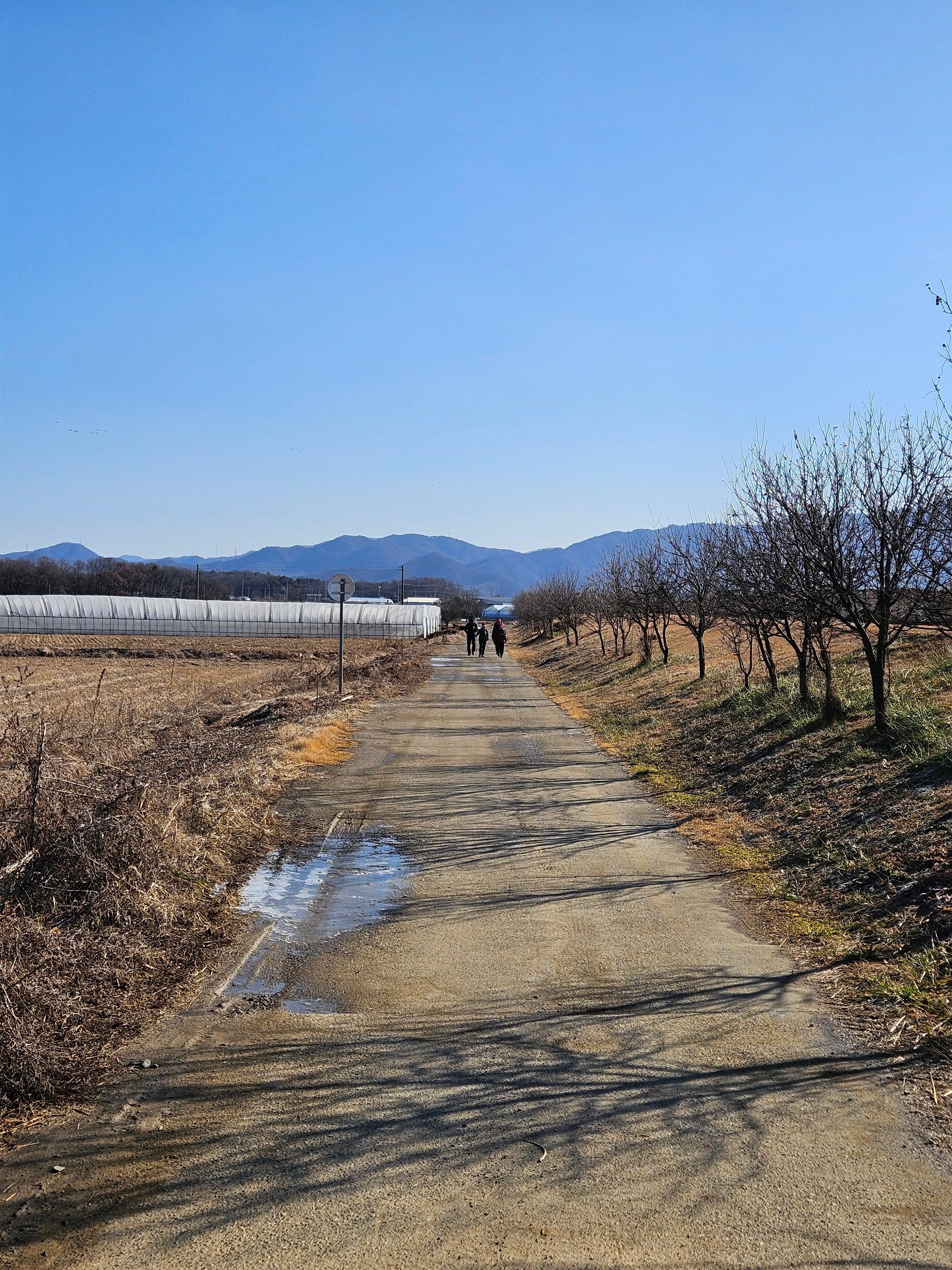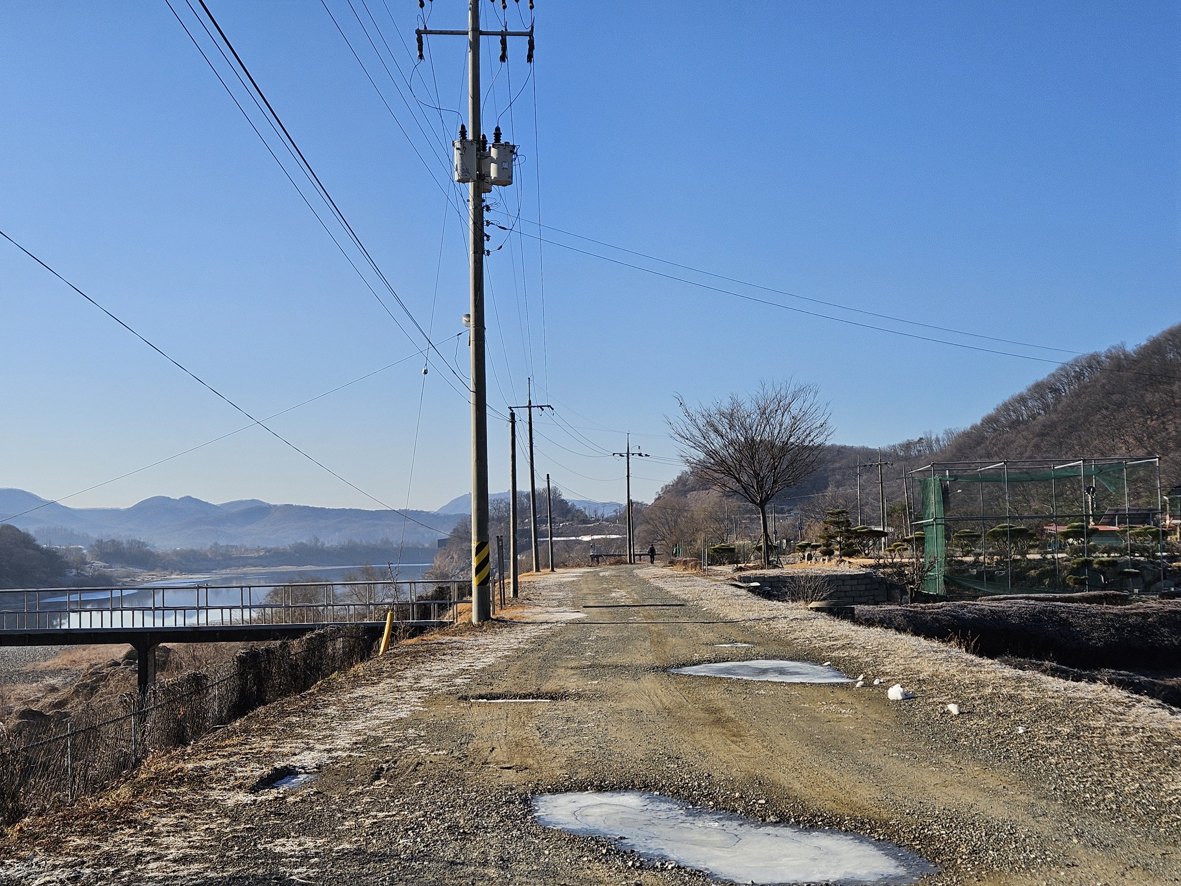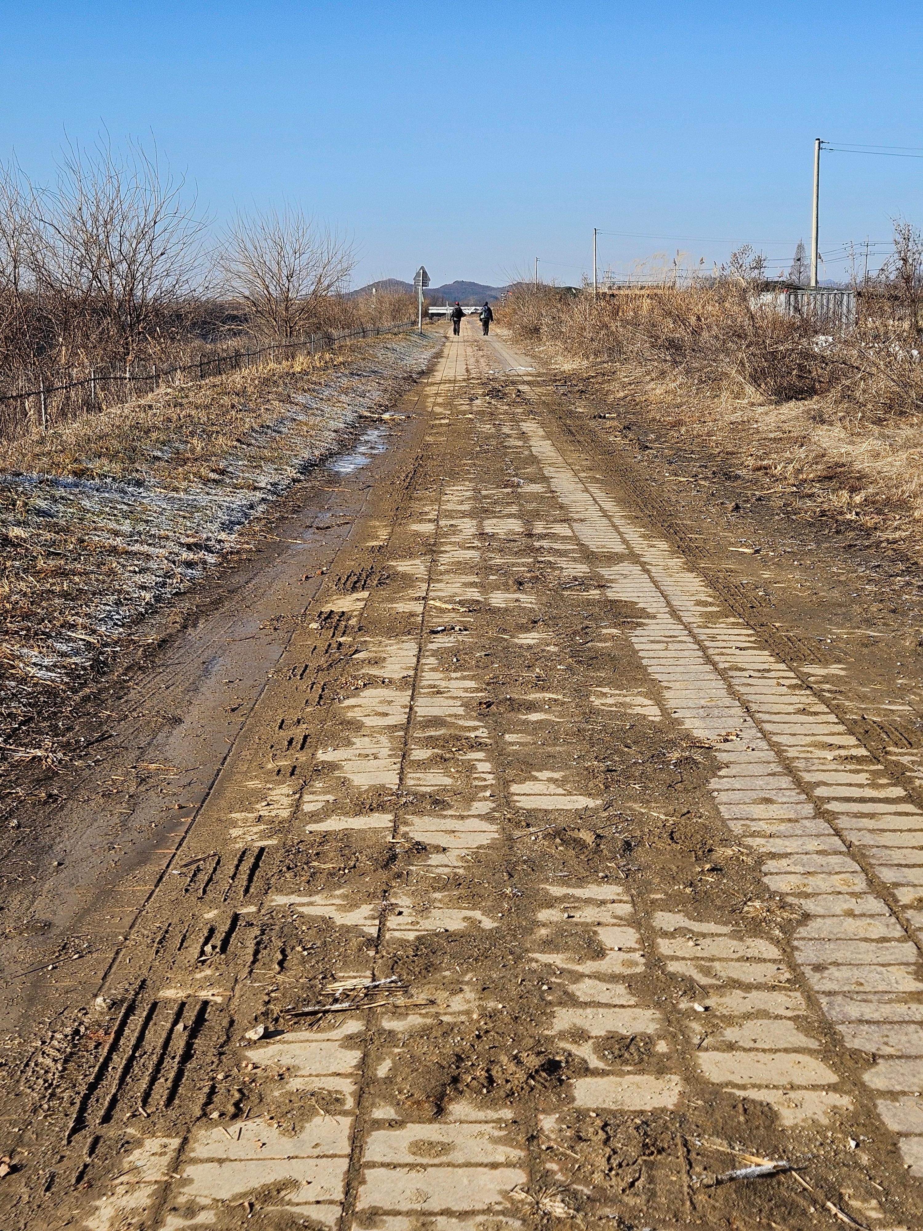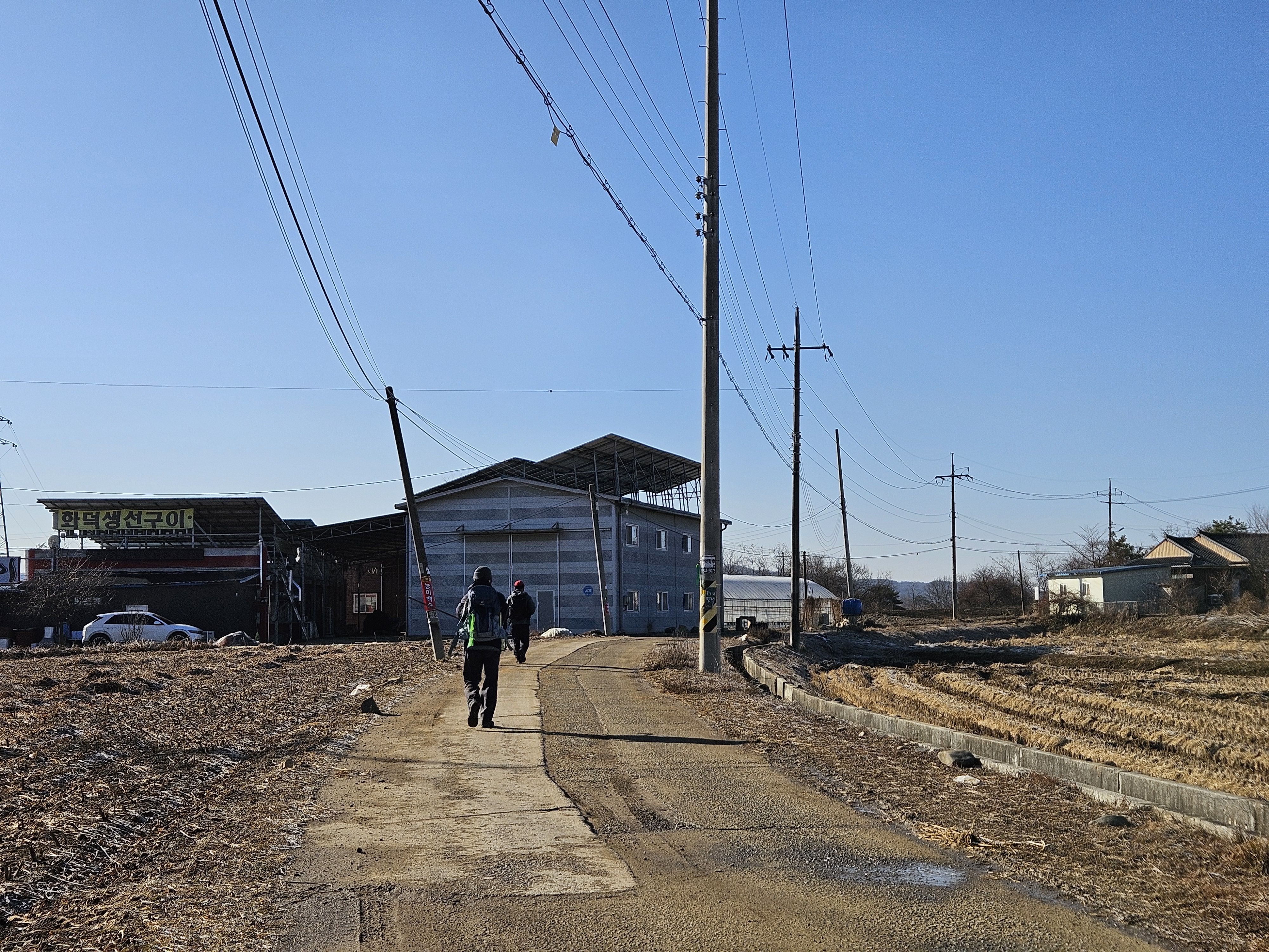 사미천 징검다리 위험하다고 임시 철거로 긴 사미천 돌아돌아 (약 6km) 더 걷느라고 무지 지루하고 다리.발목.맘.까지 아프다 보니 왕 짜증스럽더라구요 저는 올 4월에도 똑 같은 코스 (1시간20분 단축) 걸었는데 그땐 두 곳 다 징검다리로 건너가다 보니 지루함 없이 재밌게 걸었는데 오늘은 제방길에서 모든 에너지 다 쏟아붓다 보니 정말 힘들었습니다. 그나마 째끔 다행은 겨울날씨답지 않고 춥지 않았기에 천만다행 이란 생각 사미천교 건넌 이후 남은 거리 그리 멀지 않았지만 어찌나 길게 느껴지던지 약 1km 남기고 트럭 앵벌이 해서 종점도착 (새마을지도자님 자가요)