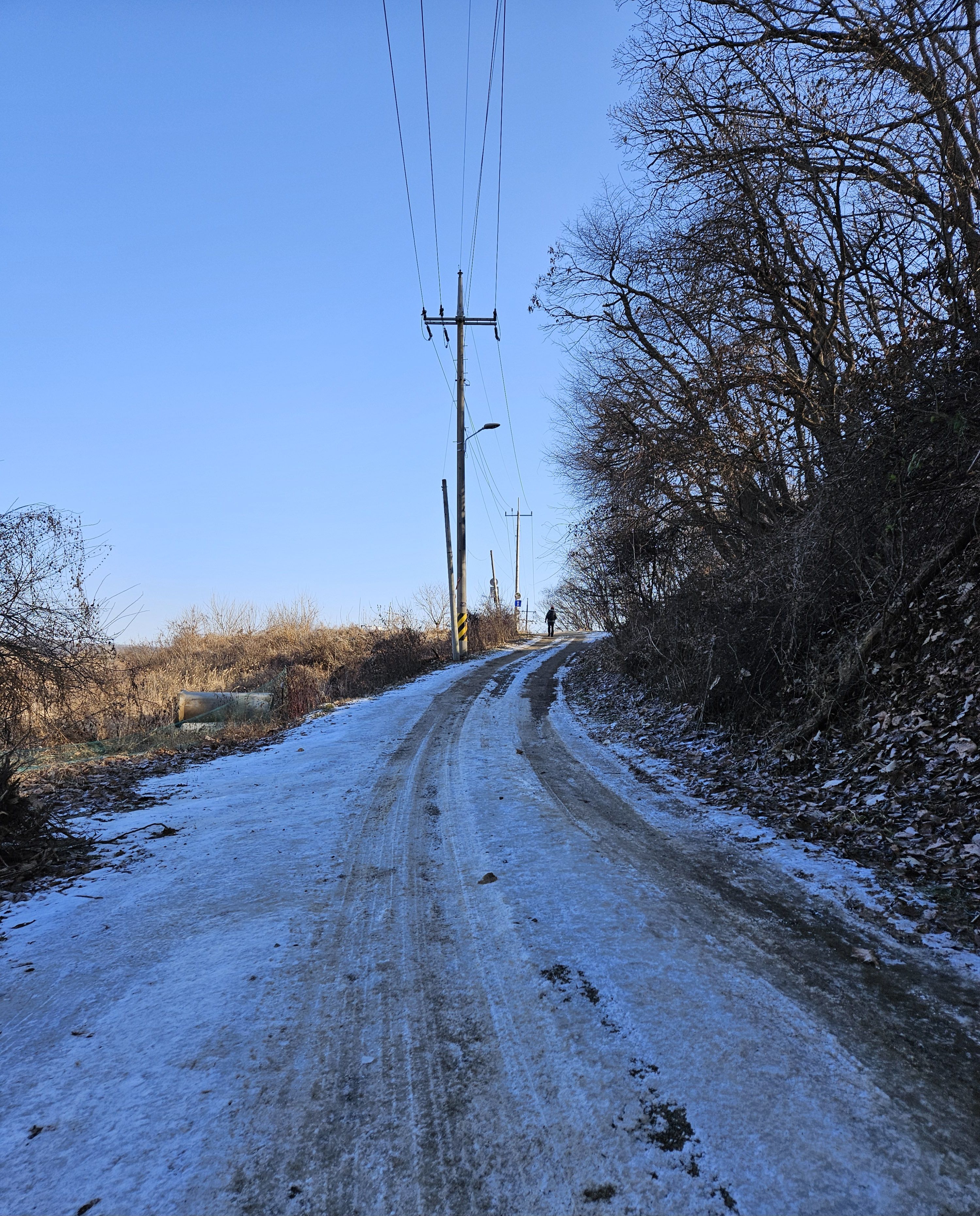 탁 트인 차도 (오가는 차량 많지 않아서 덜 위험 했습니다.)