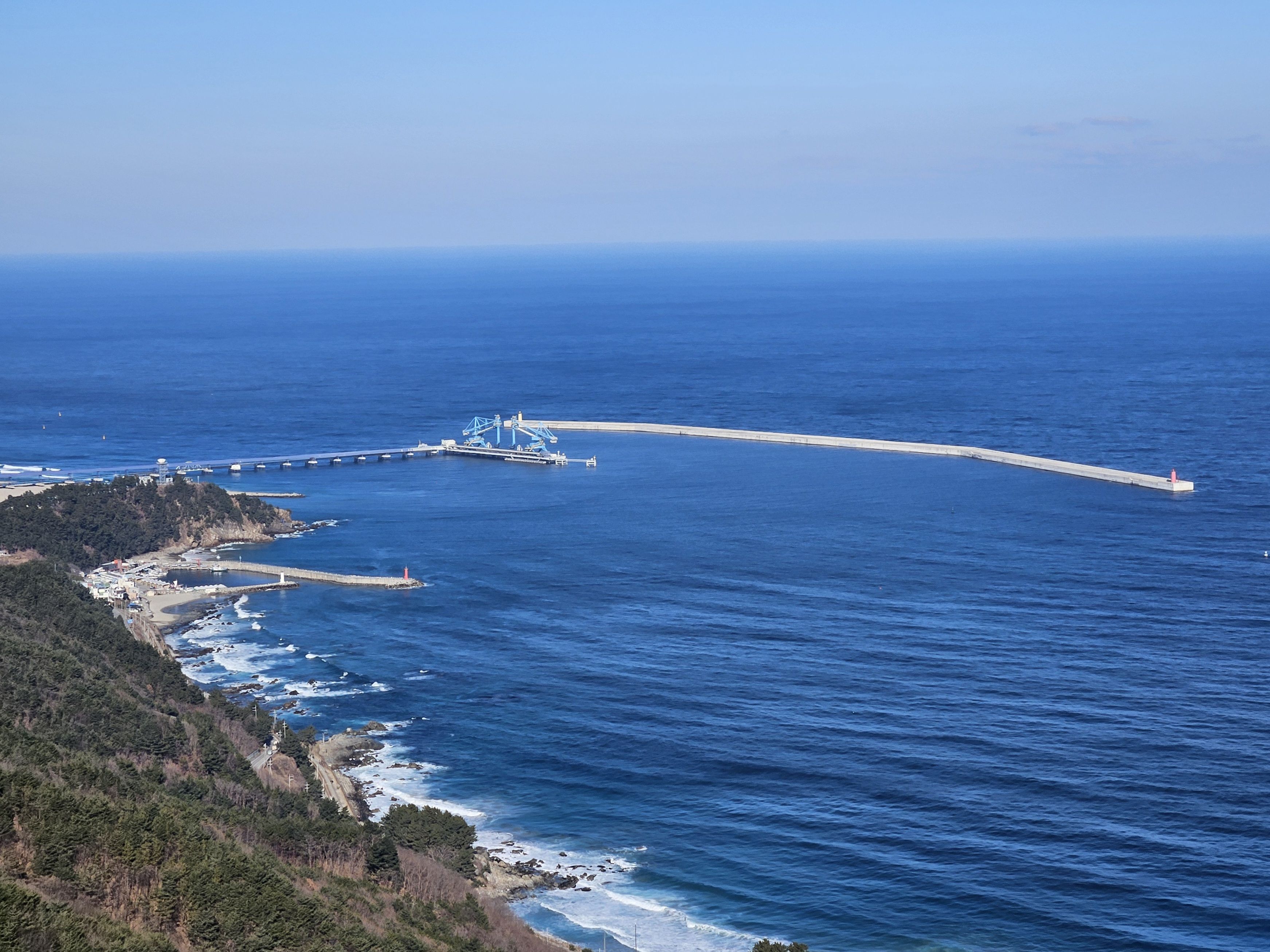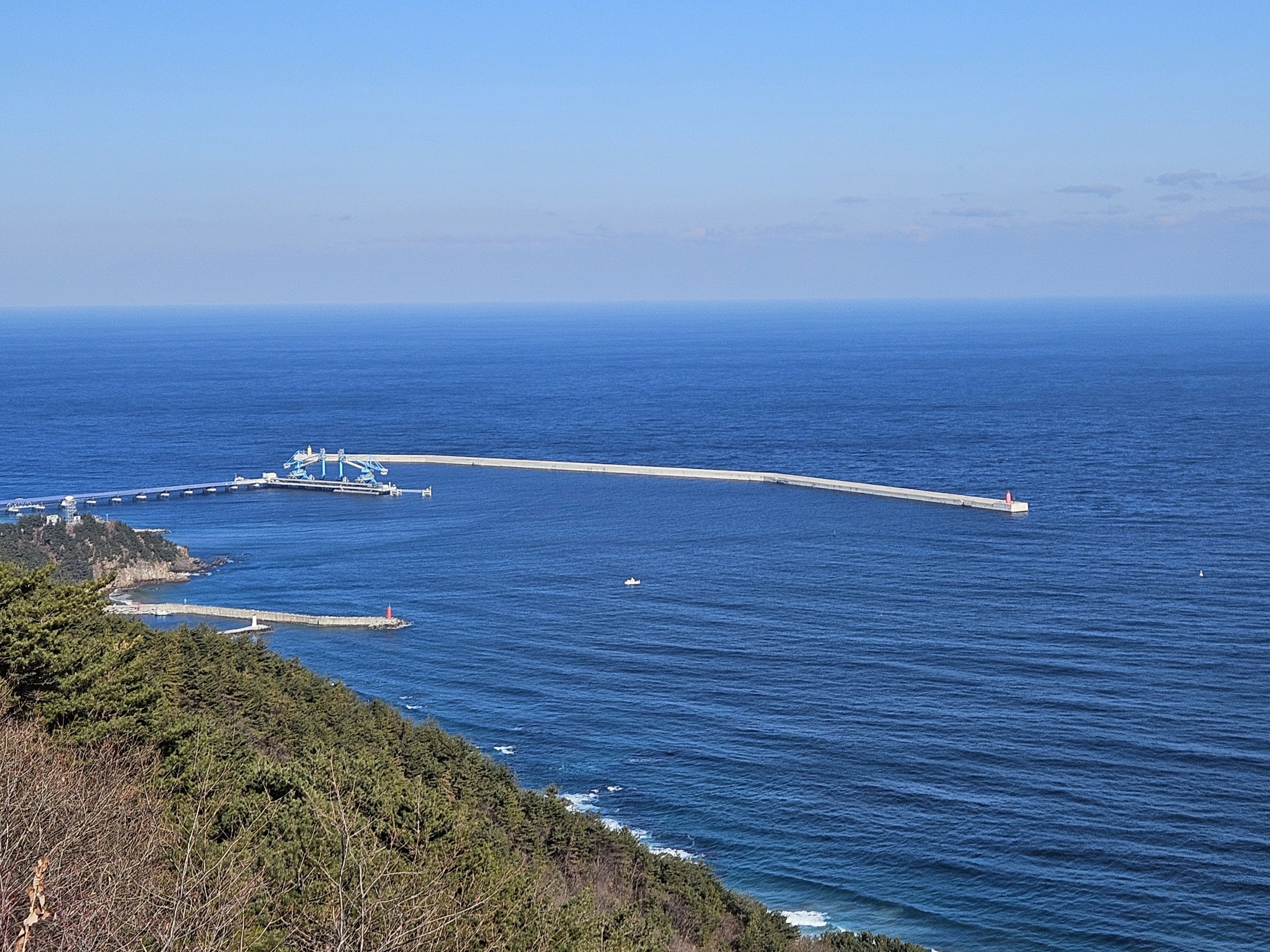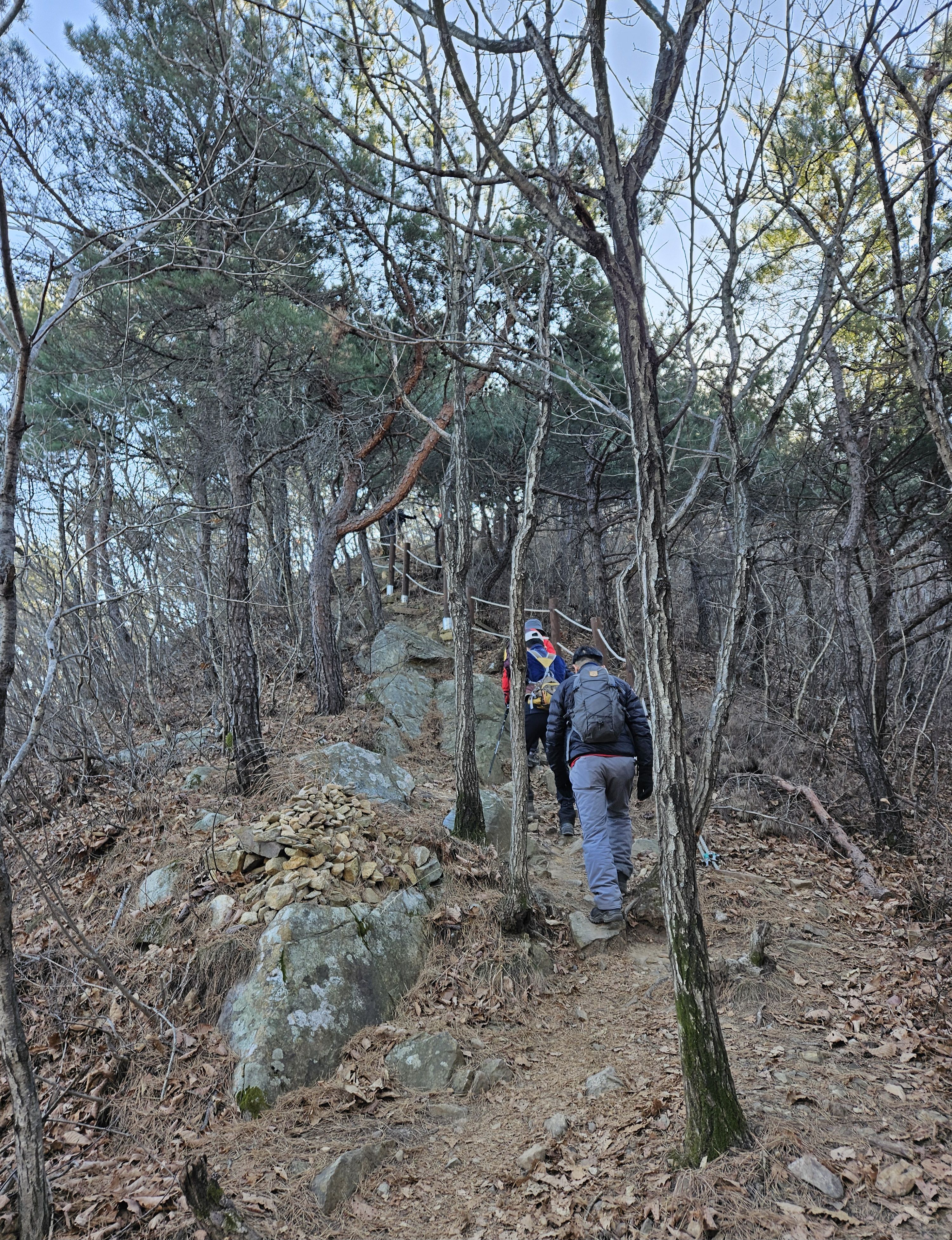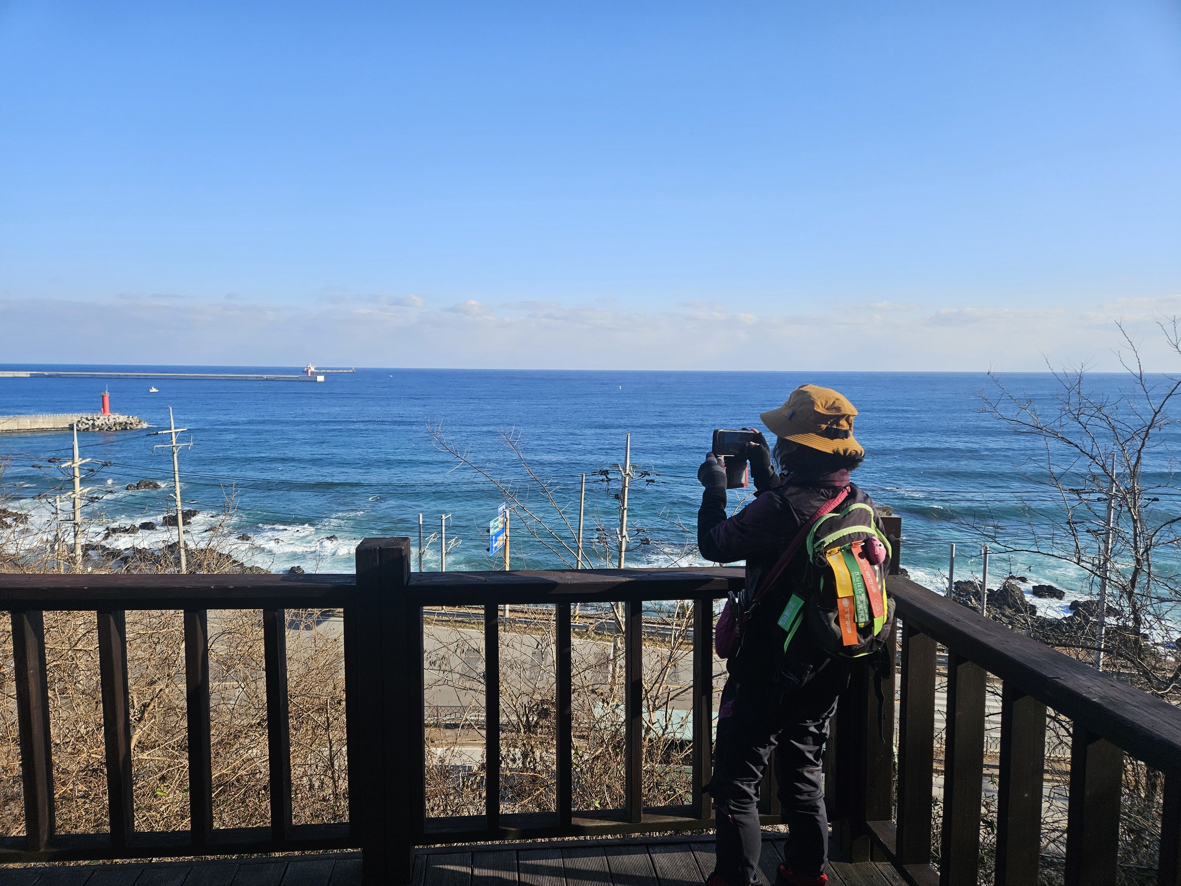 하차 후 첫걸음부터 깍아진 계단길 아이고 숨이 턱~~~계단길 오르고나니 등로는 명산답게 아주 좋았습니다. 산 높이를 더해 가면서 어느새 땀 나기시작. 바람막이 벗기 시작... 간간히 보게되는 바다 조망은 경치는 일품이었습니다. 맑고 깨끗한 하늘 덕분에 바다는 더 푸르게 푸르게 보였는데 큰 너울성파도까지 볼거리 제공 해 주어 새해 첫 산행 산뜻한 기분 참 행복했습니다.