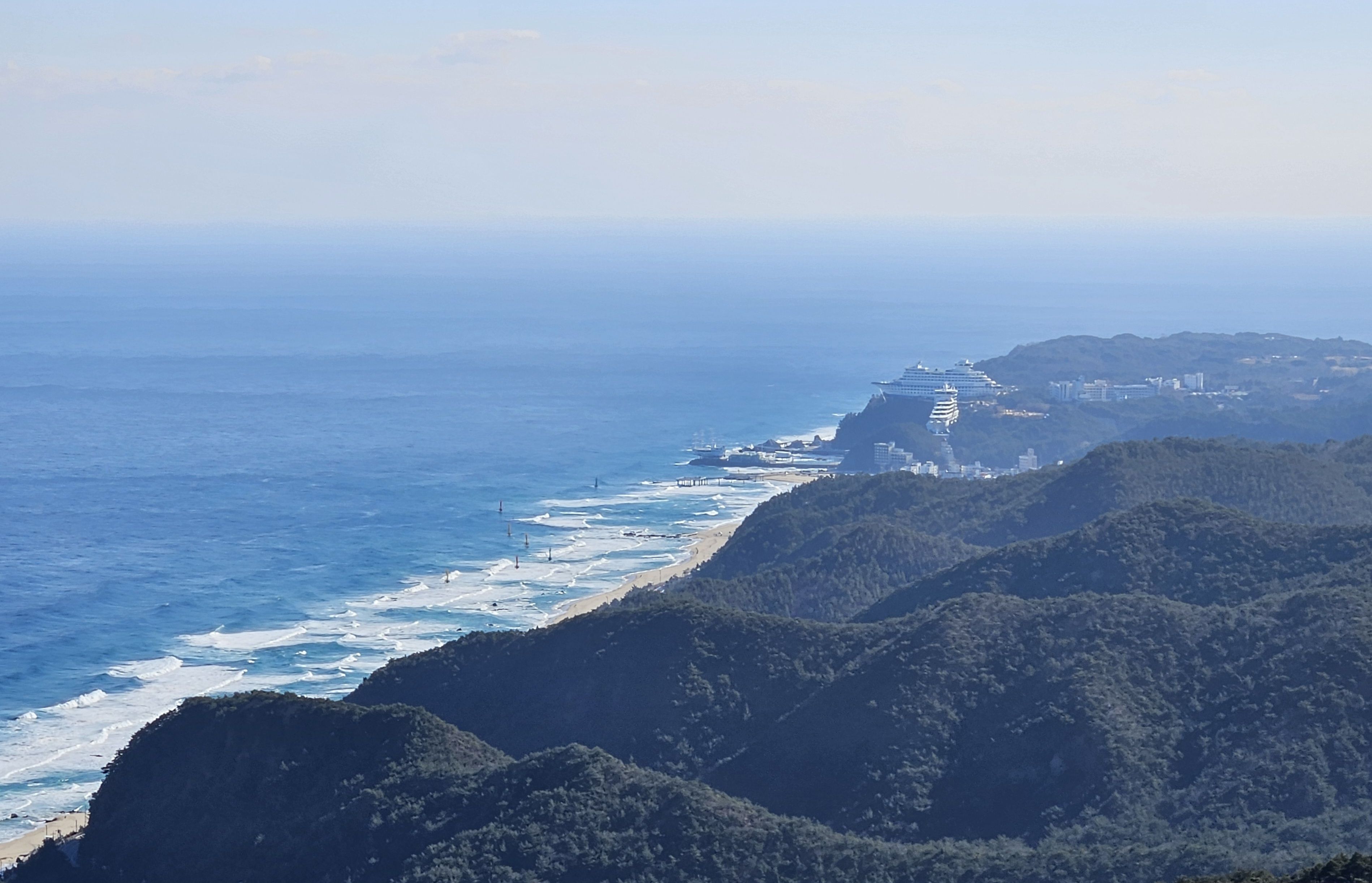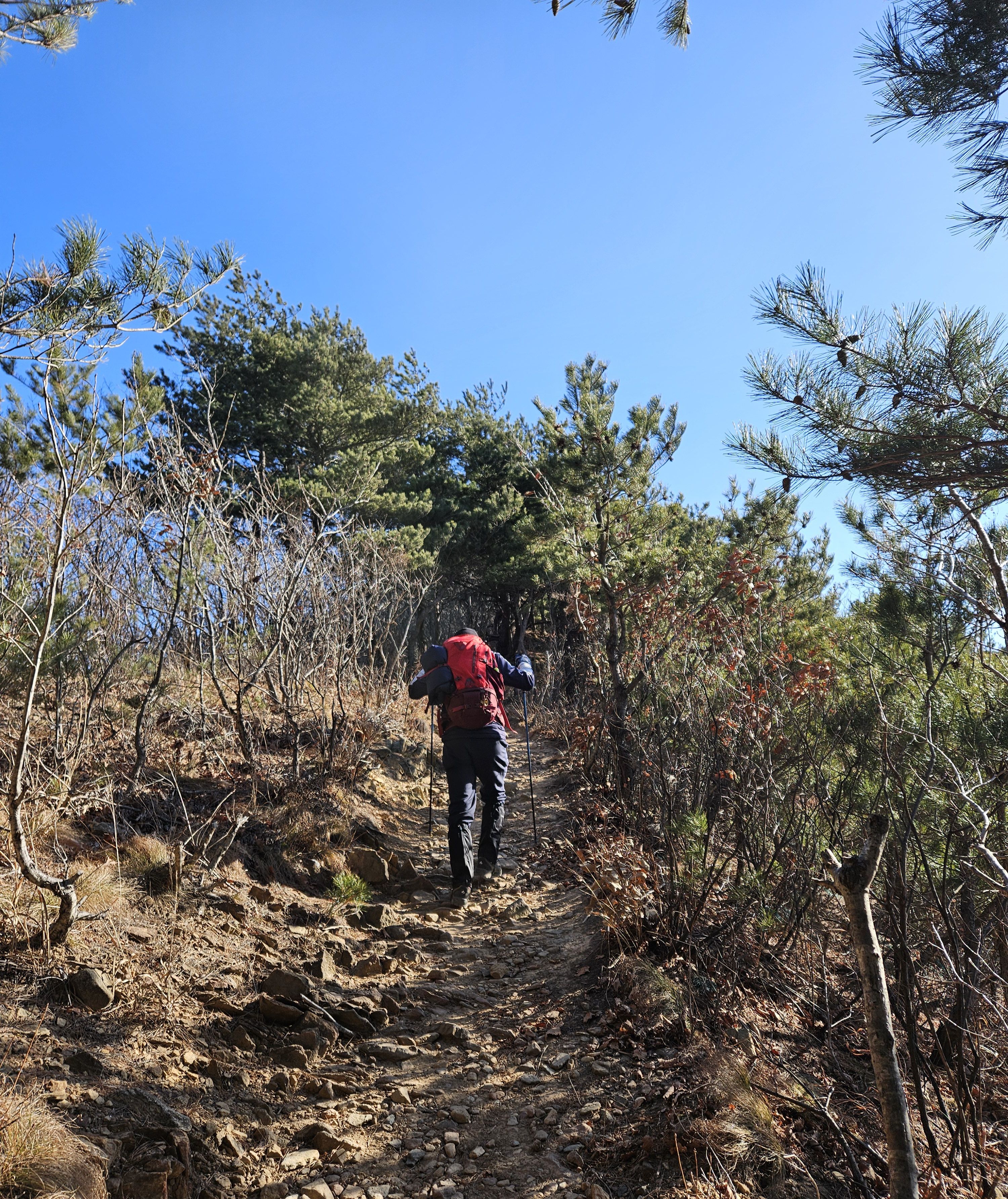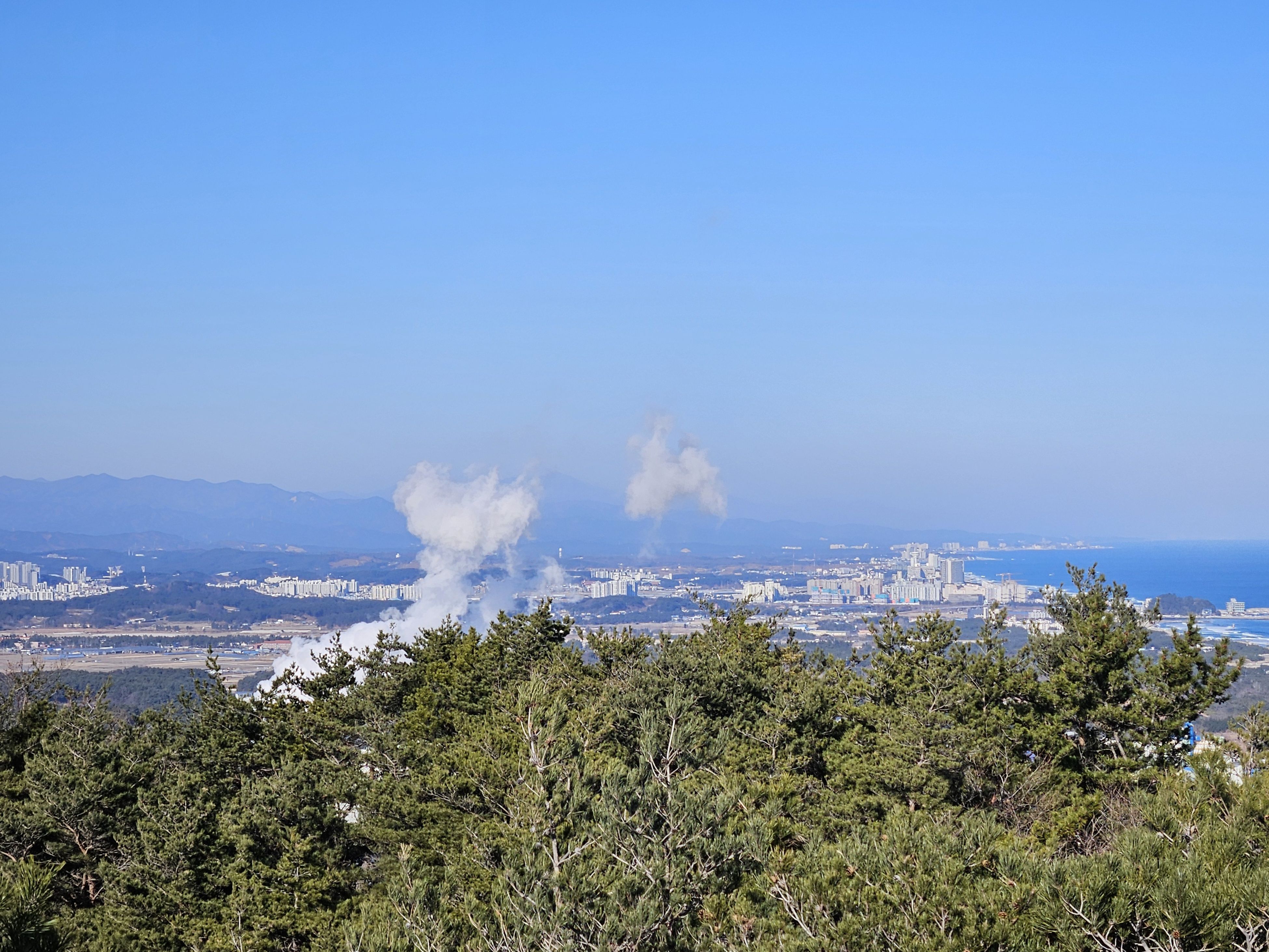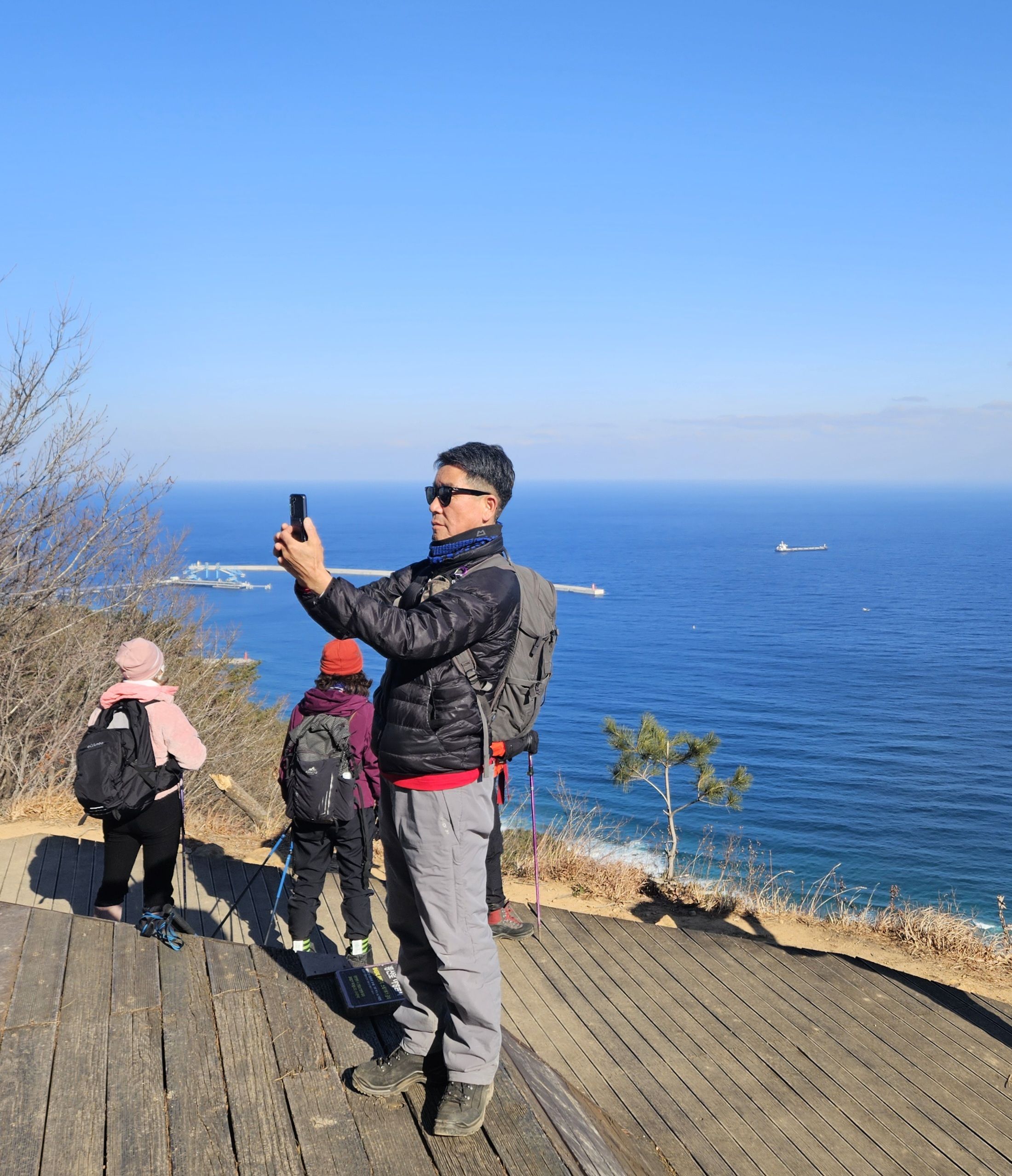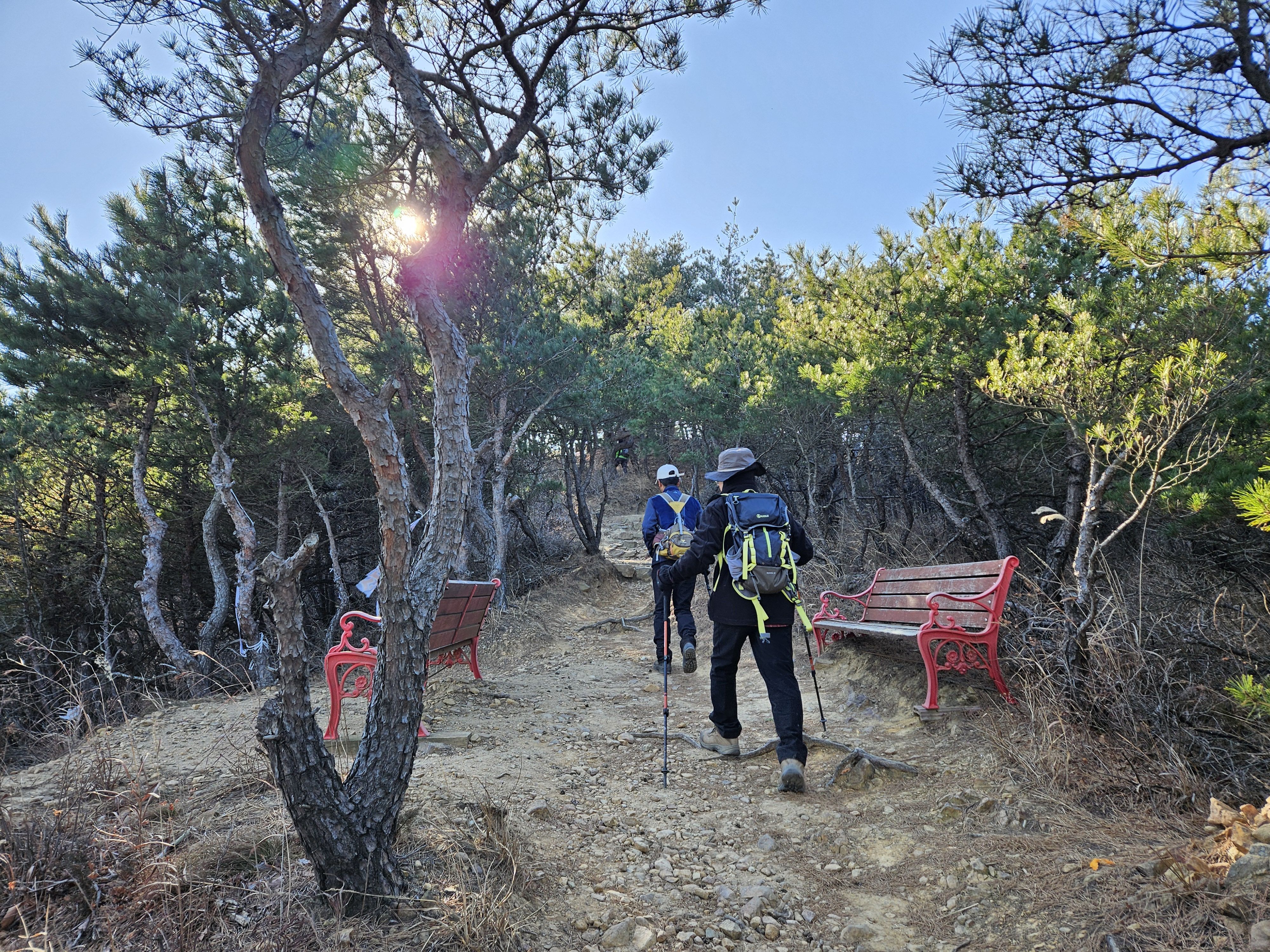 하차 후 첫걸음부터 깍아진 계단길 아이고 숨이 턱~~~계단길 오르고나니 등로는 명산답게 아주 좋았습니다. 산 높이를 더해 가면서 어느새 땀 나기시작. 바람막이 벗기 시작... 간간히 보게되는 바다 조망은 경치는 일품이었습니다. 맑고 깨끗한 하늘 덕분에 바다는 더 푸르게 푸르게 보였는데 큰 너울성파도까지 볼거리 제공 해 주어 새해 첫 산행 산뜻한 기분 참 행복했습니다.
